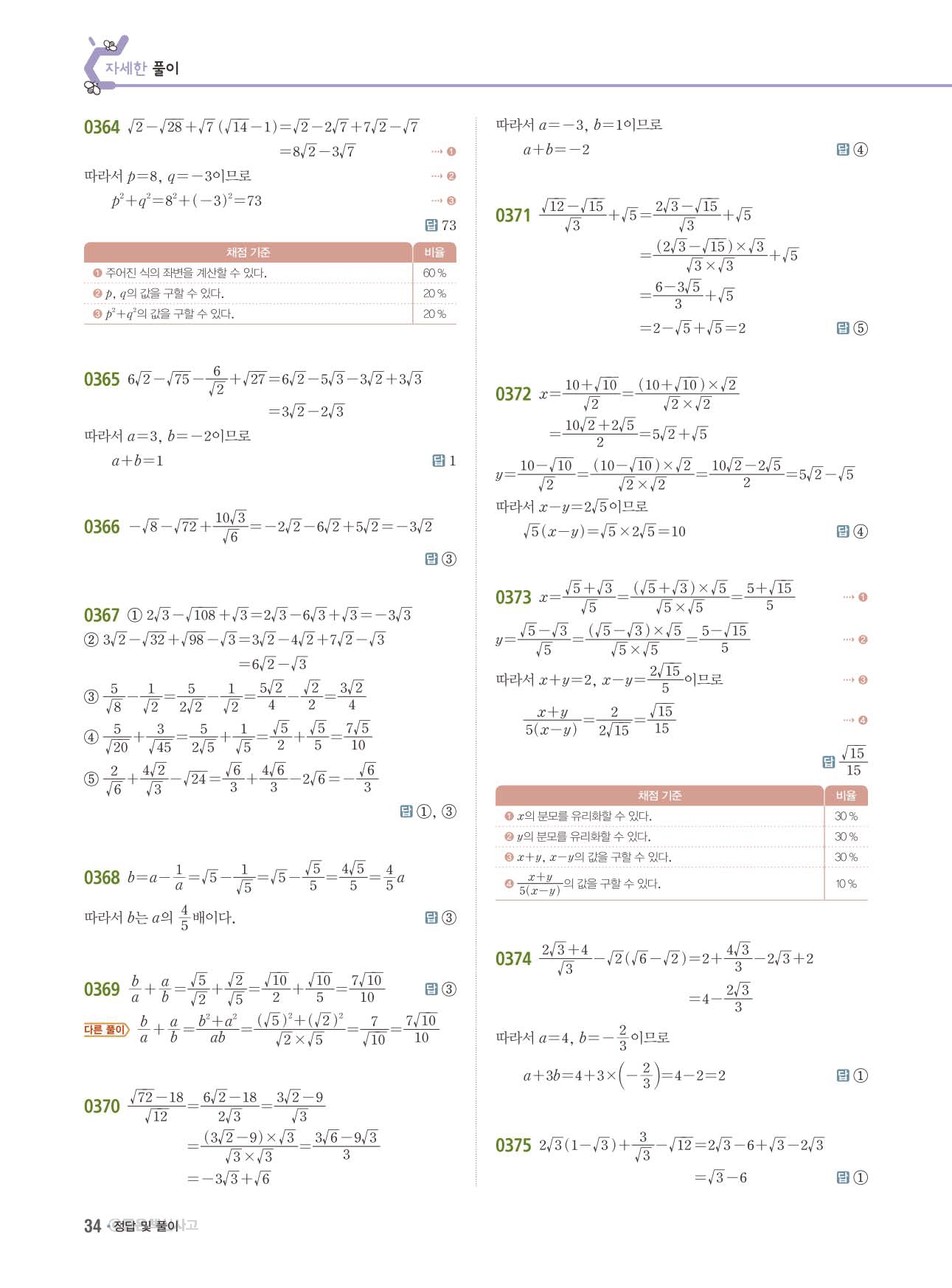 | 천재교육 류희찬 중3 수학교과서 답지 | |
