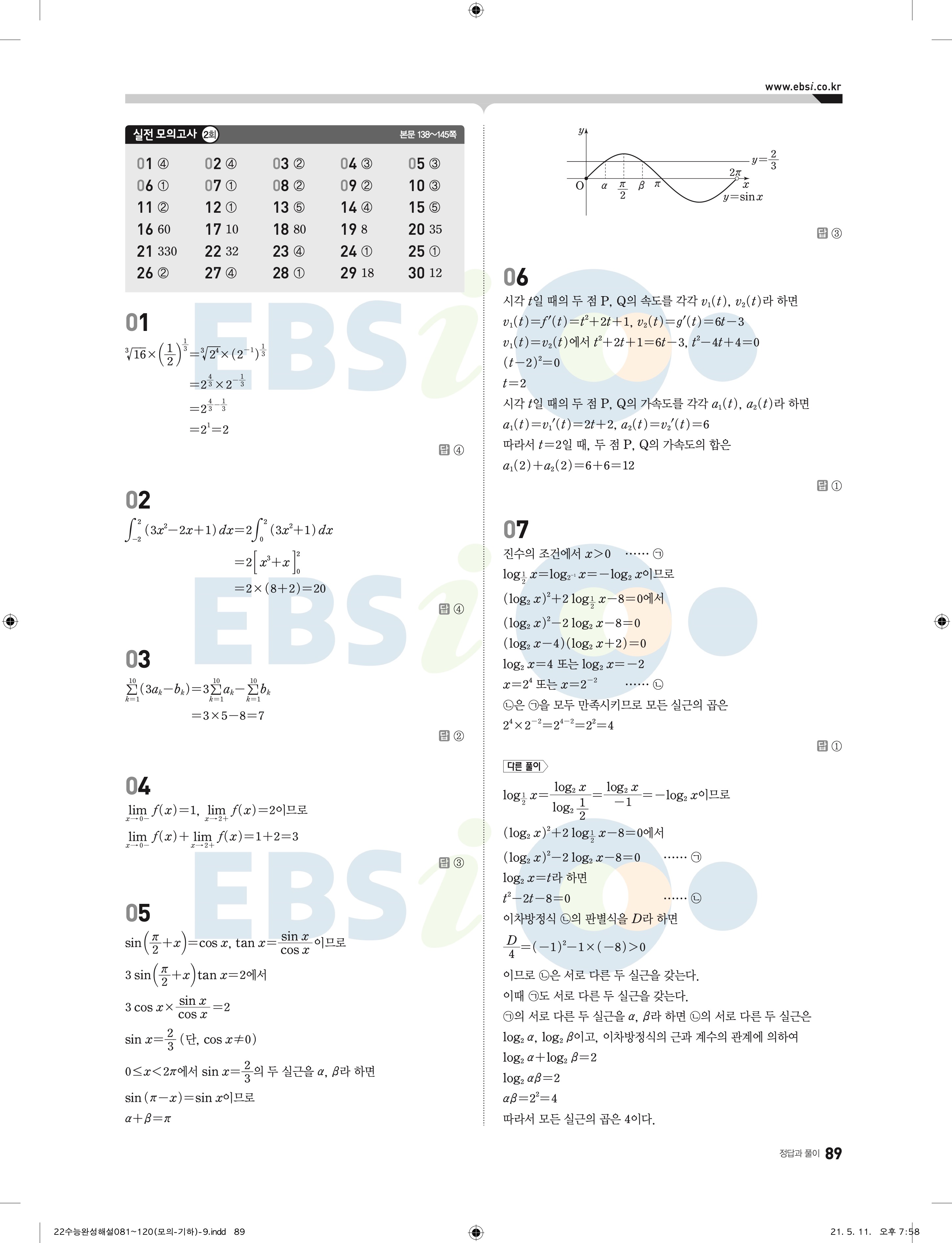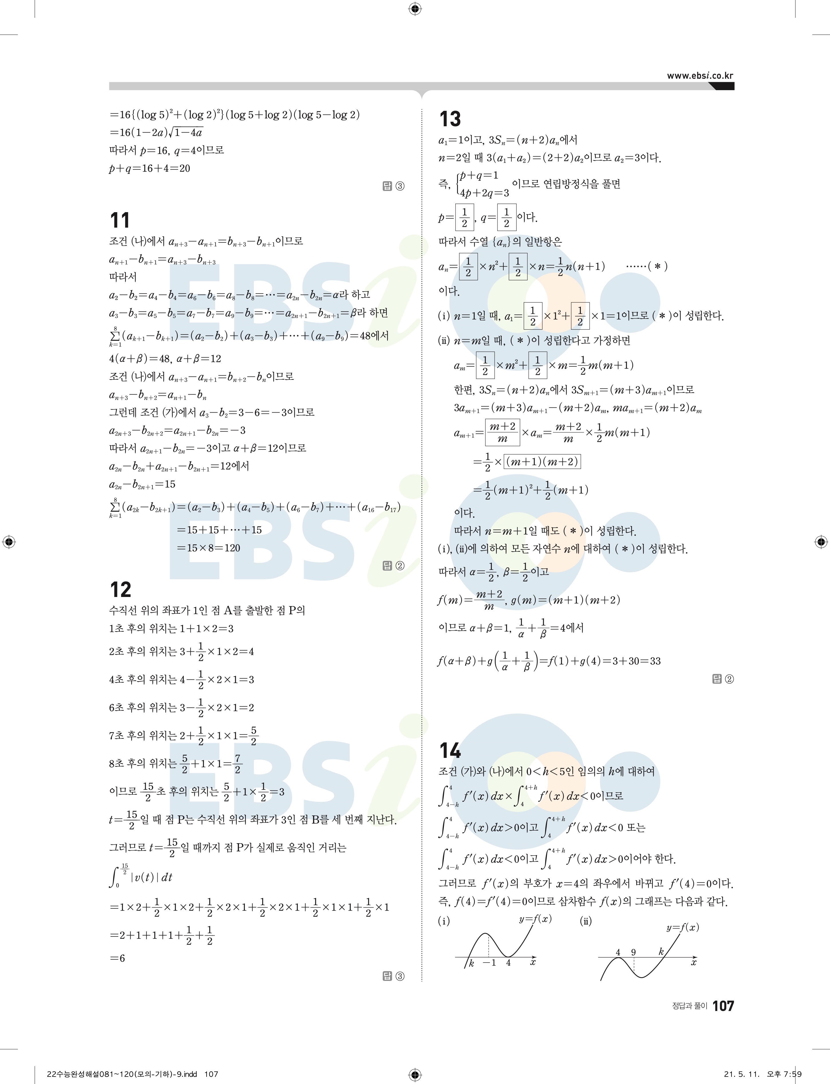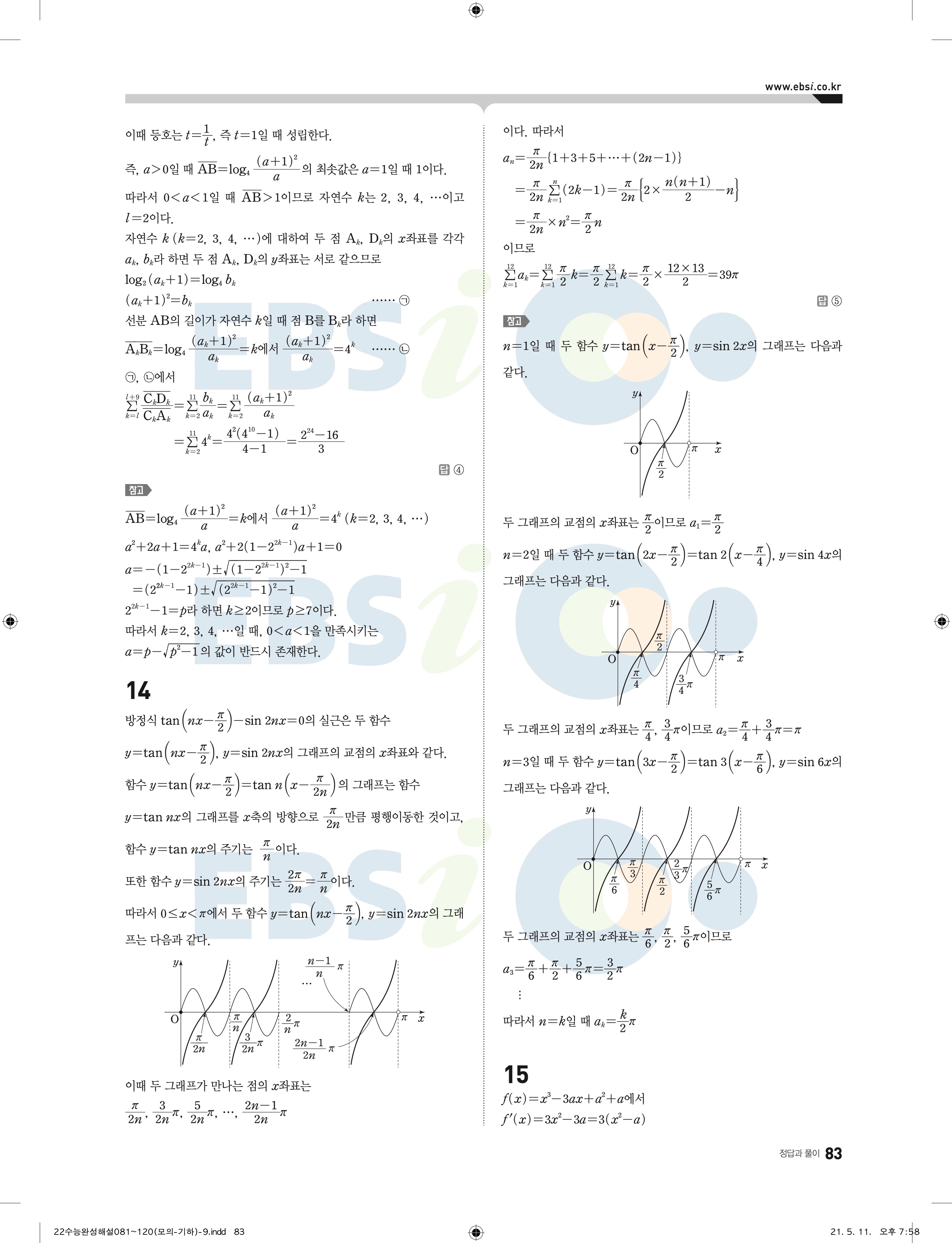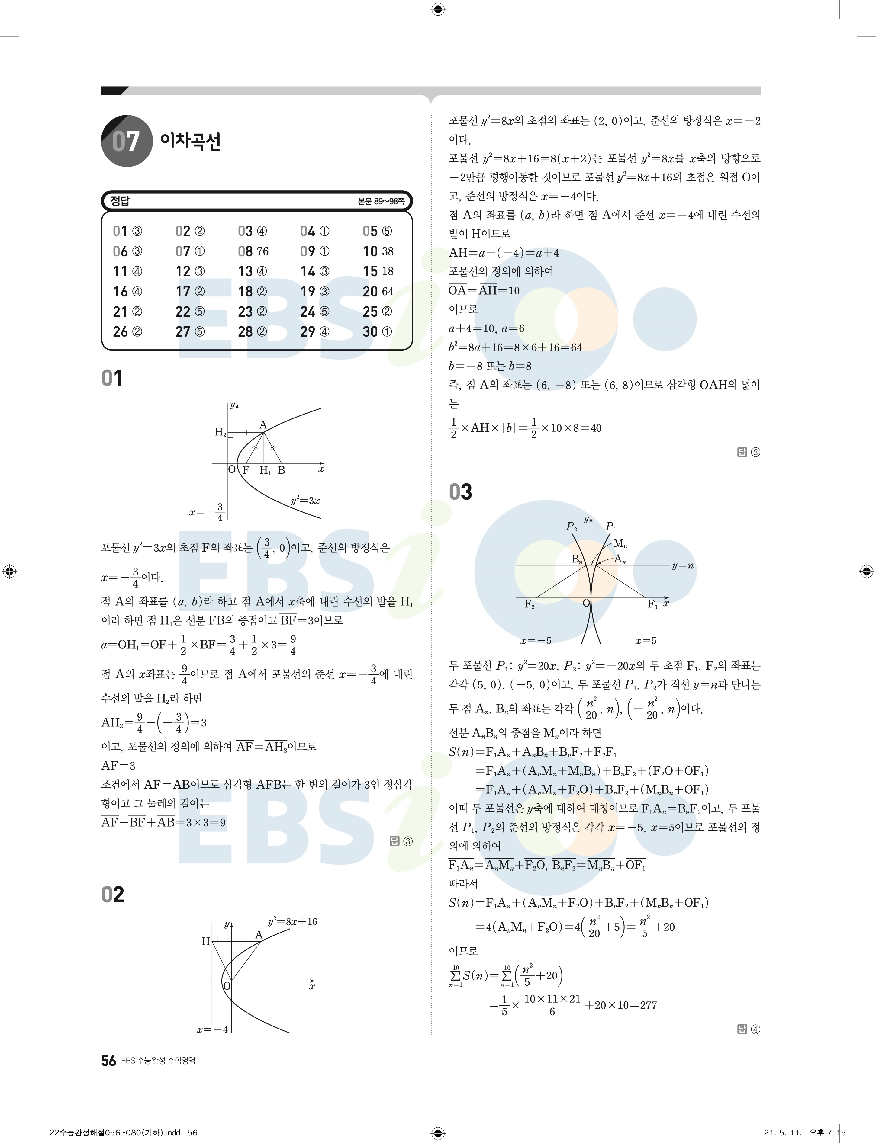 2022 EBS 수능완성 수학영역 수학1 수학2 기하 답지 해설 바로보는 사진답지 모바일최적화