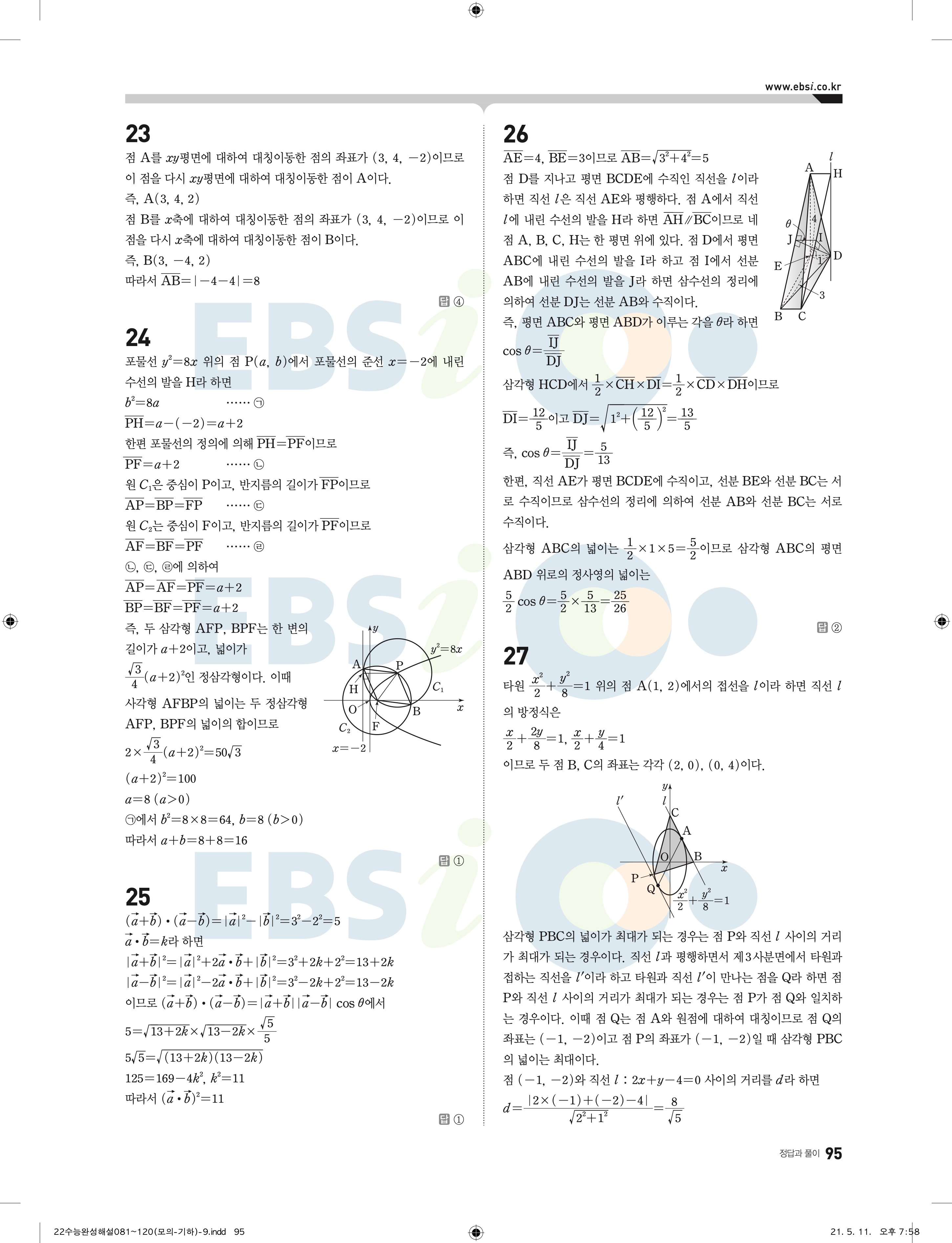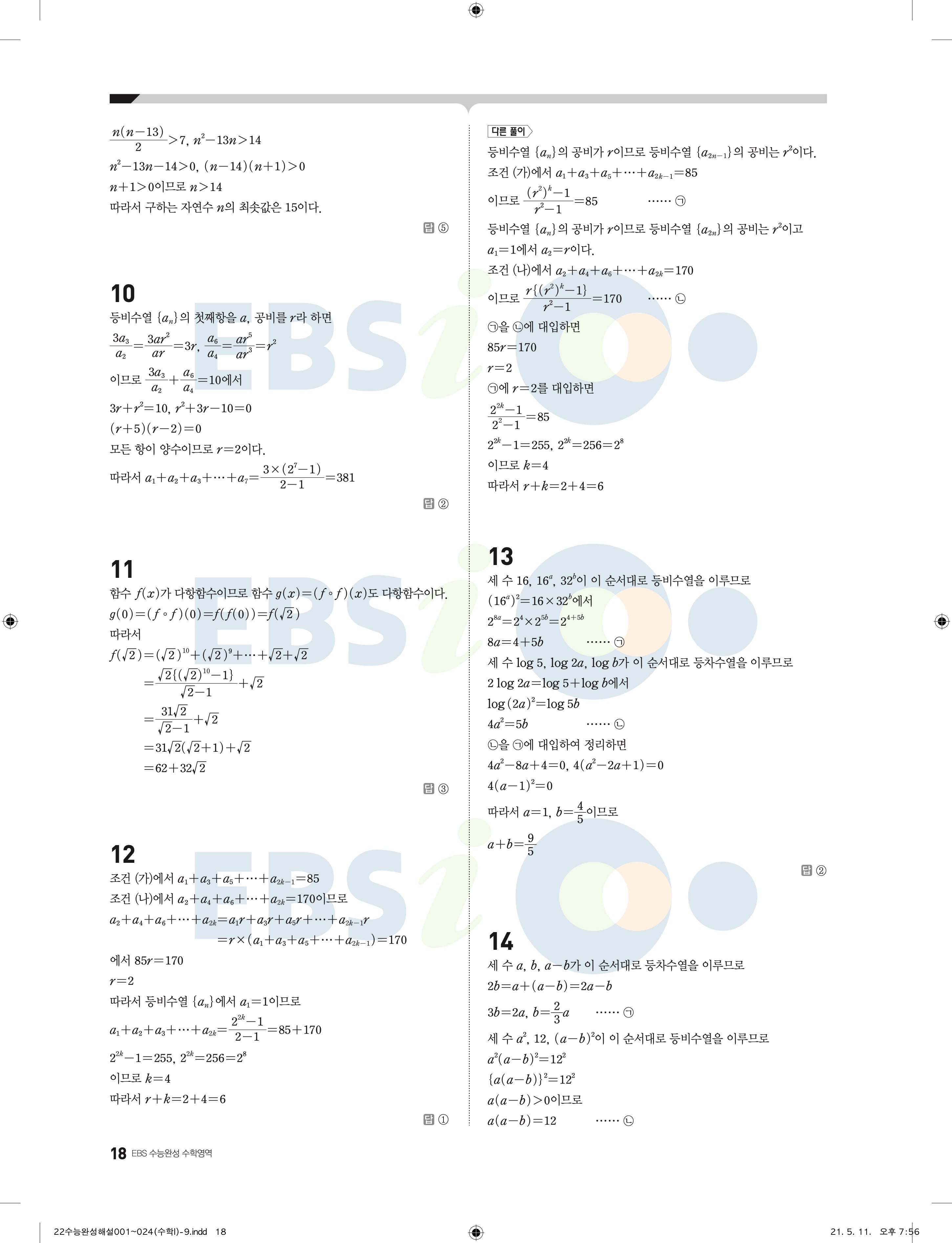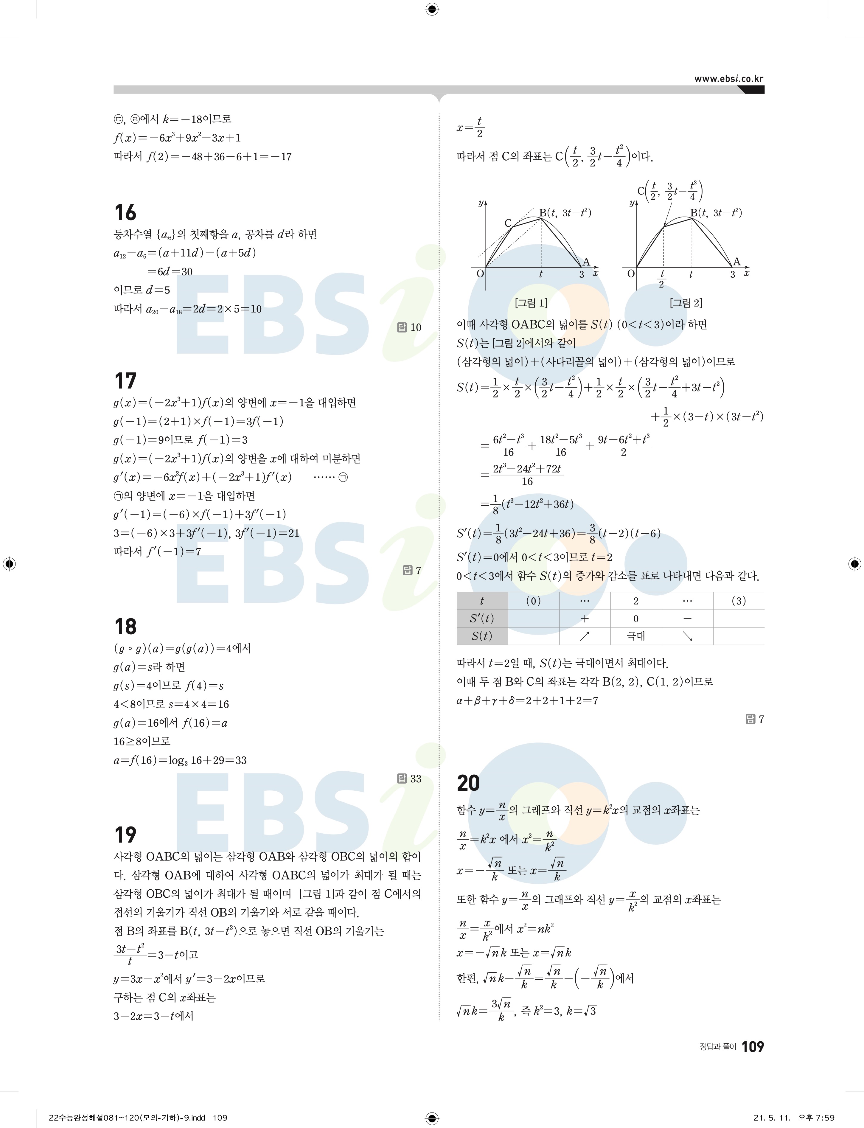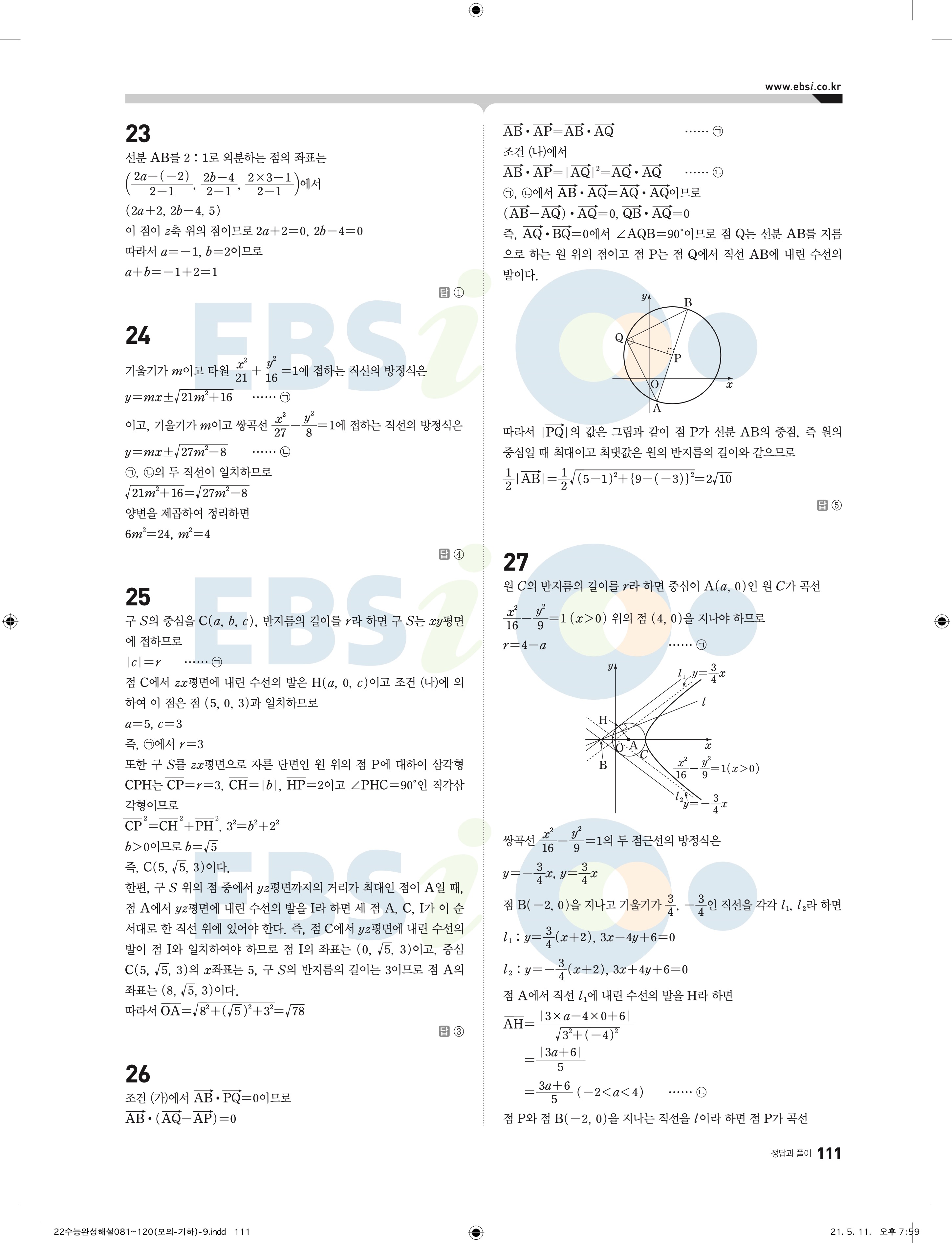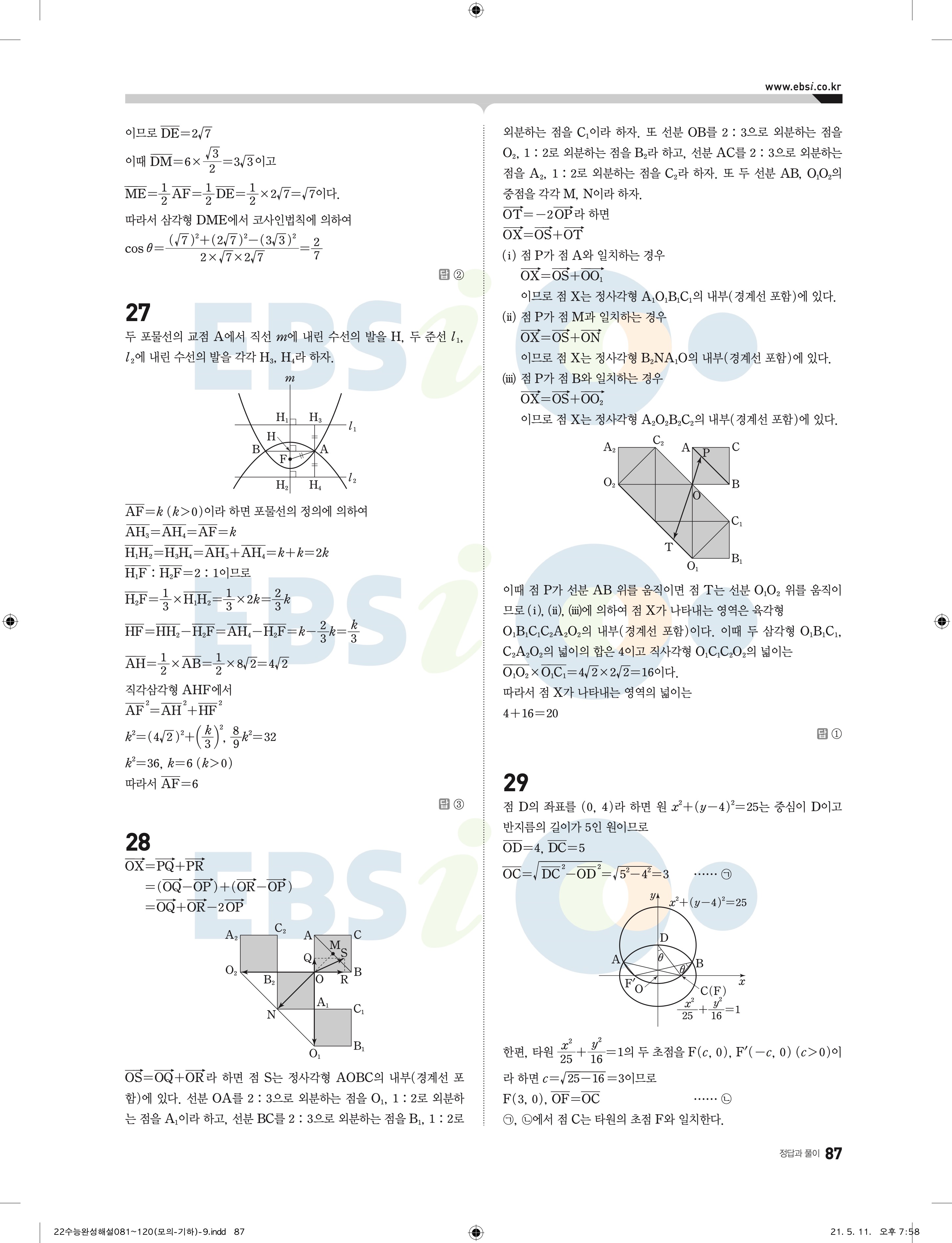 2022 EBS 수능완성 수학영역 수학1 수학2 기하 답지 해설 바로보는 사진답지 모바일최적화