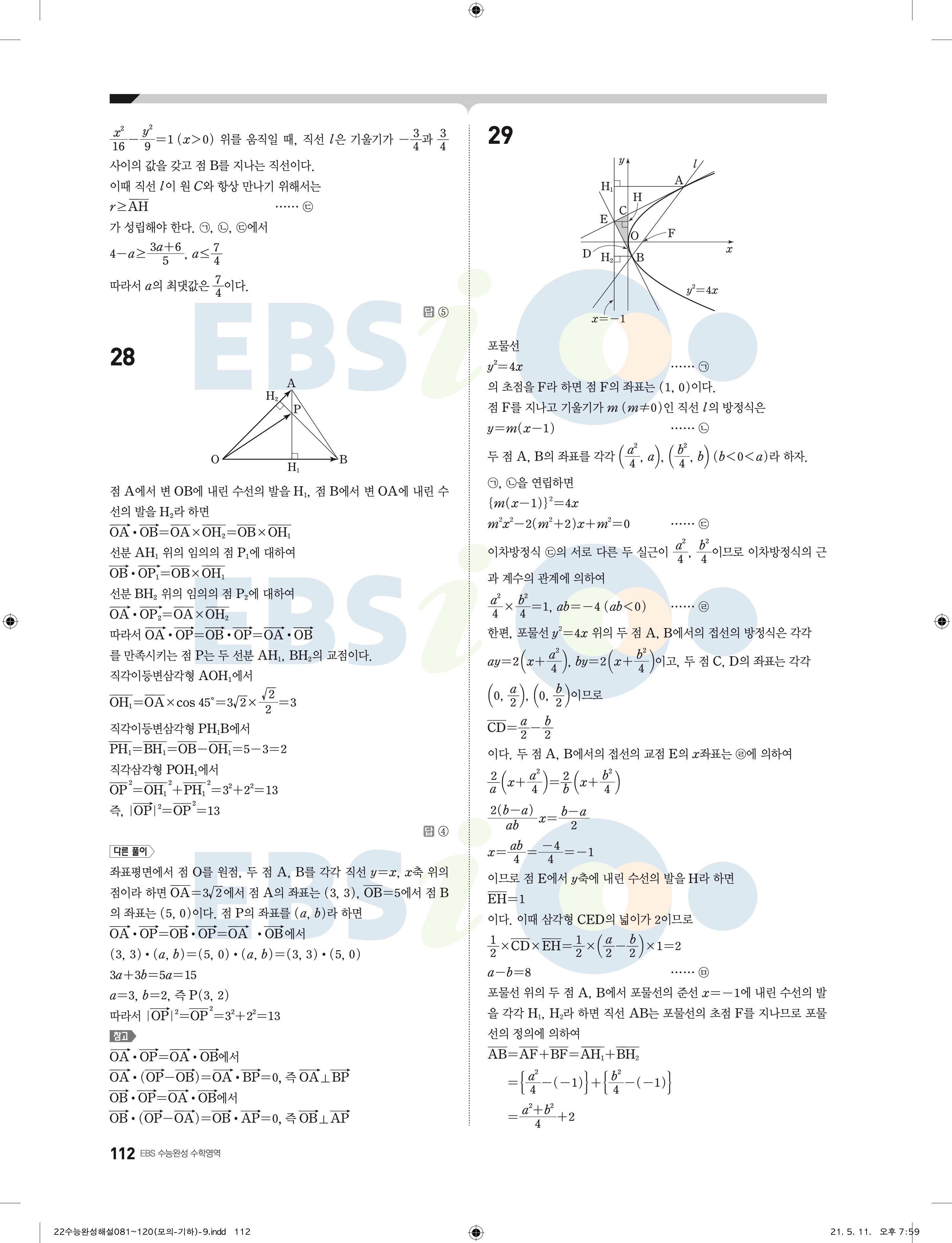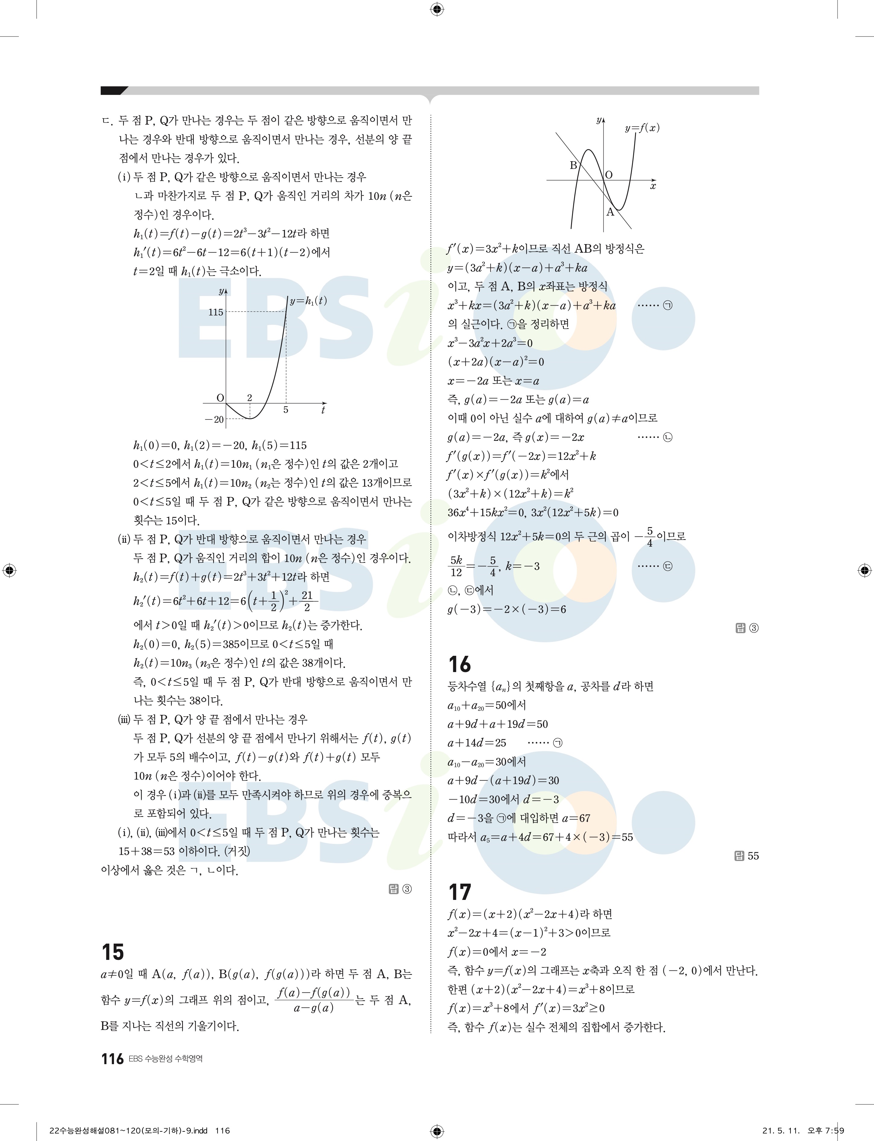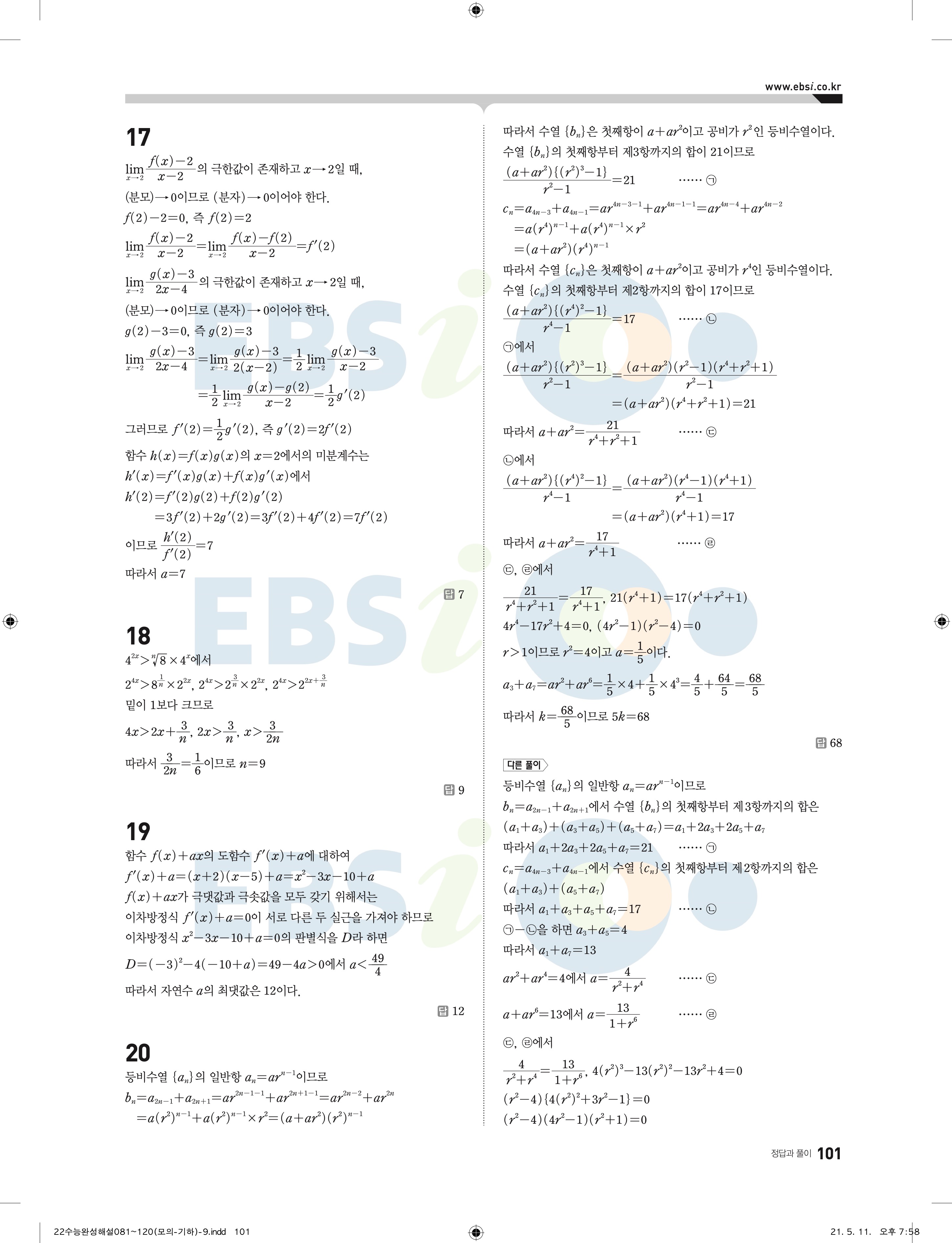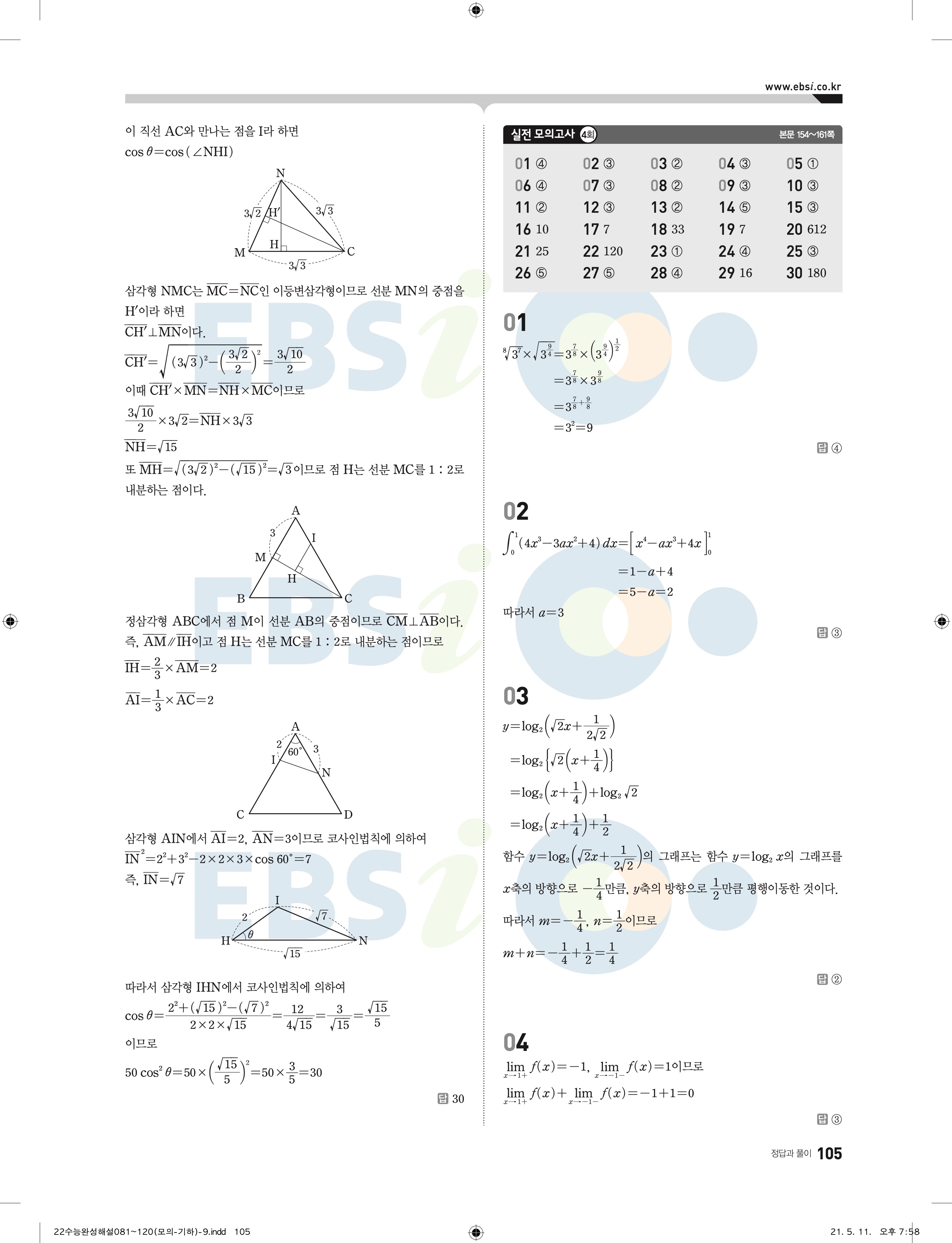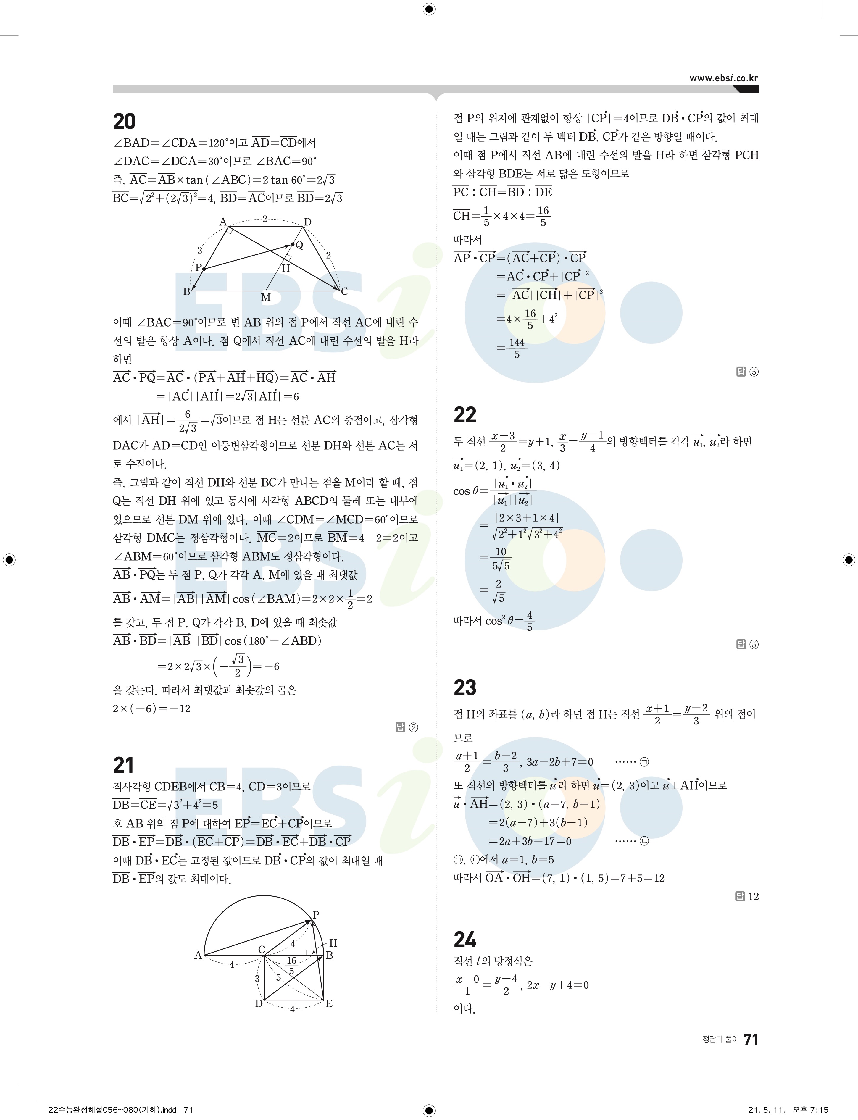 2022 EBS 수능완성 수학영역 수학1 수학2 기하 답지 해설 바로보는 사진답지 모바일최적화