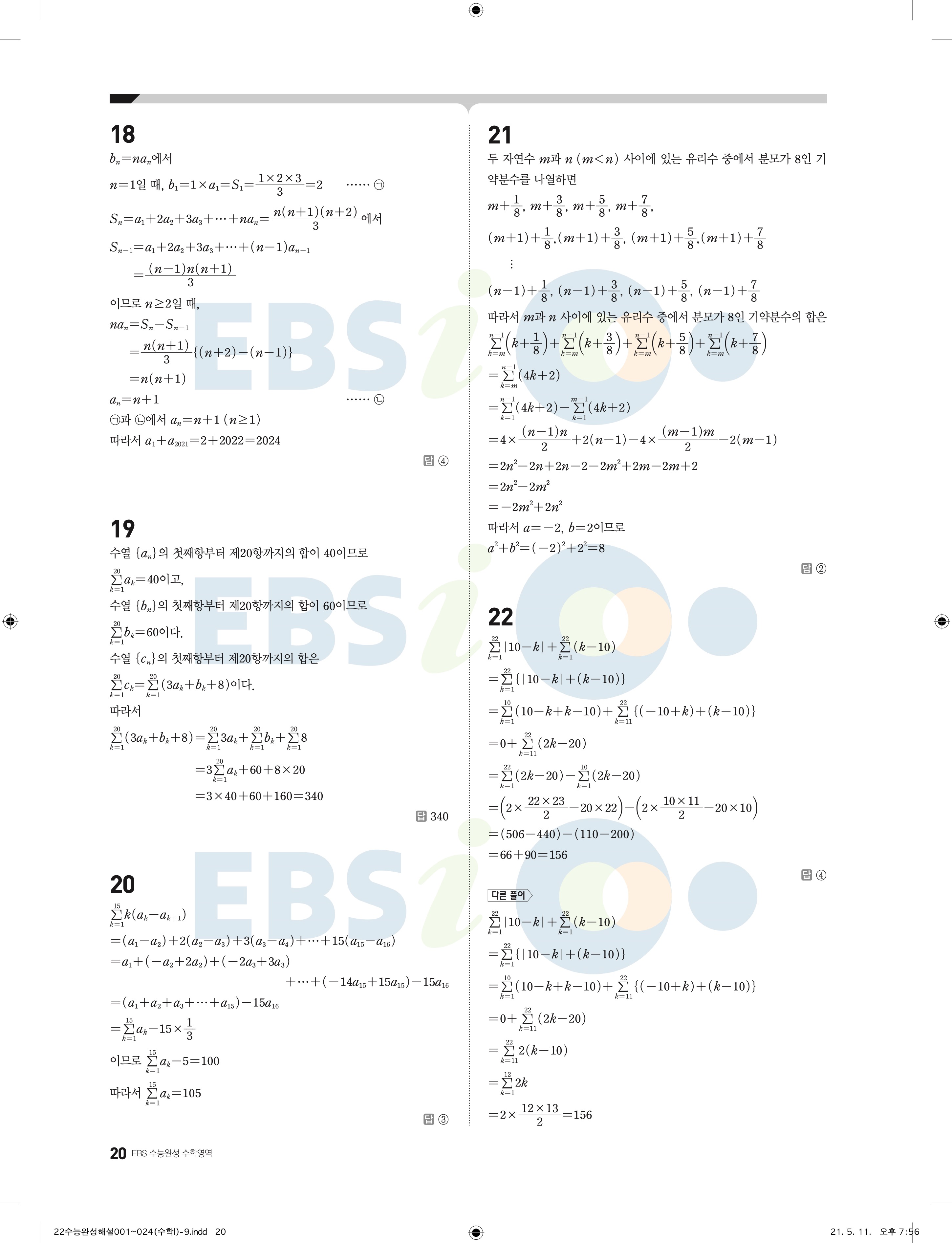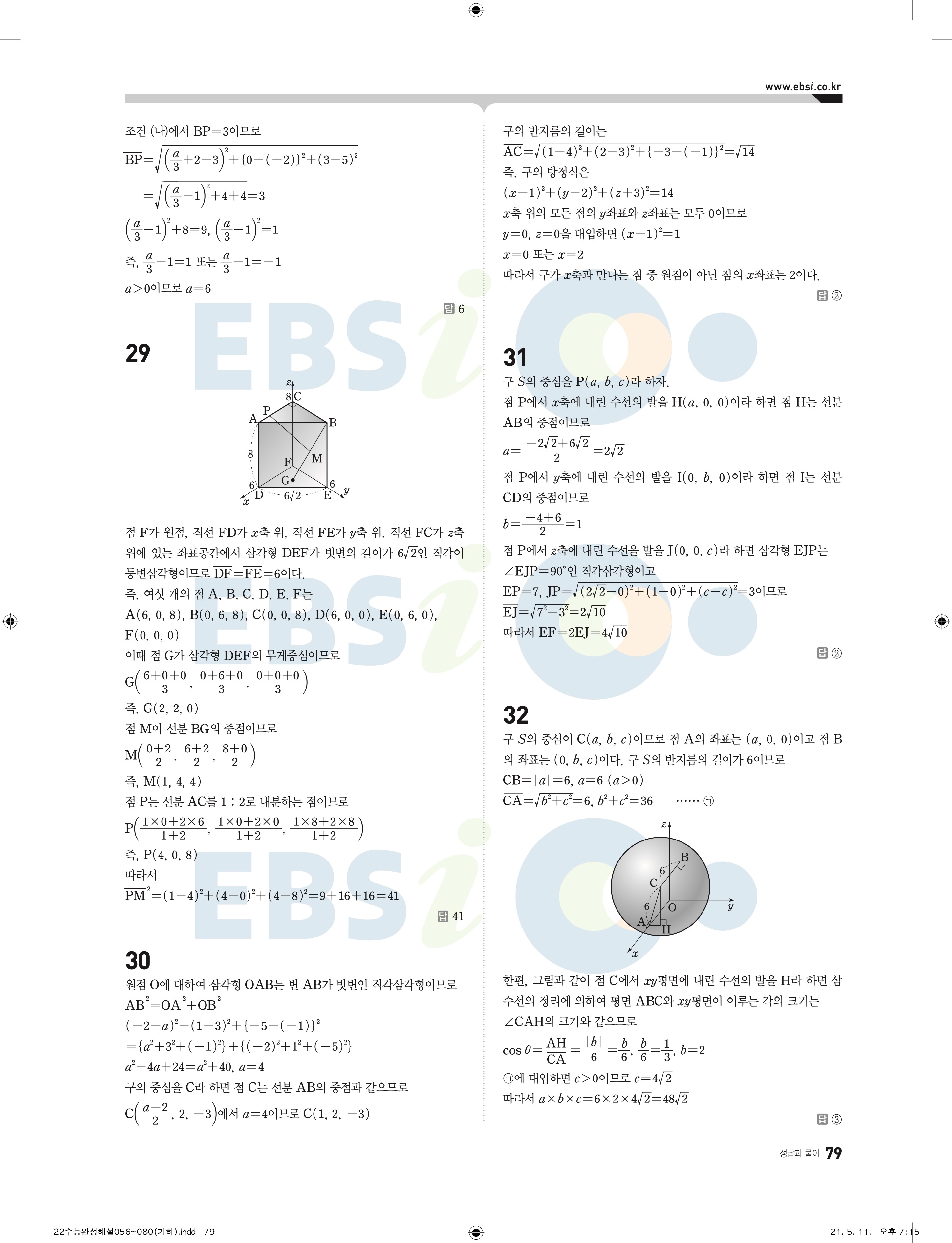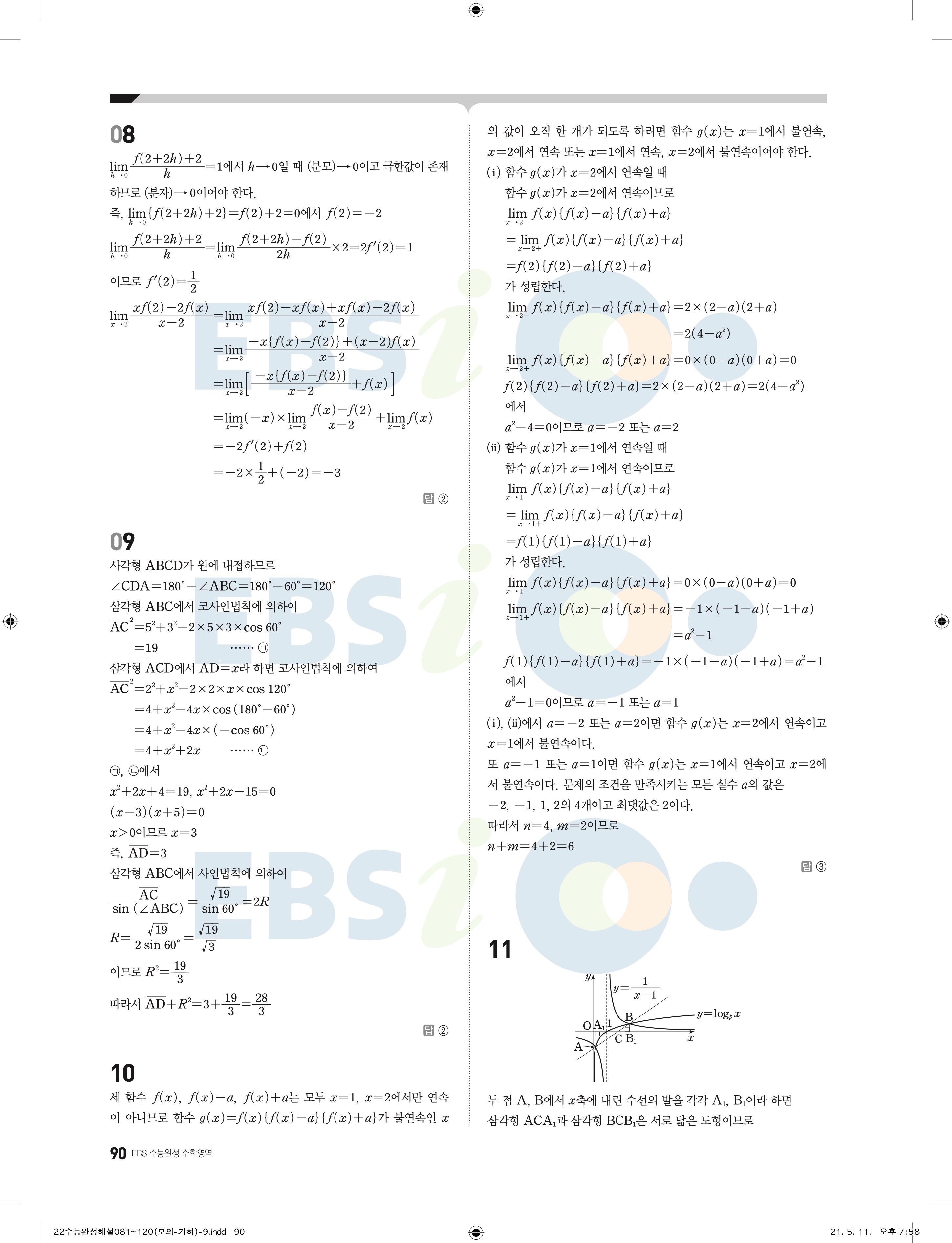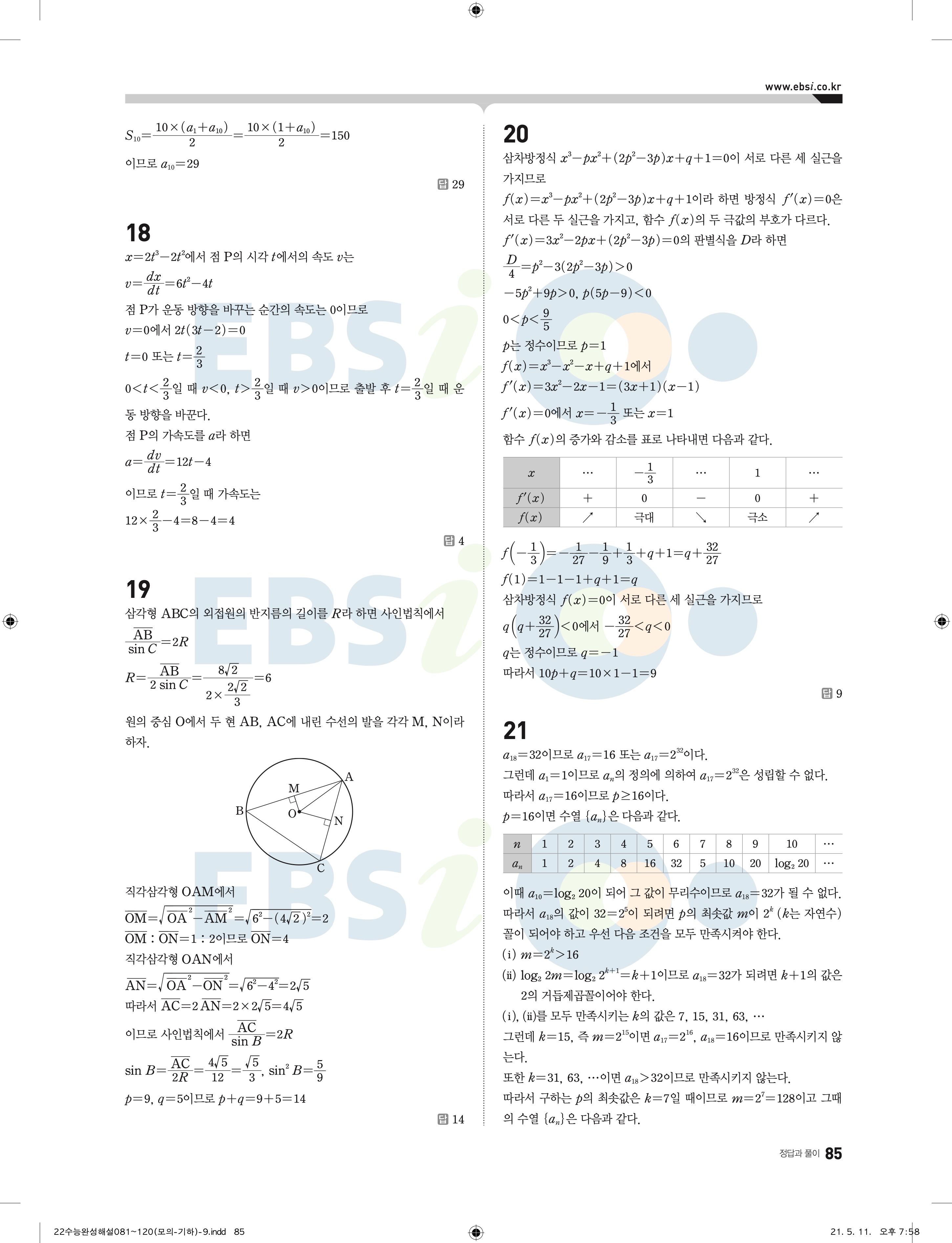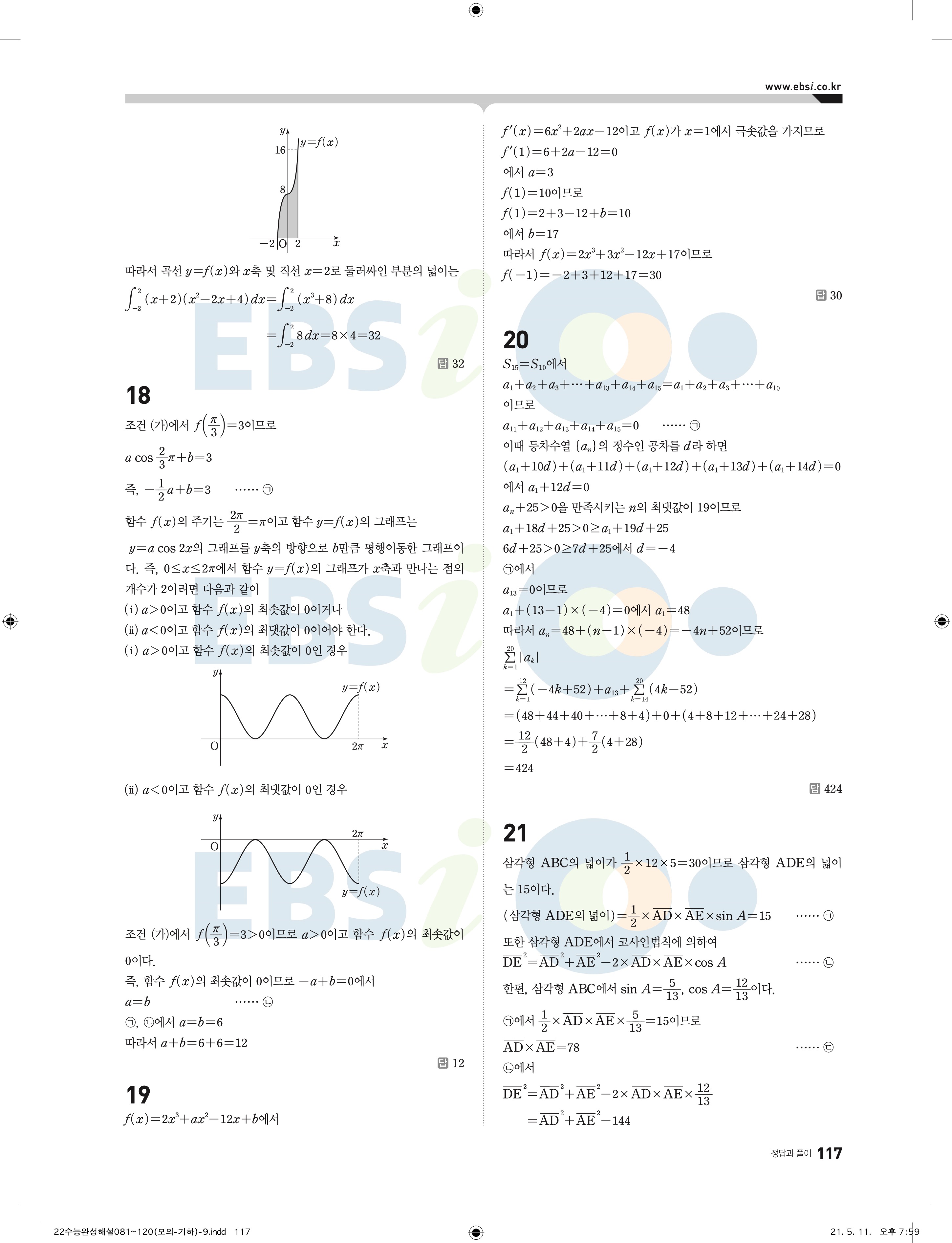 2022 EBS 수능완성 수학영역 수학1 수학2 기하 답지 해설 바로보는 사진답지 모바일최적화