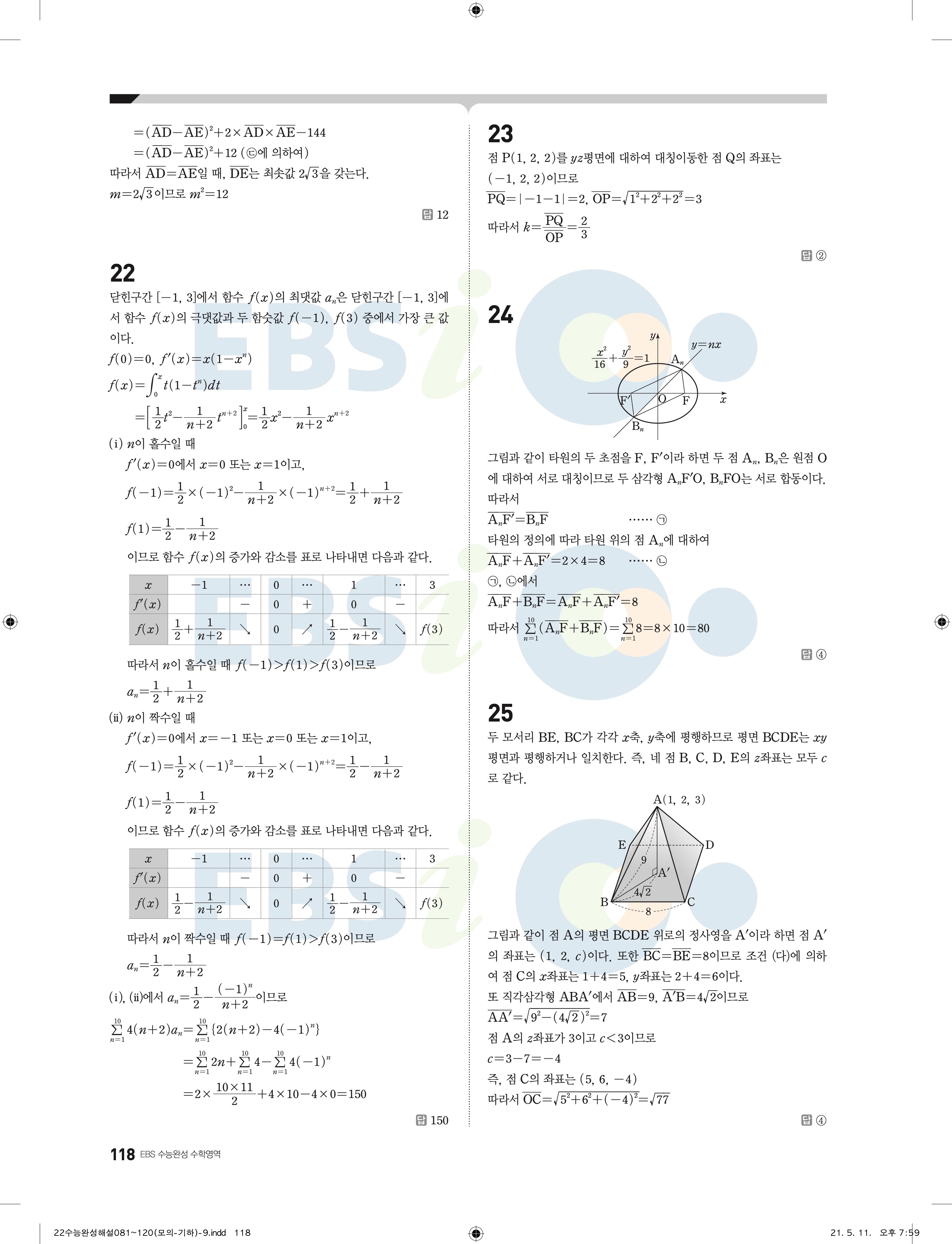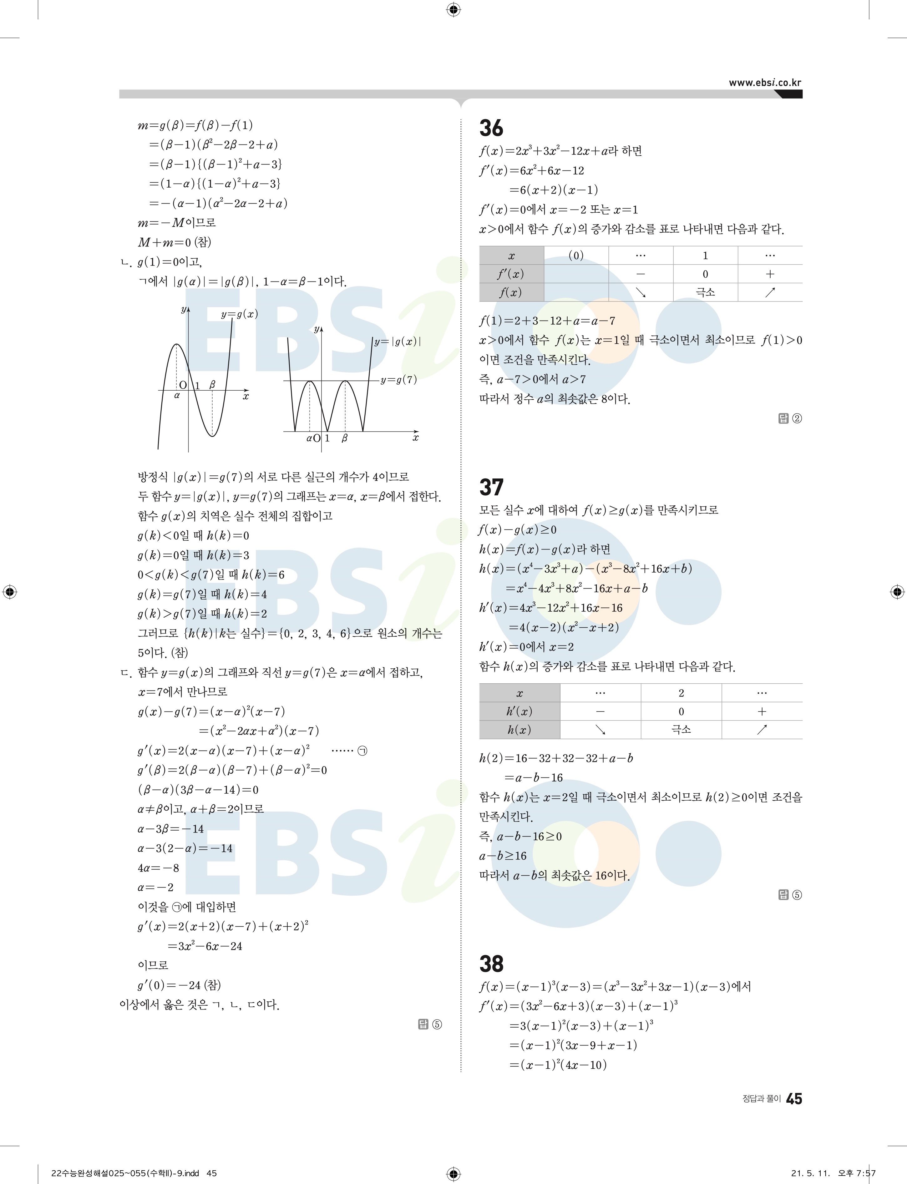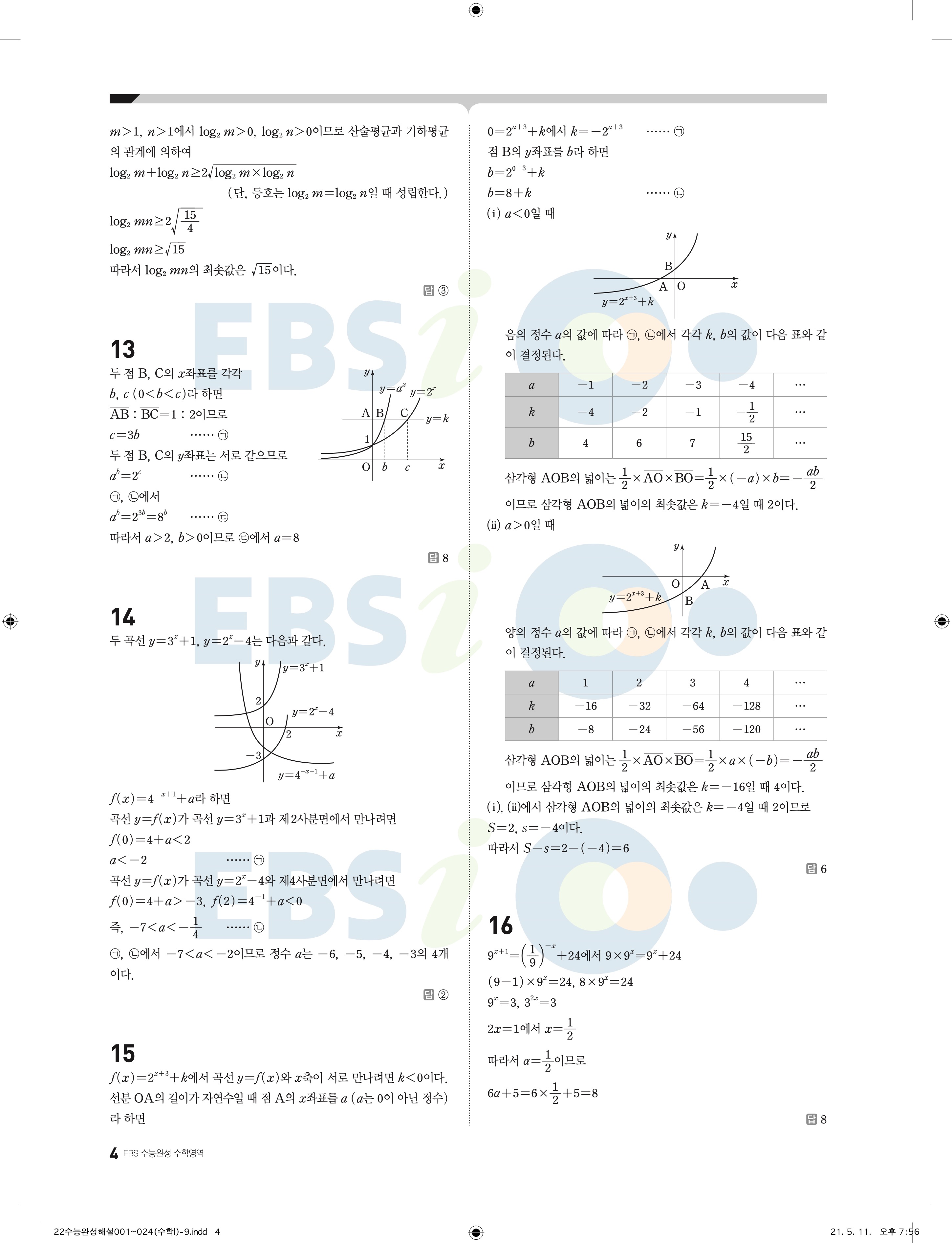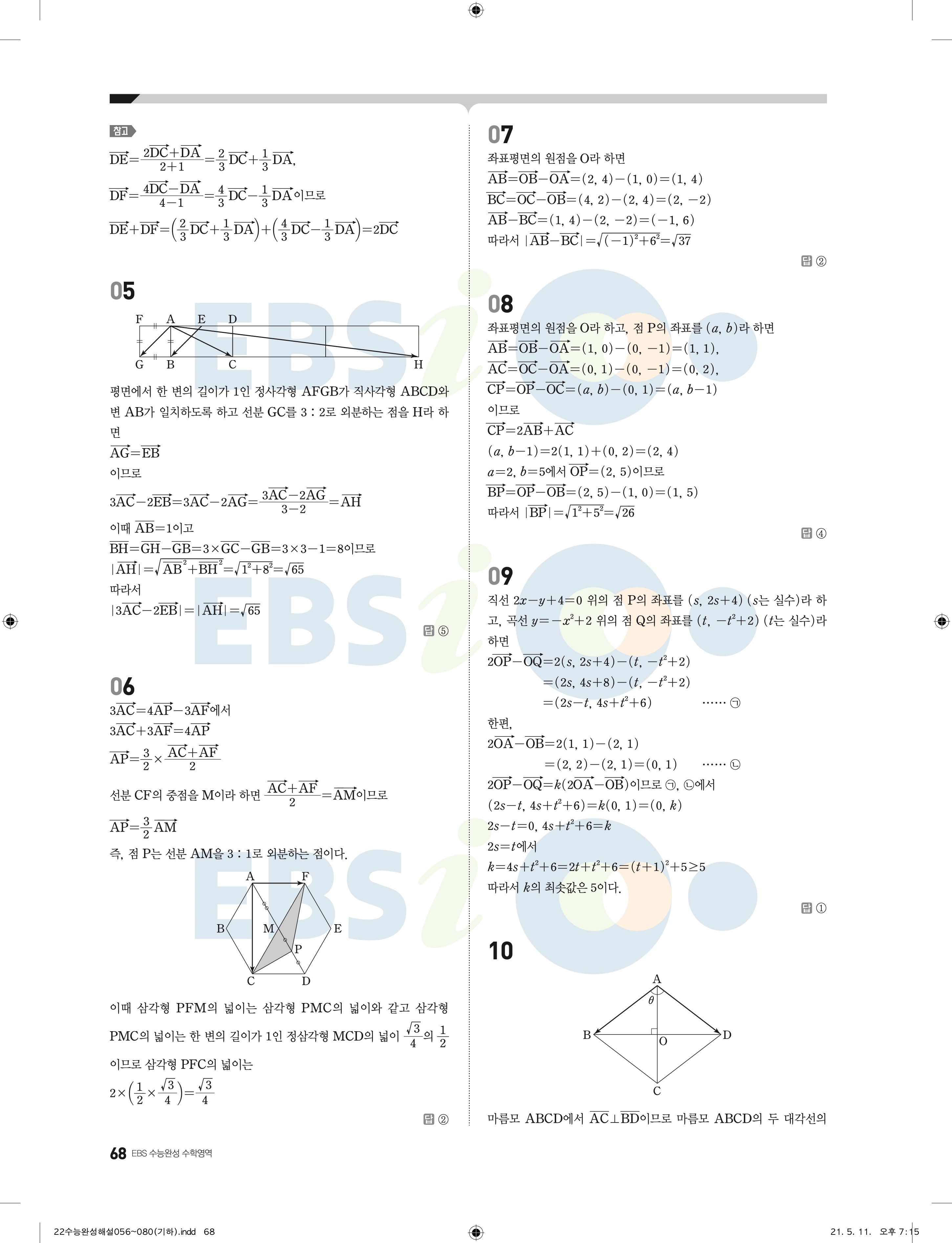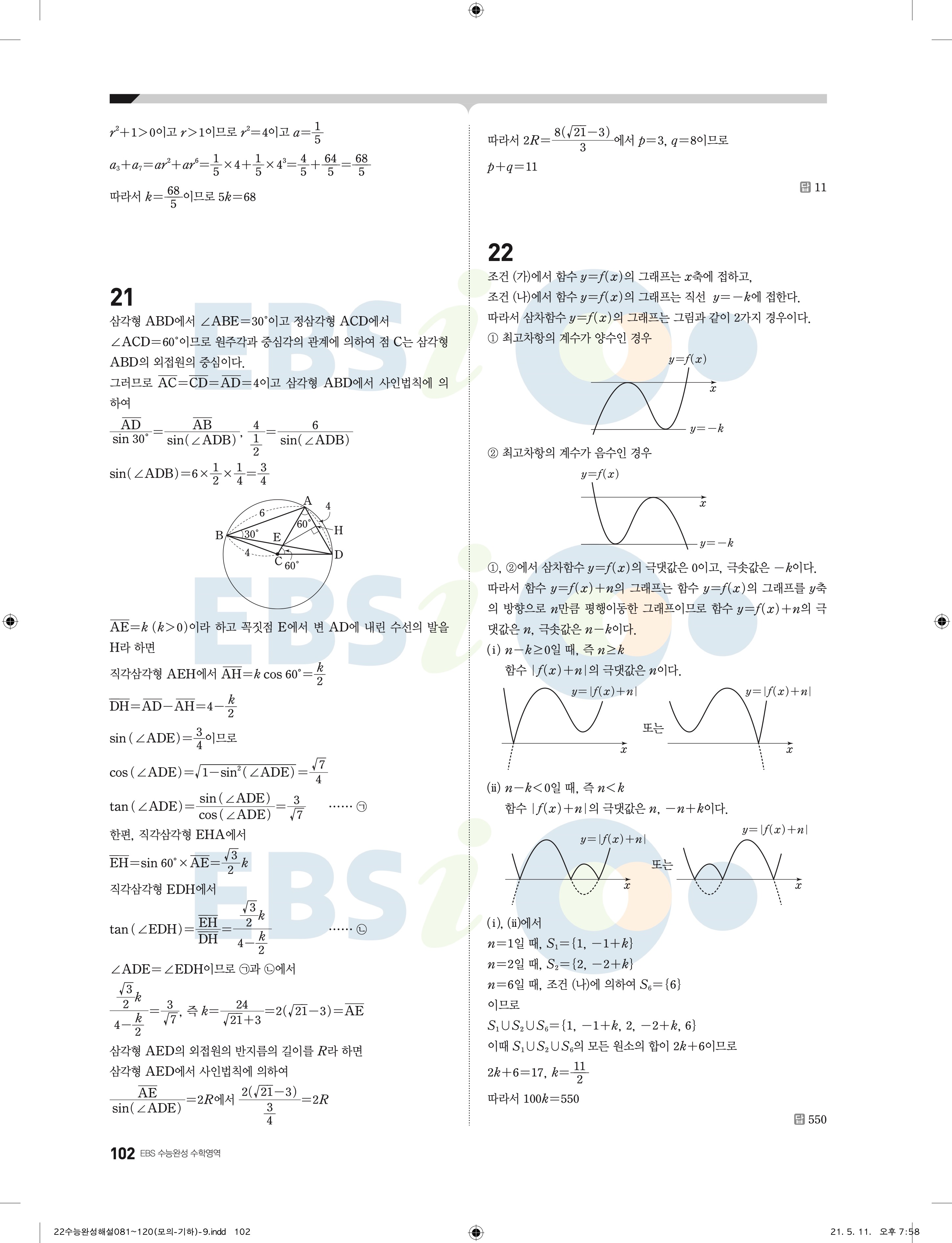 2022 EBS 수능완성 수학영역 수학1 수학2 기하 답지 해설 바로보는 사진답지 모바일최적화