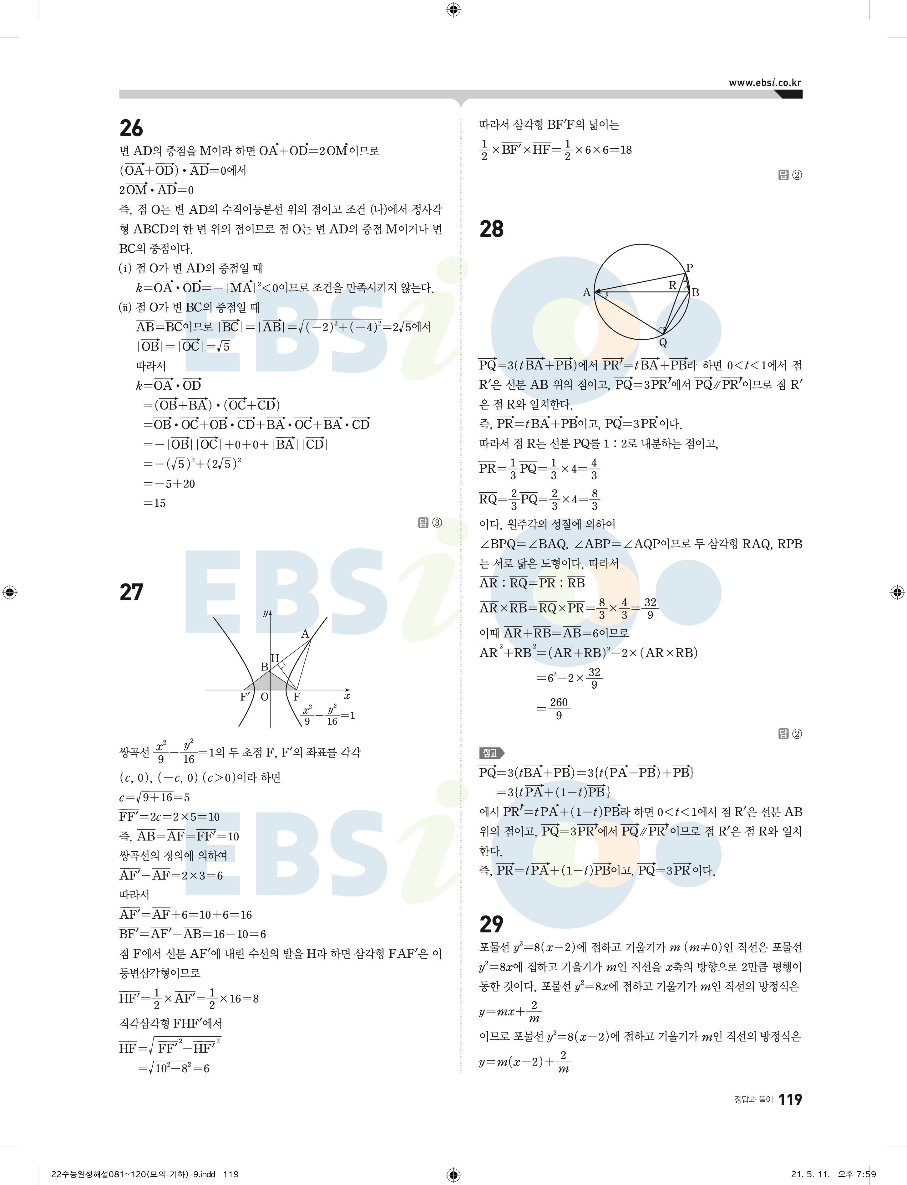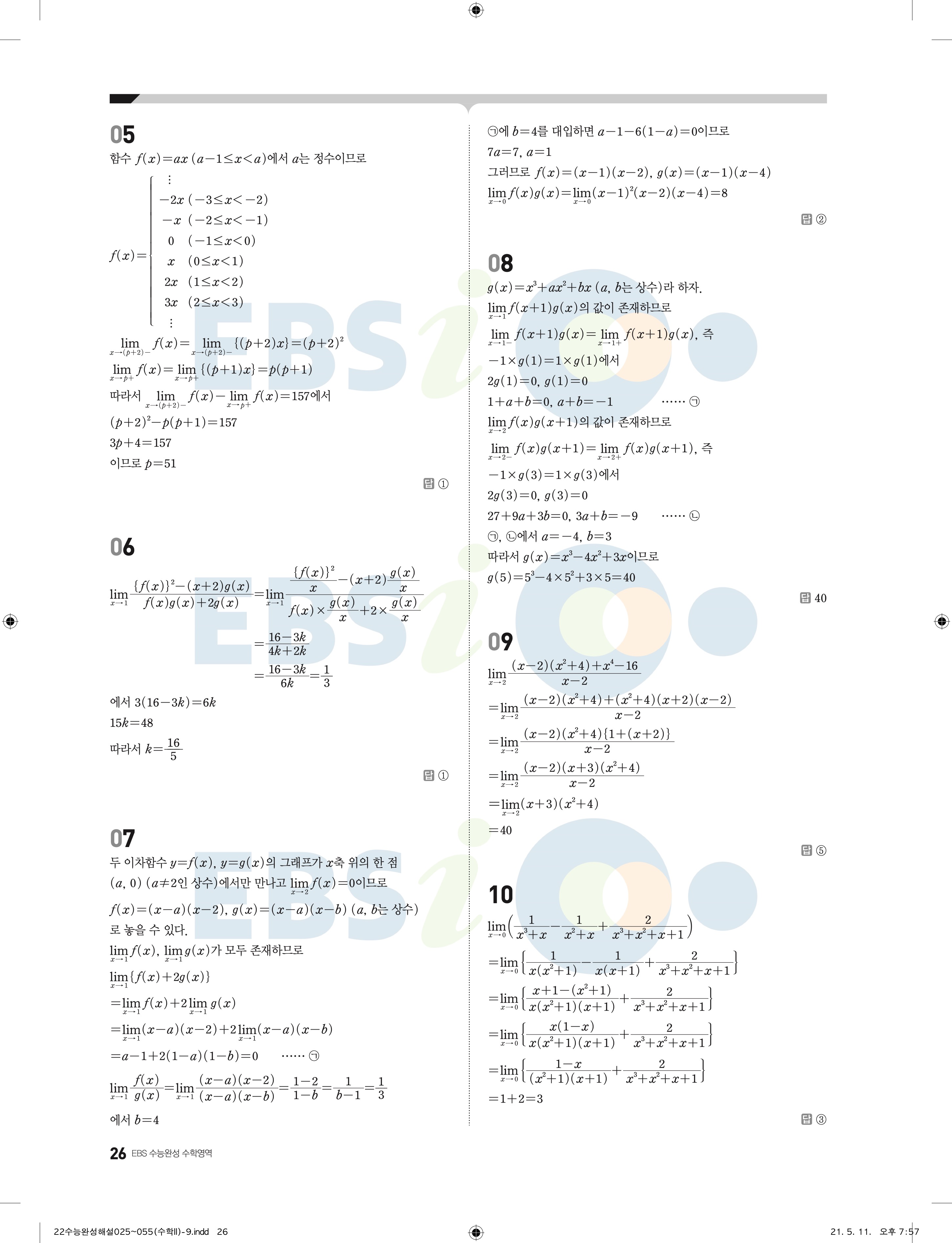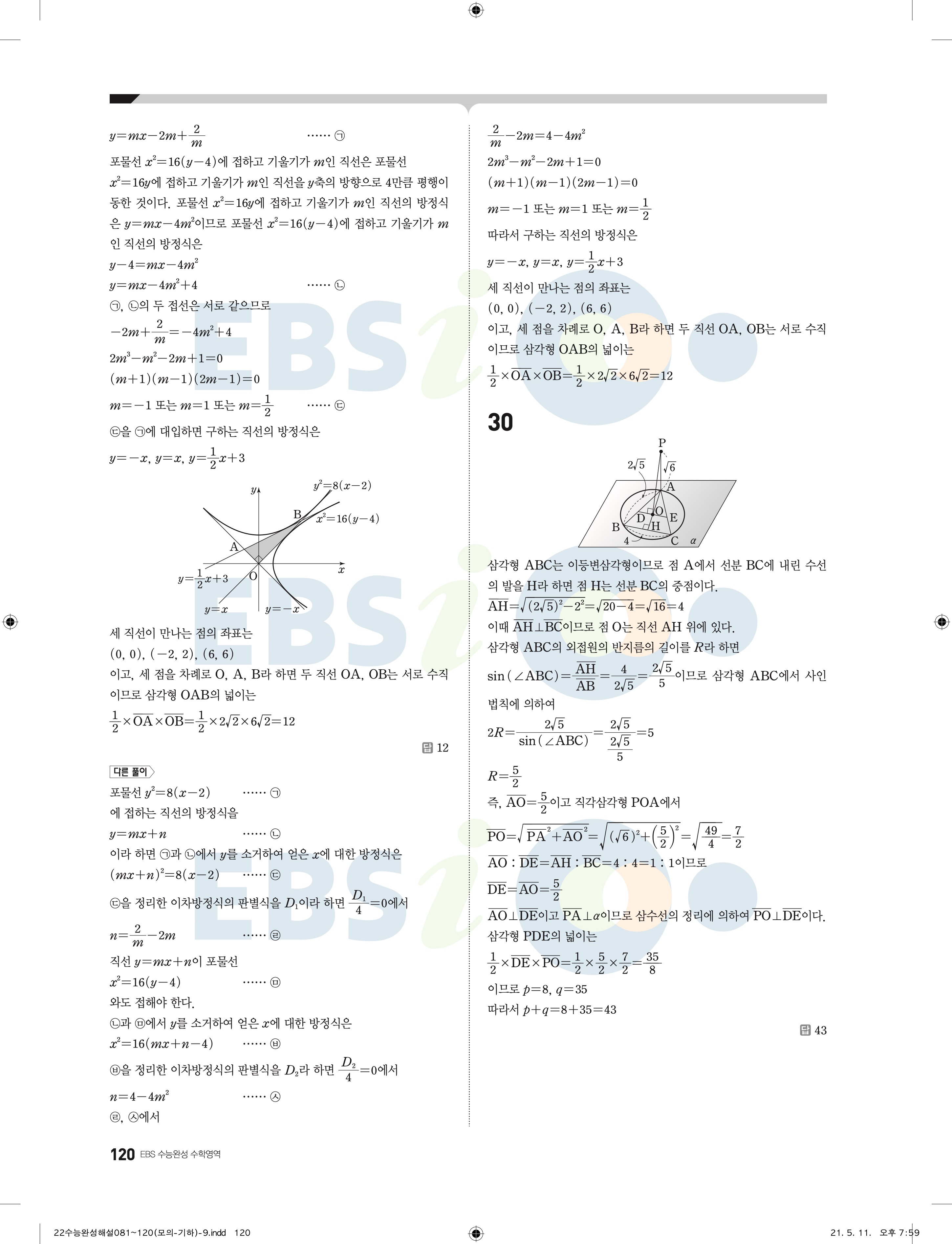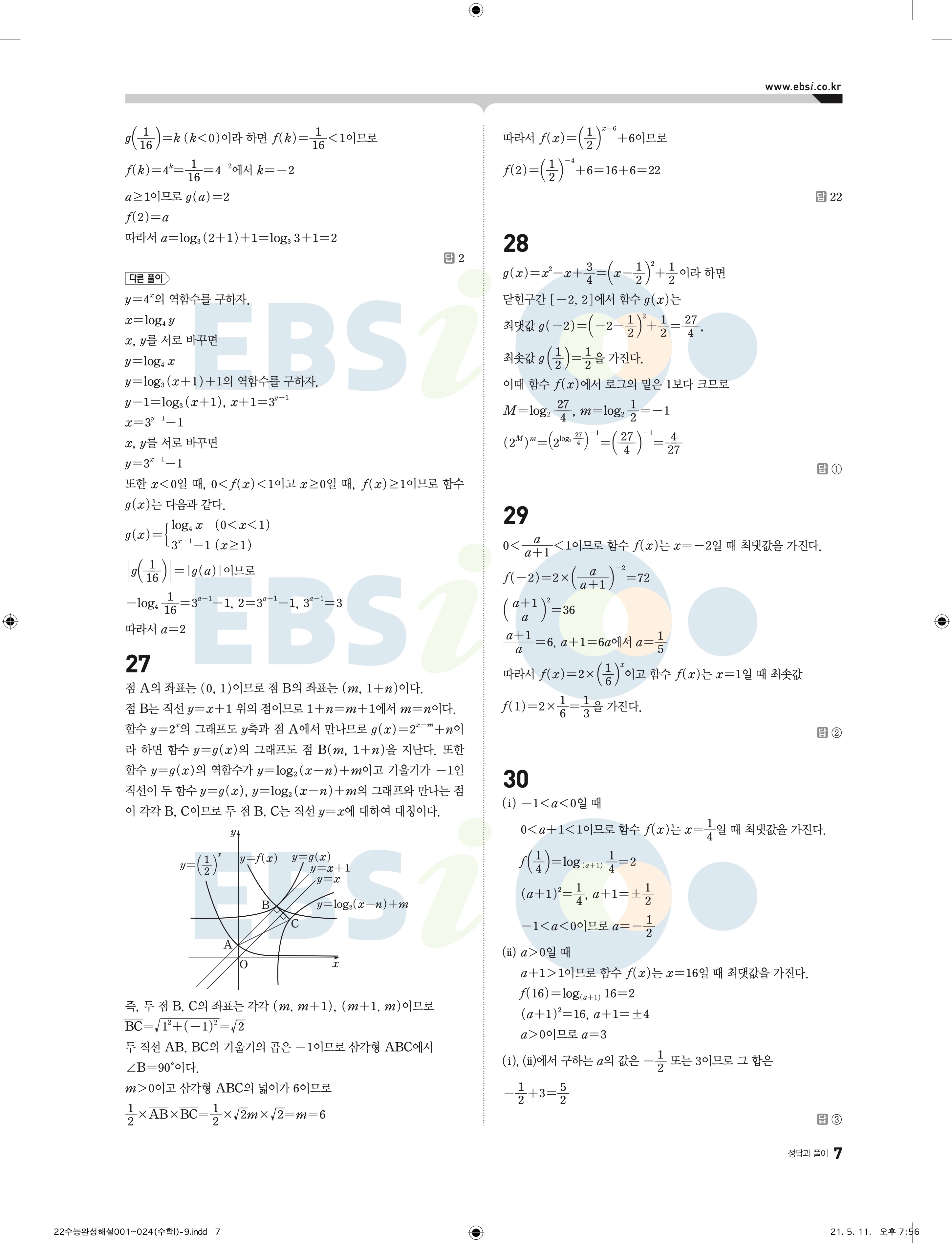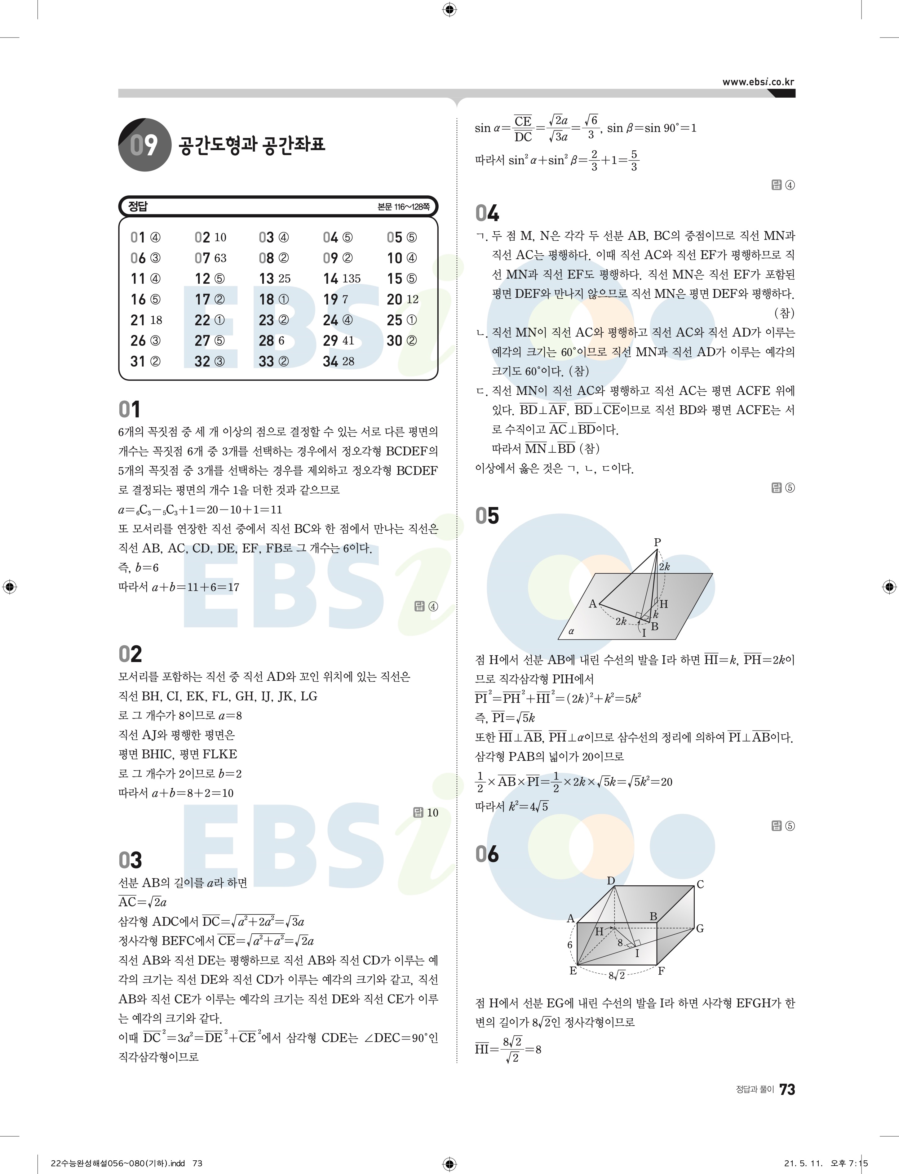 2022 EBS 수능완성 수학영역 수학1 수학2 기하 답지 해설 바로보는 사진답지 모바일최적화