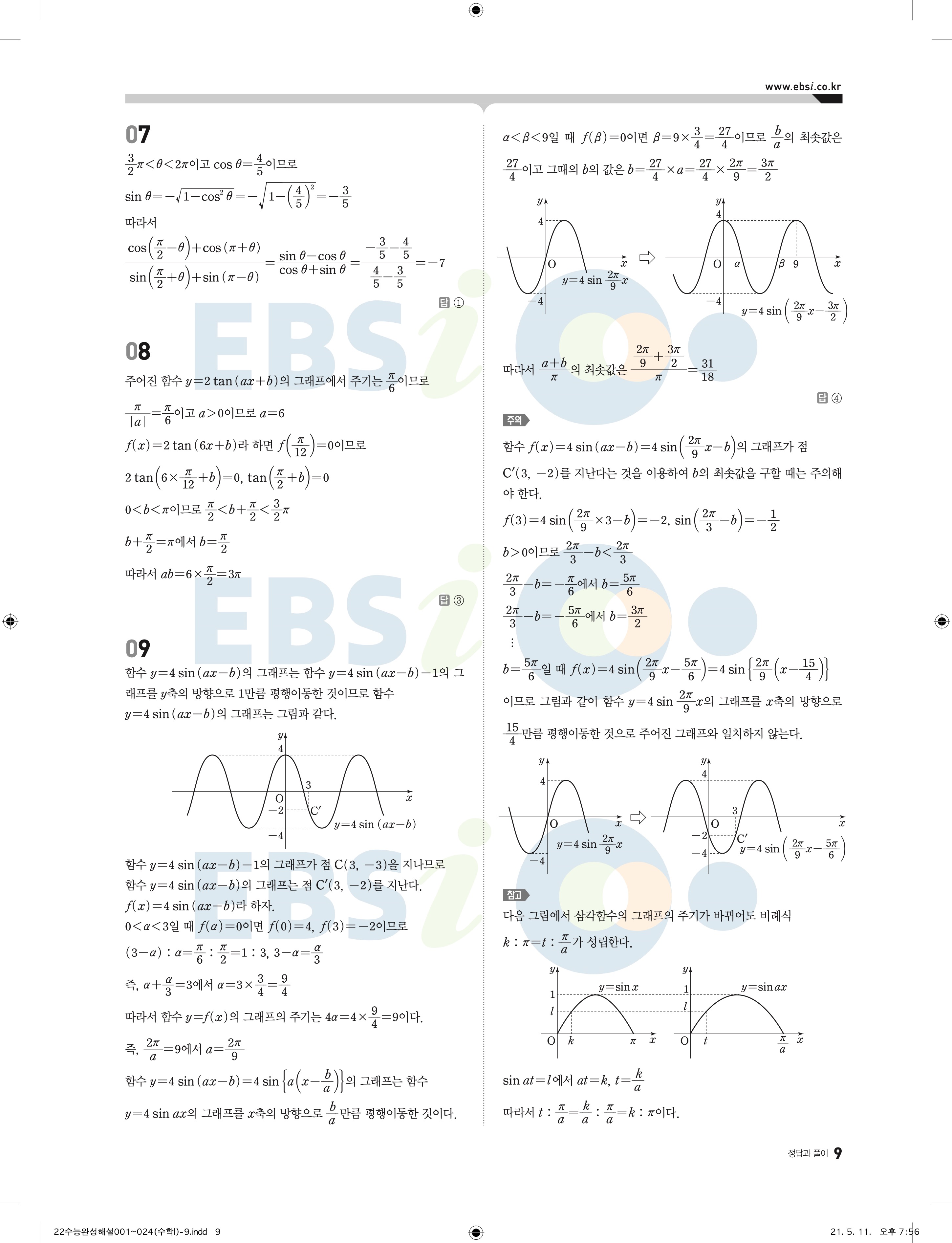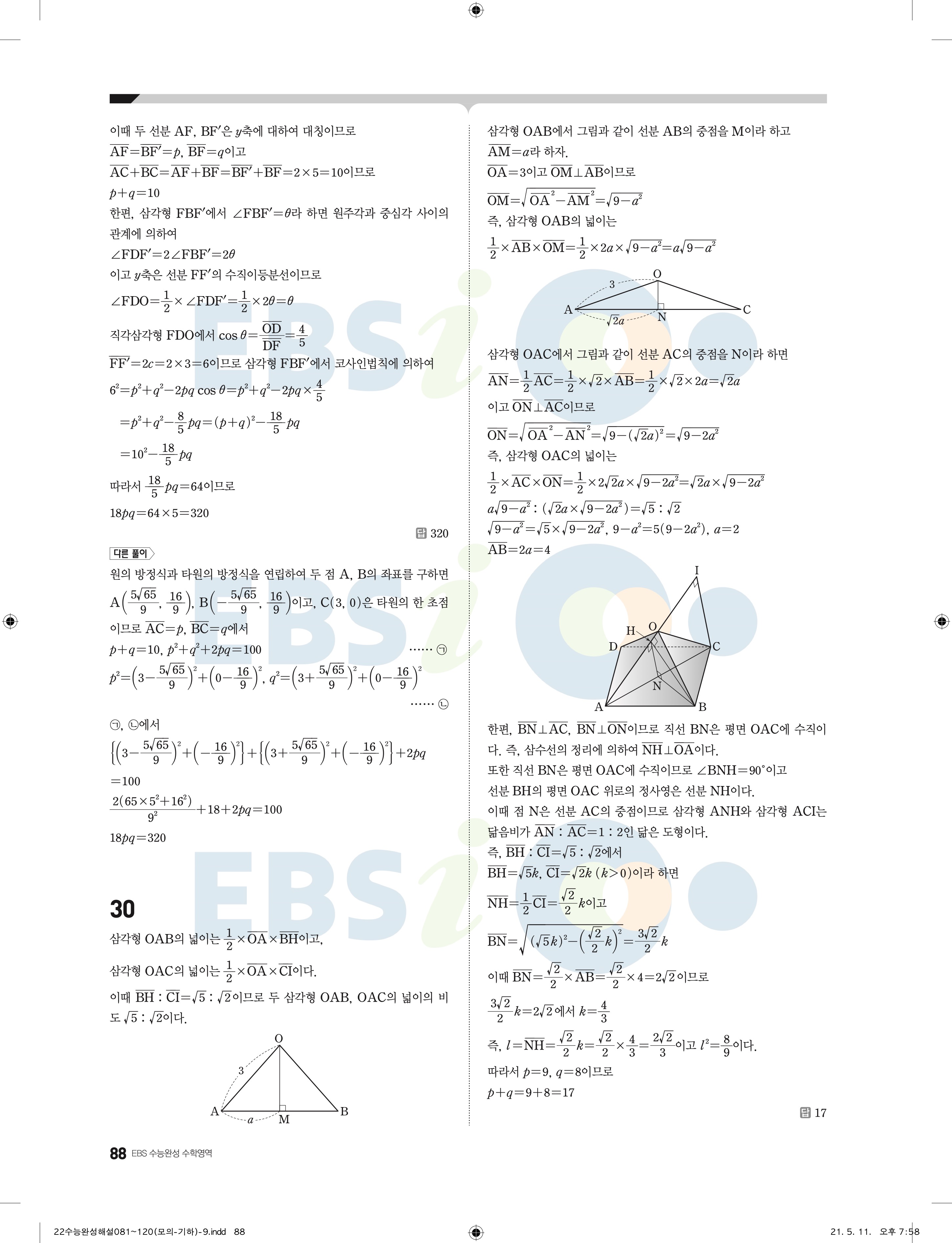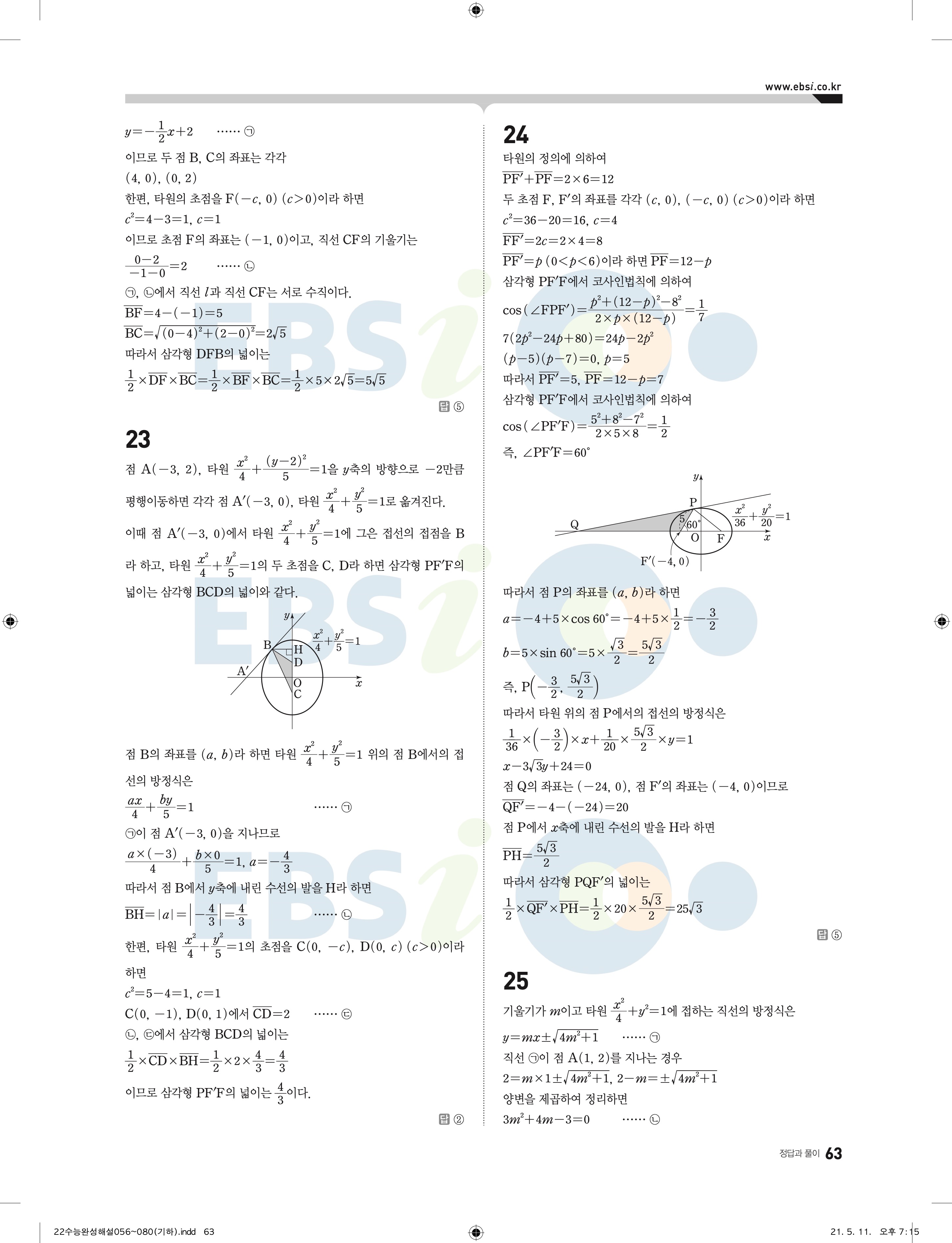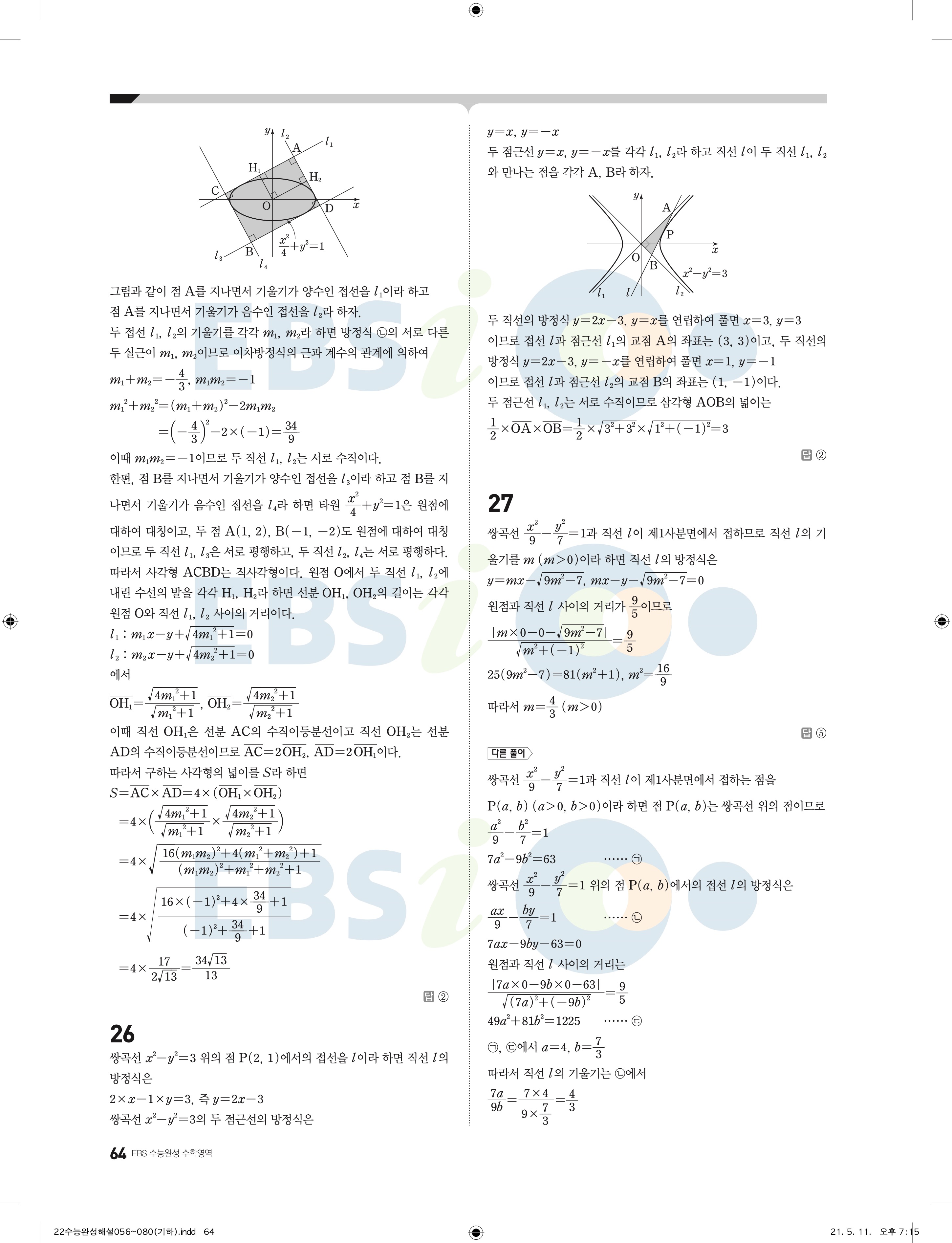 2022 EBS 수능완성 수학영역 수학1 수학2 기하 답지 해설 바로보는 사진답지 모바일최적화