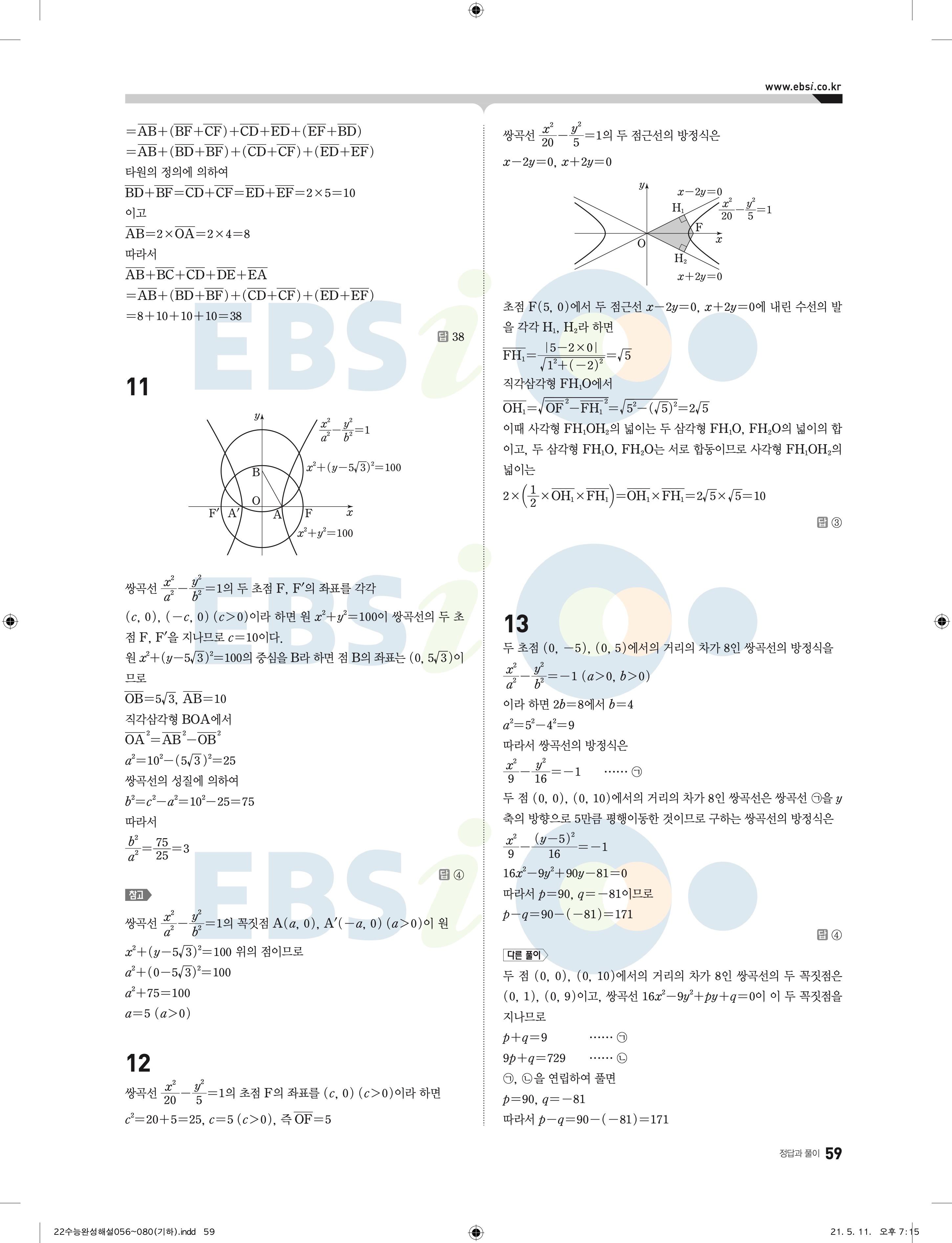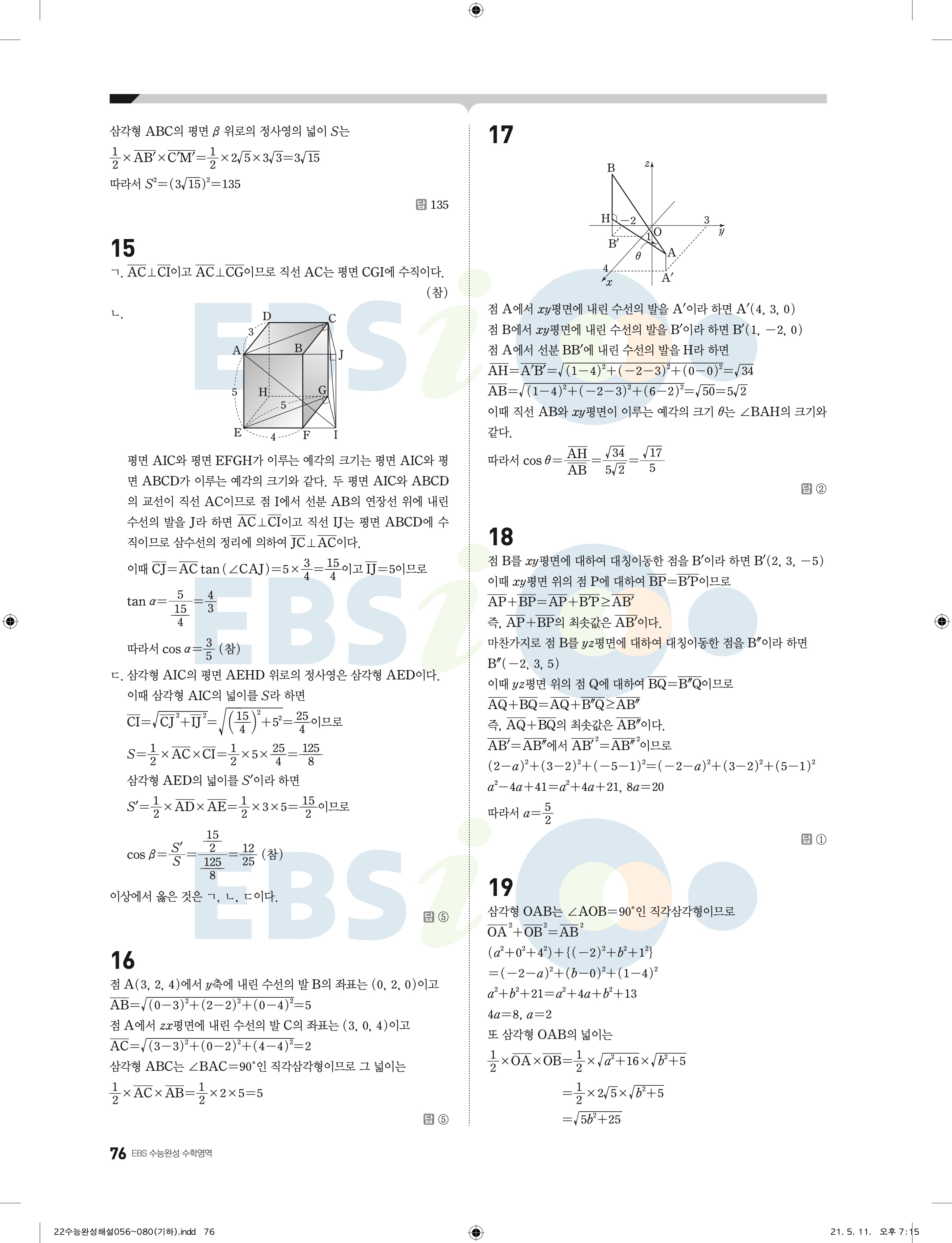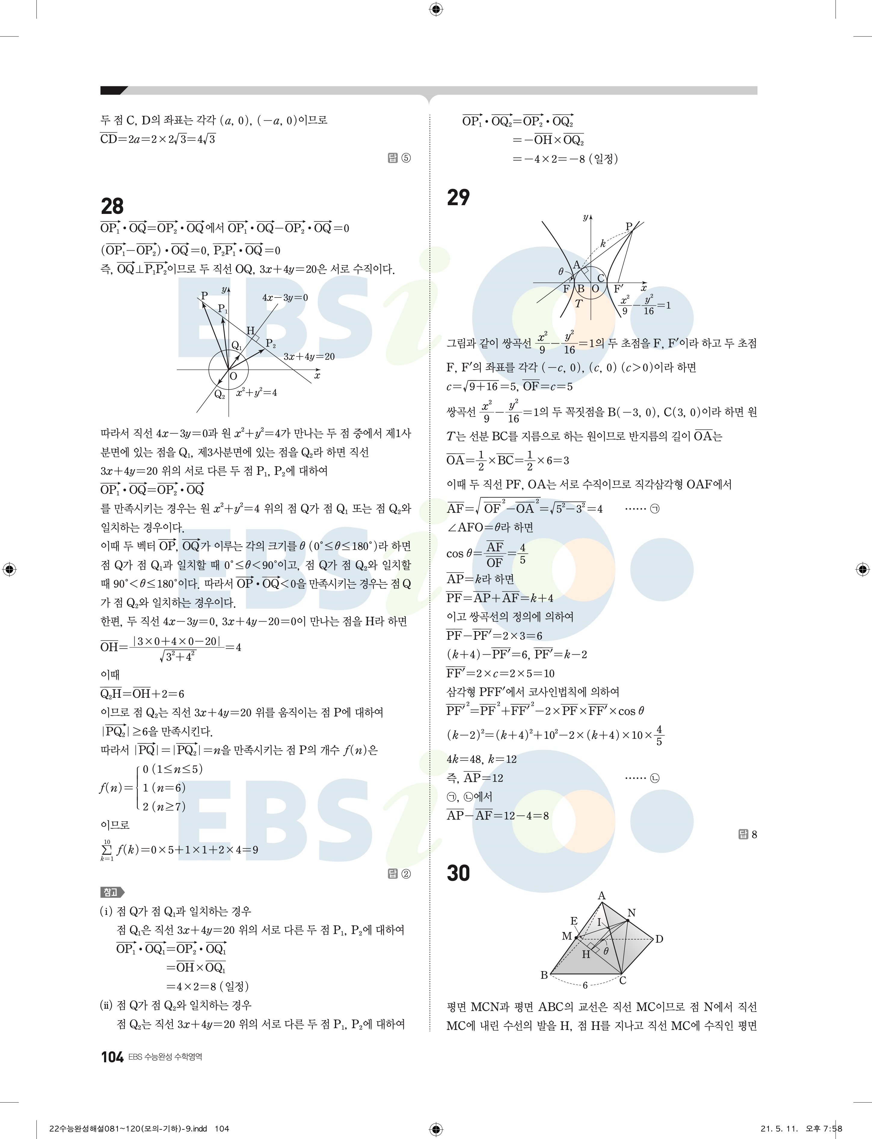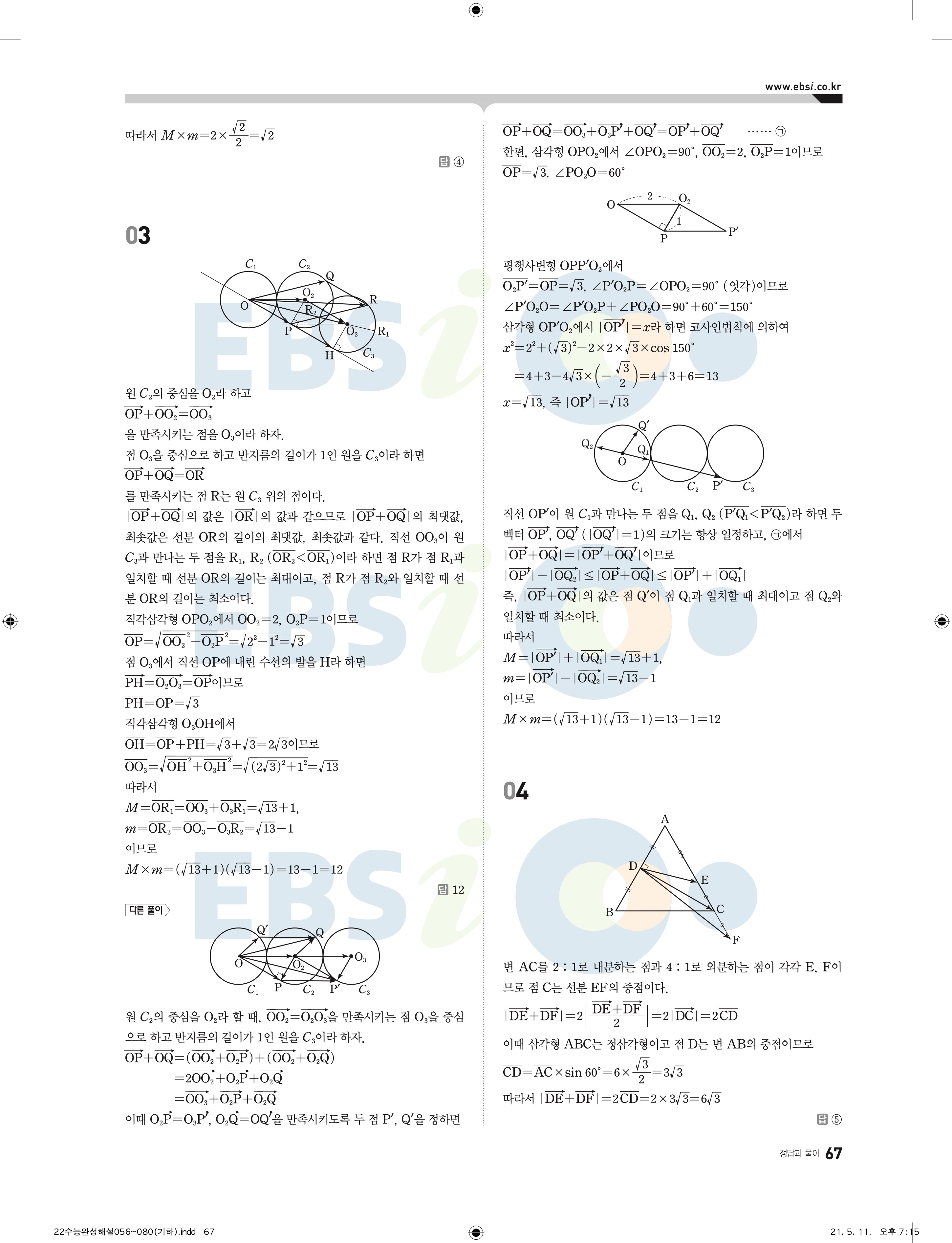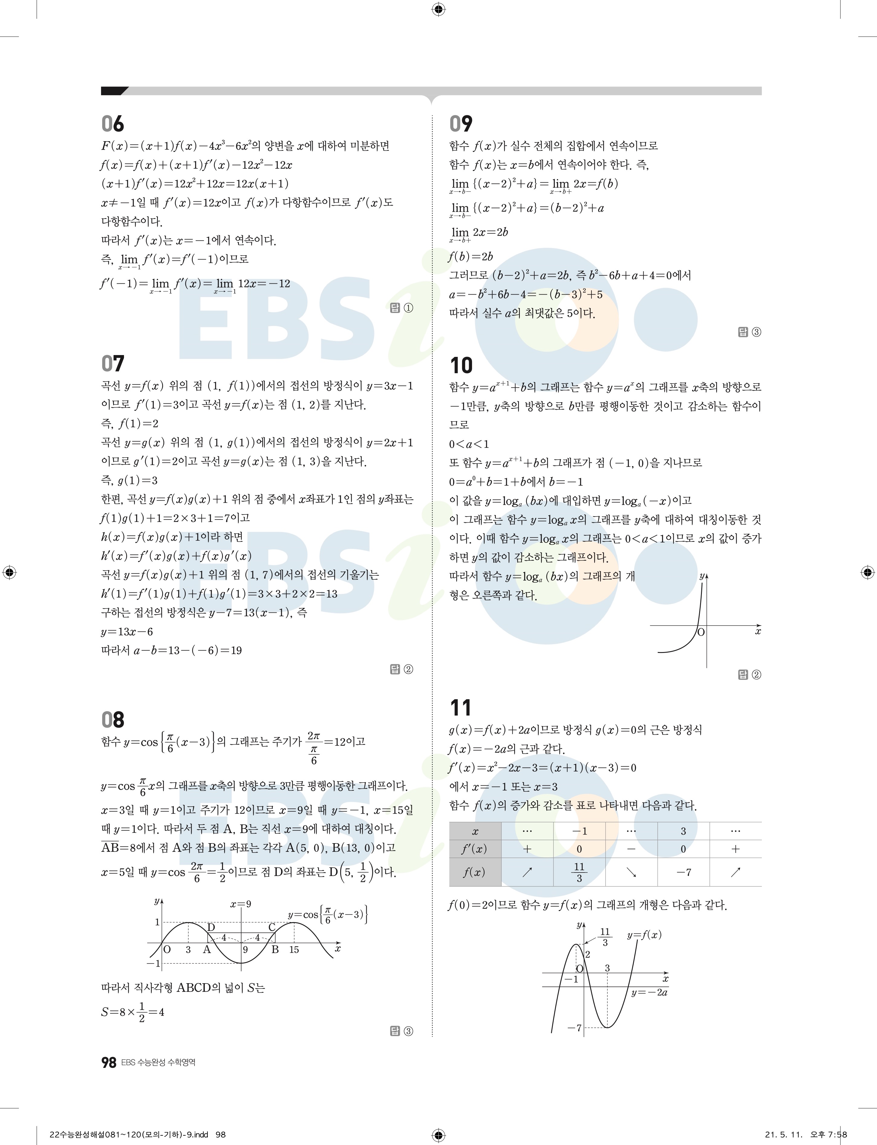 2022 EBS 수능완성 수학영역 수학1 수학2 기하 답지 해설 바로보는 사진답지 모바일최적화