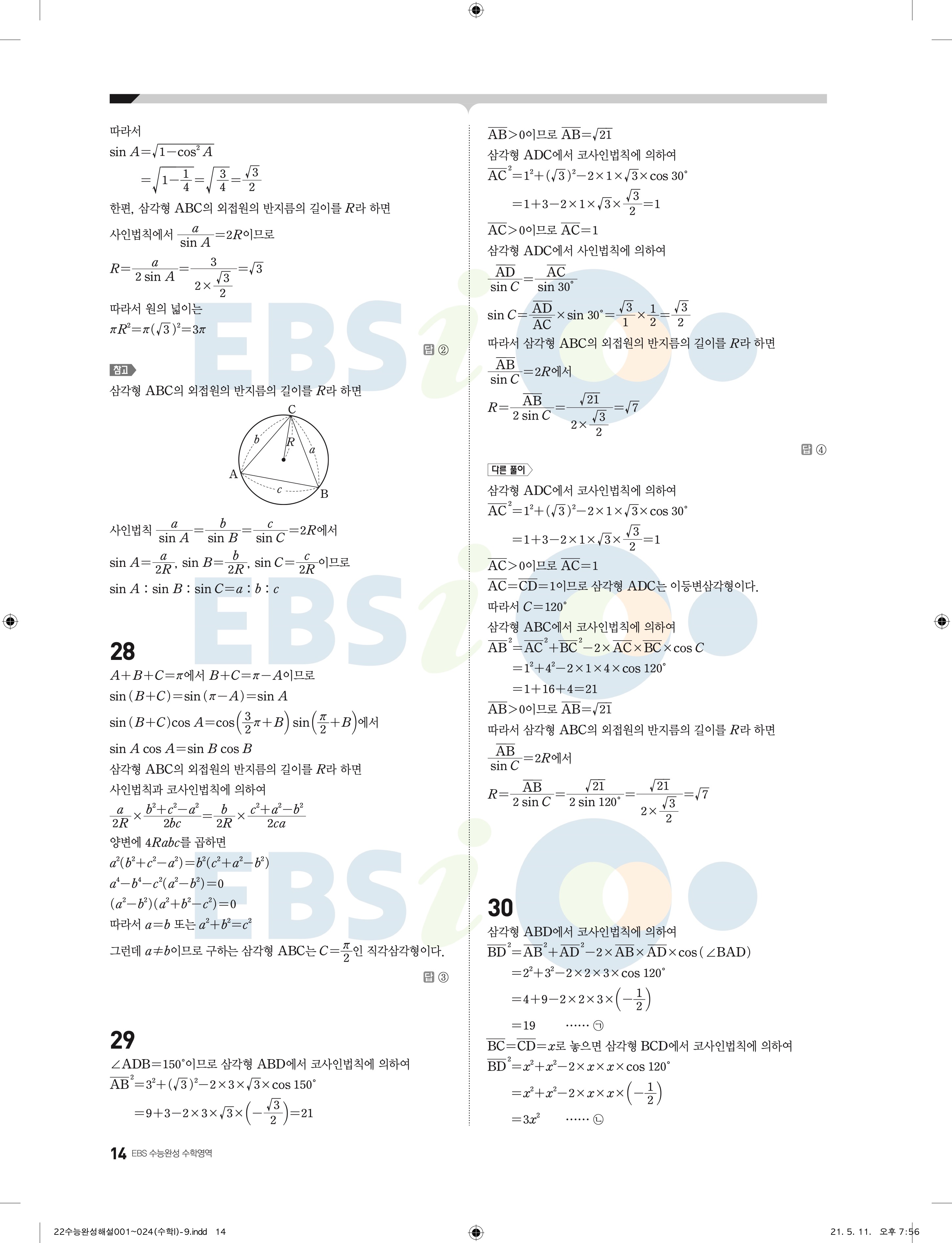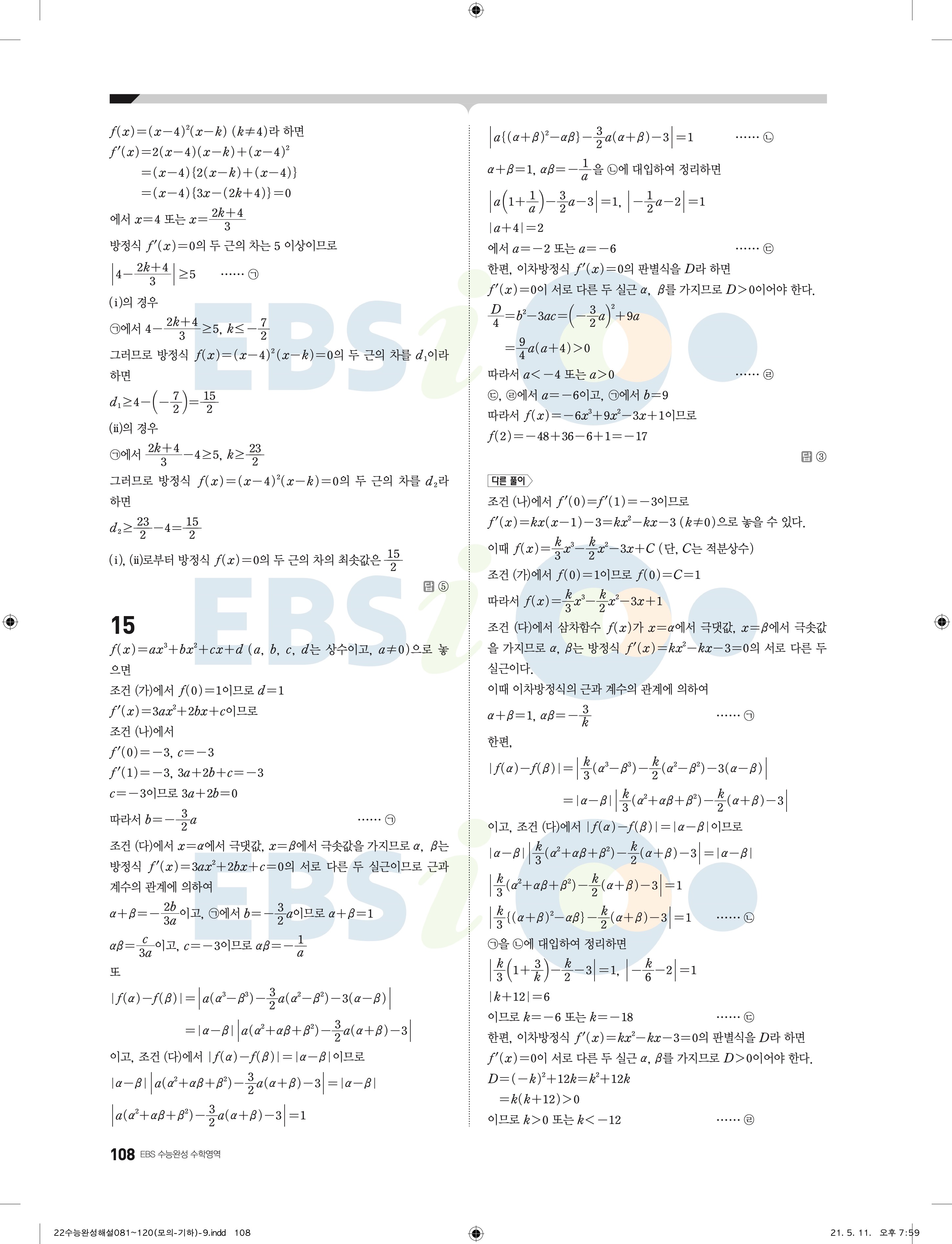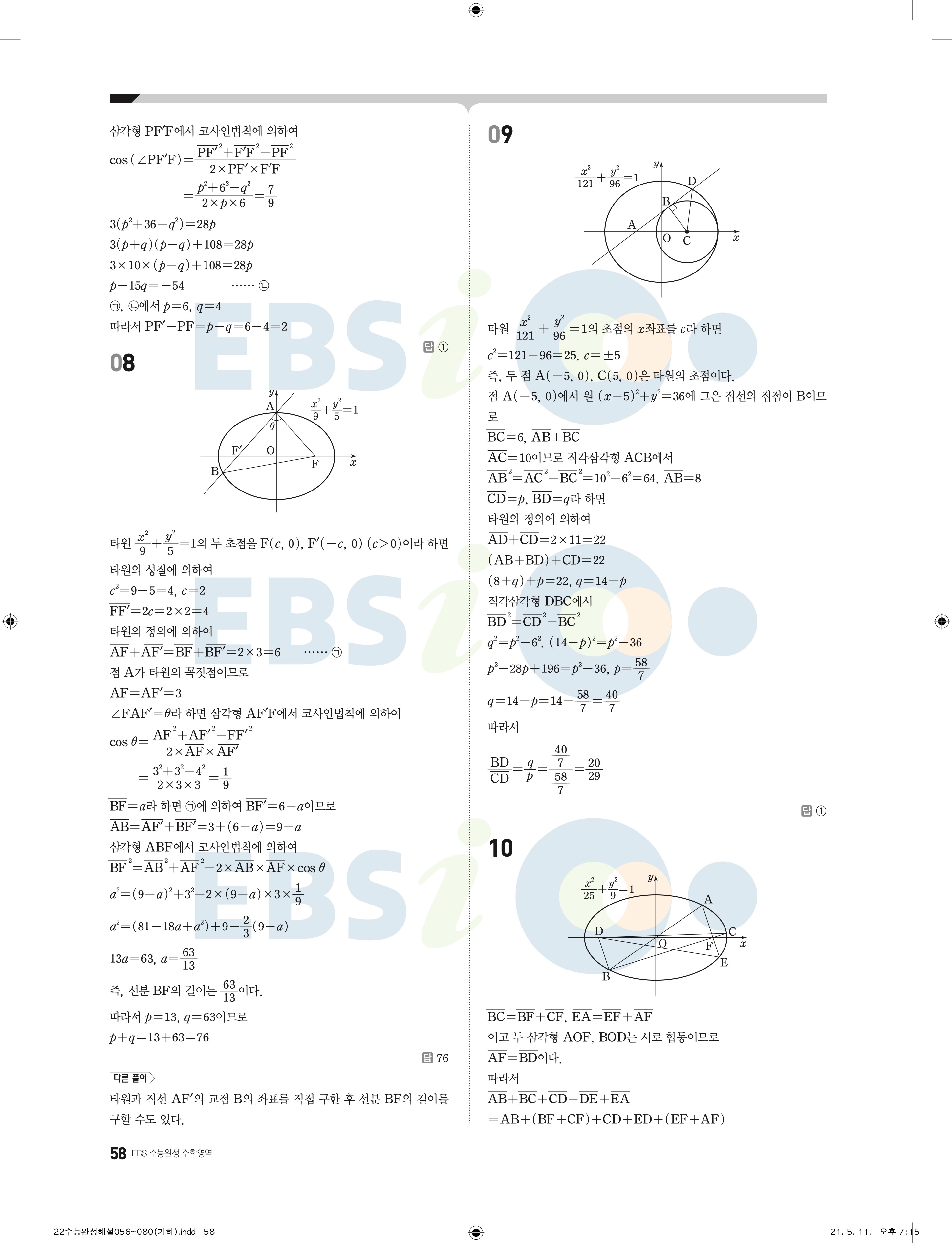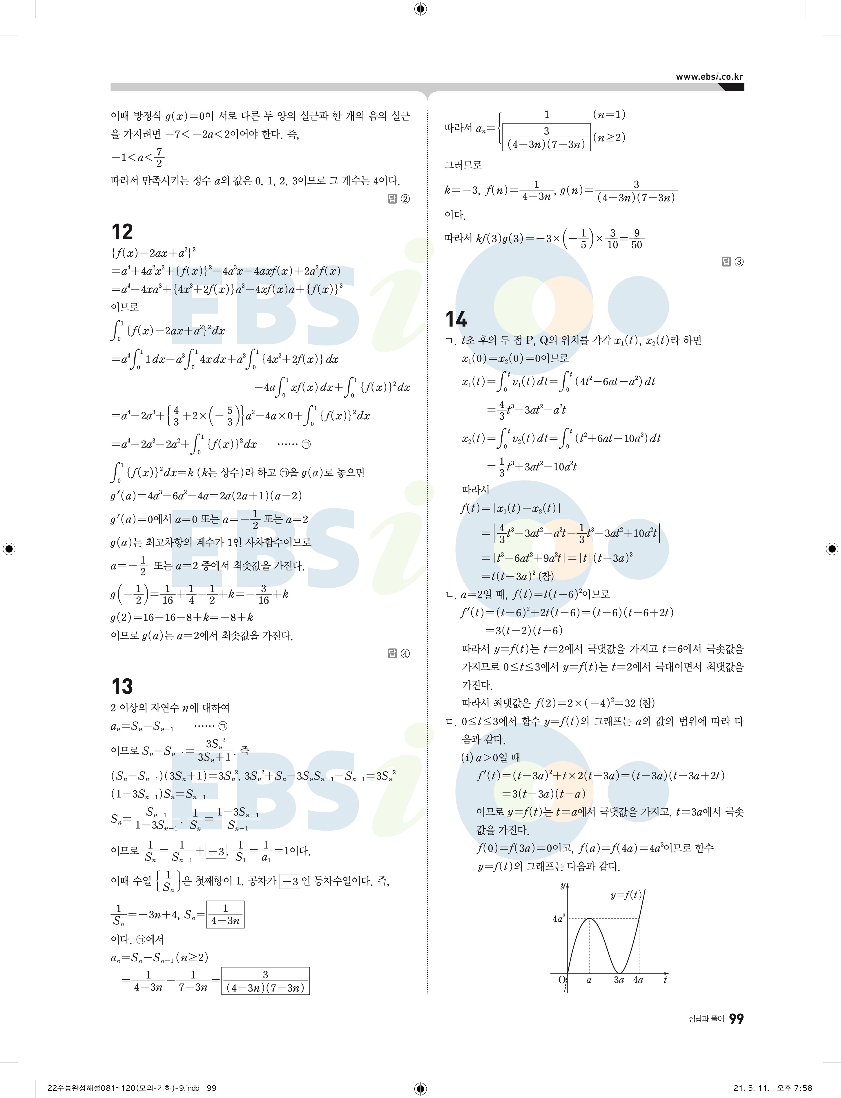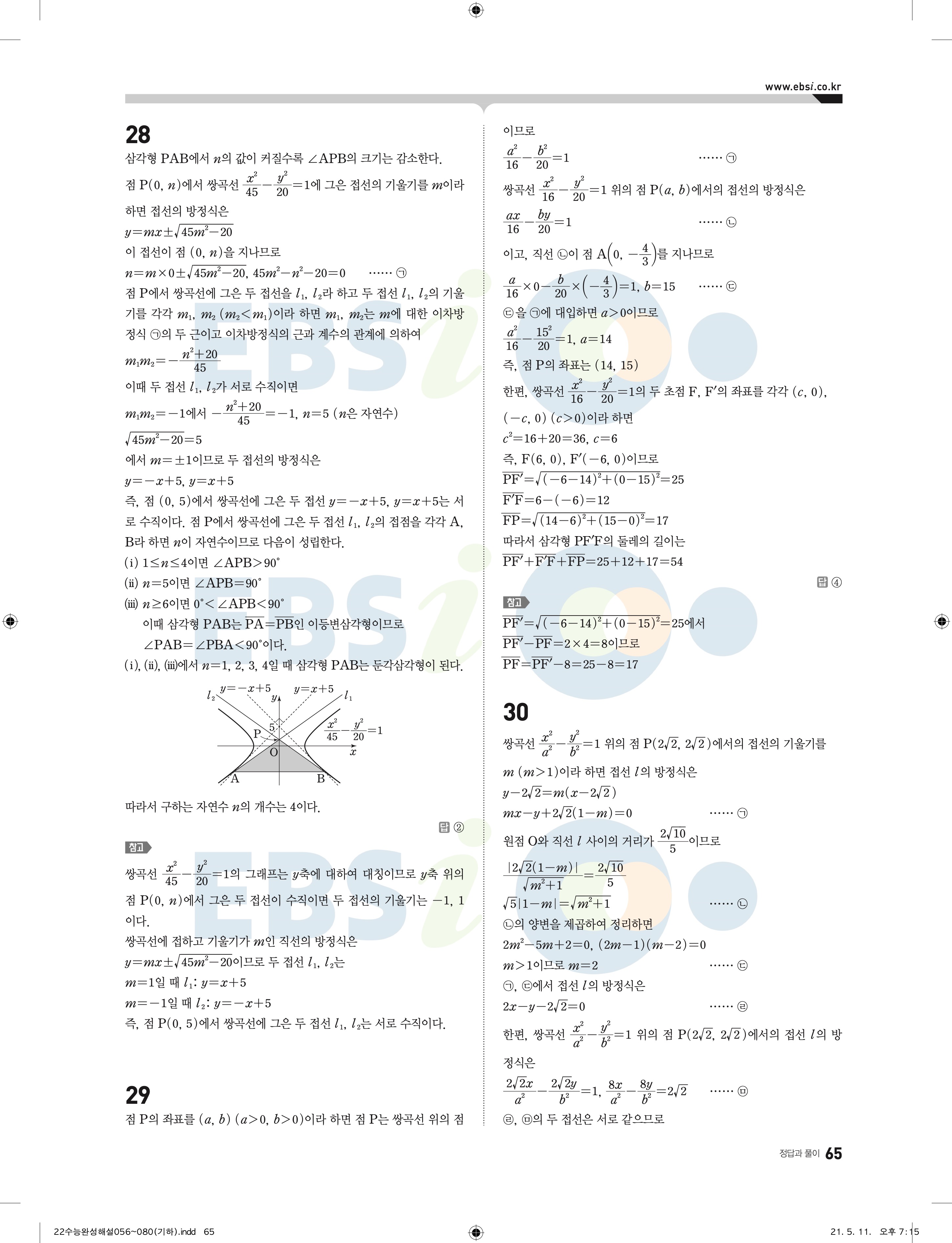 2022 EBS 수능완성 수학영역 수학1 수학2 기하 답지 해설 바로보는 사진답지 모바일최적화