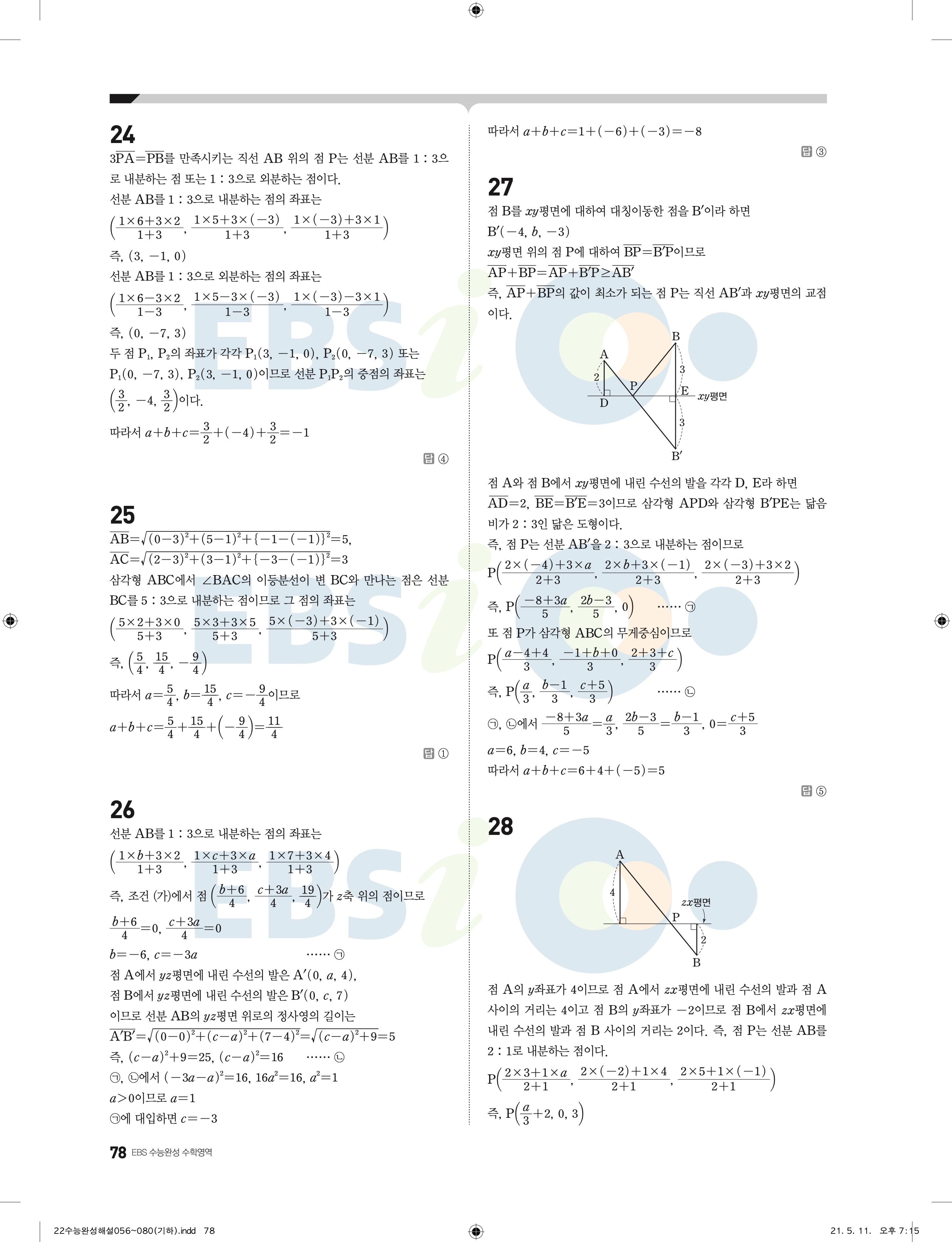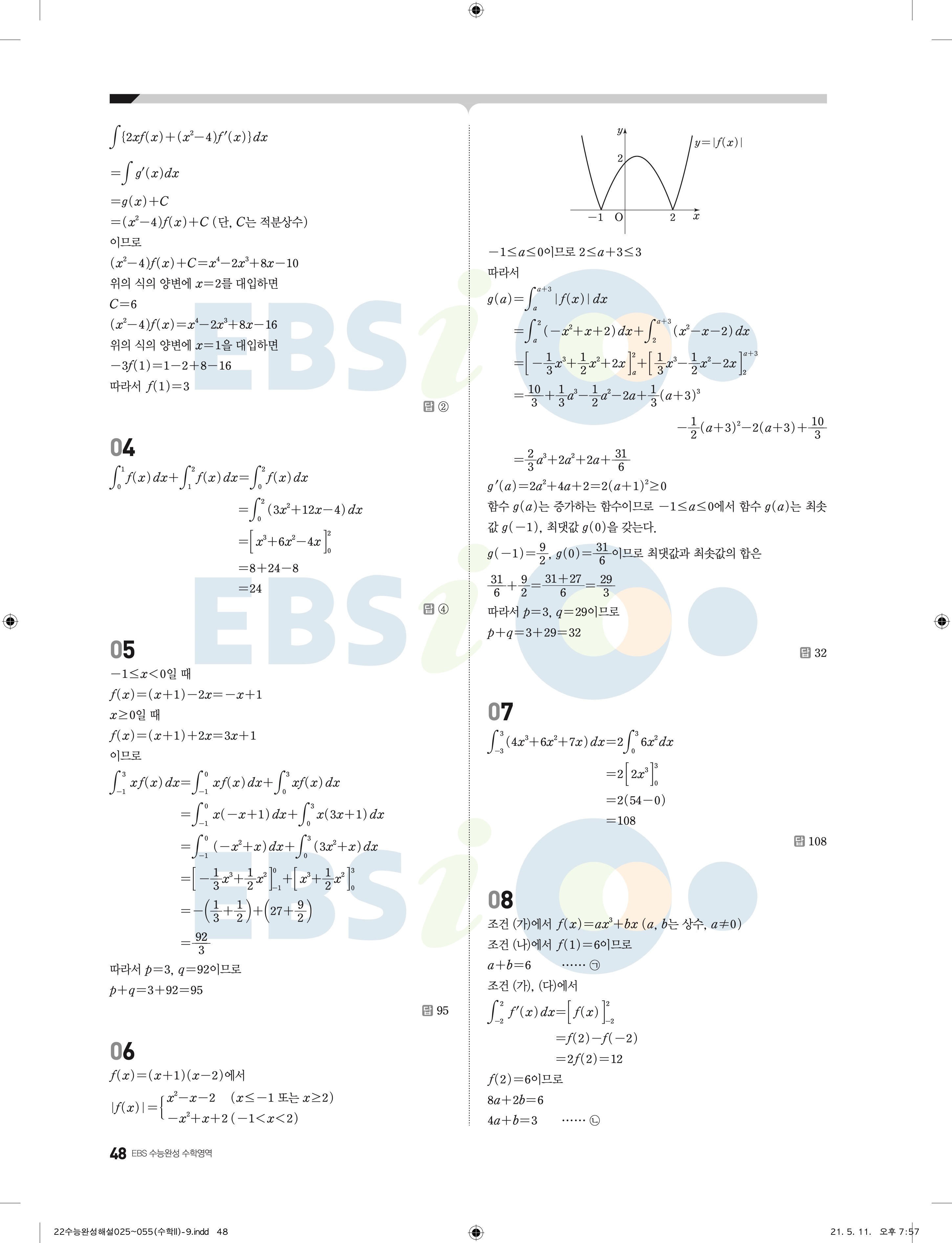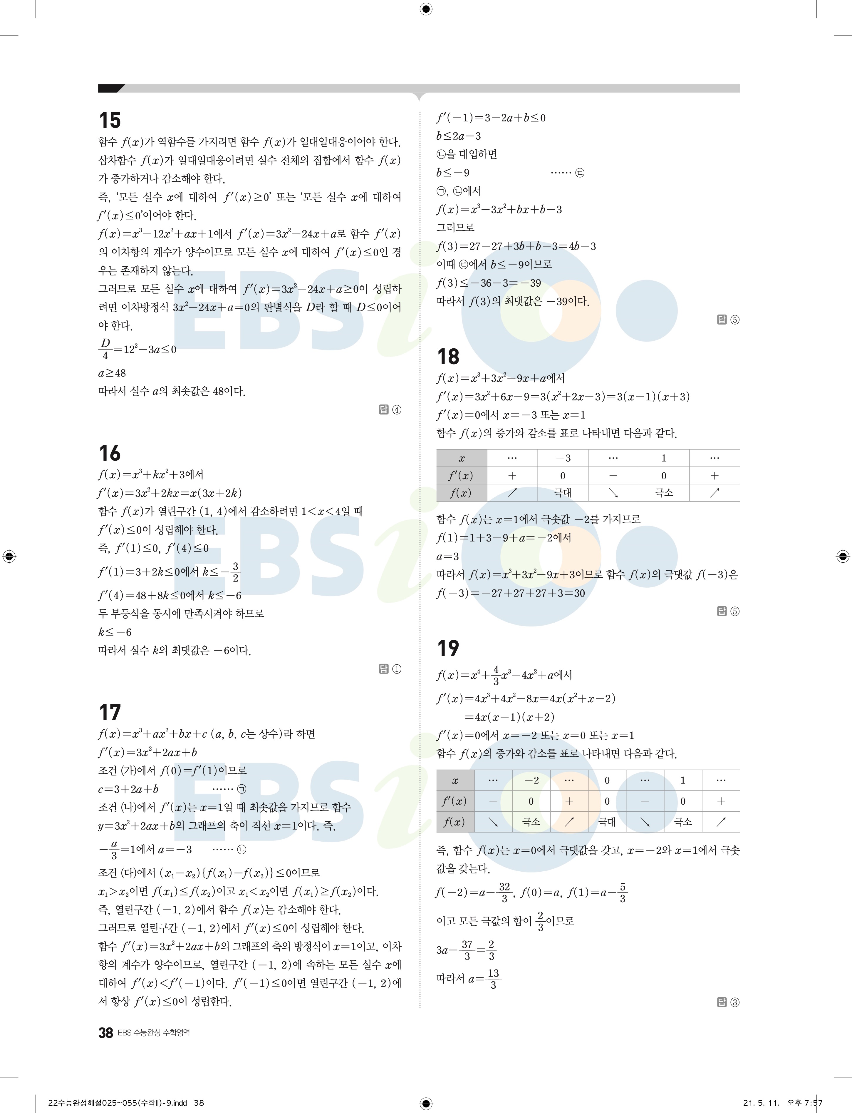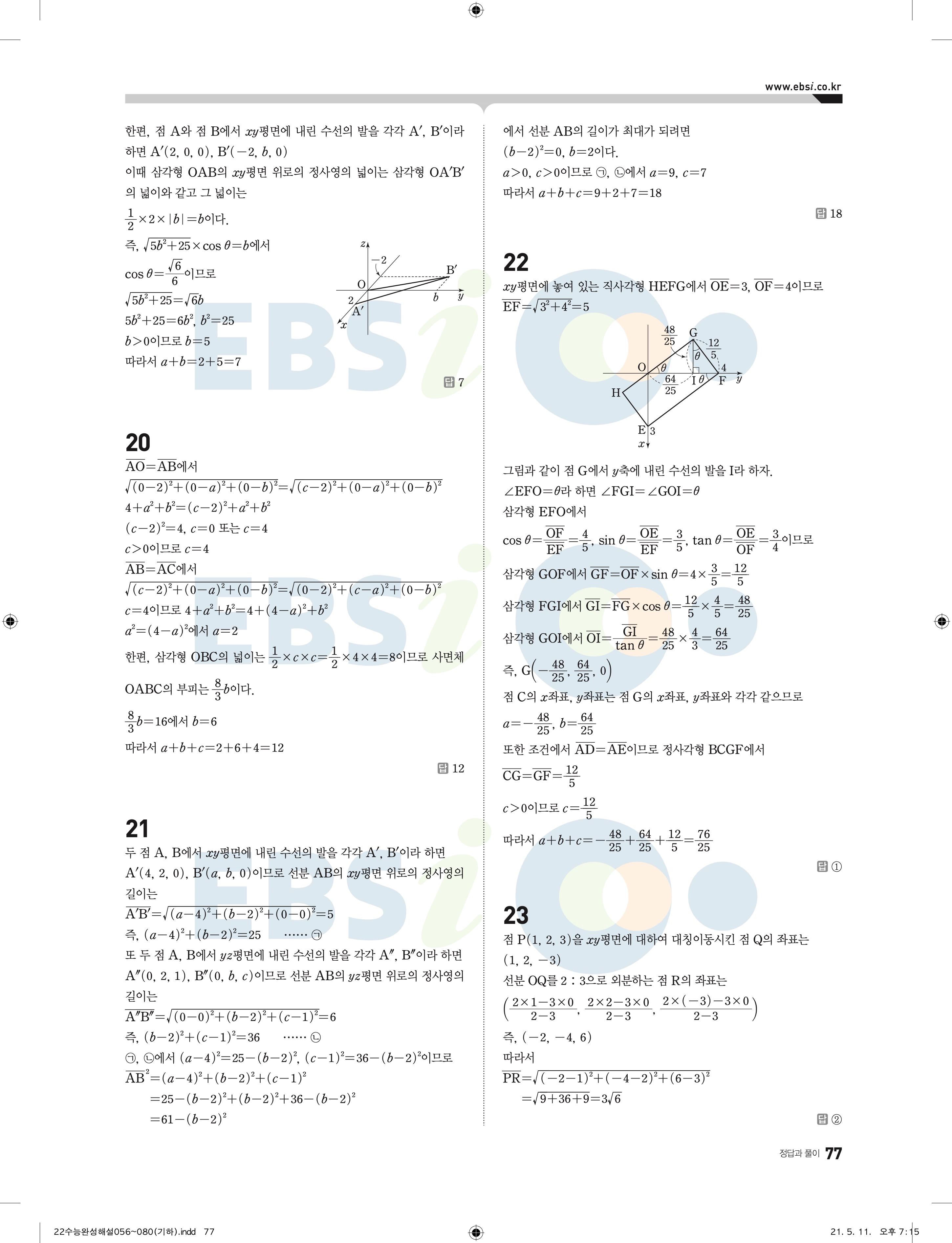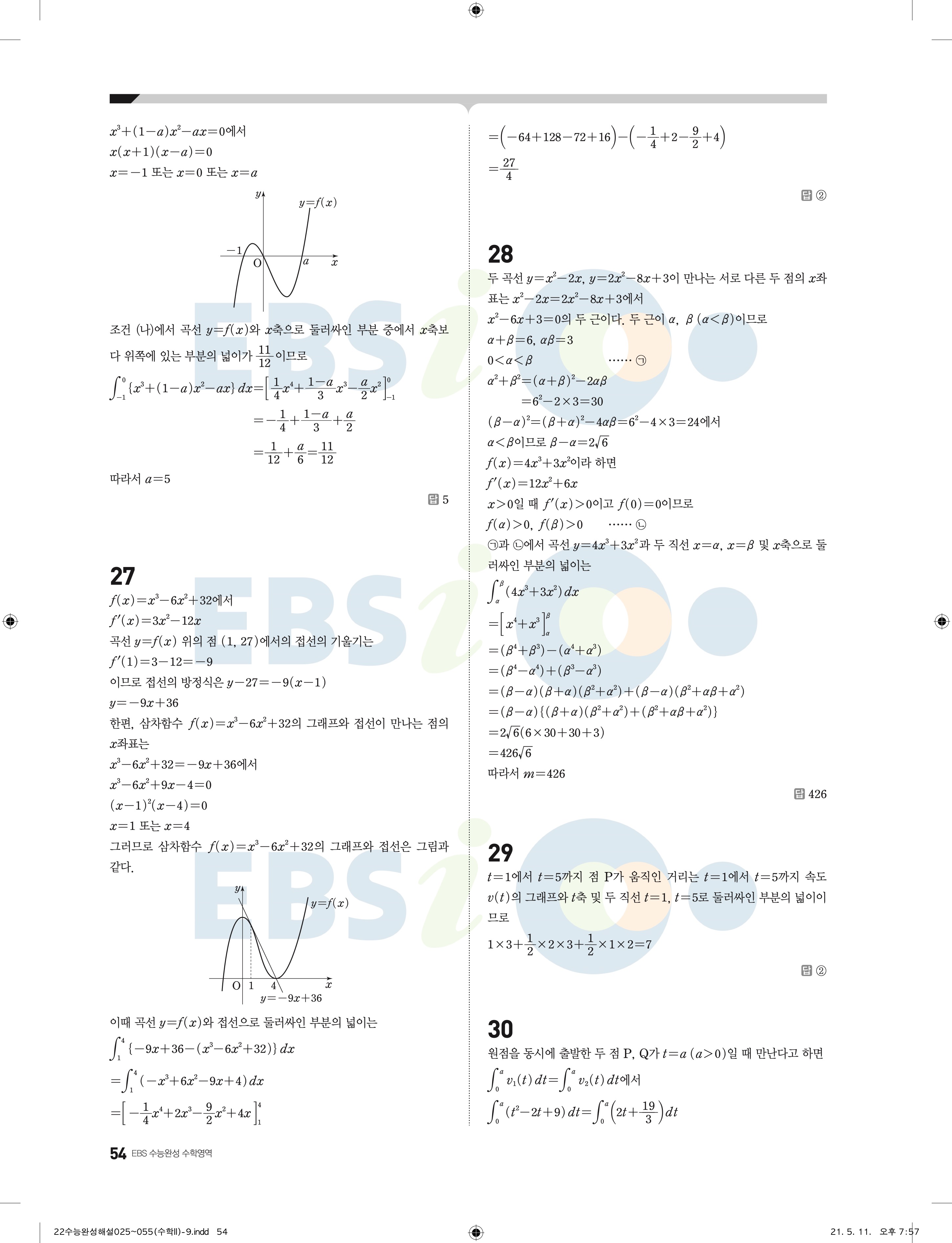 2022 EBS 수능완성 수학영역 수학1 수학2 기하 답지 해설 바로보는 사진답지 모바일최적화
