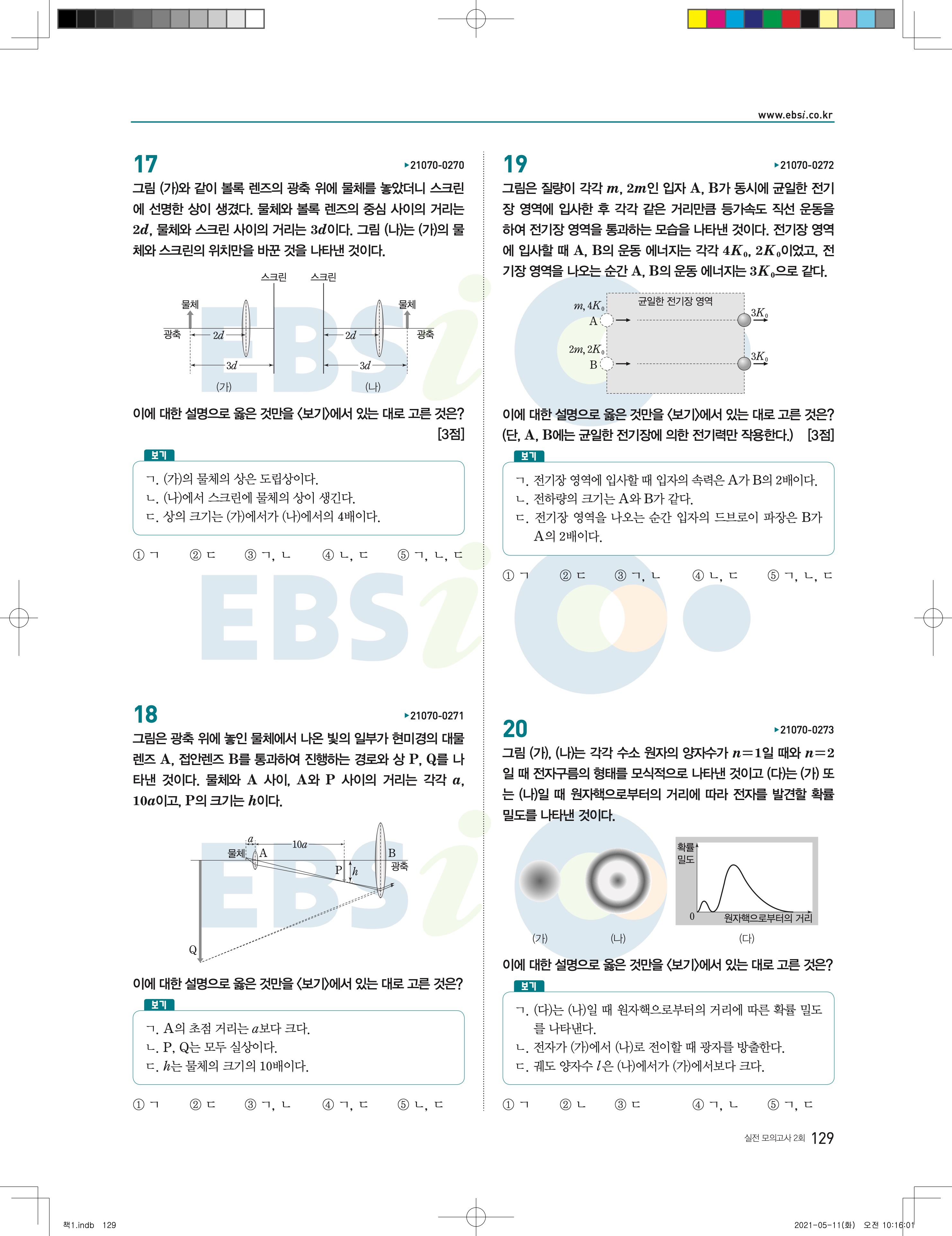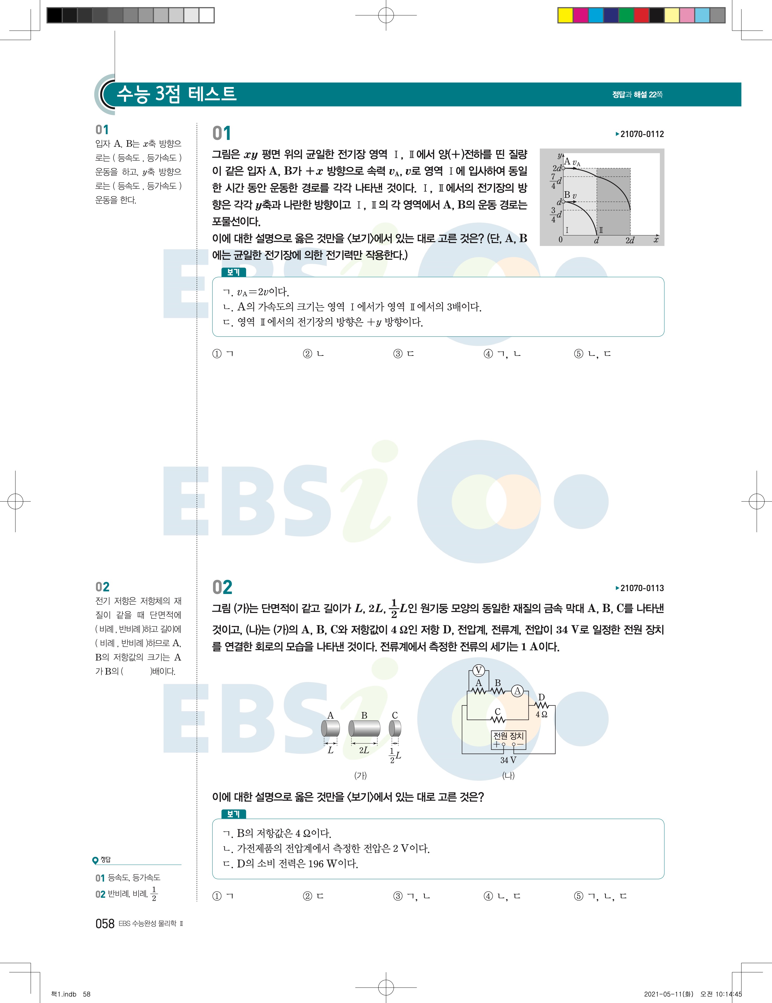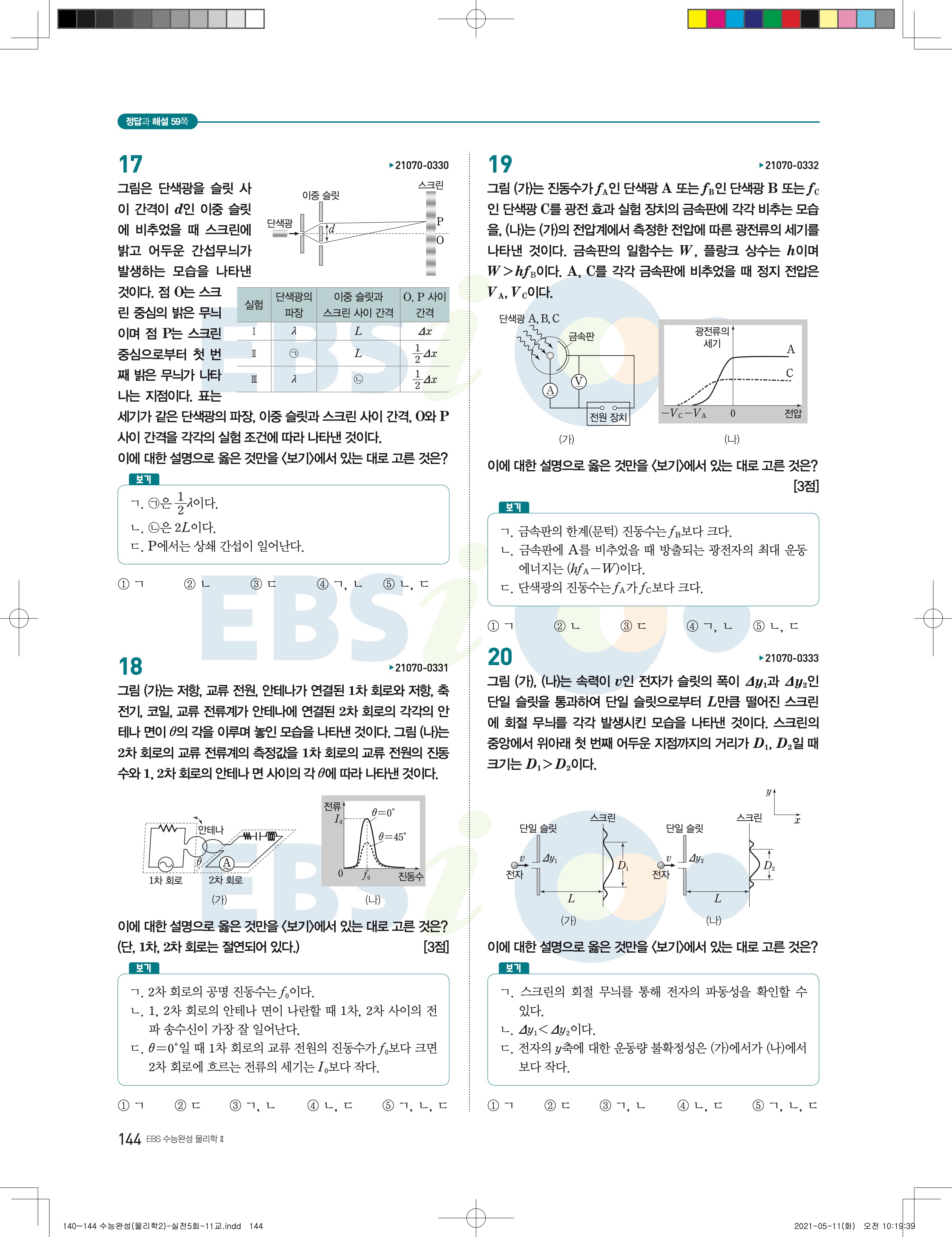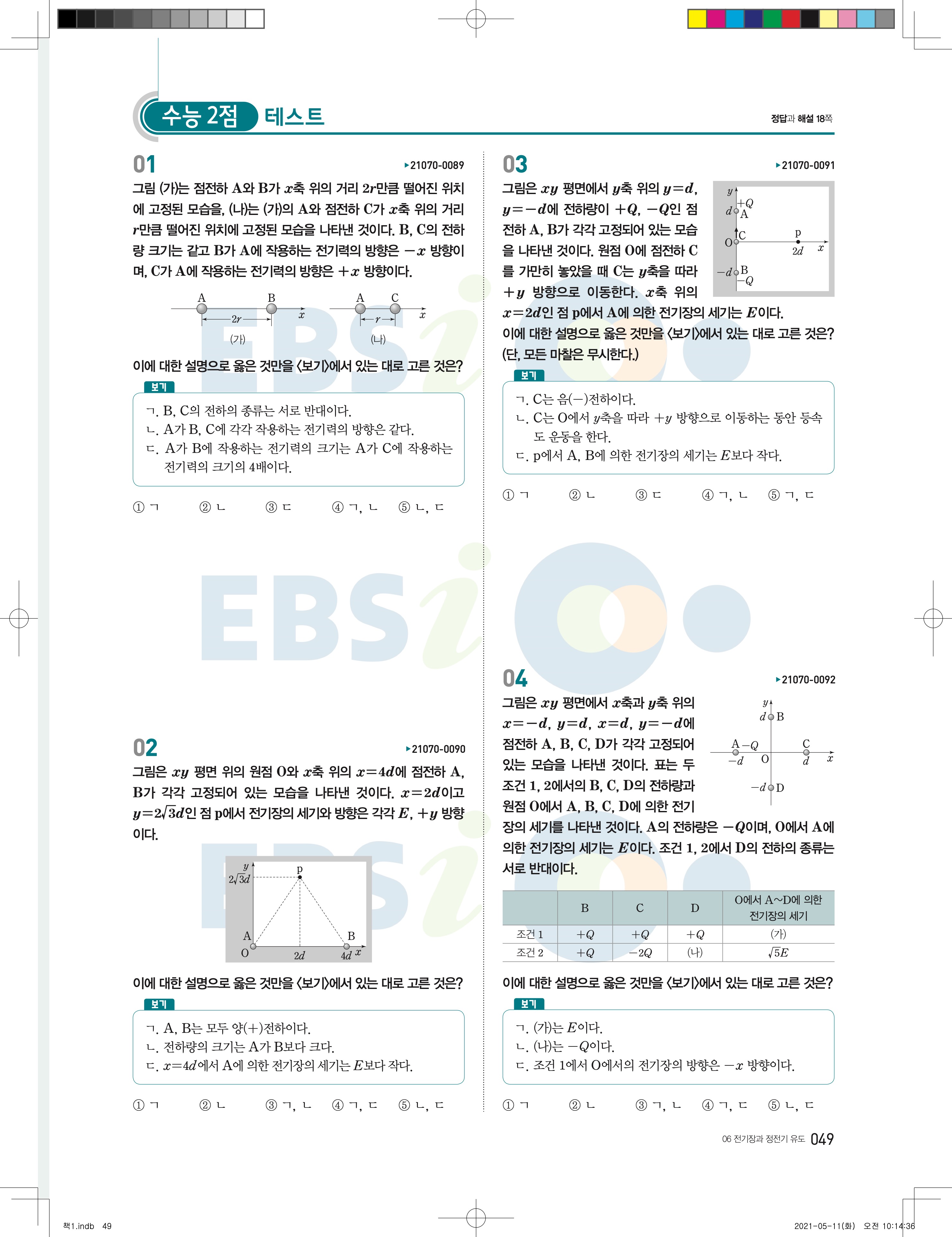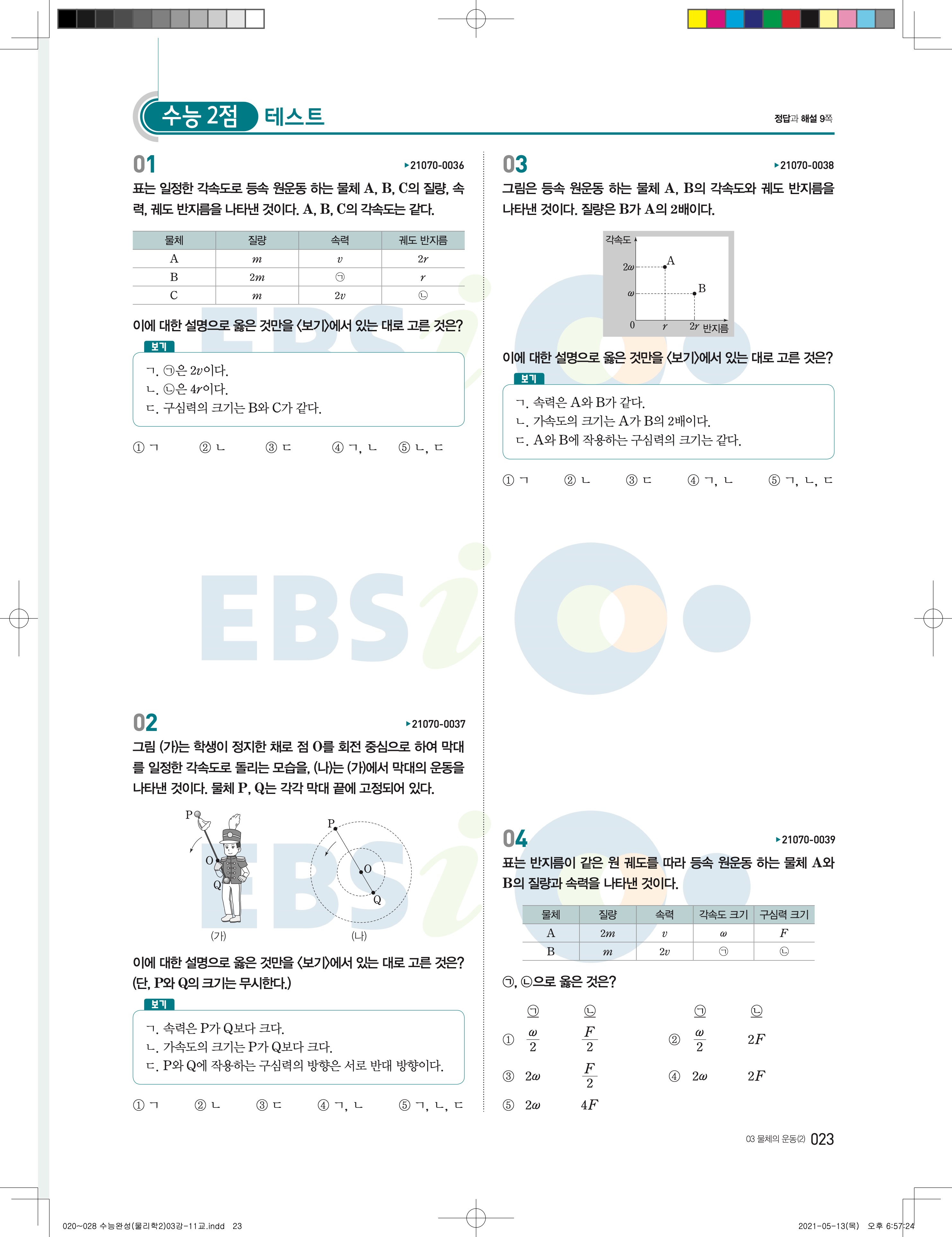 2022 EBS 수능완성 과학탐구영역 물리학2 답지 해설 바로보는 사진답지 모바일최적화