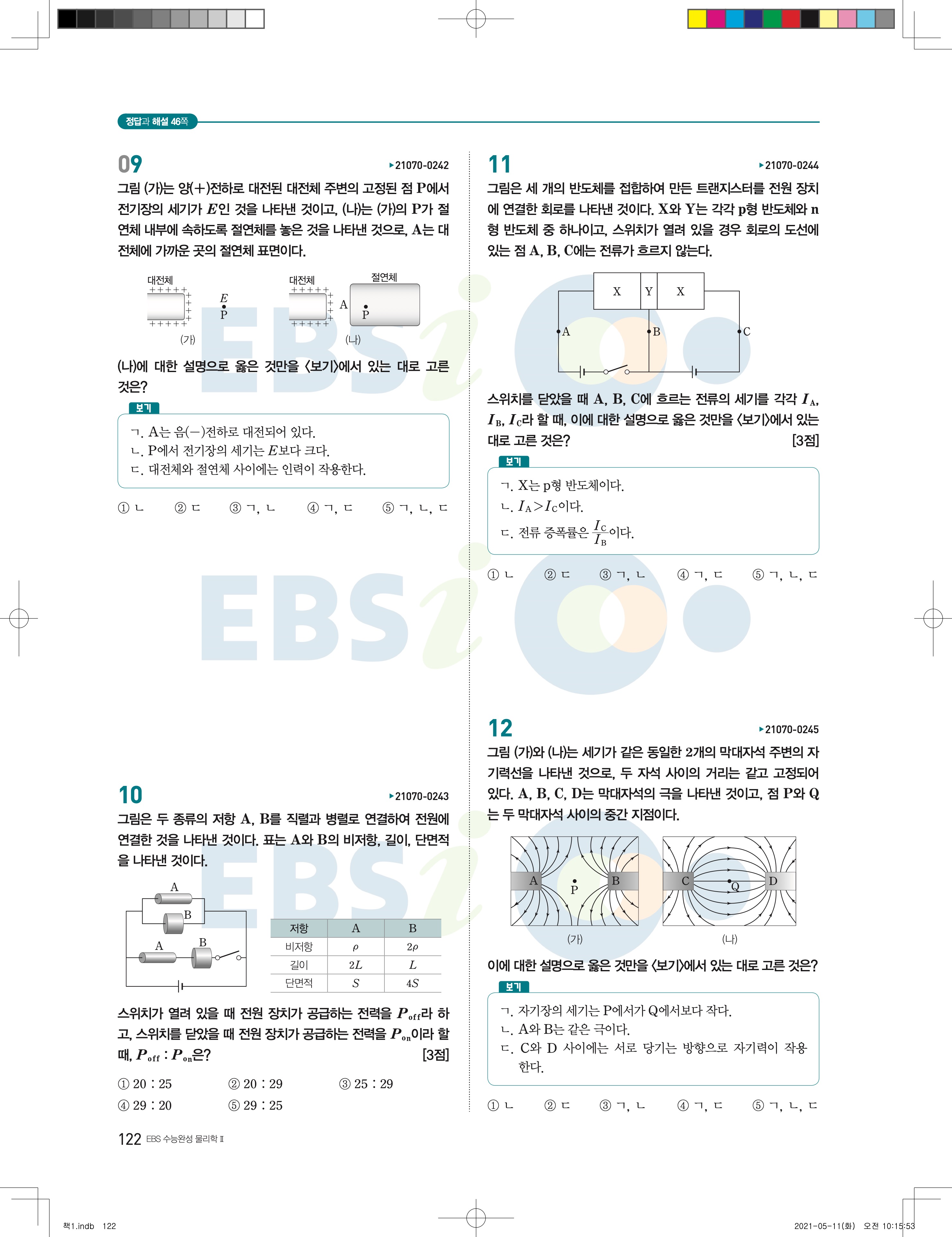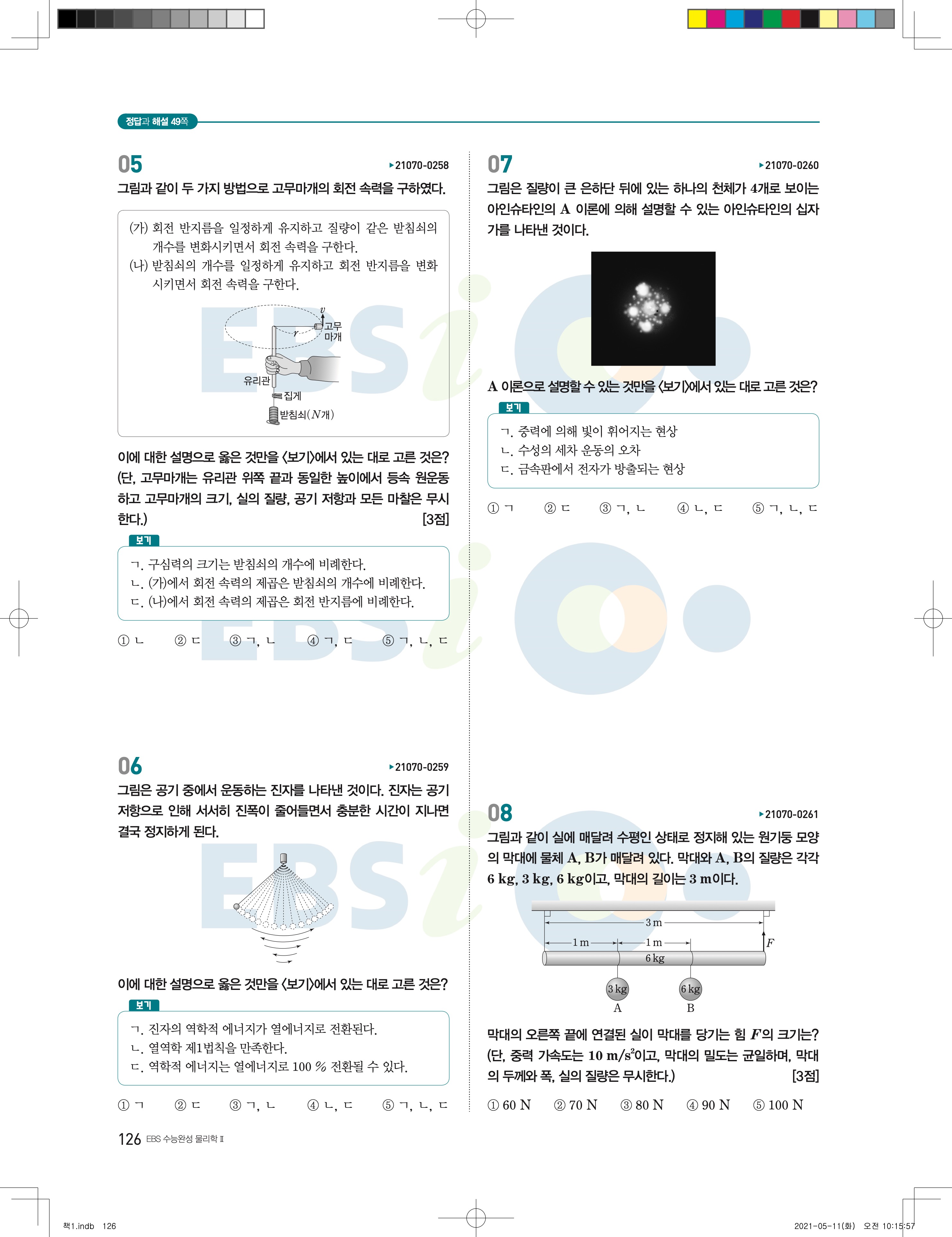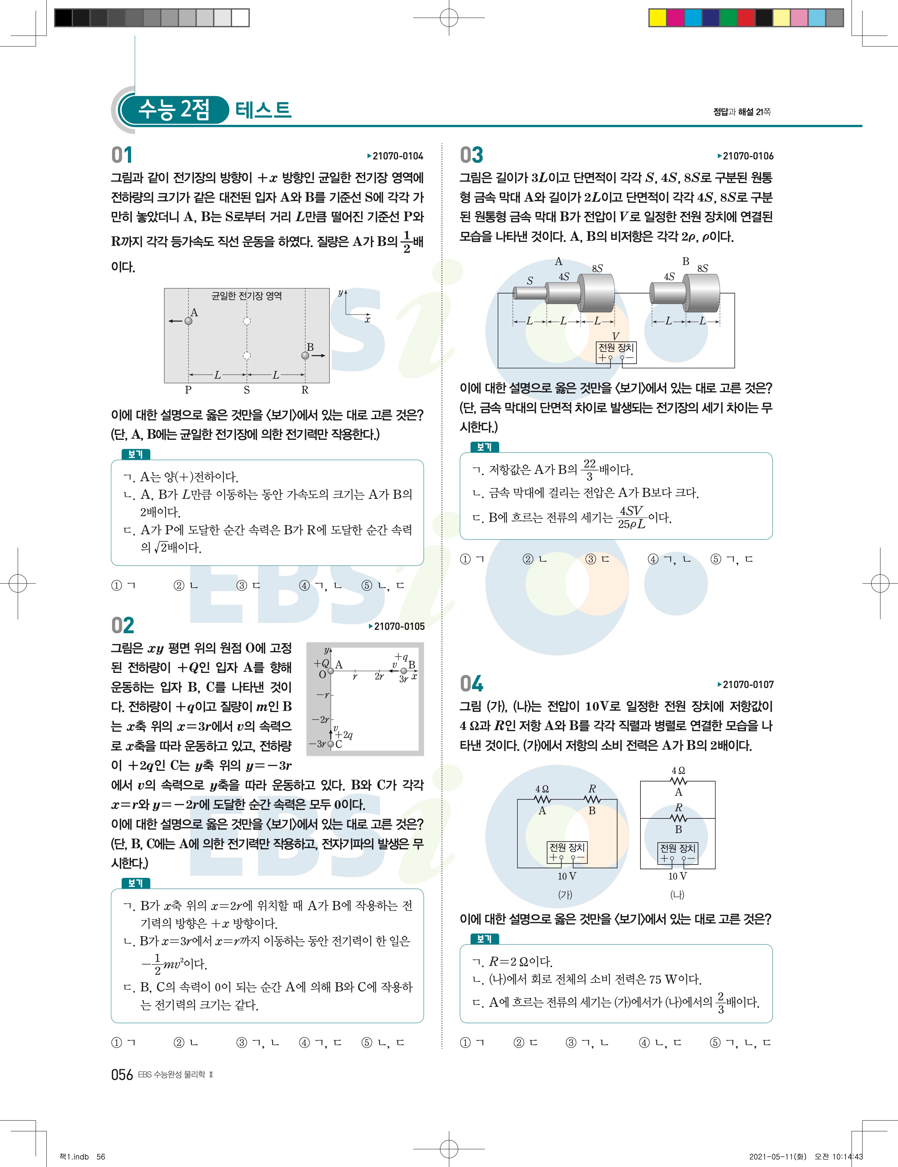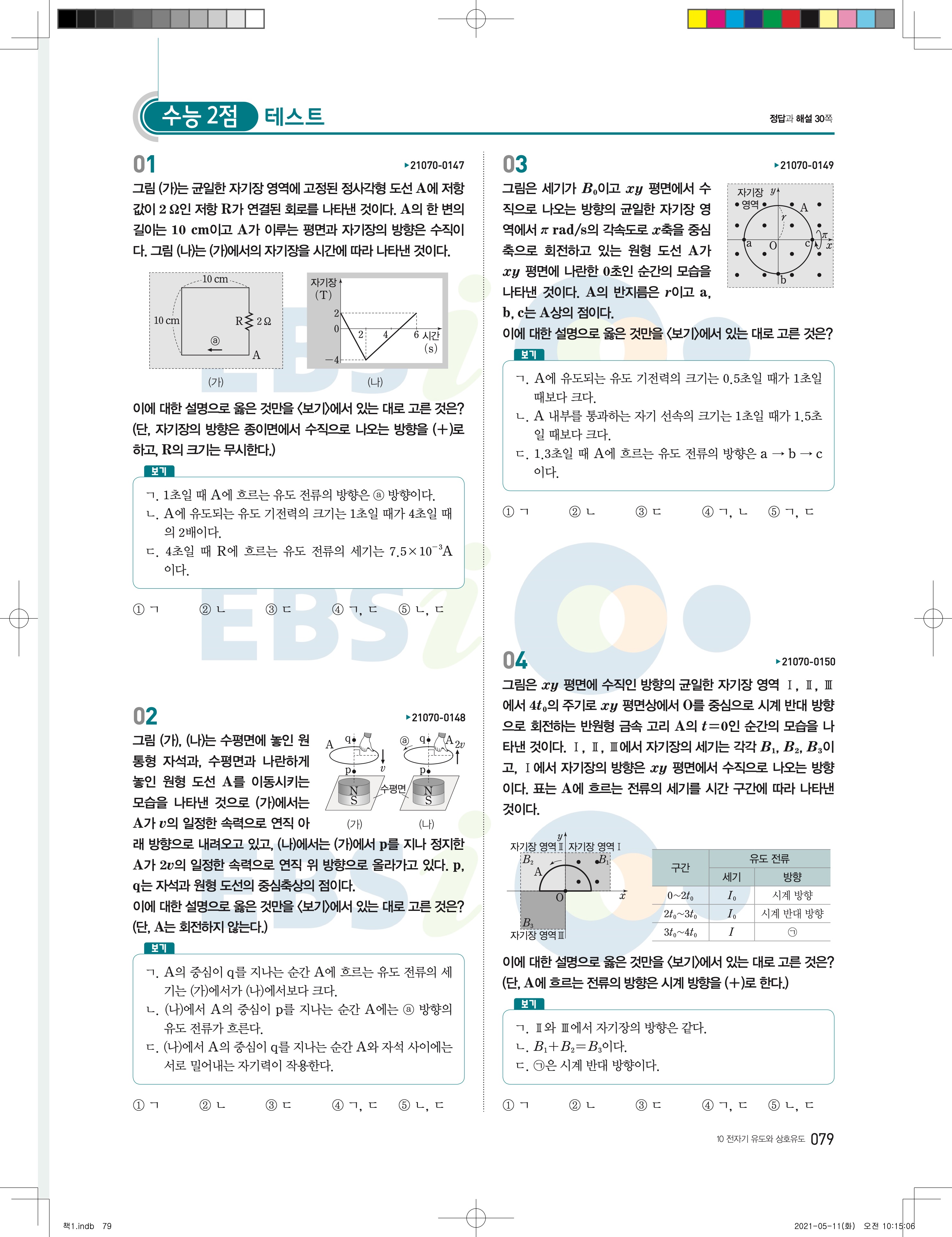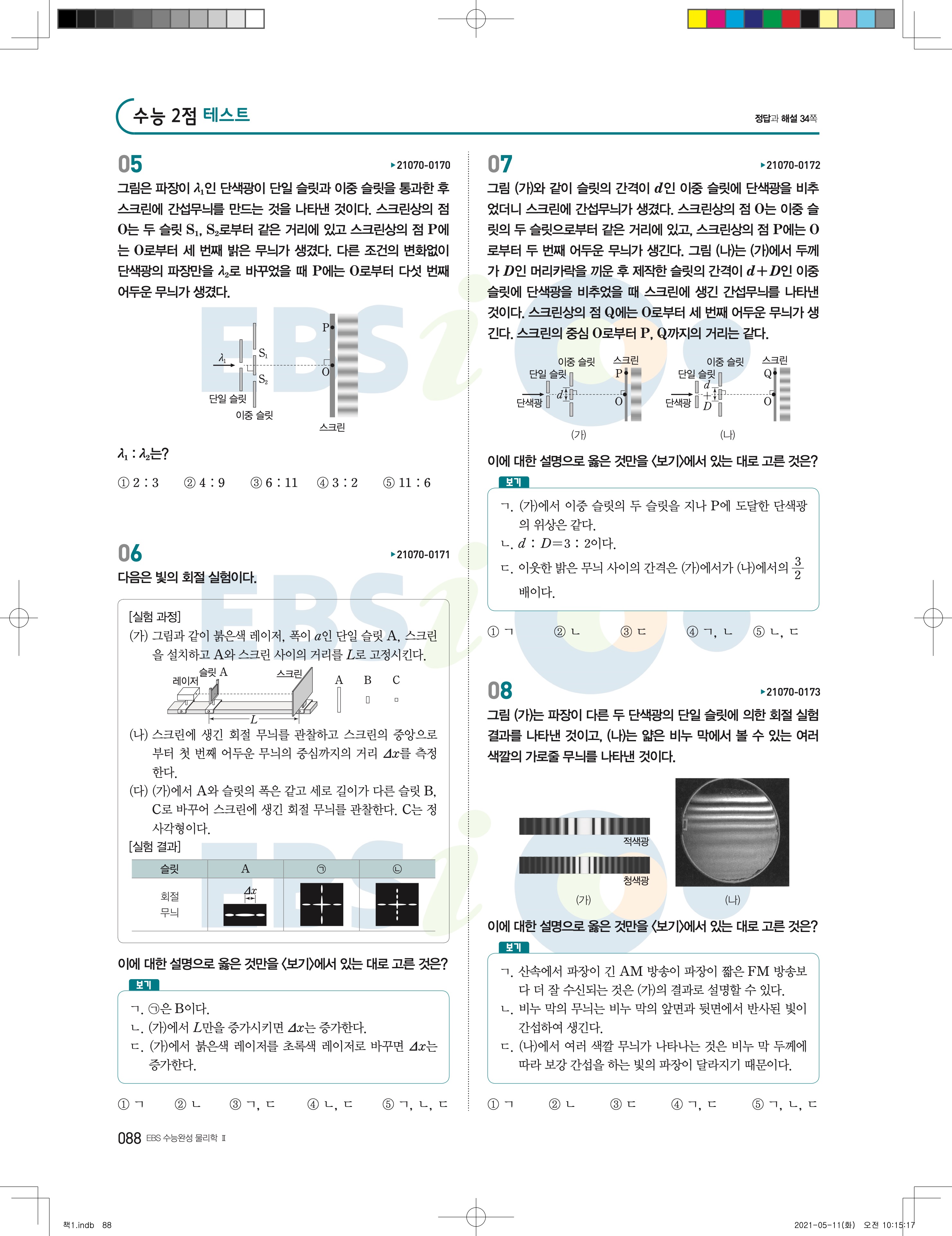2022 EBS 수능완성 과학탐구영역 물리학2 답지 해설 바로보는 사진답지 모바일최적화
