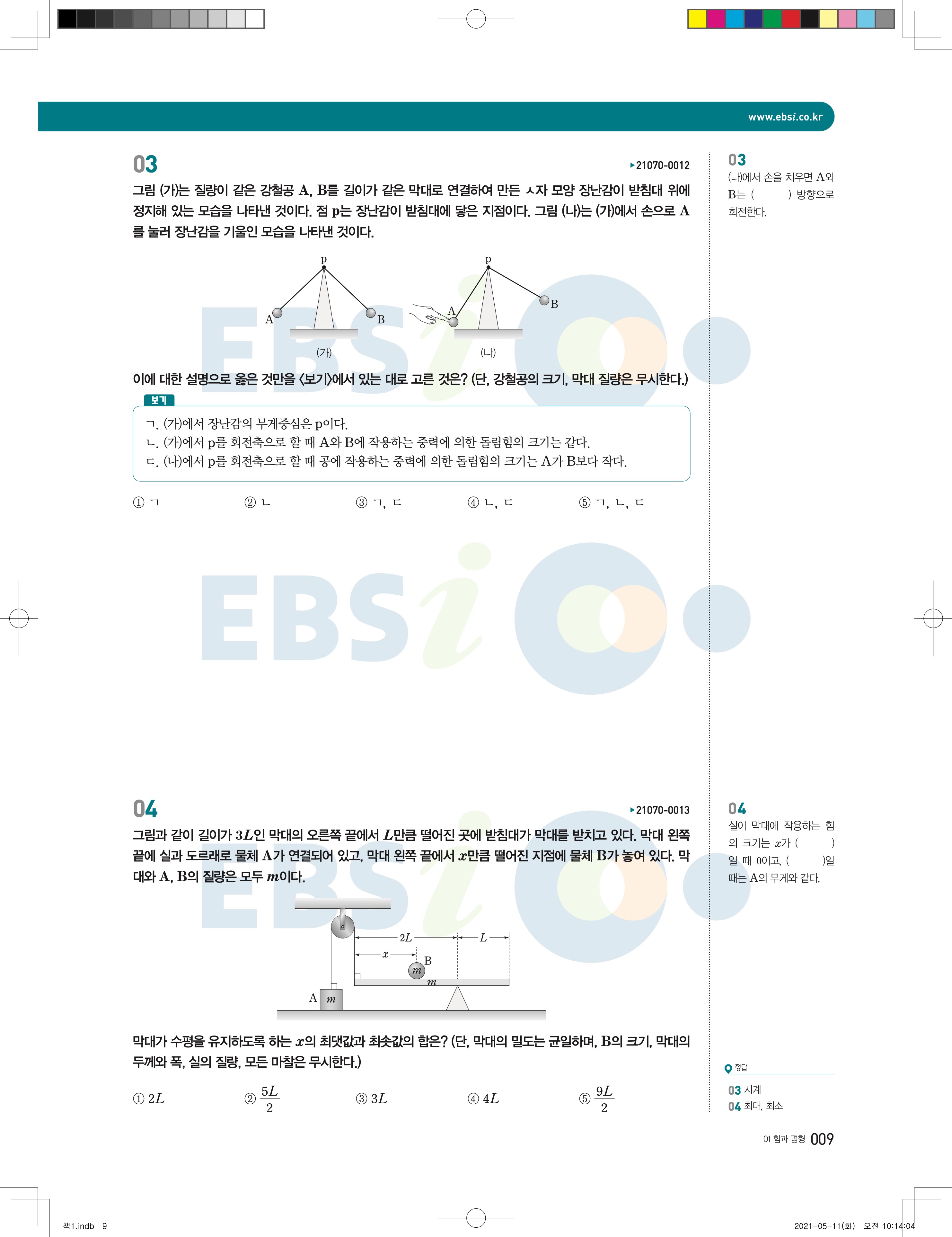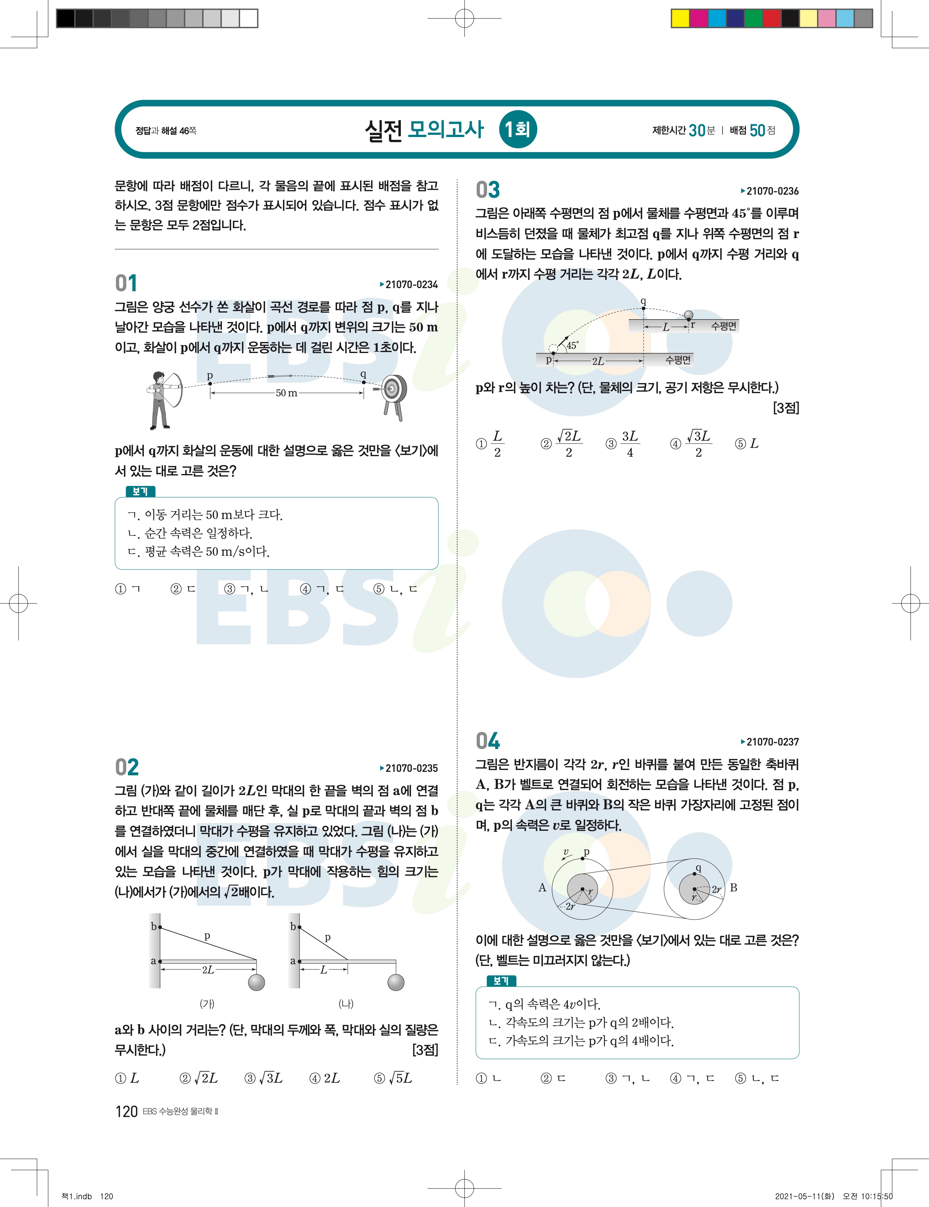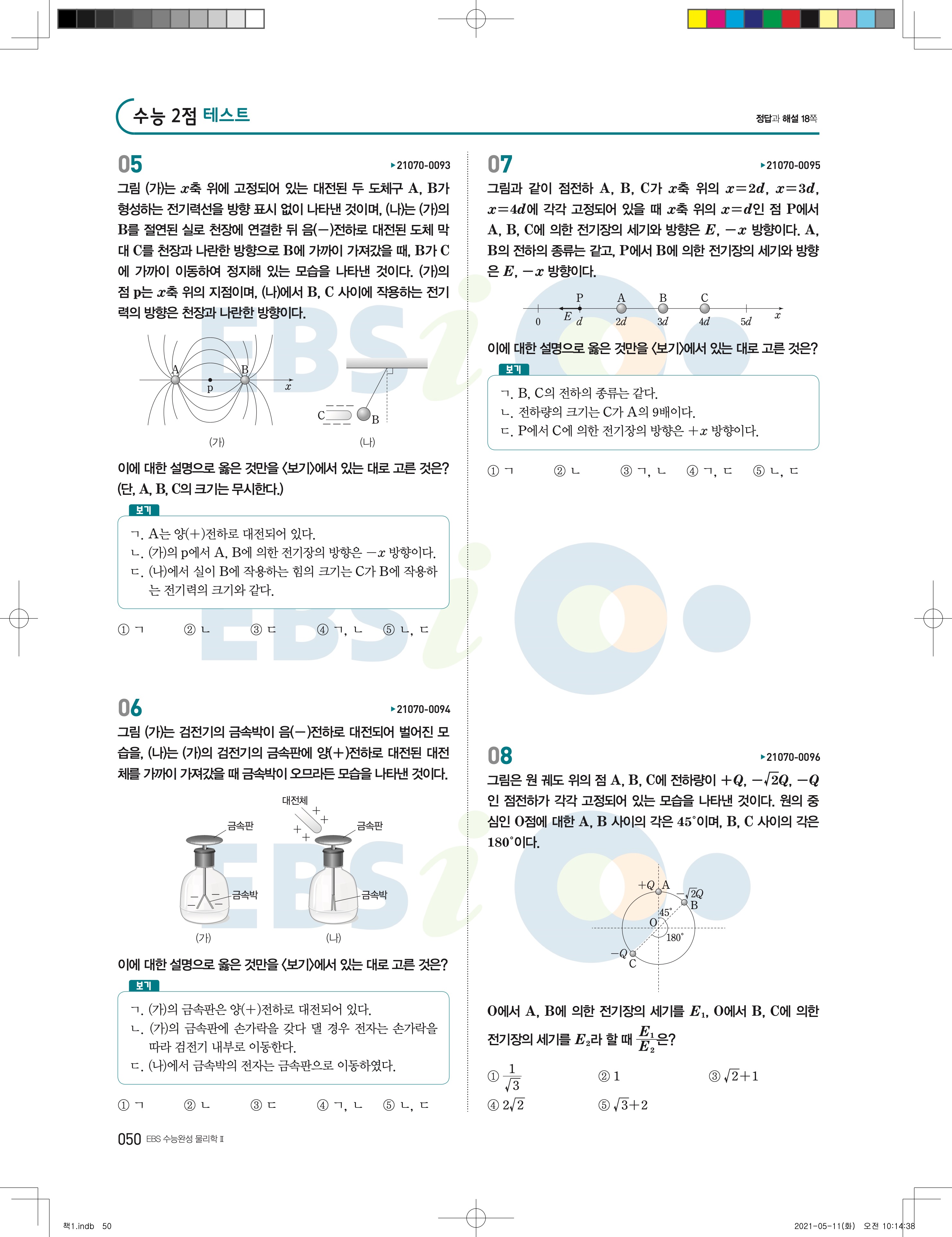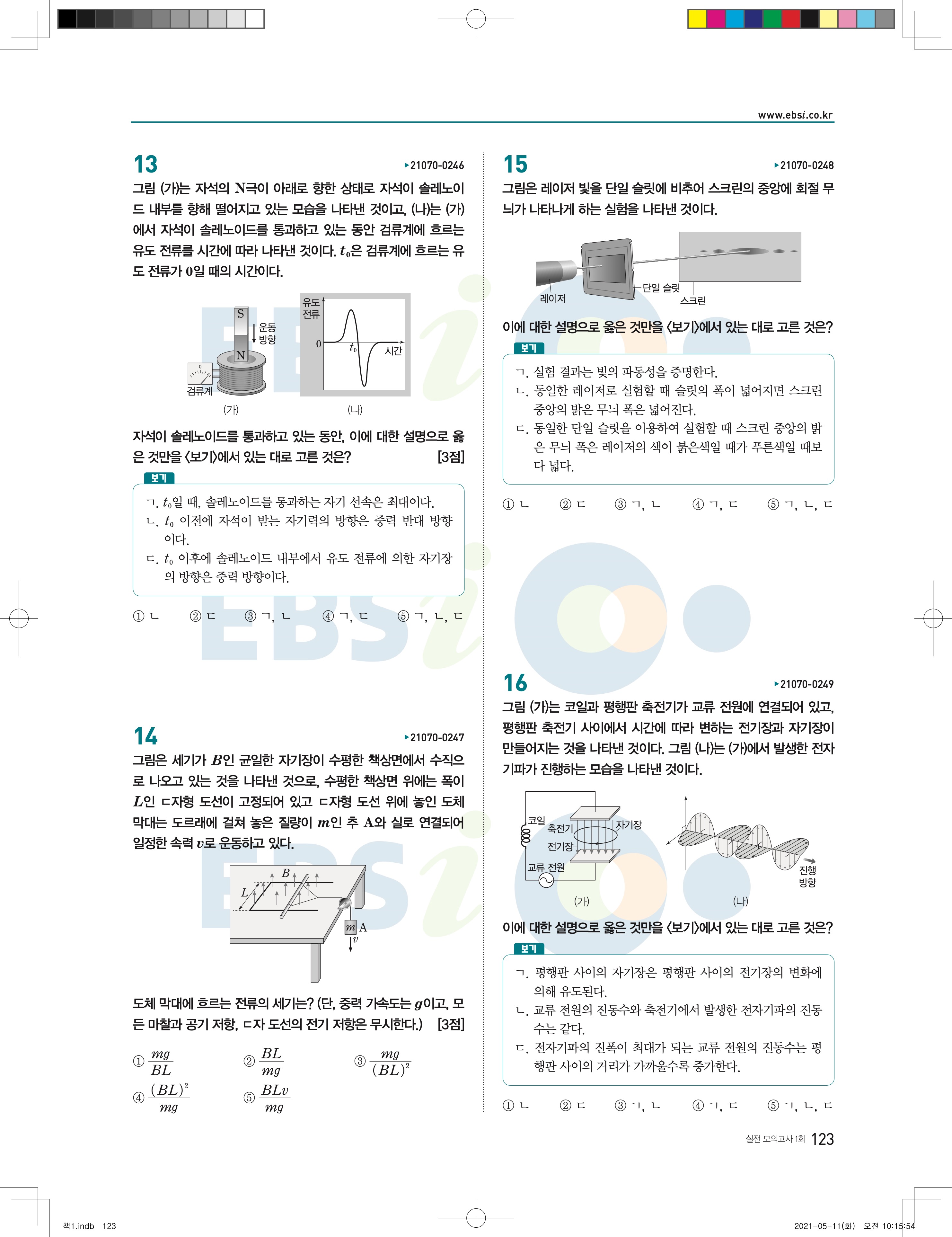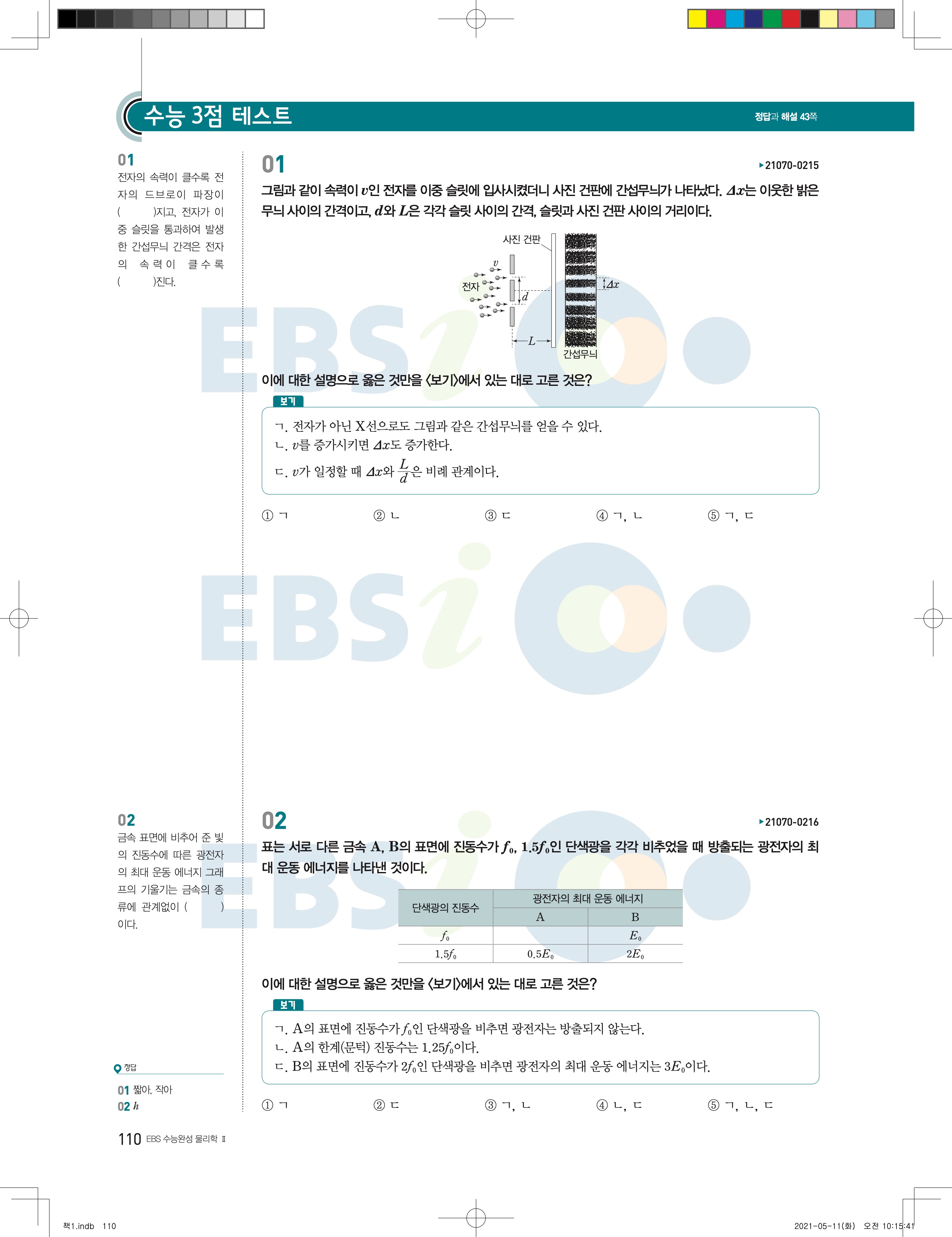 2022 EBS 수능완성 과학탐구영역 물리학2 답지 해설 바로보는 사진답지 모바일최적화