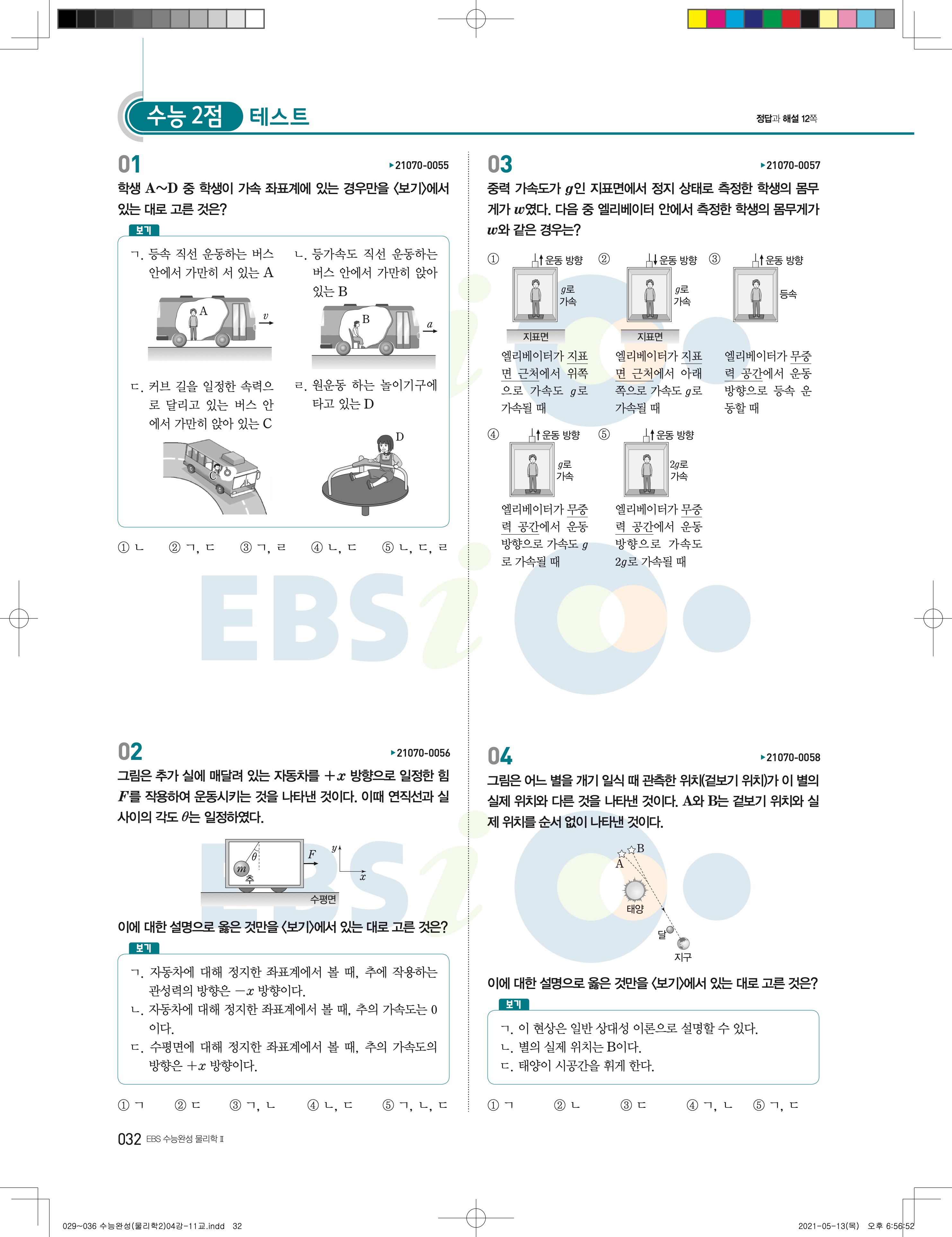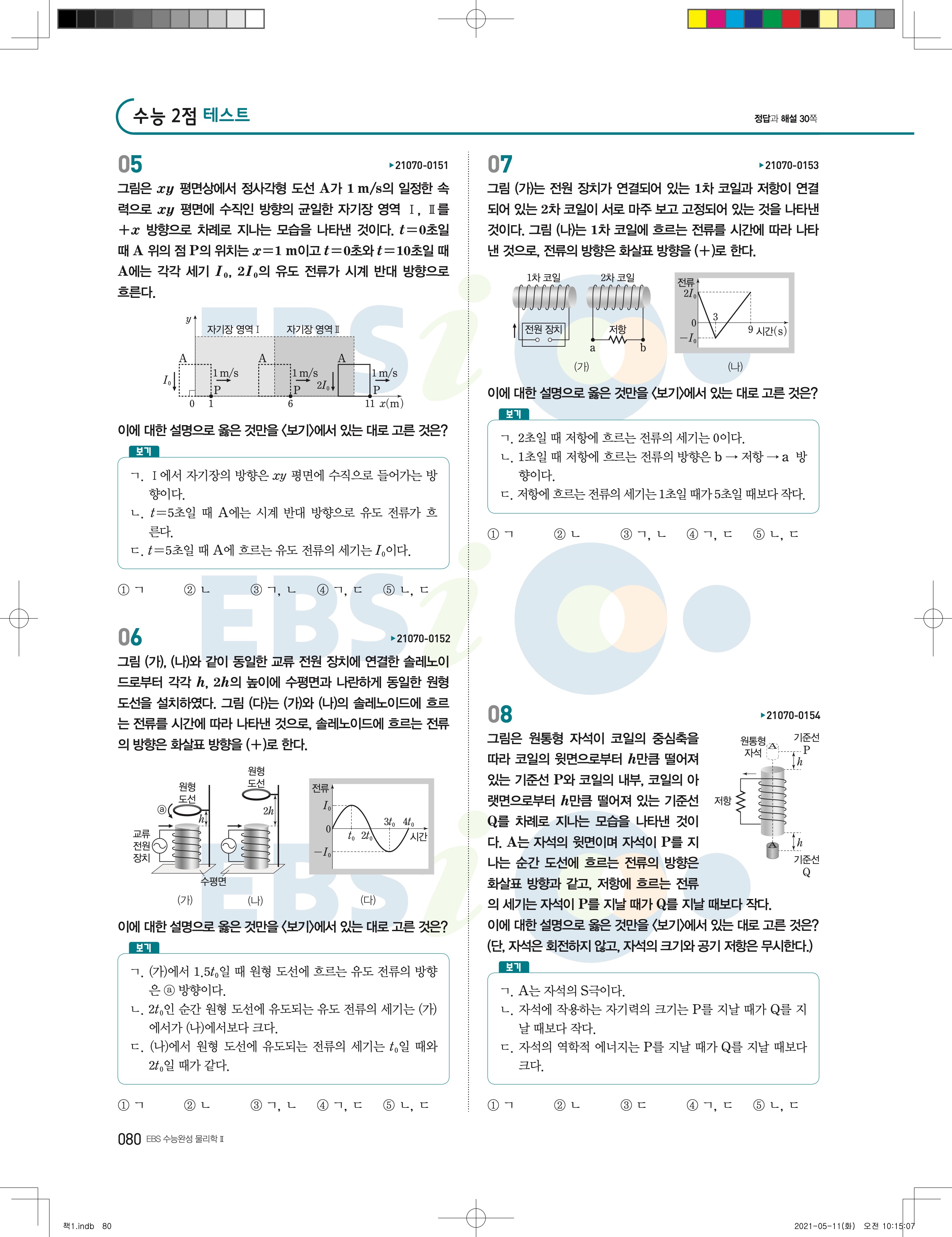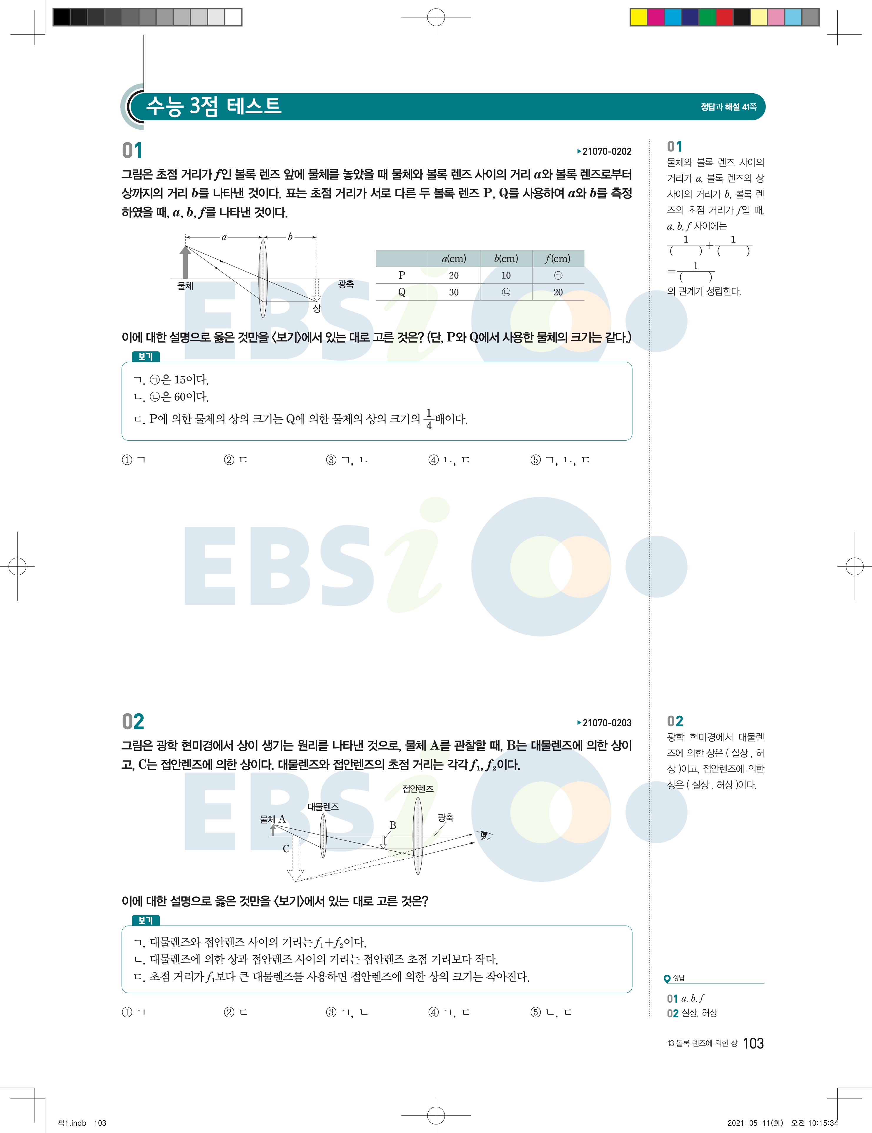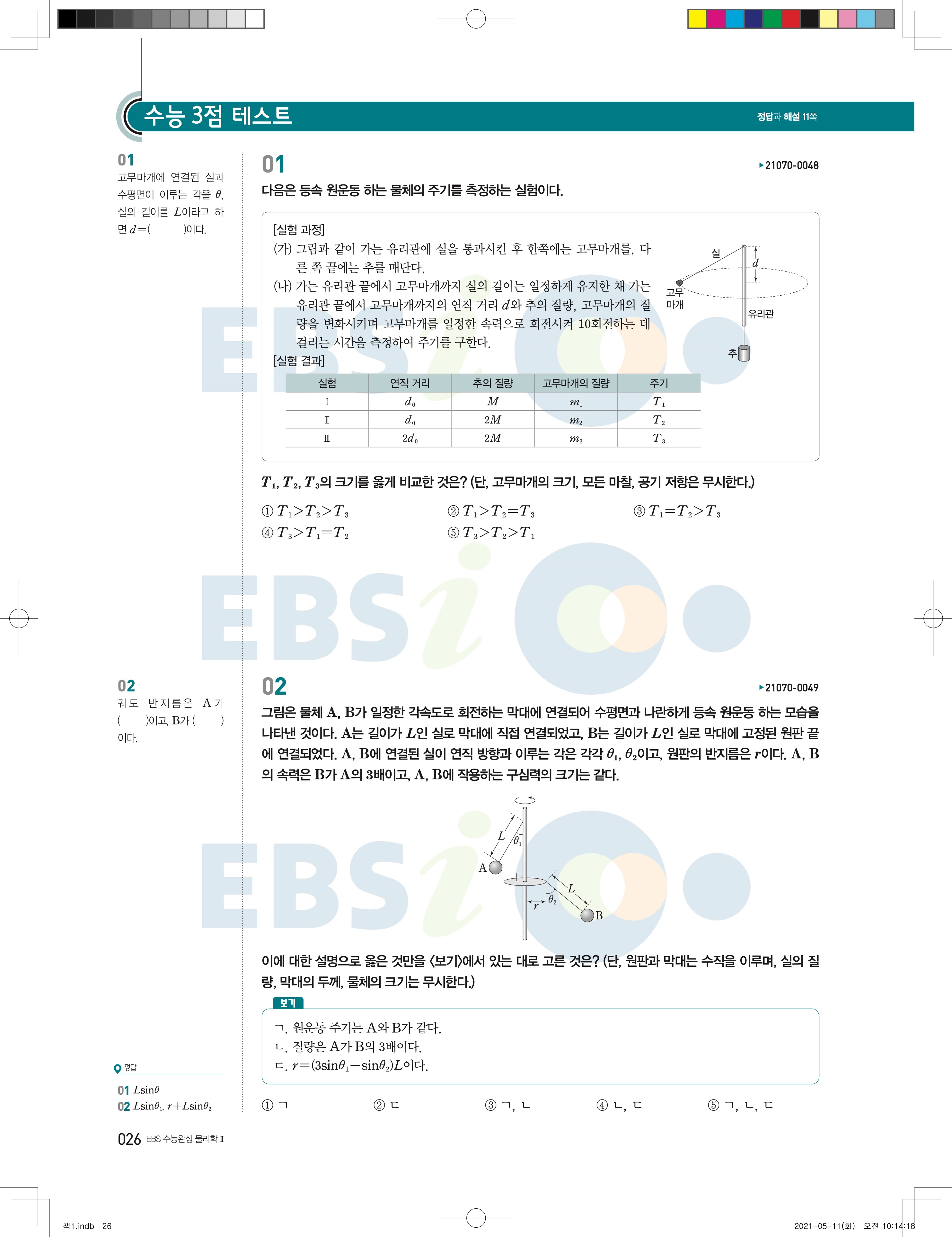 2022 EBS 수능완성 과학탐구영역 물리학2 답지 해설 바로보는 사진답지 모바일최적화