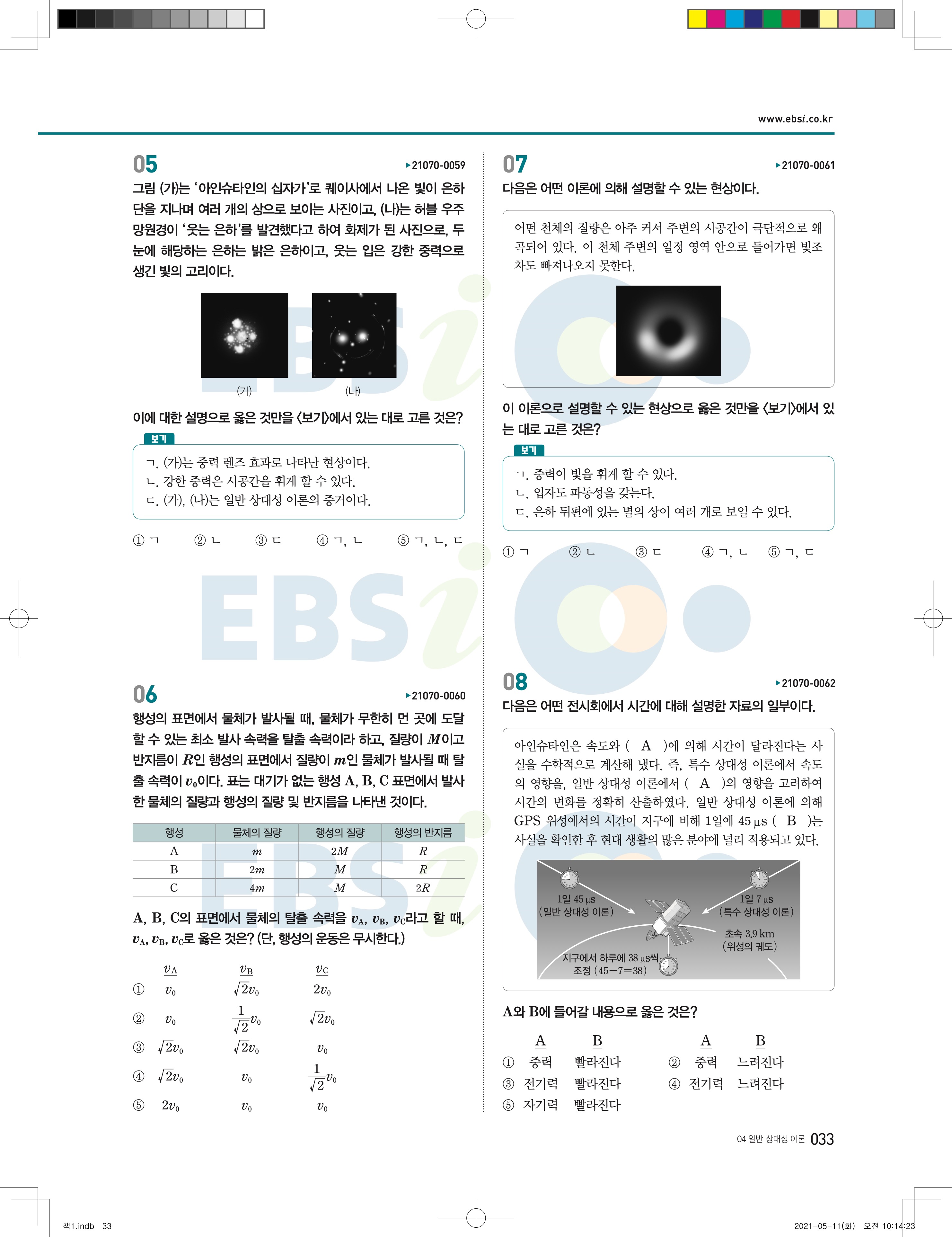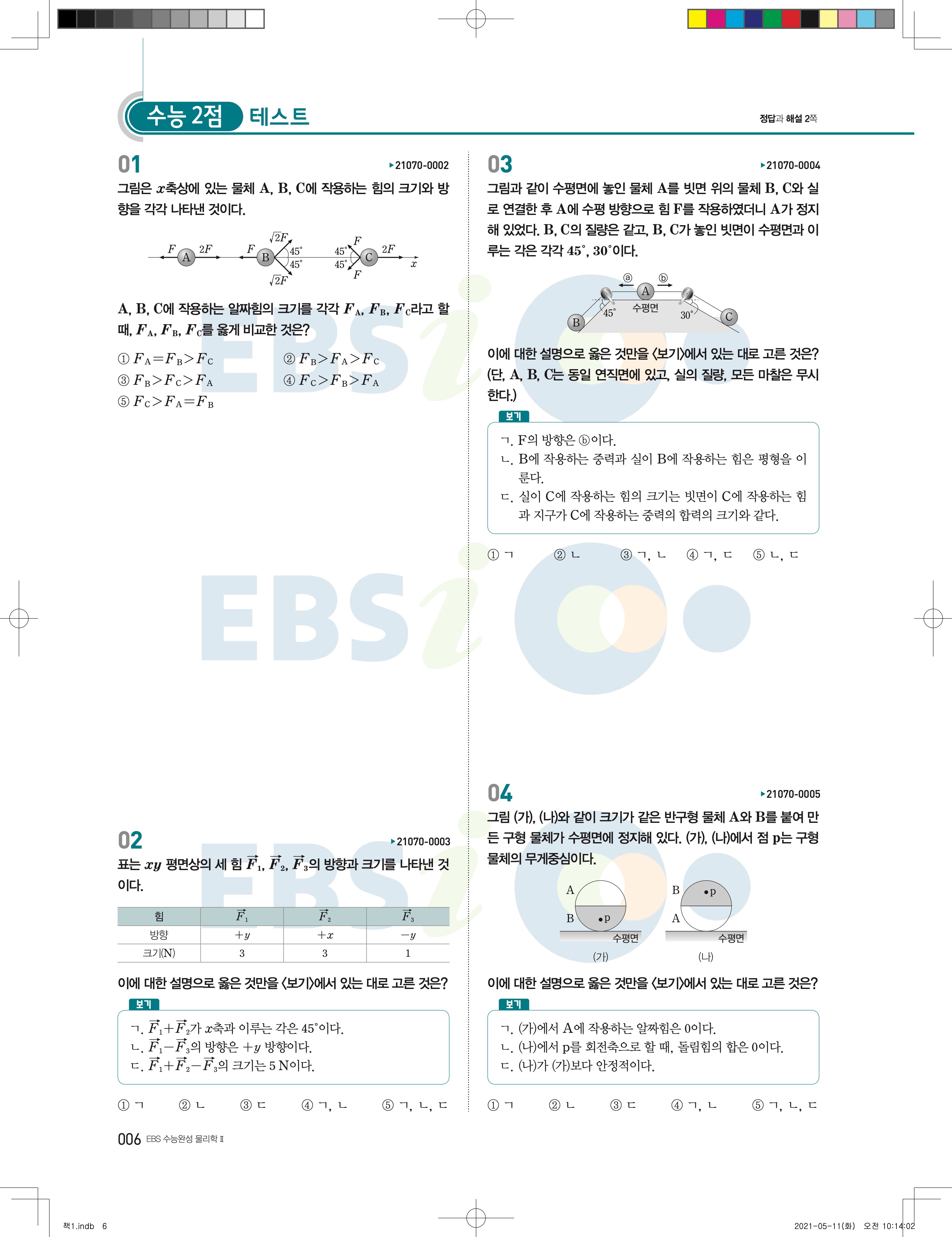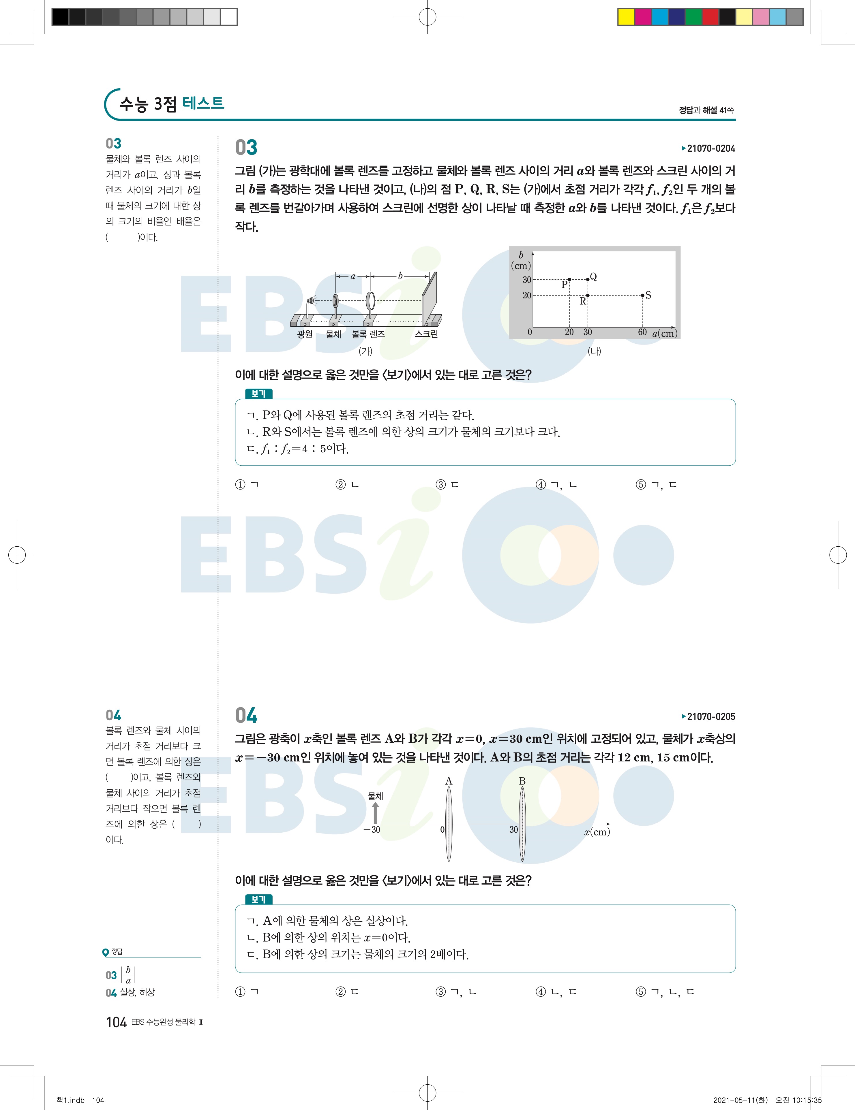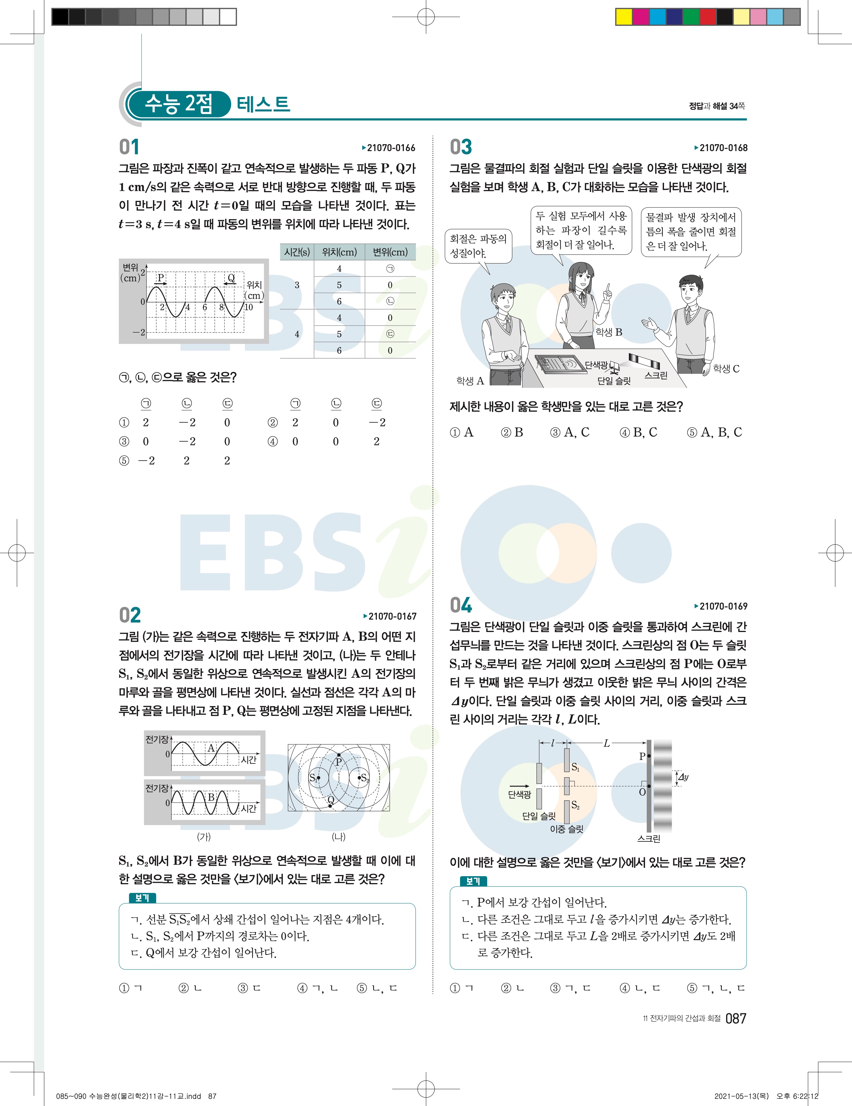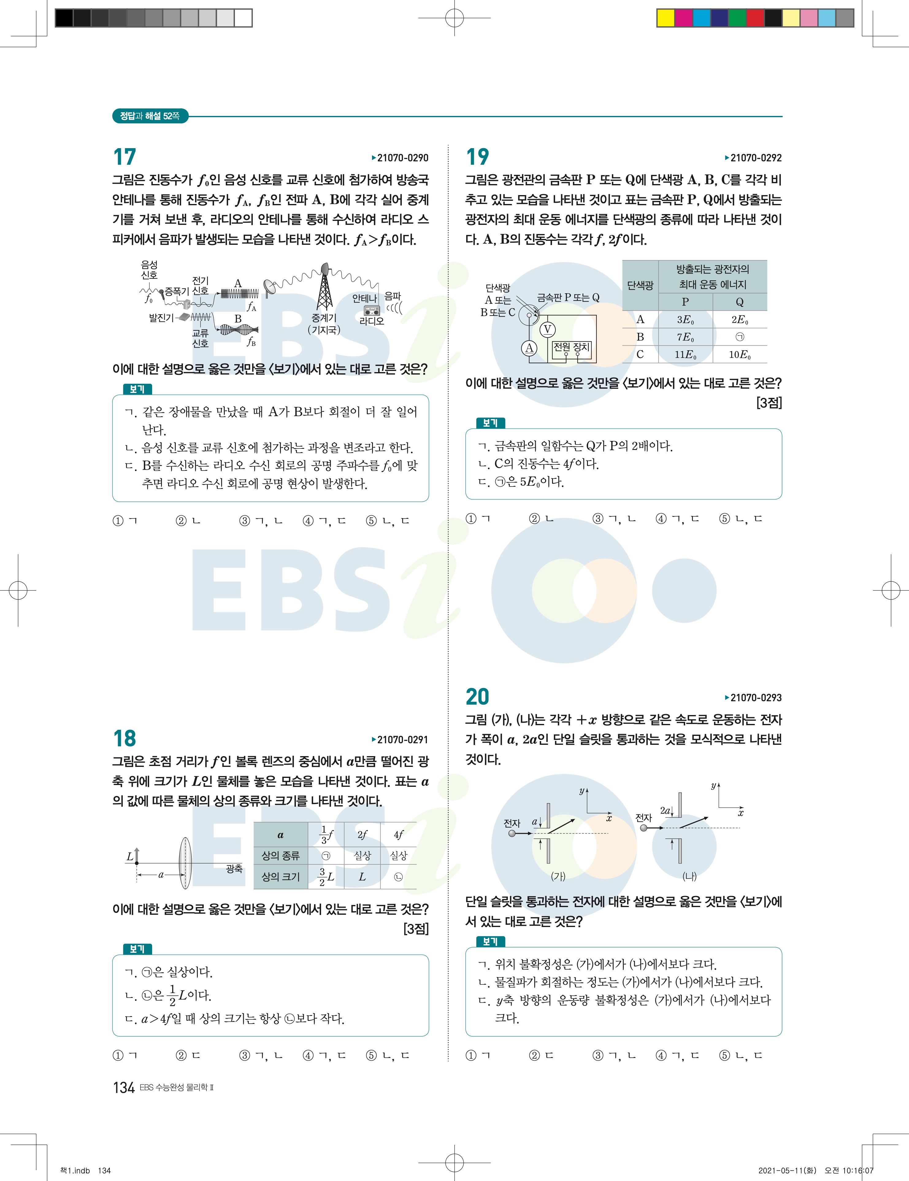 2022 EBS 수능완성 과학탐구영역 물리학2 답지 해설 바로보는 사진답지 모바일최적화