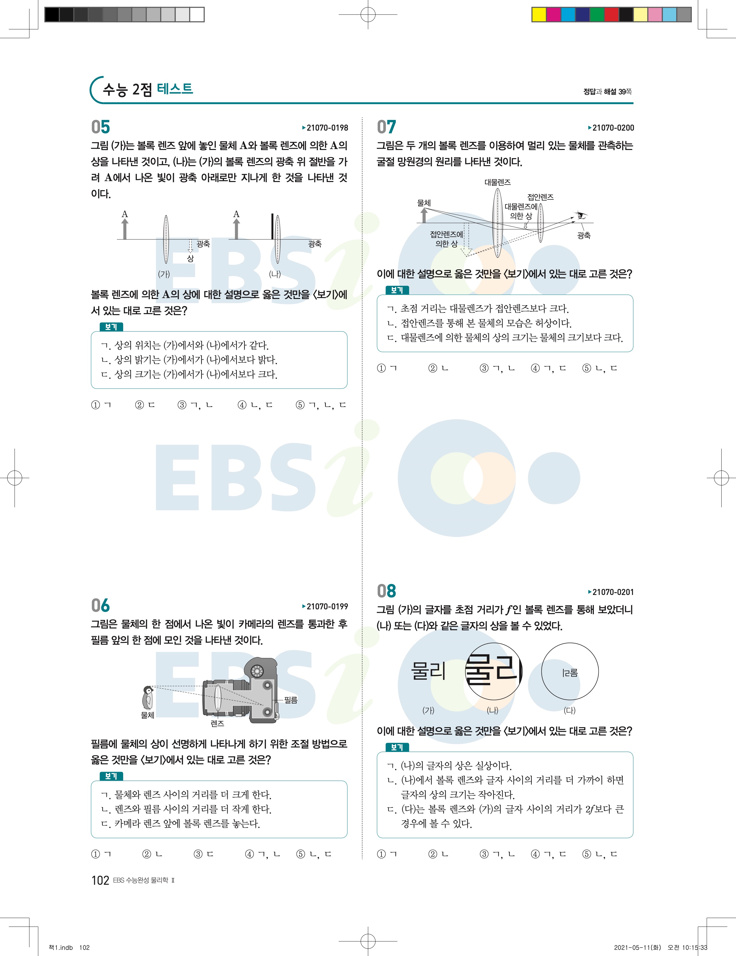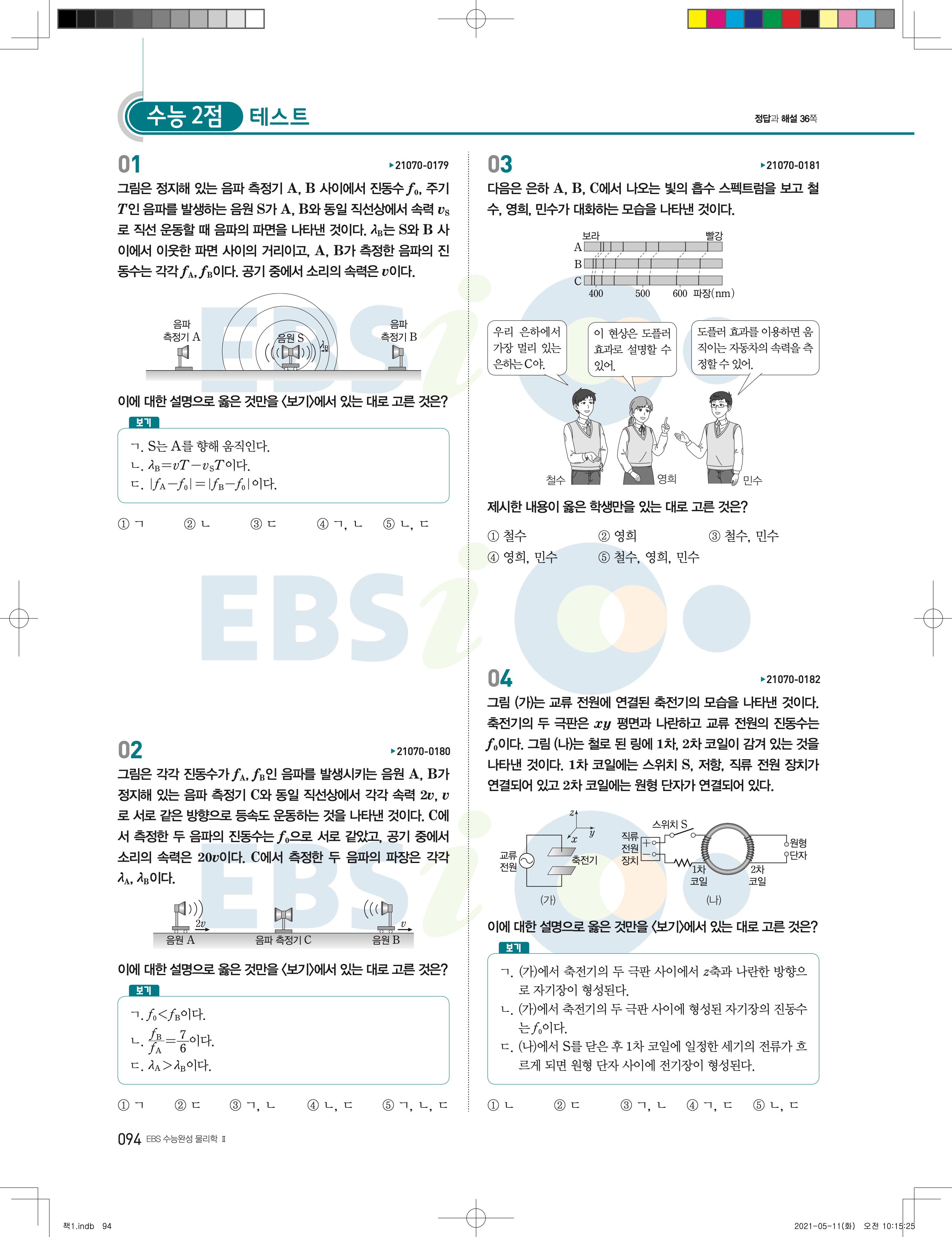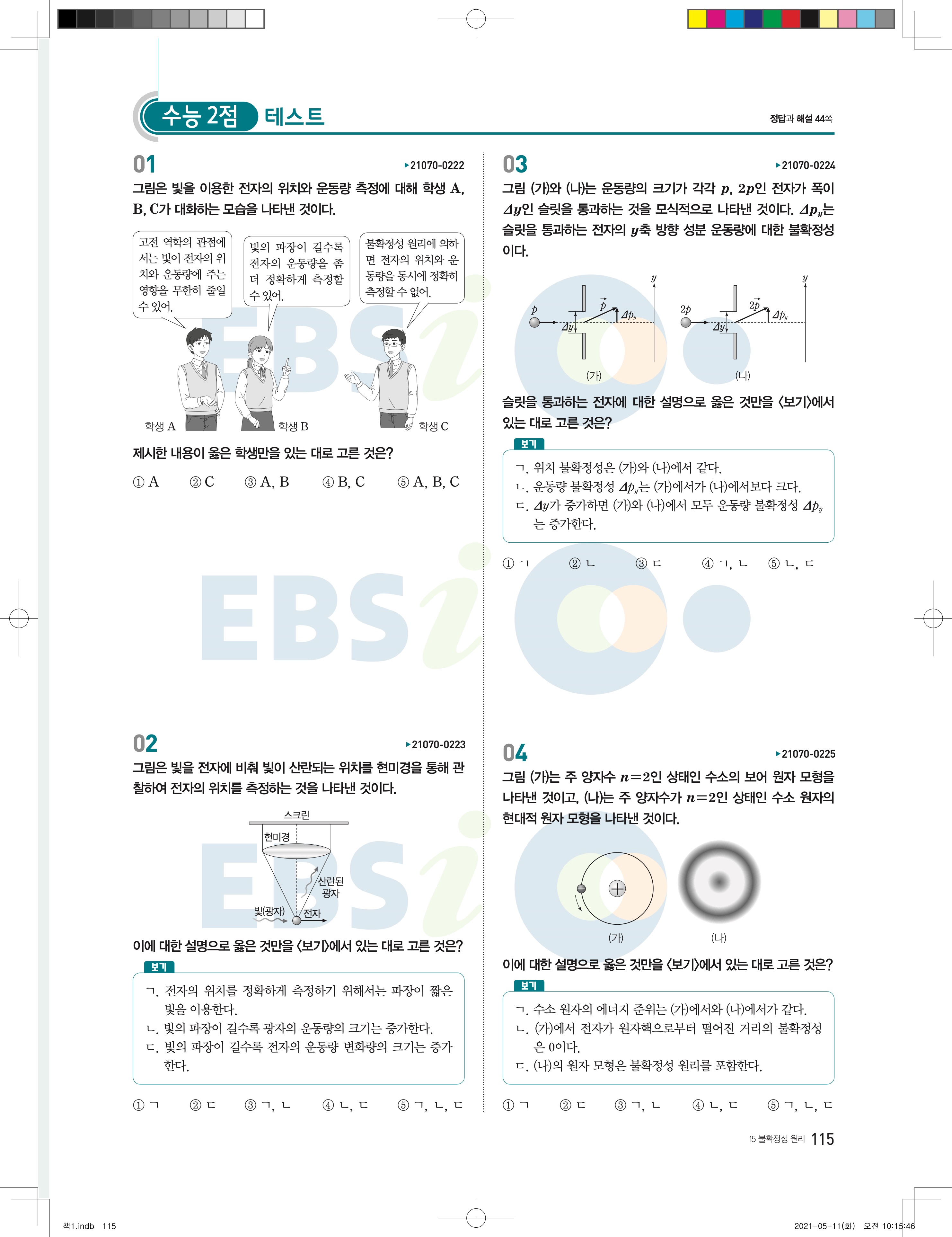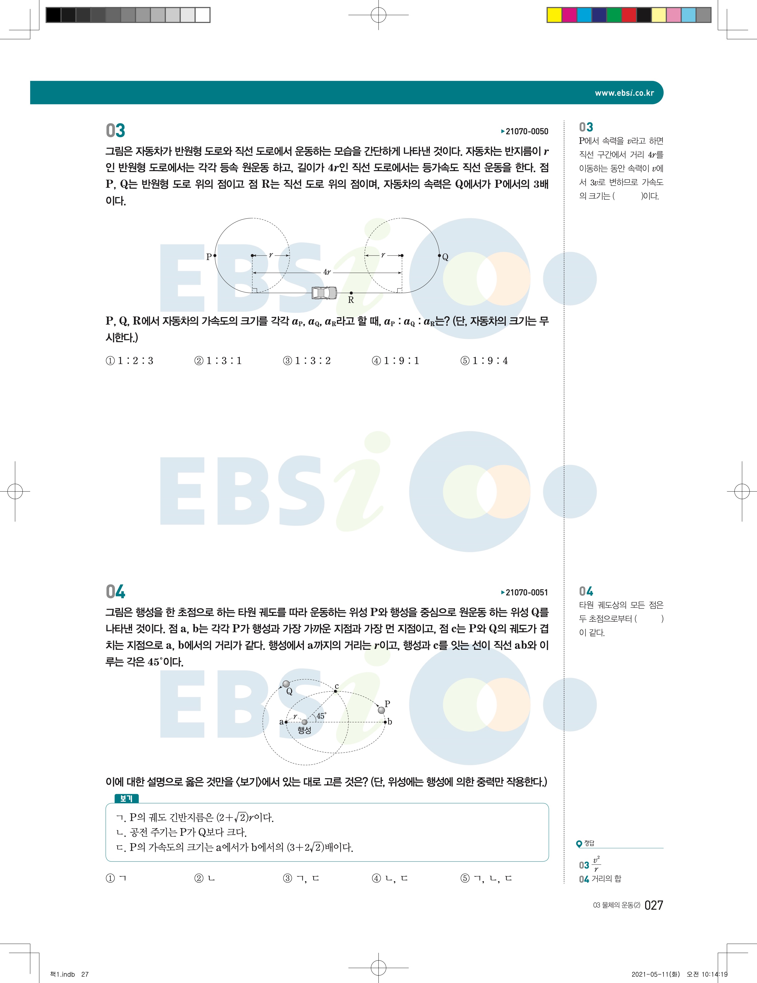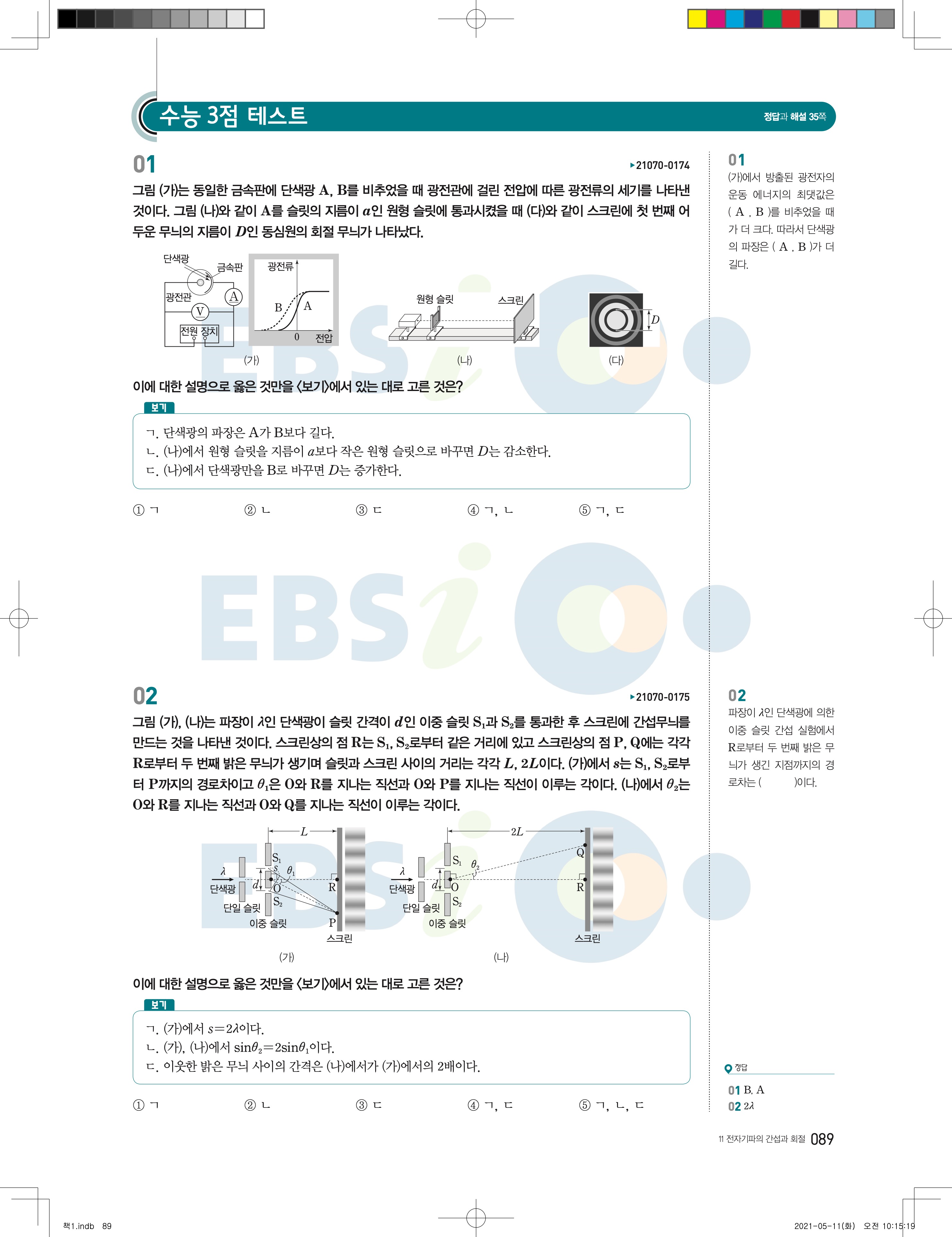 2022 EBS 수능완성 과학탐구영역 물리학2 답지 해설 바로보는 사진답지 모바일최적화