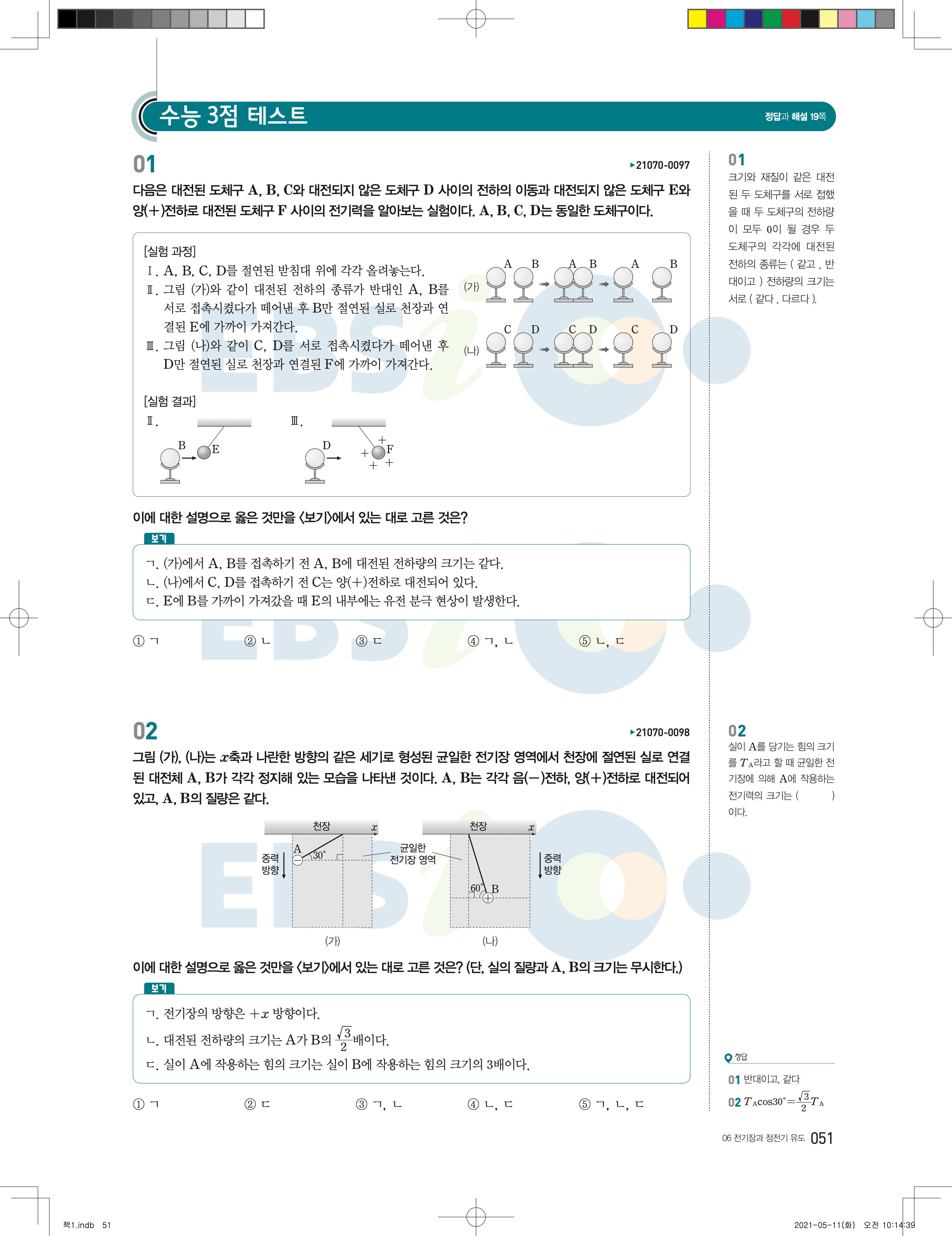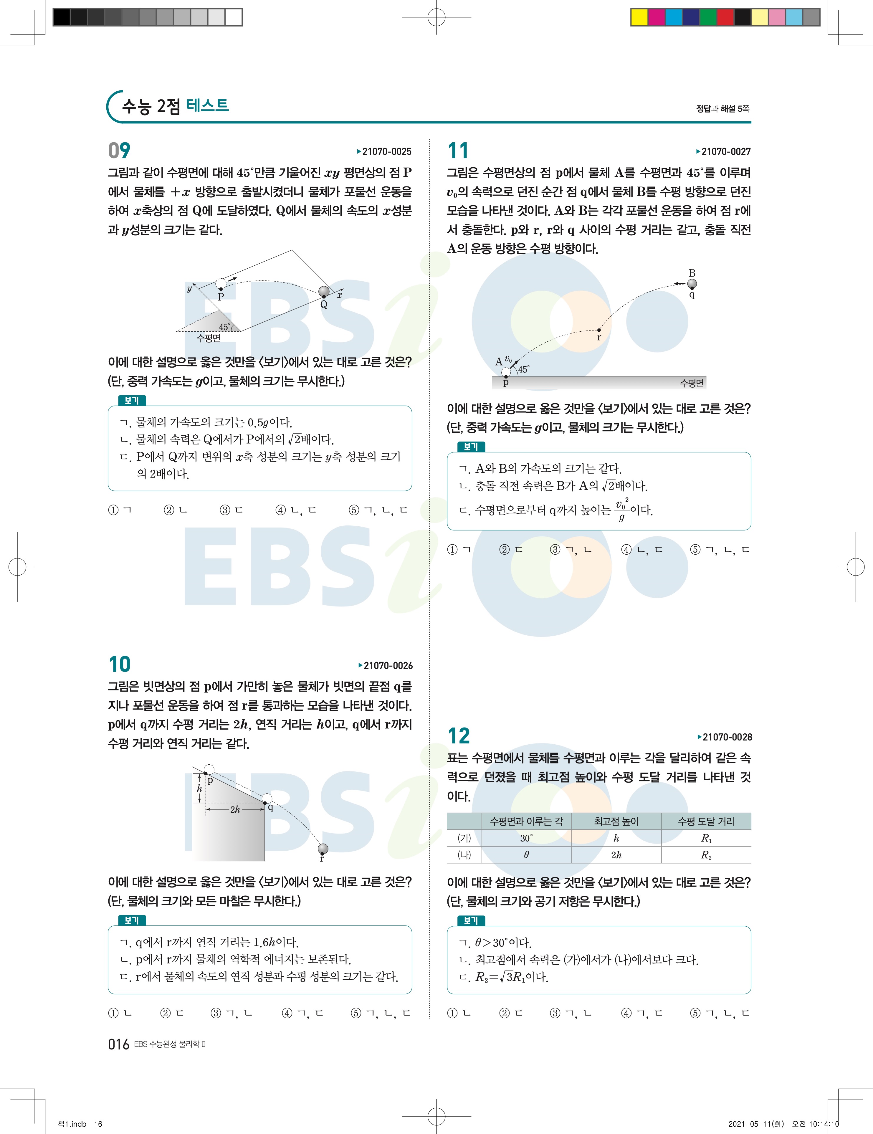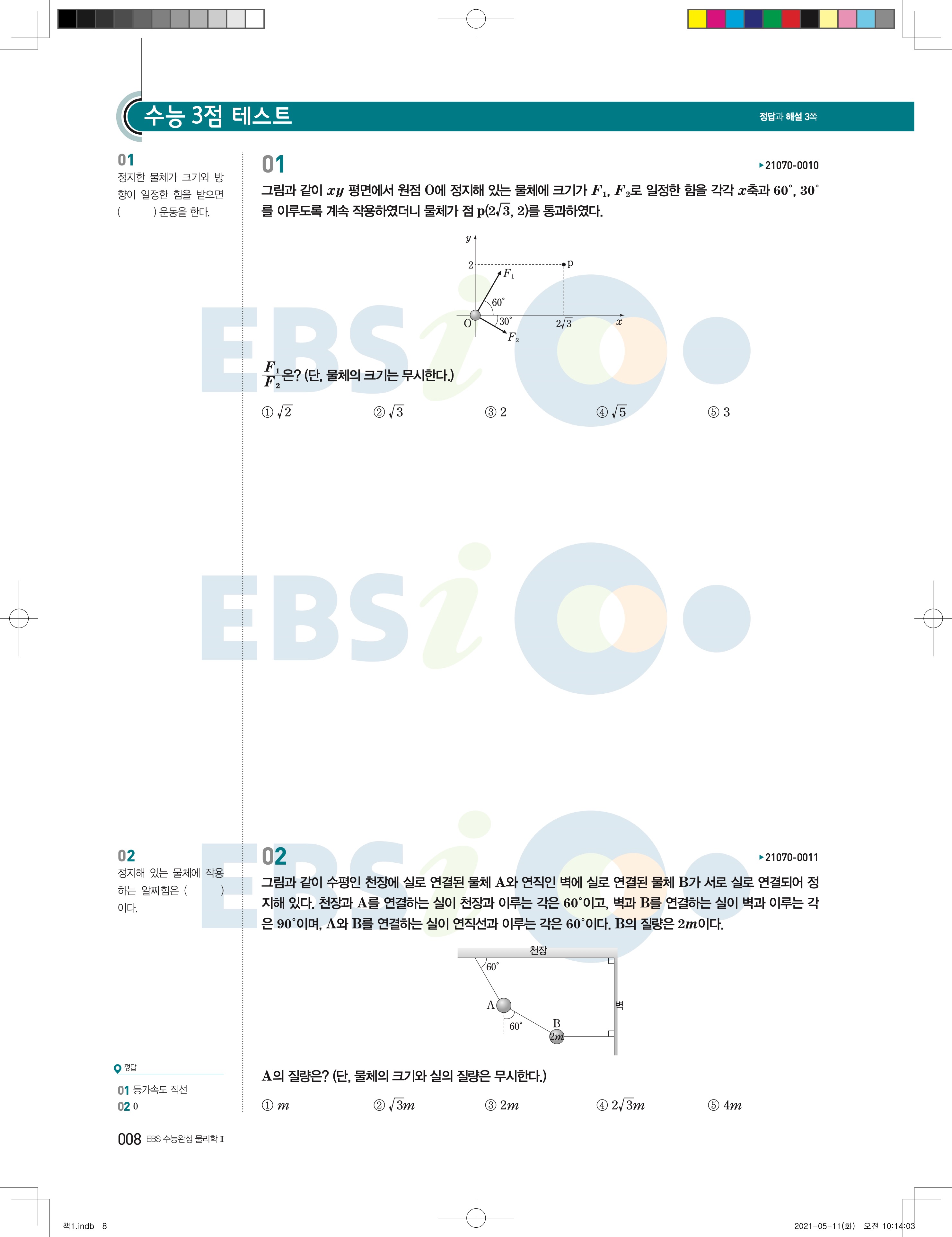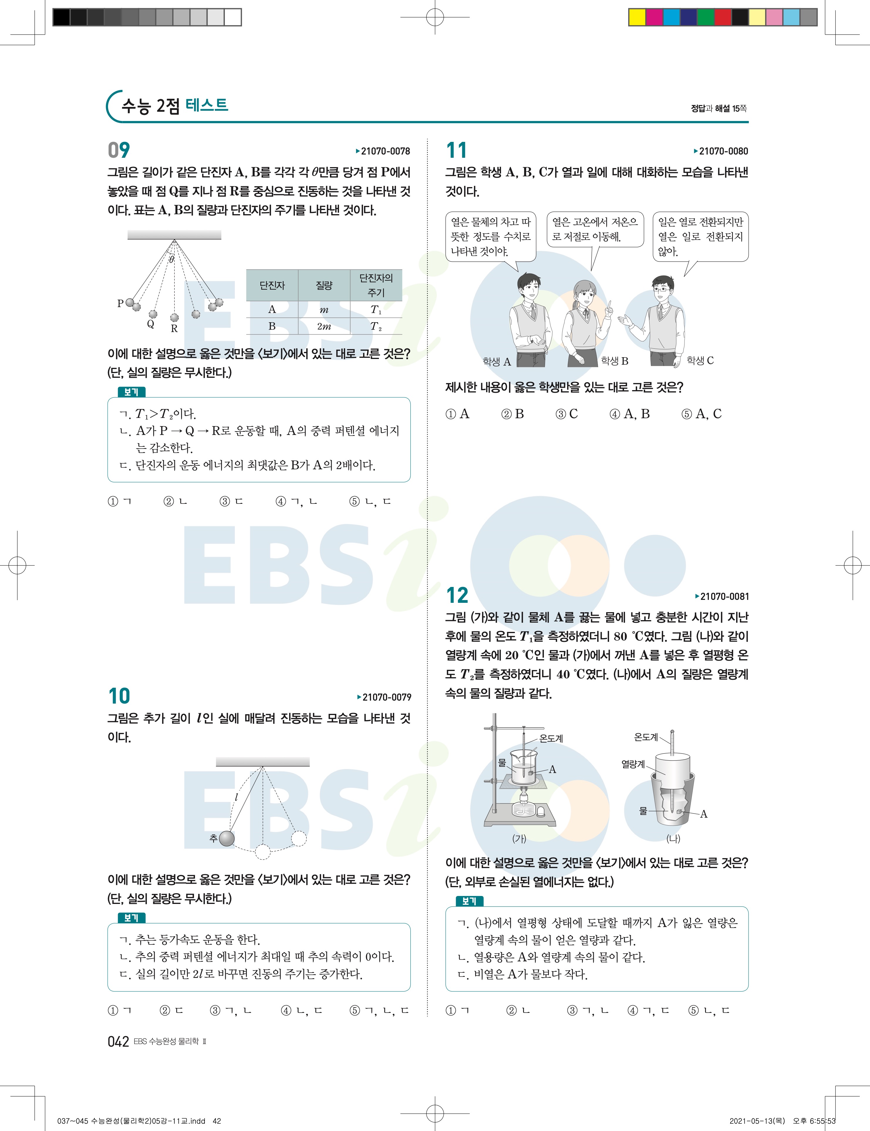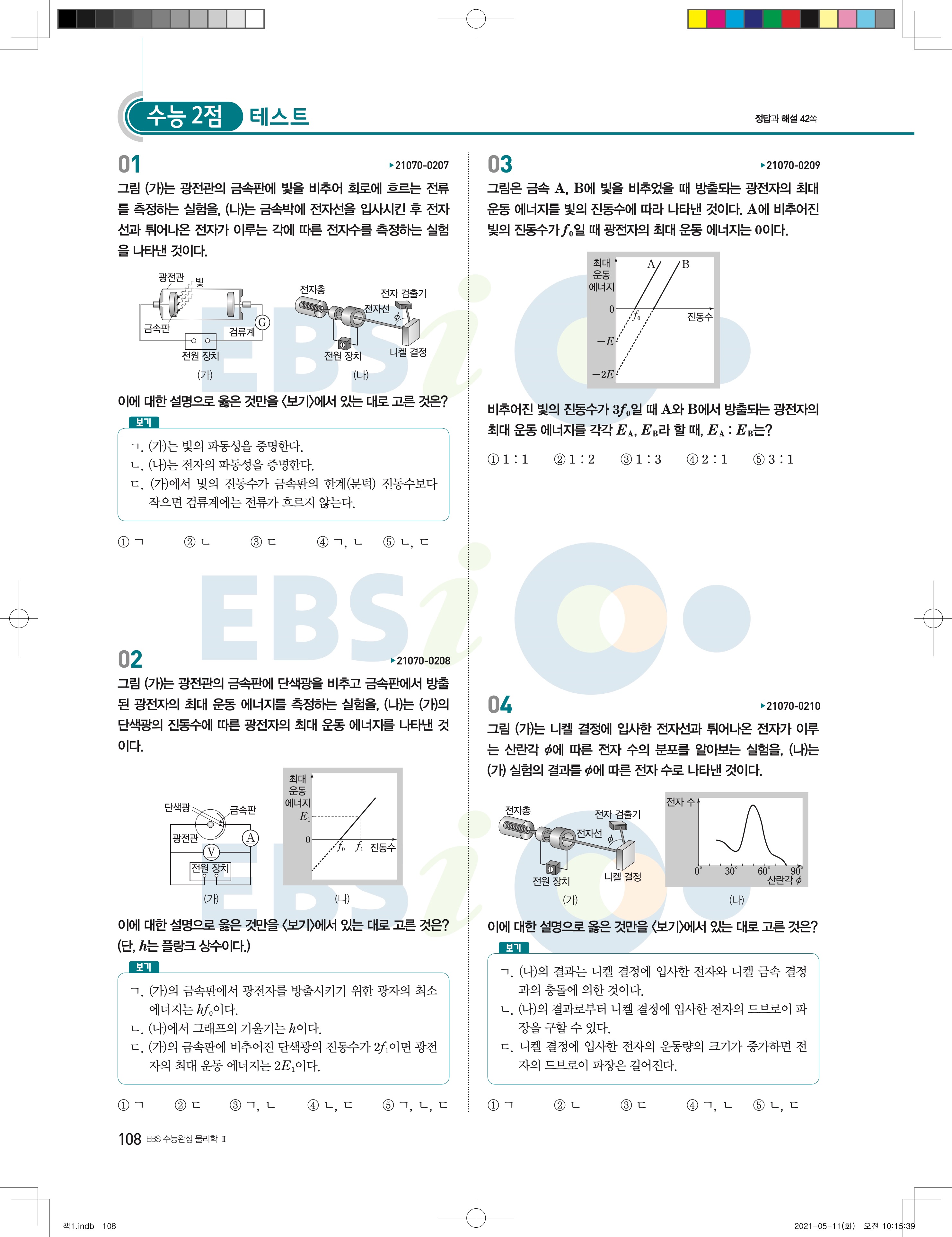 2022 EBS 수능완성 과학탐구영역 물리학2 답지 해설 바로보는 사진답지 모바일최적화