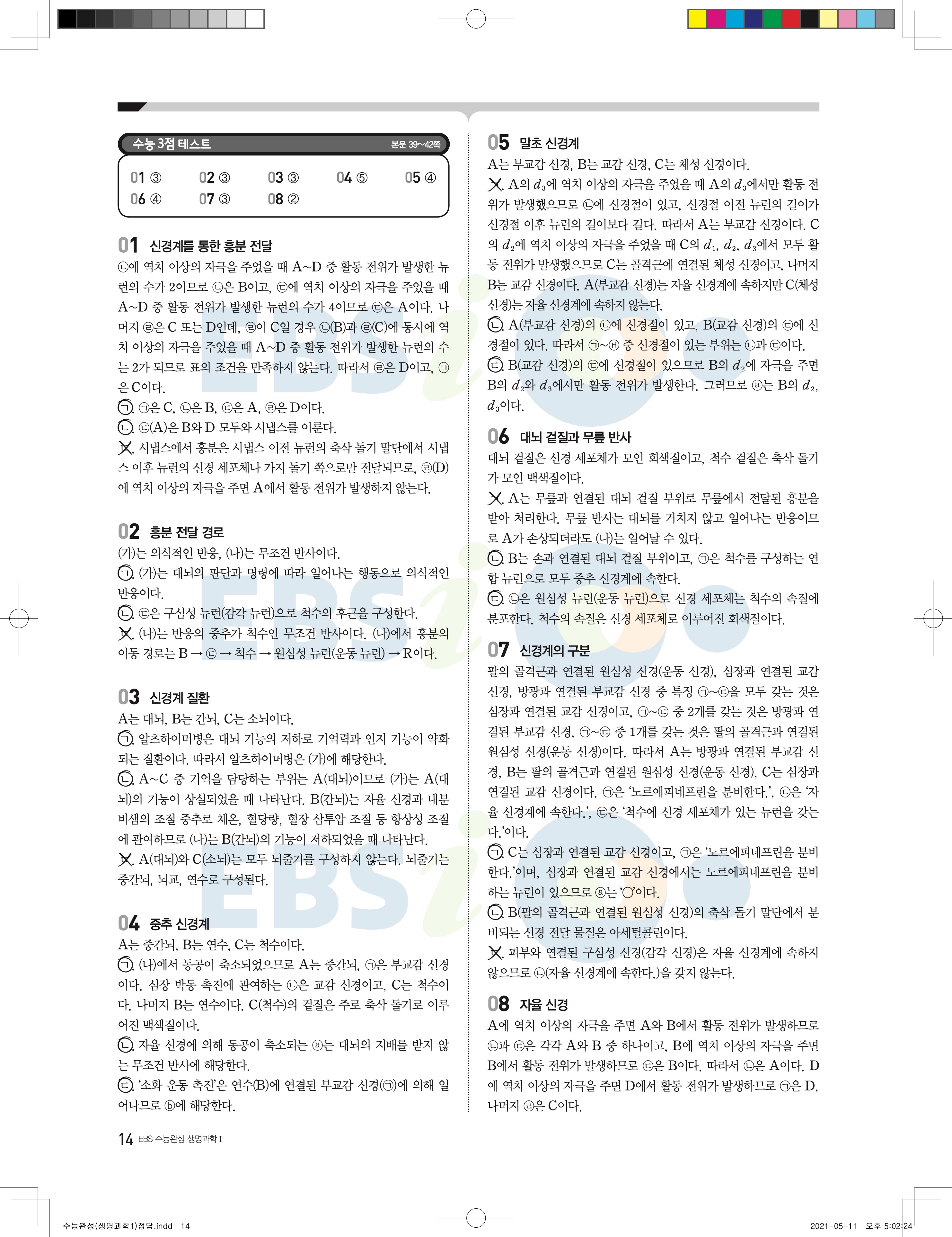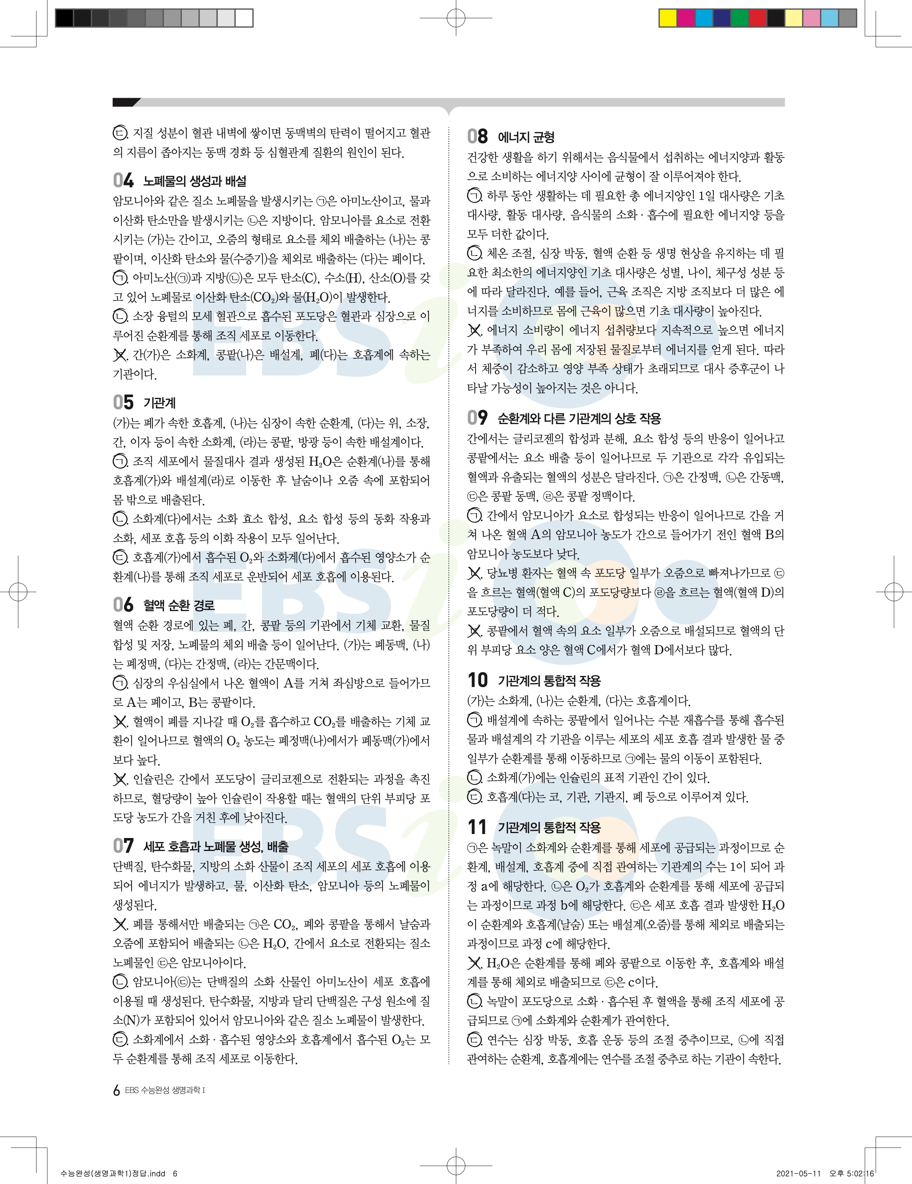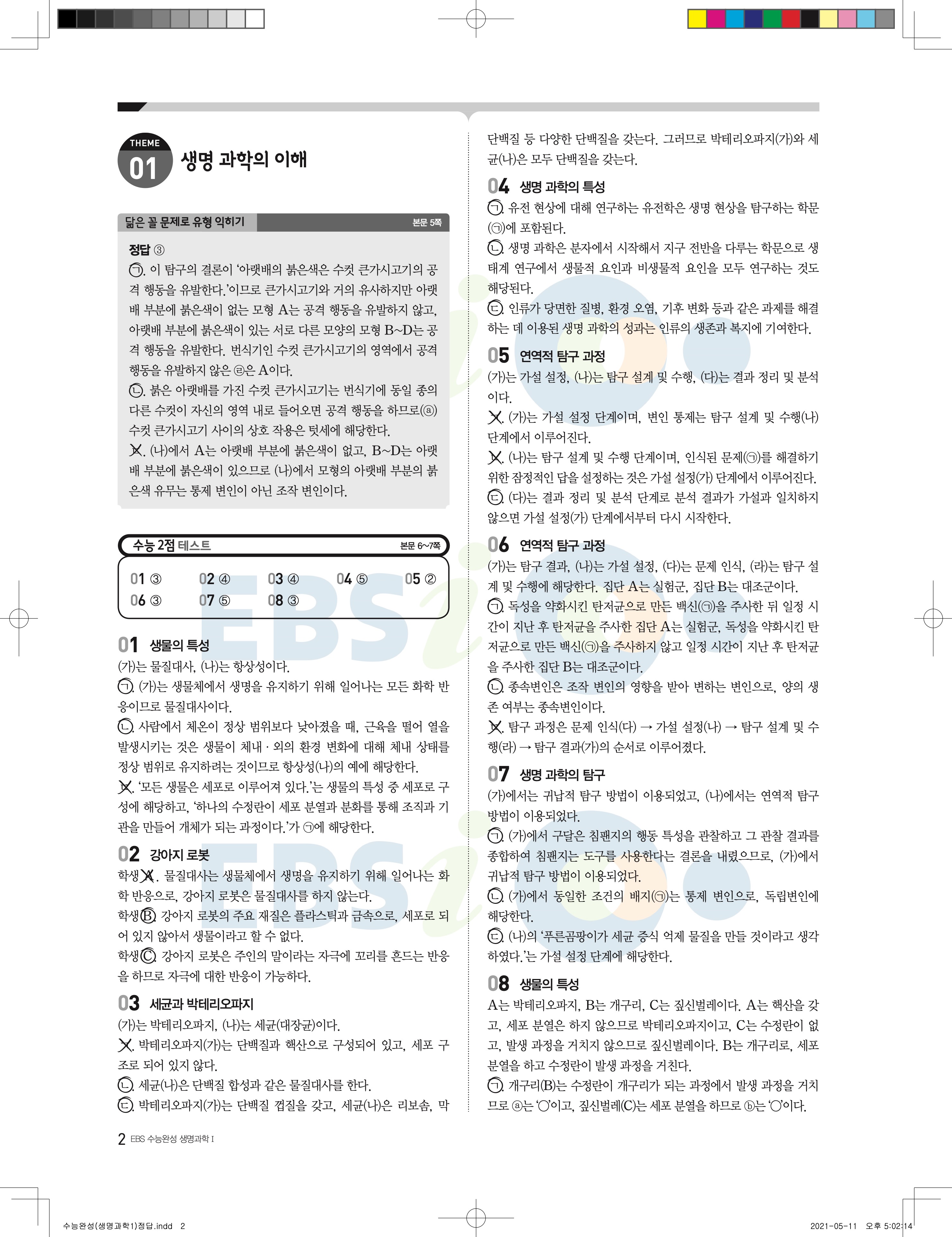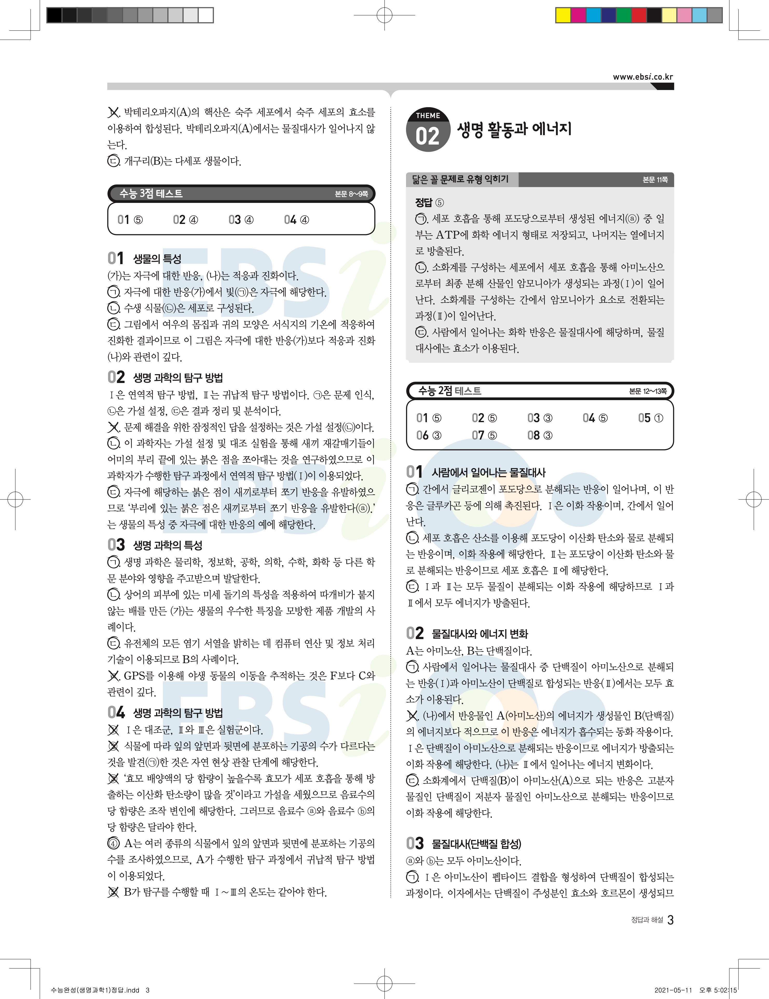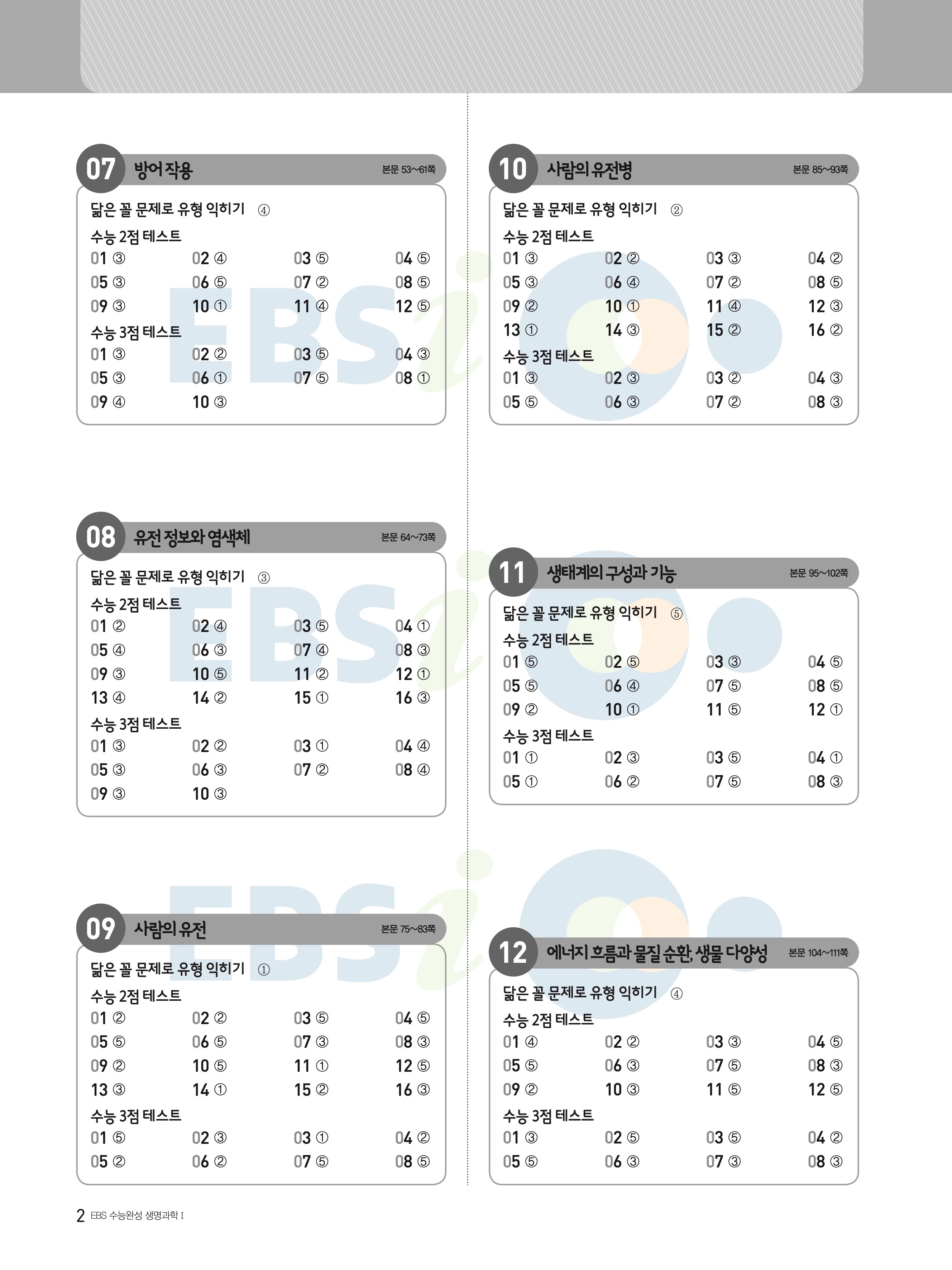 2022 EBS 수능완성 과학탐구영역 생명과학1 답지 해설 바로보는 사진답지 모바일최적화