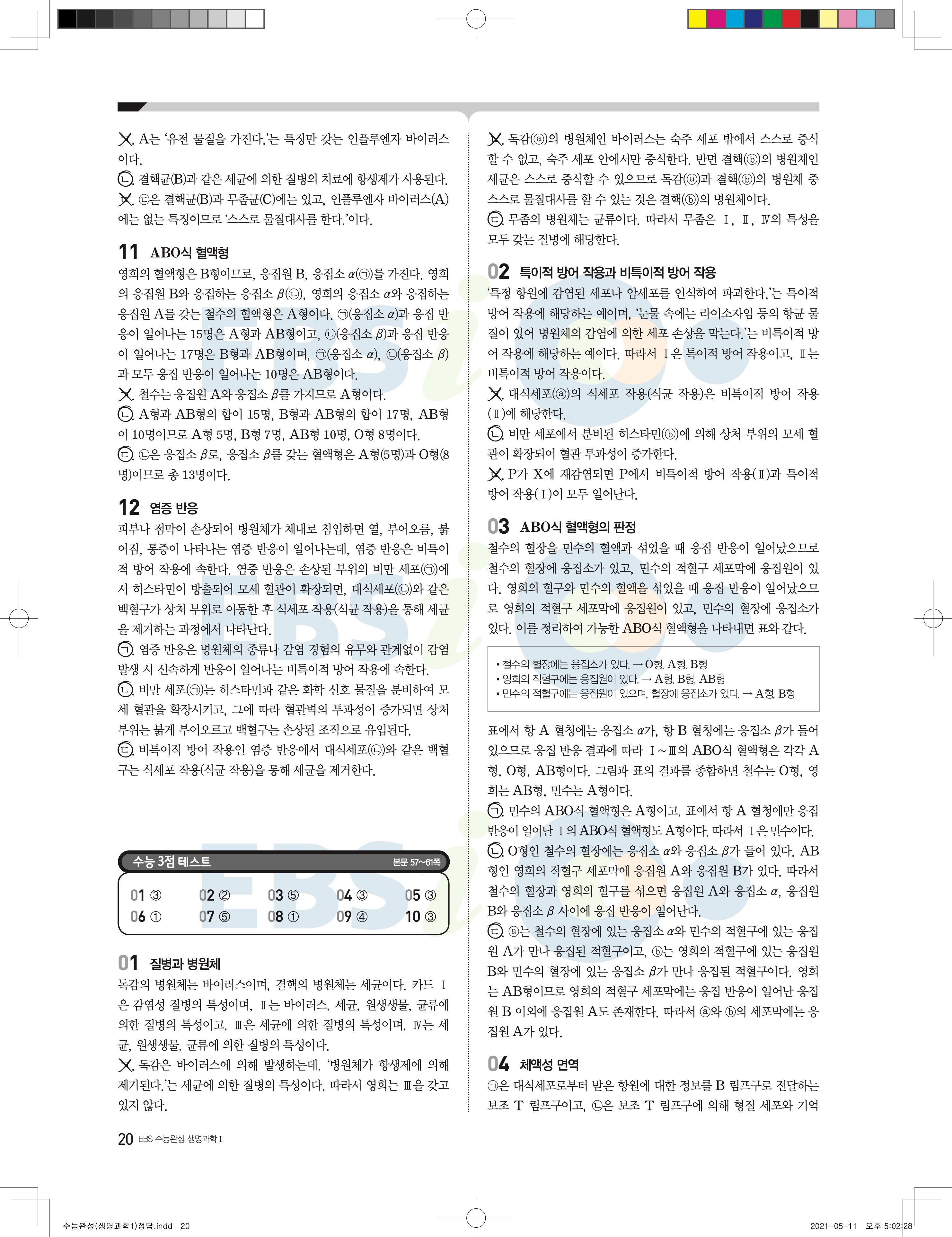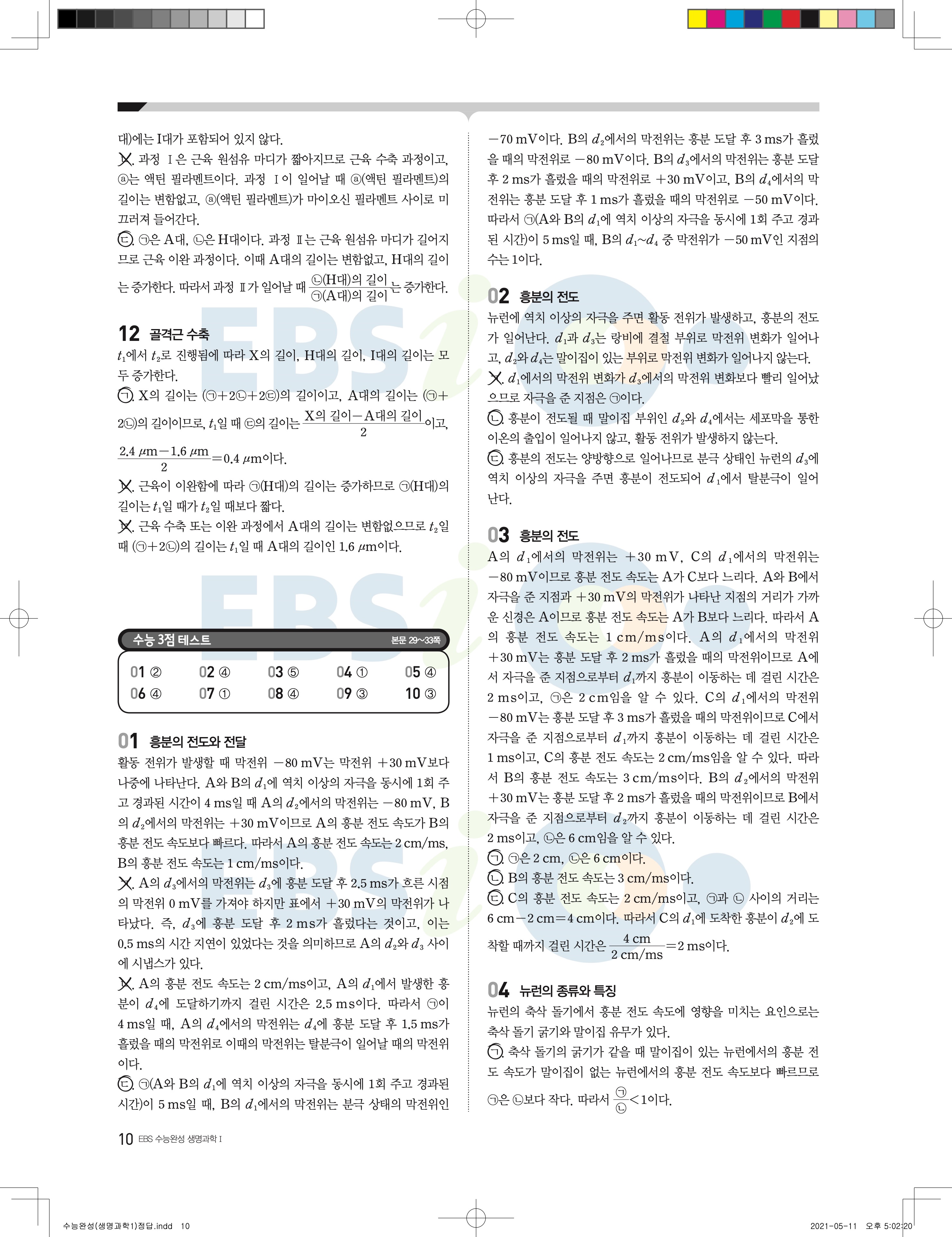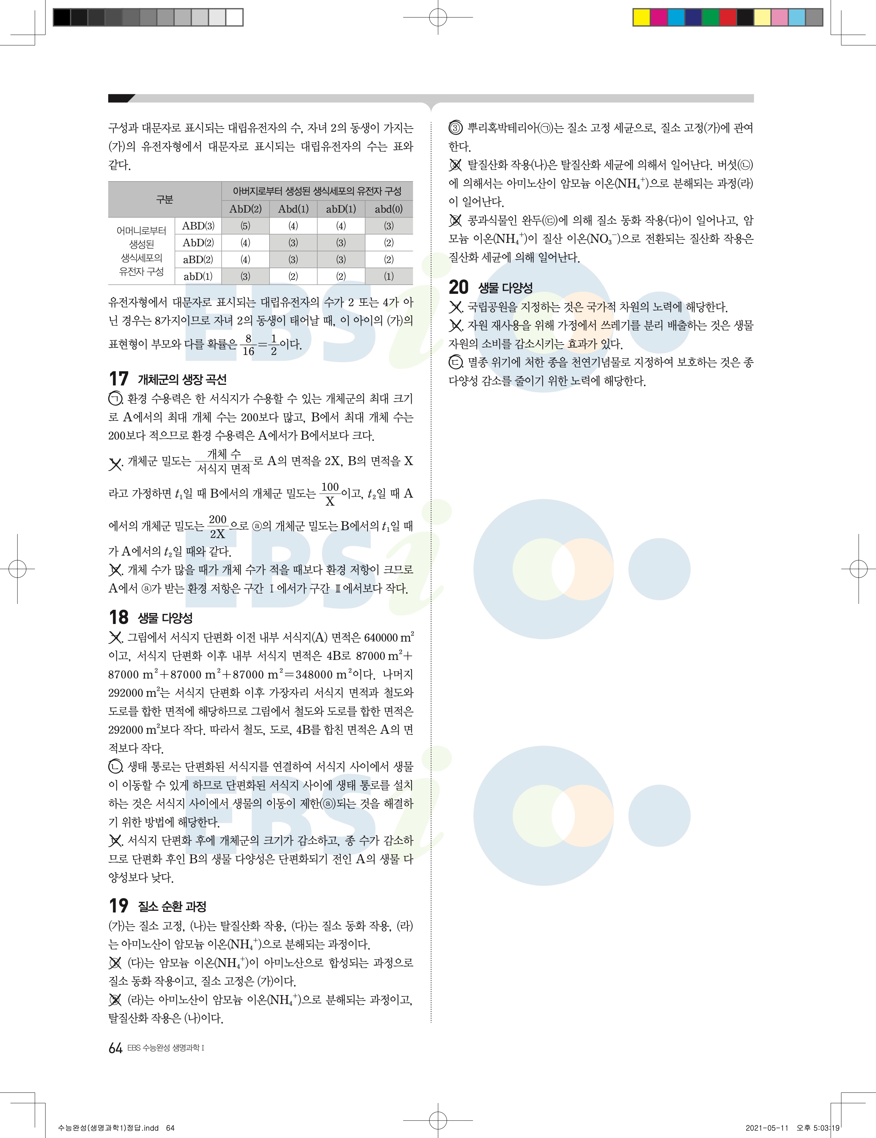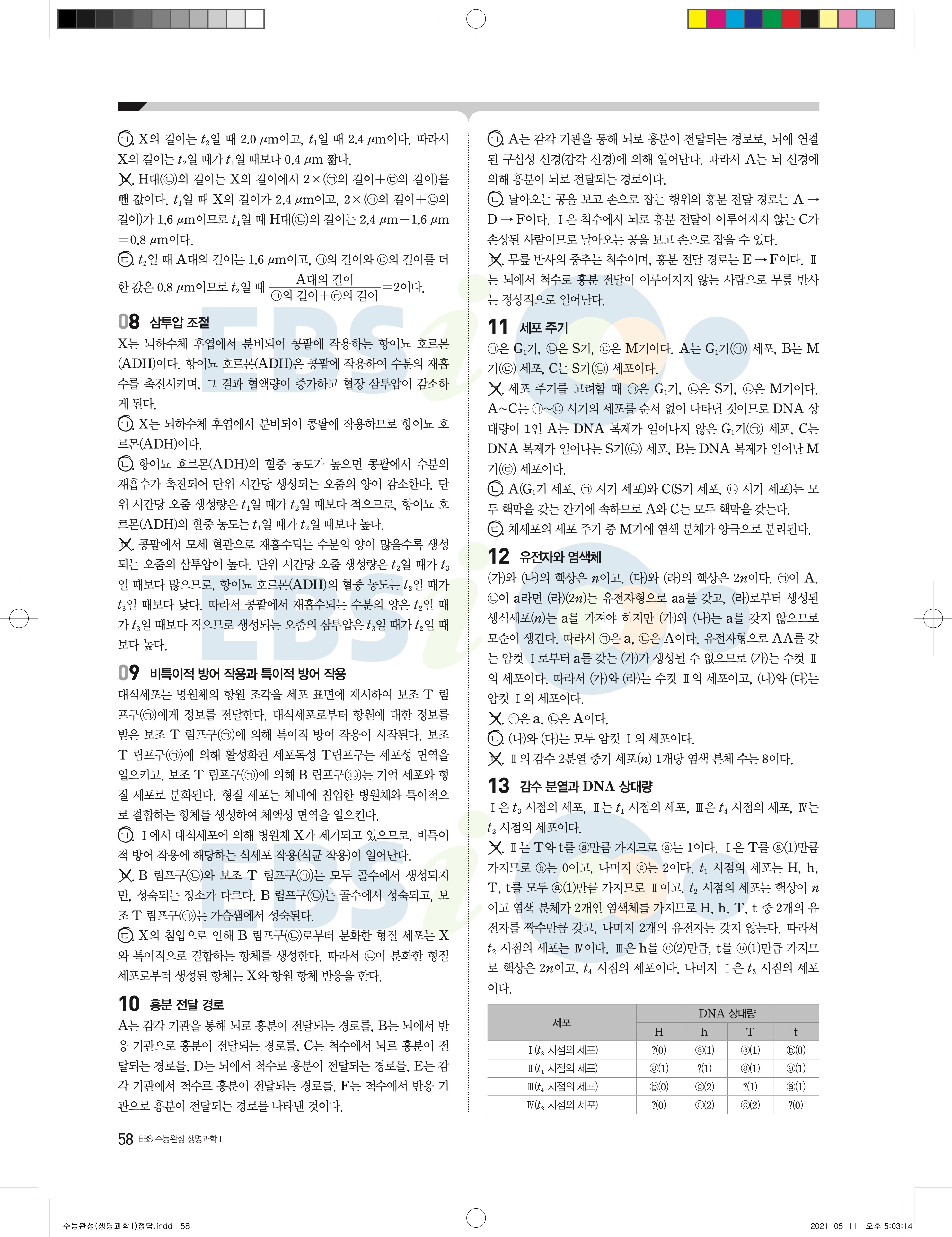 2022 EBS 수능완성 과학탐구영역 생명과학1 답지 해설 바로보는 사진답지 모바일최적화