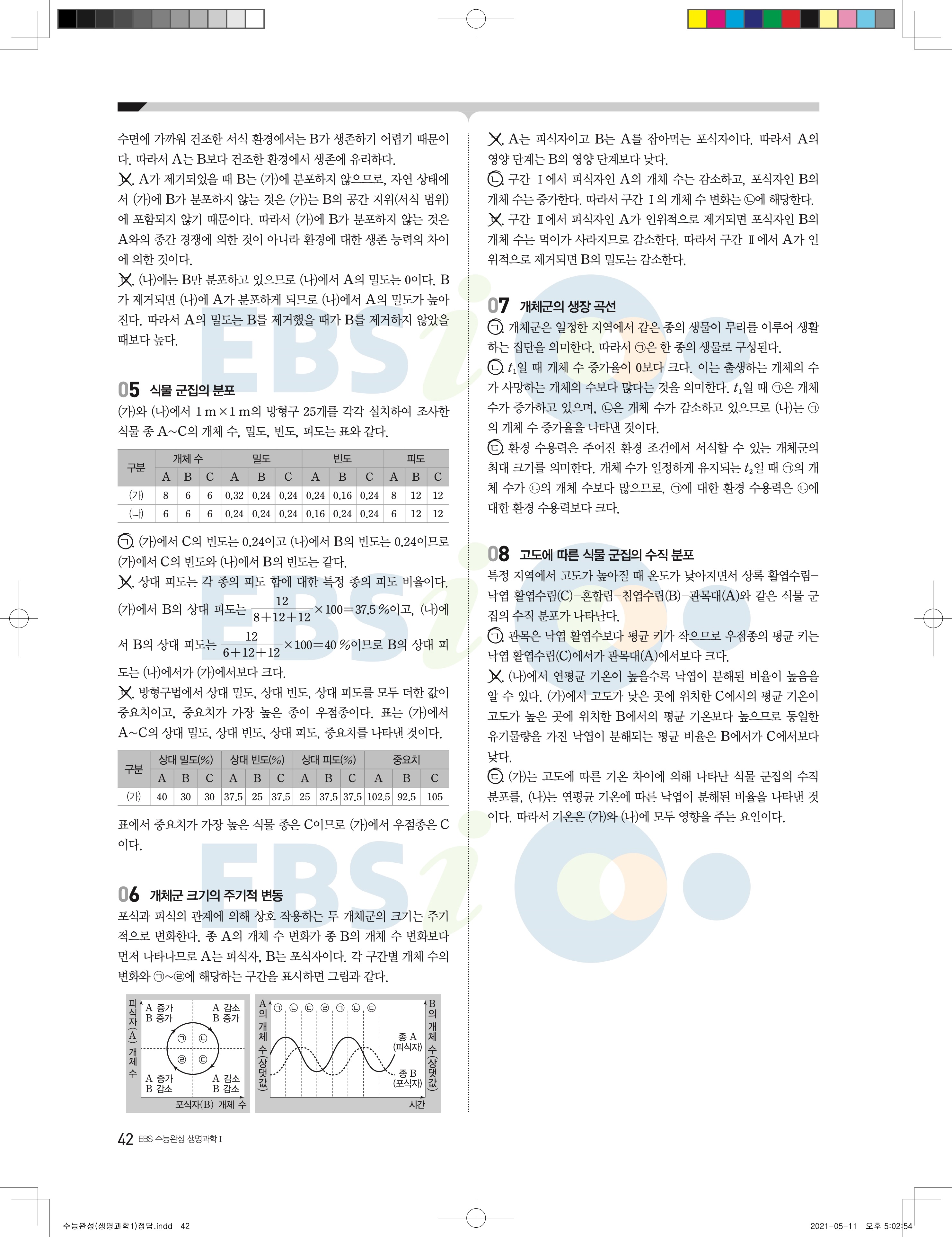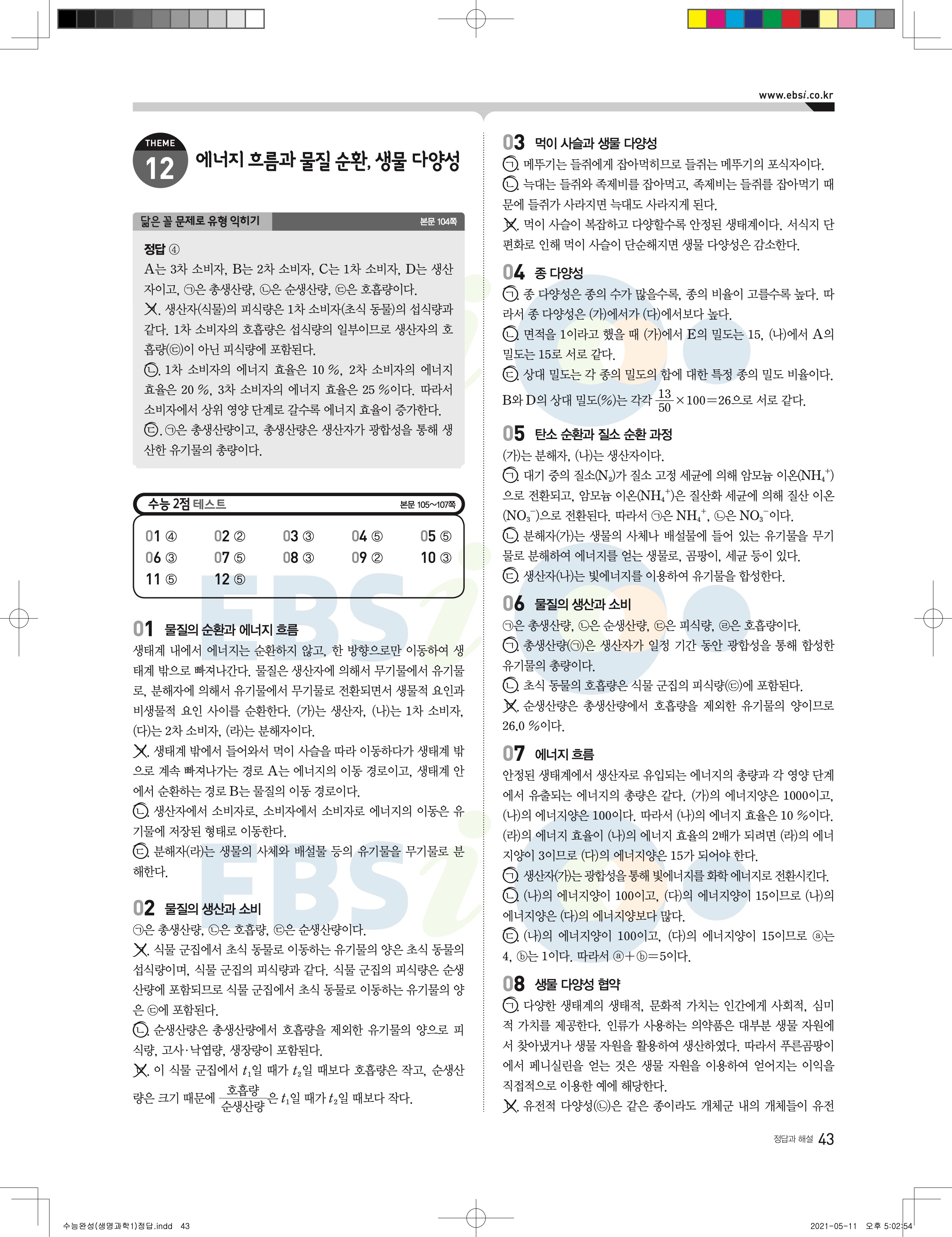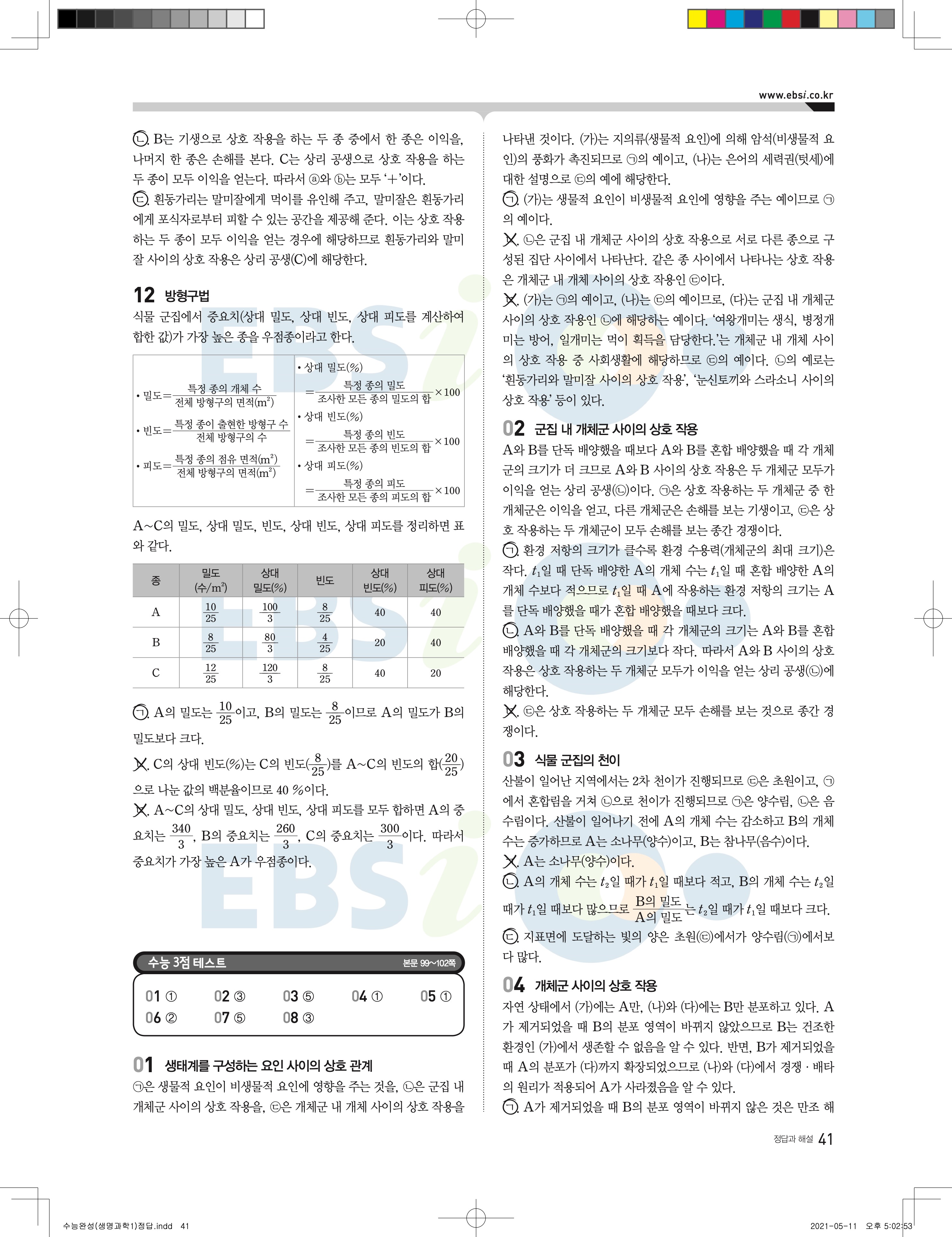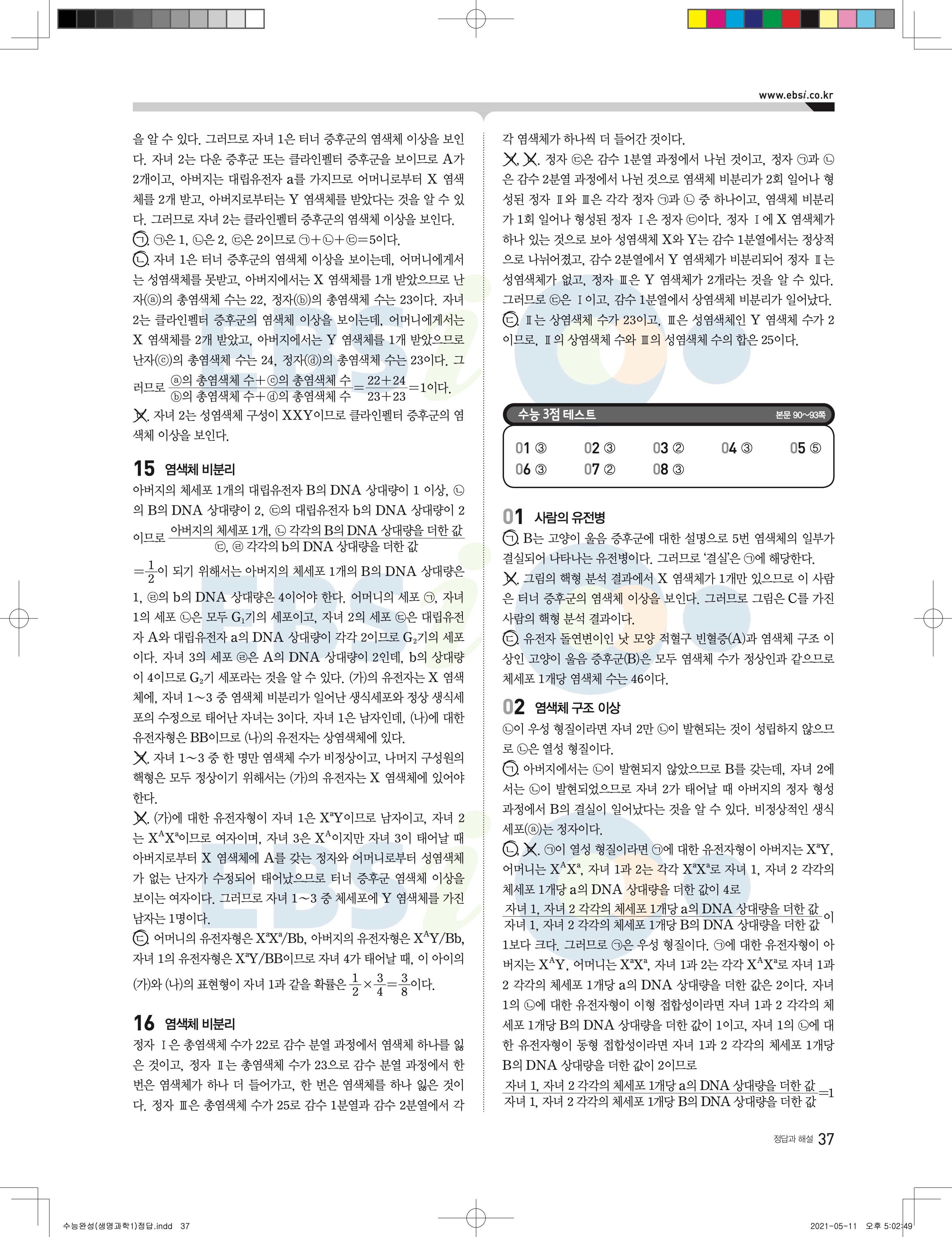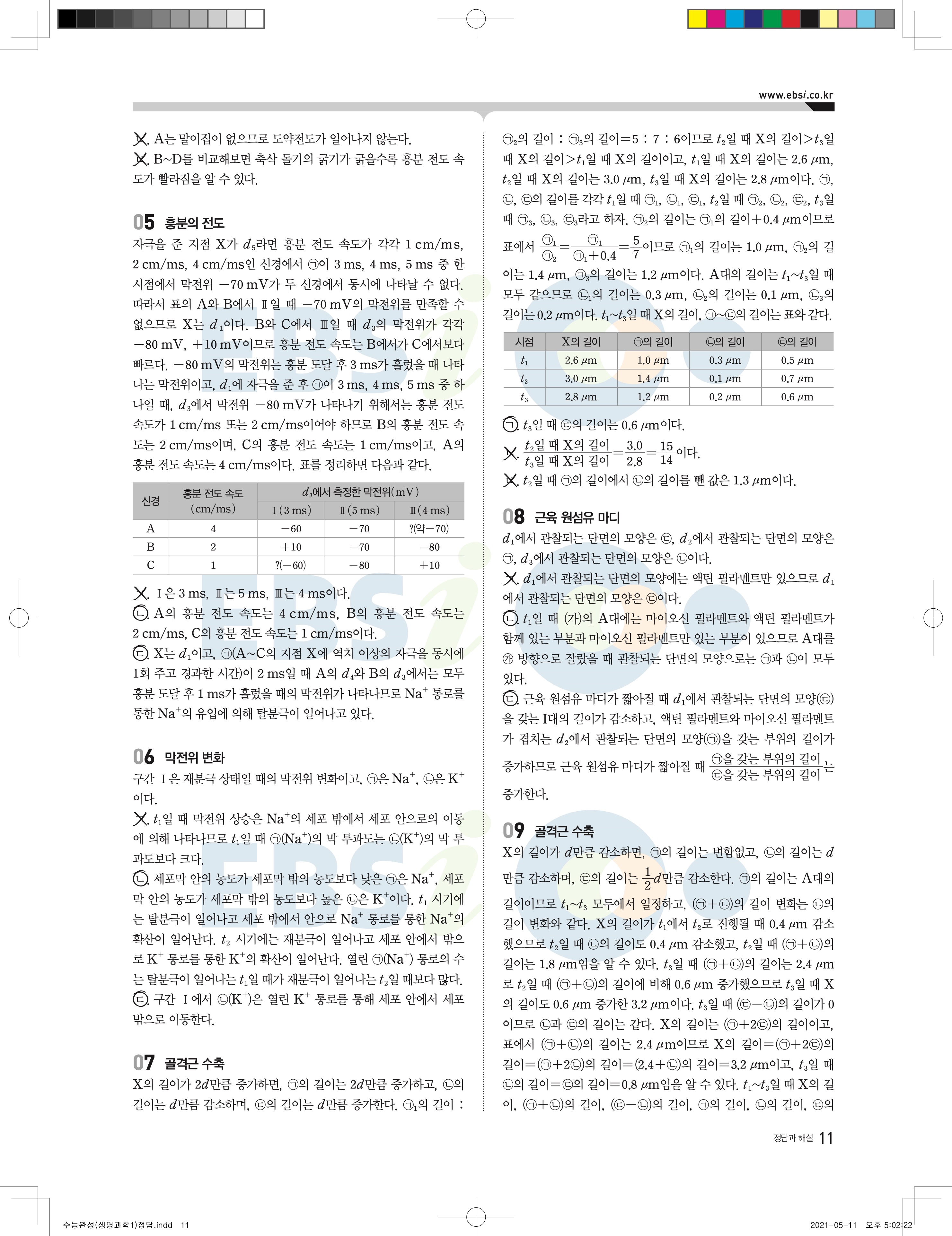 2022 EBS 수능완성 과학탐구영역 생명과학1 답지 해설 바로보는 사진답지 모바일최적화