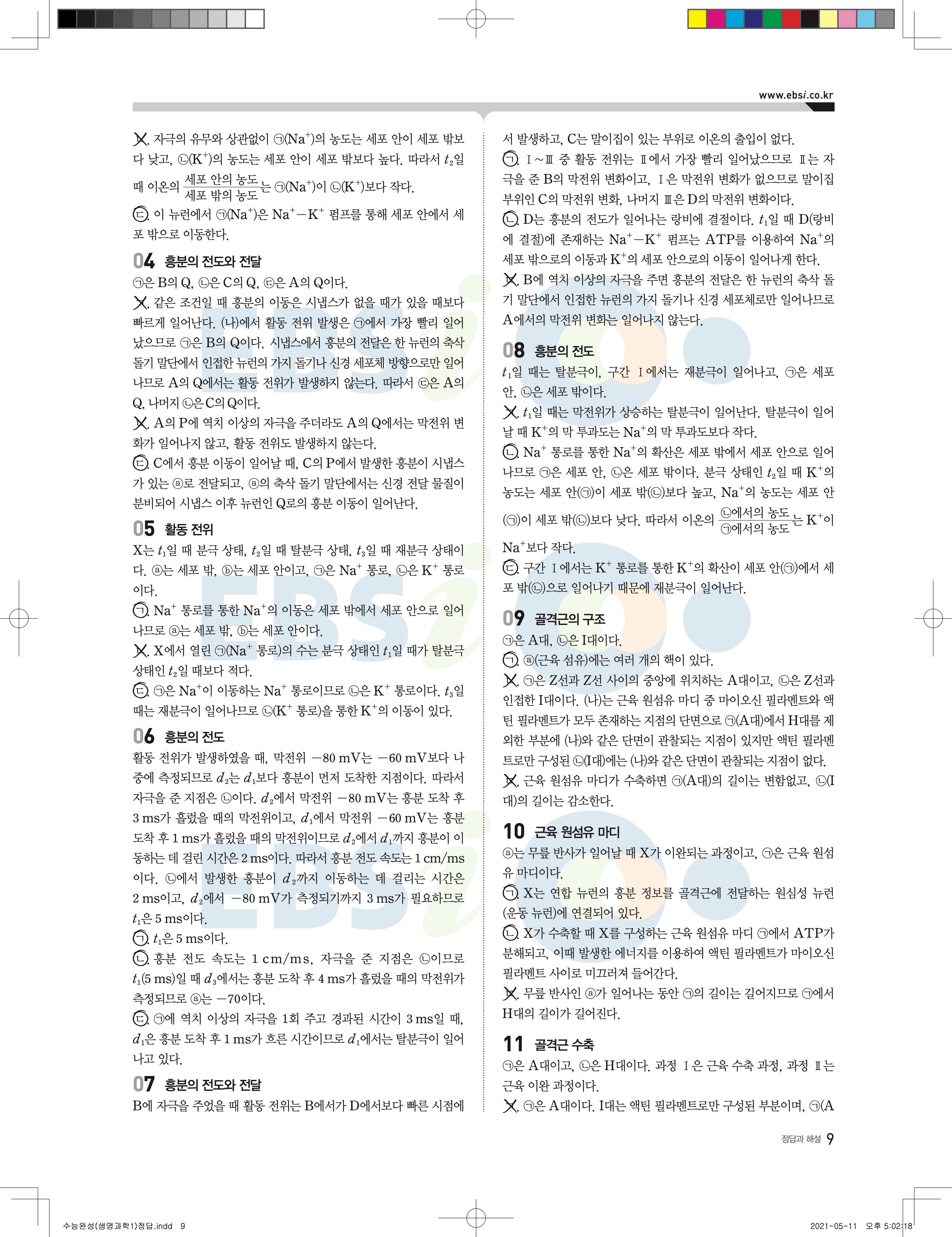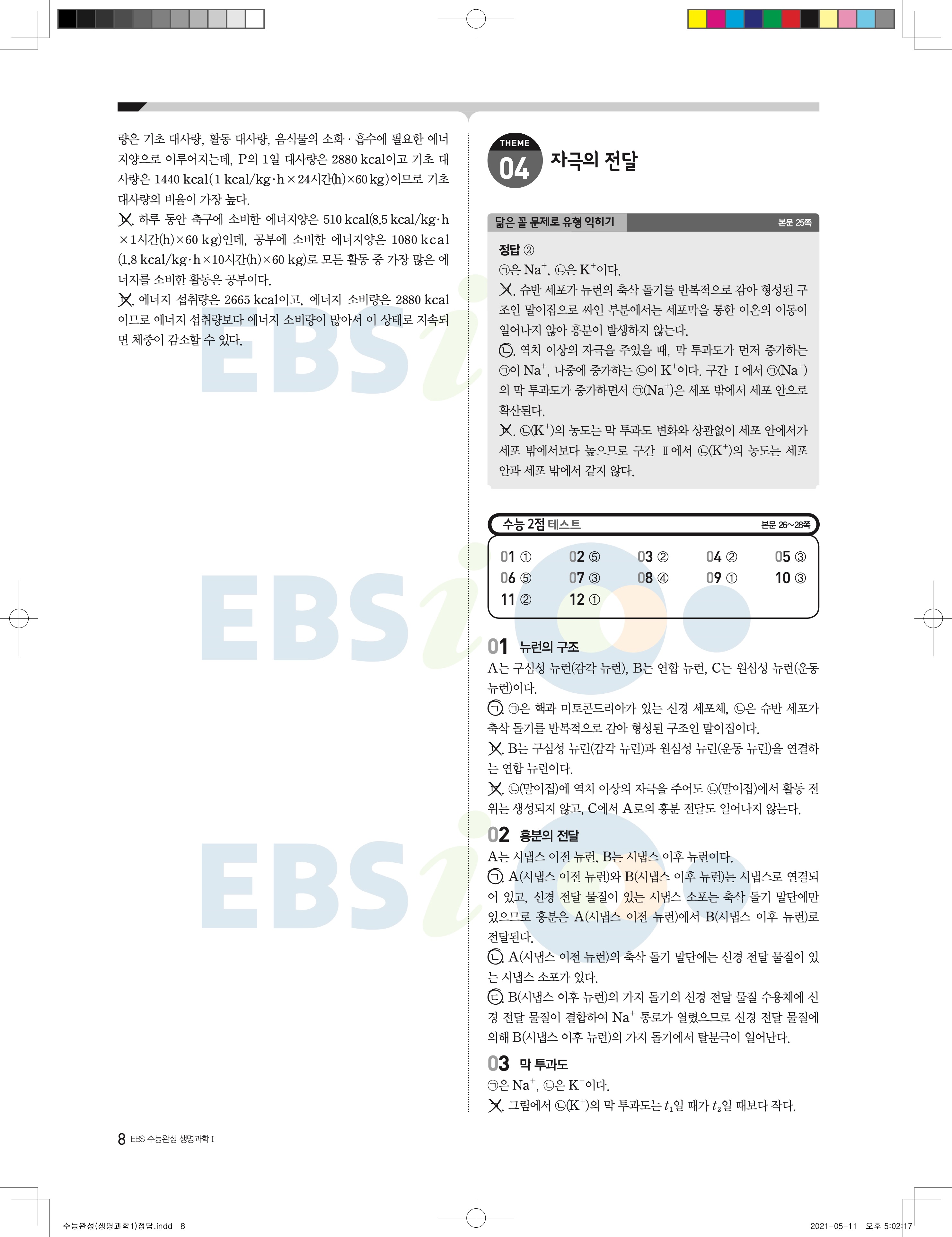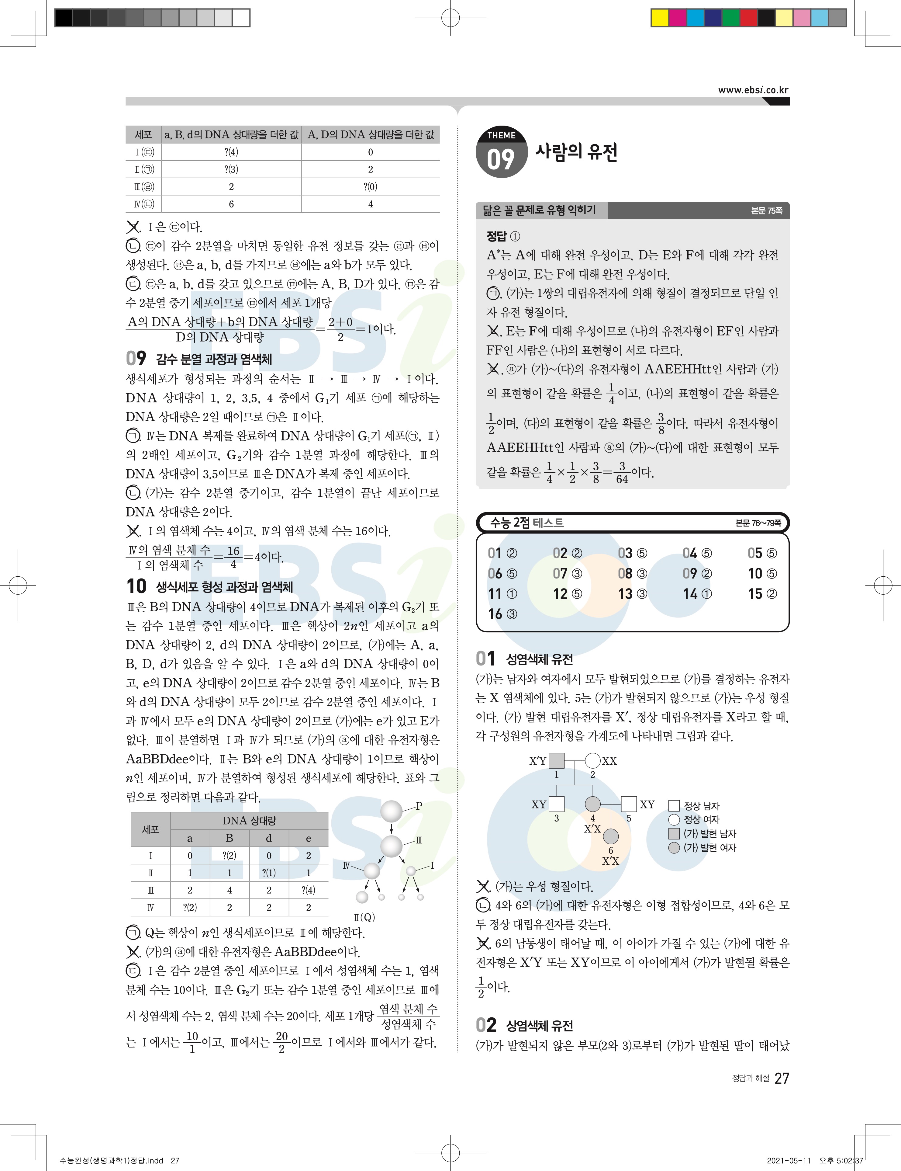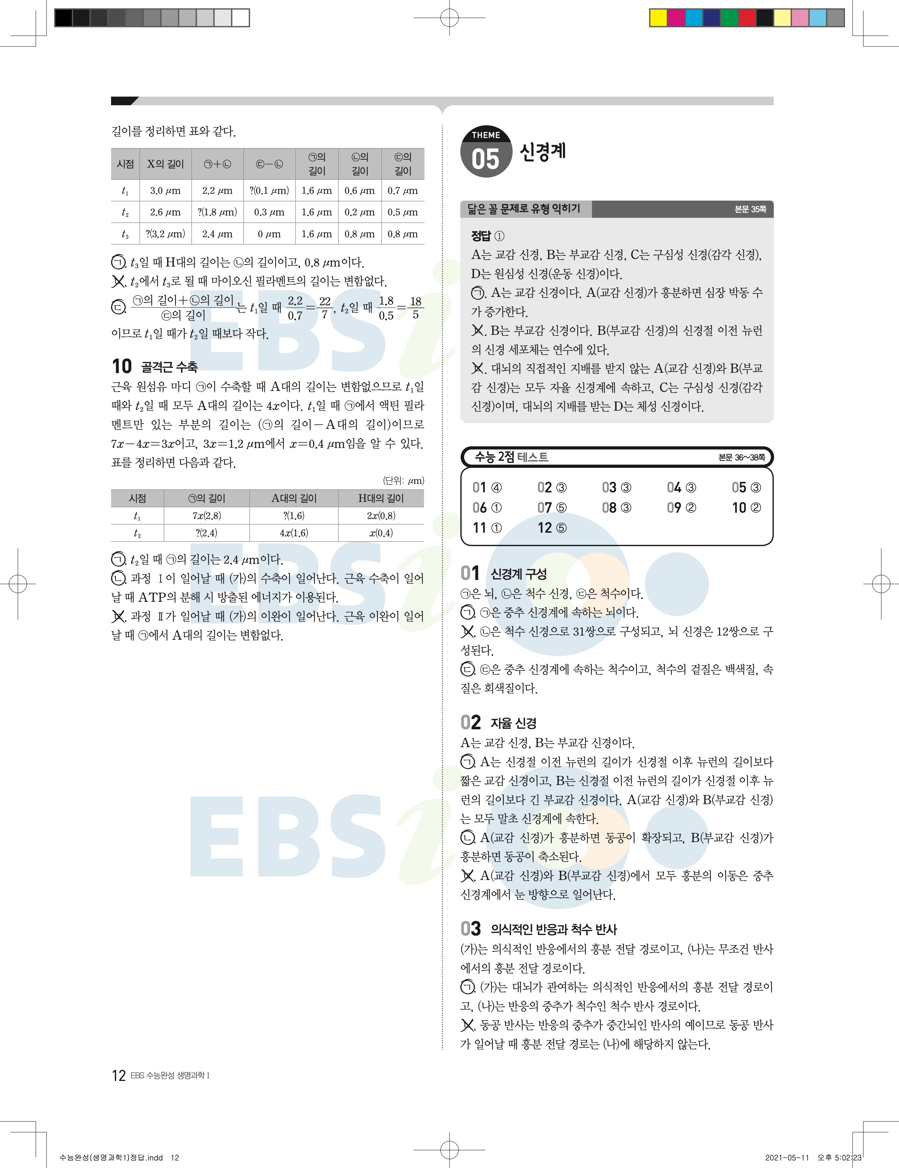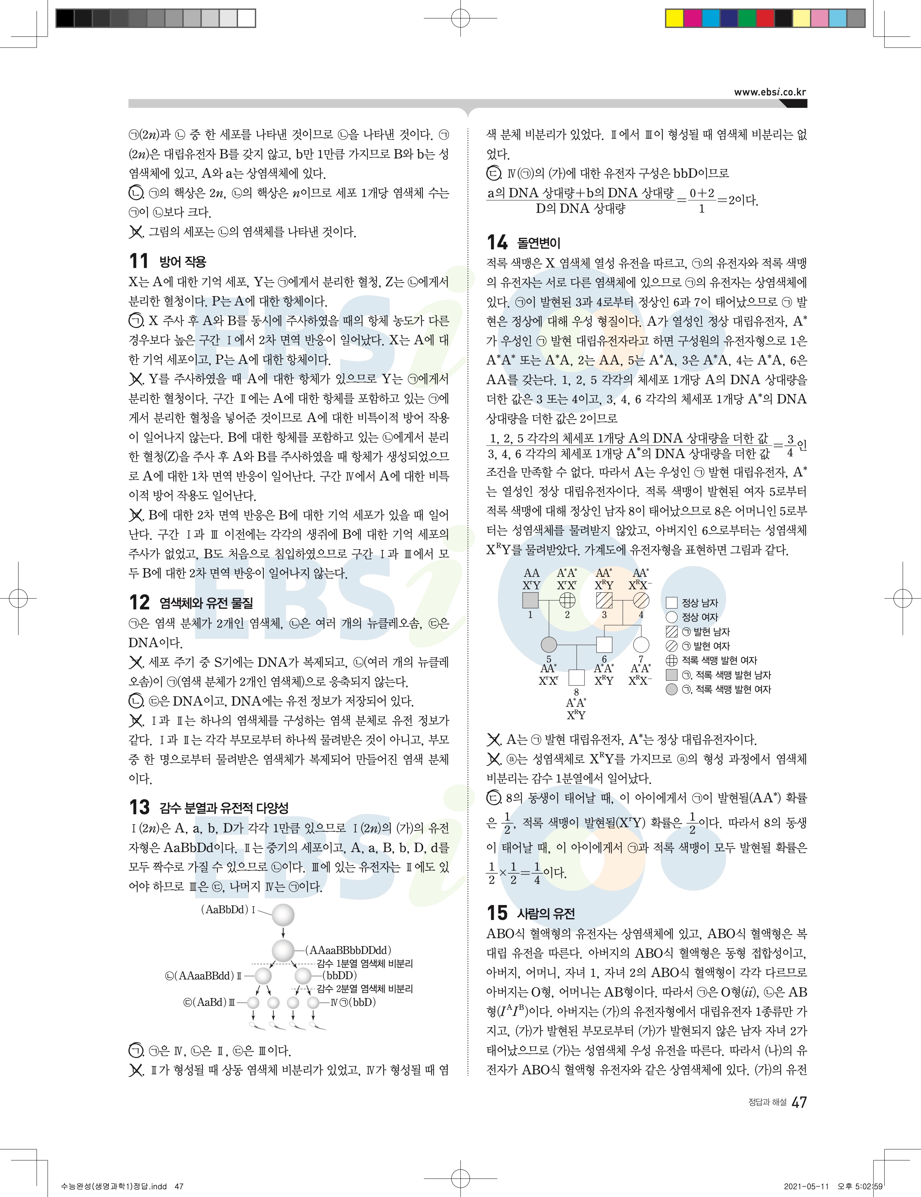 2022 EBS 수능완성 과학탐구영역 생명과학1 답지 해설 바로보는 사진답지 모바일최적화