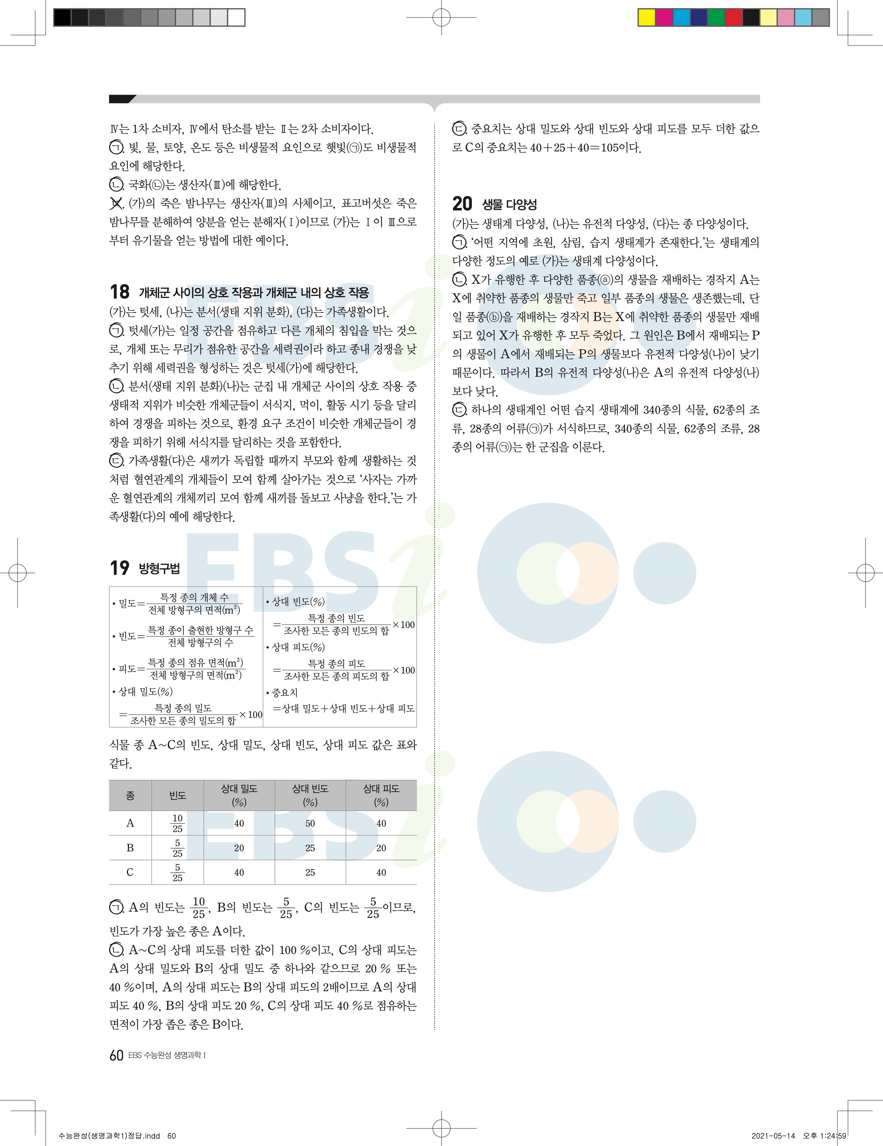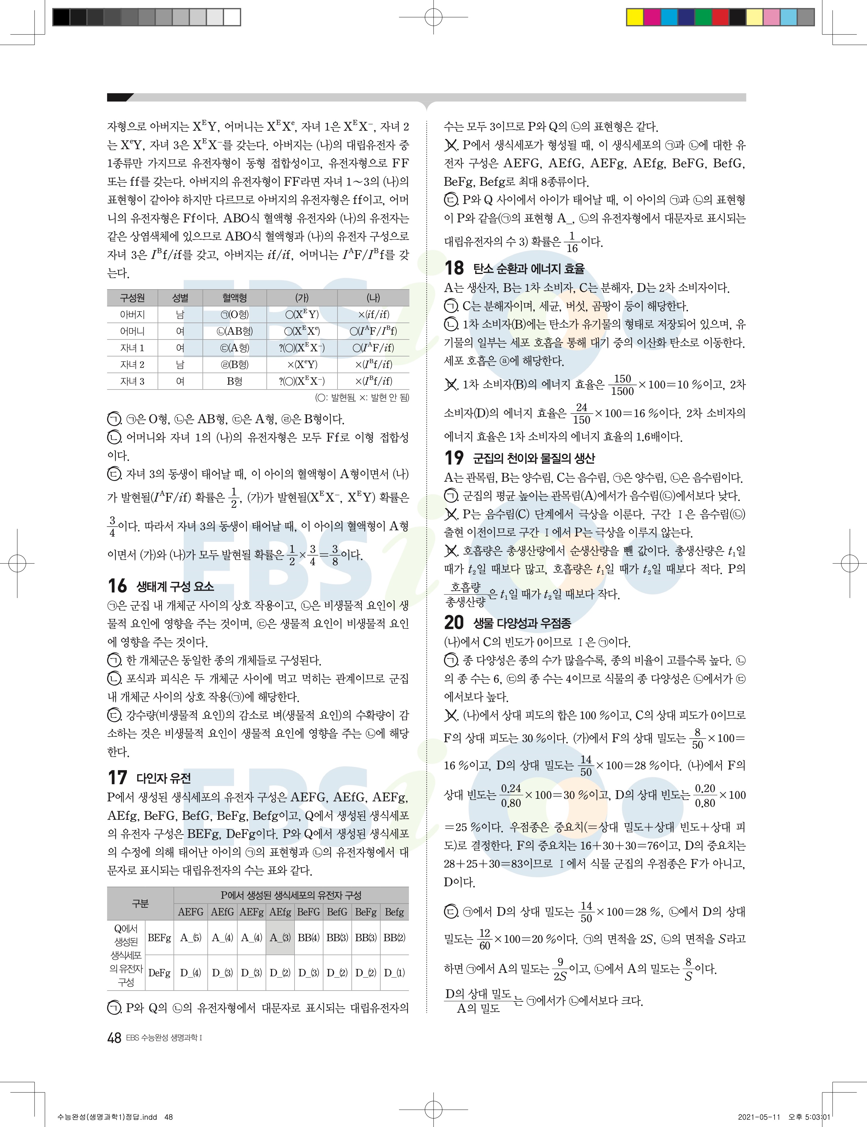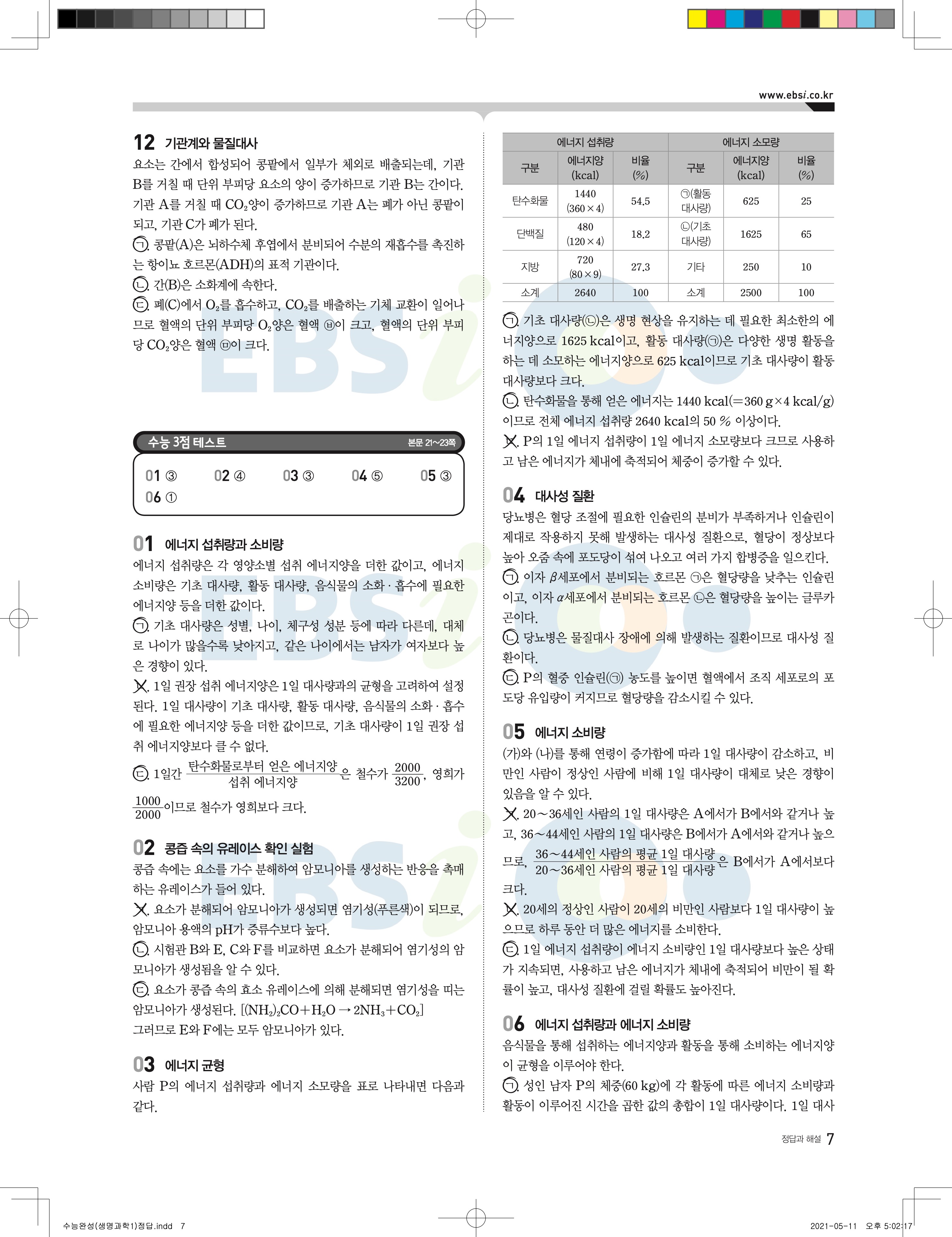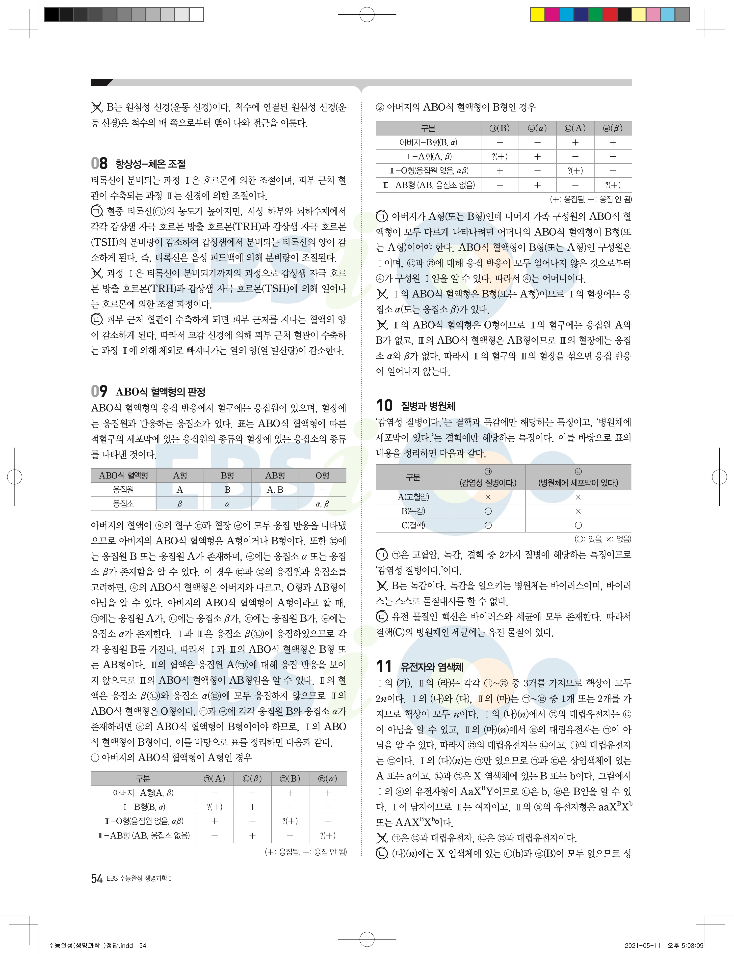 2022 EBS 수능완성 과학탐구영역 생명과학1 답지 해설 바로보는 사진답지 모바일최적화