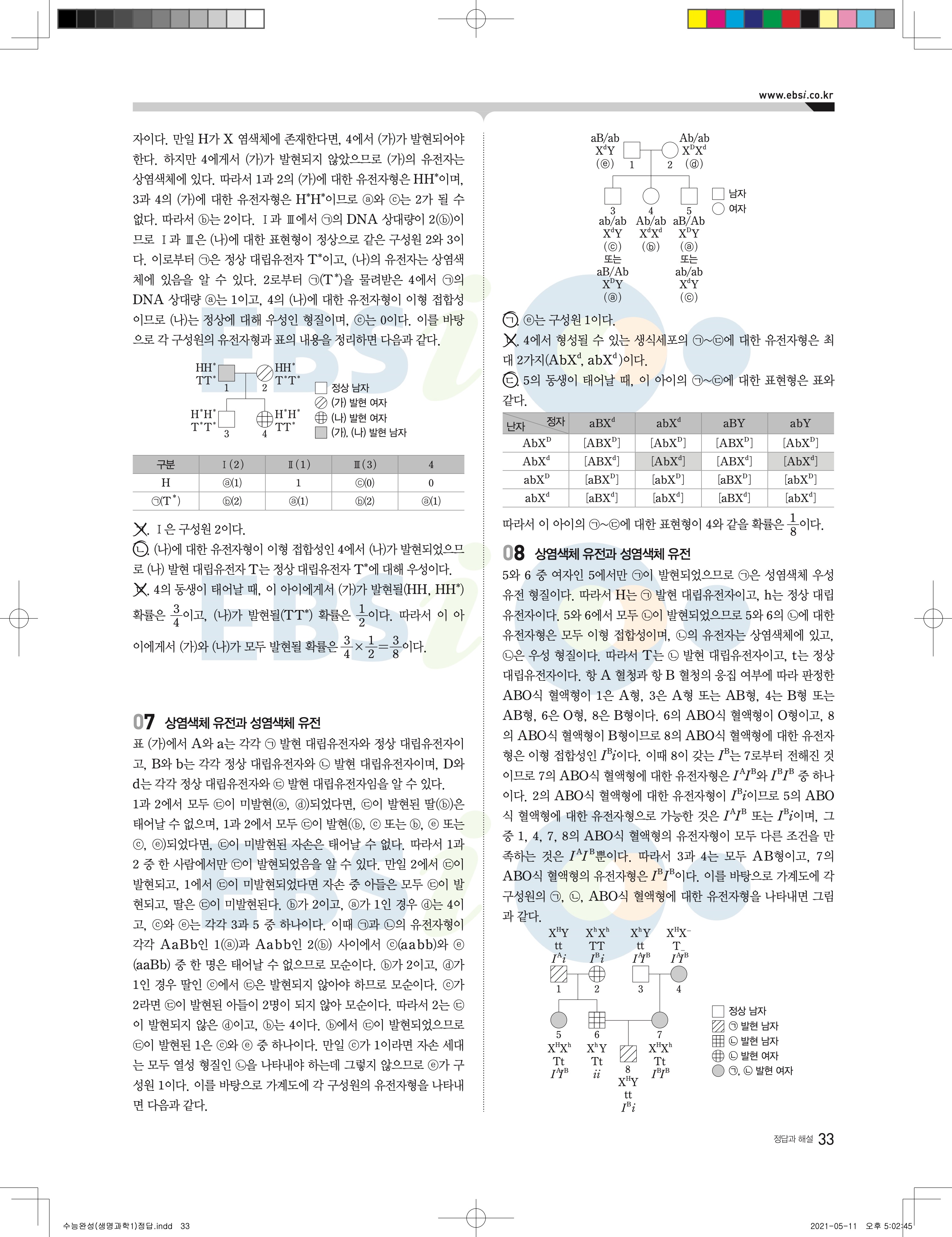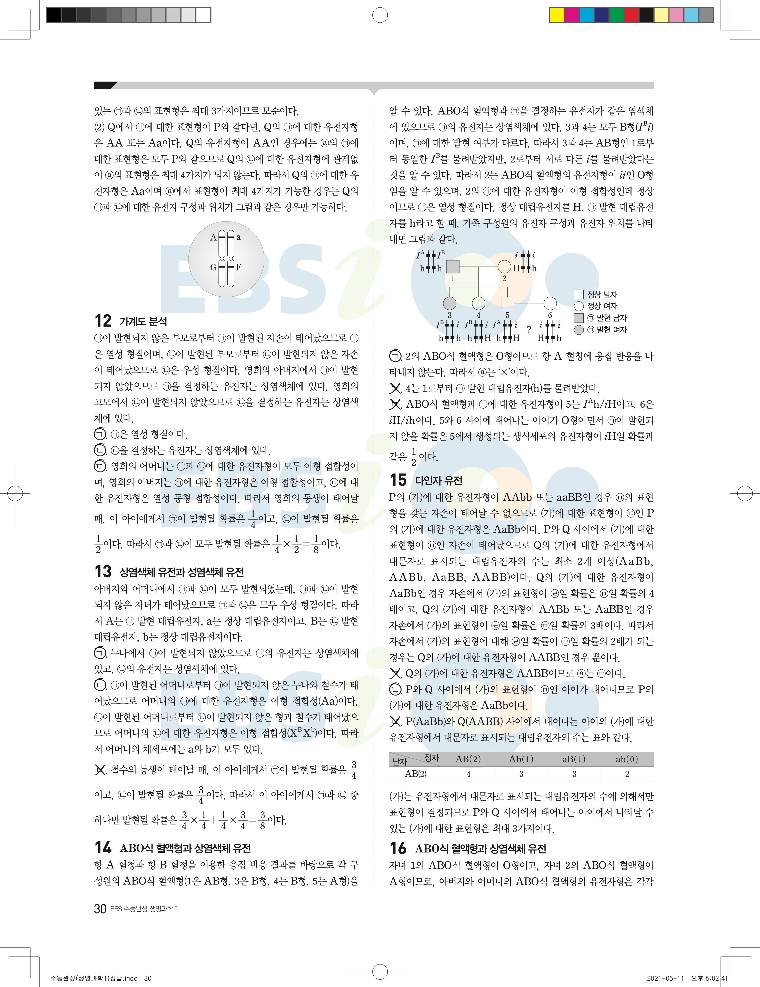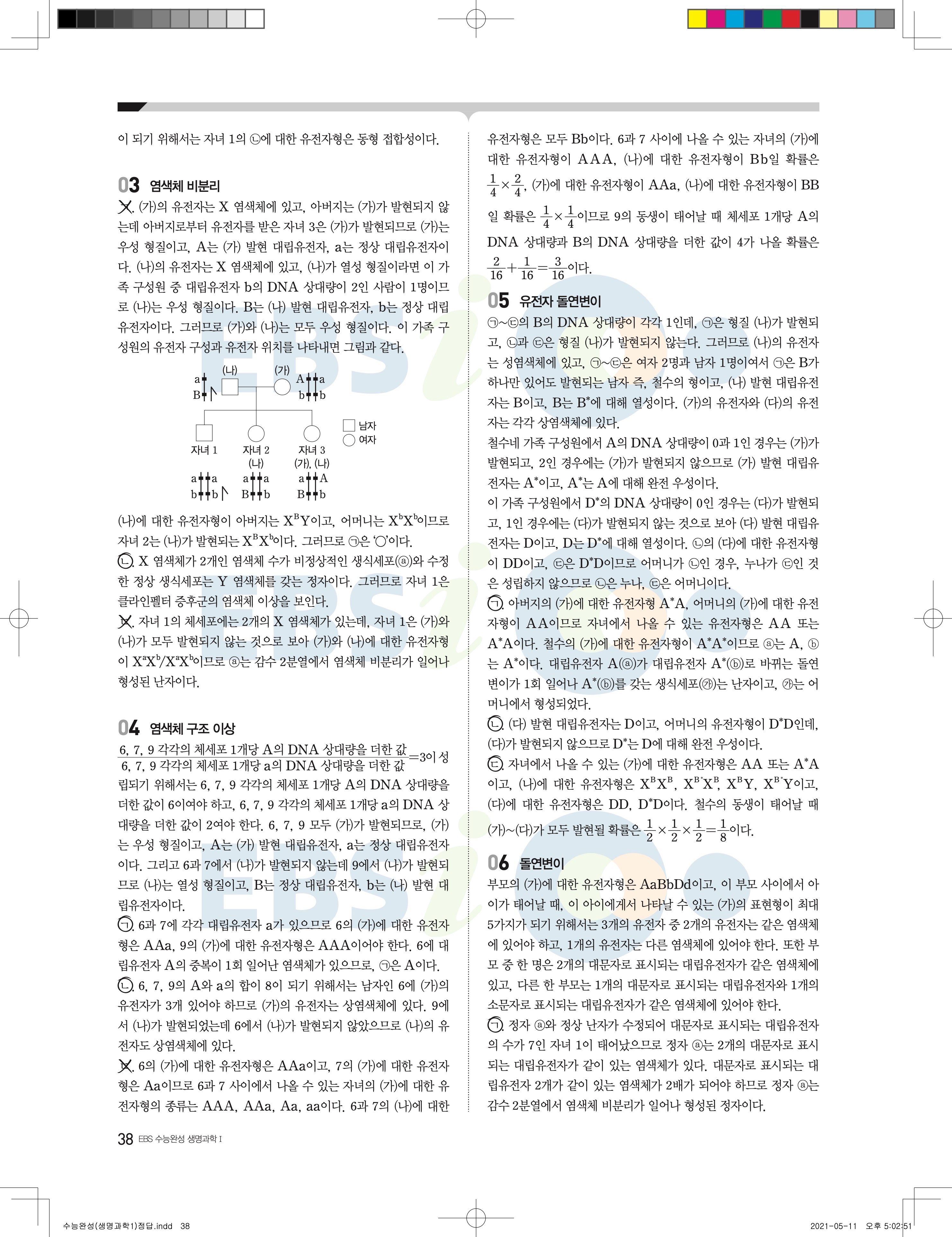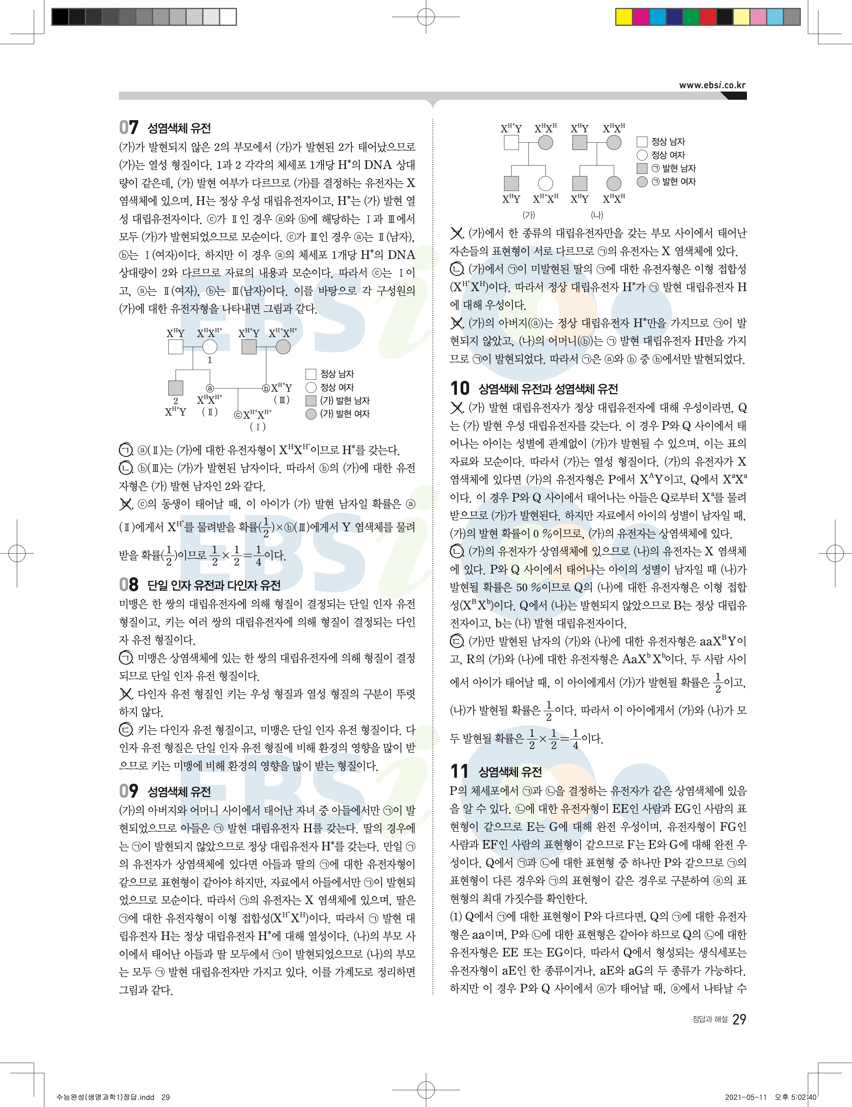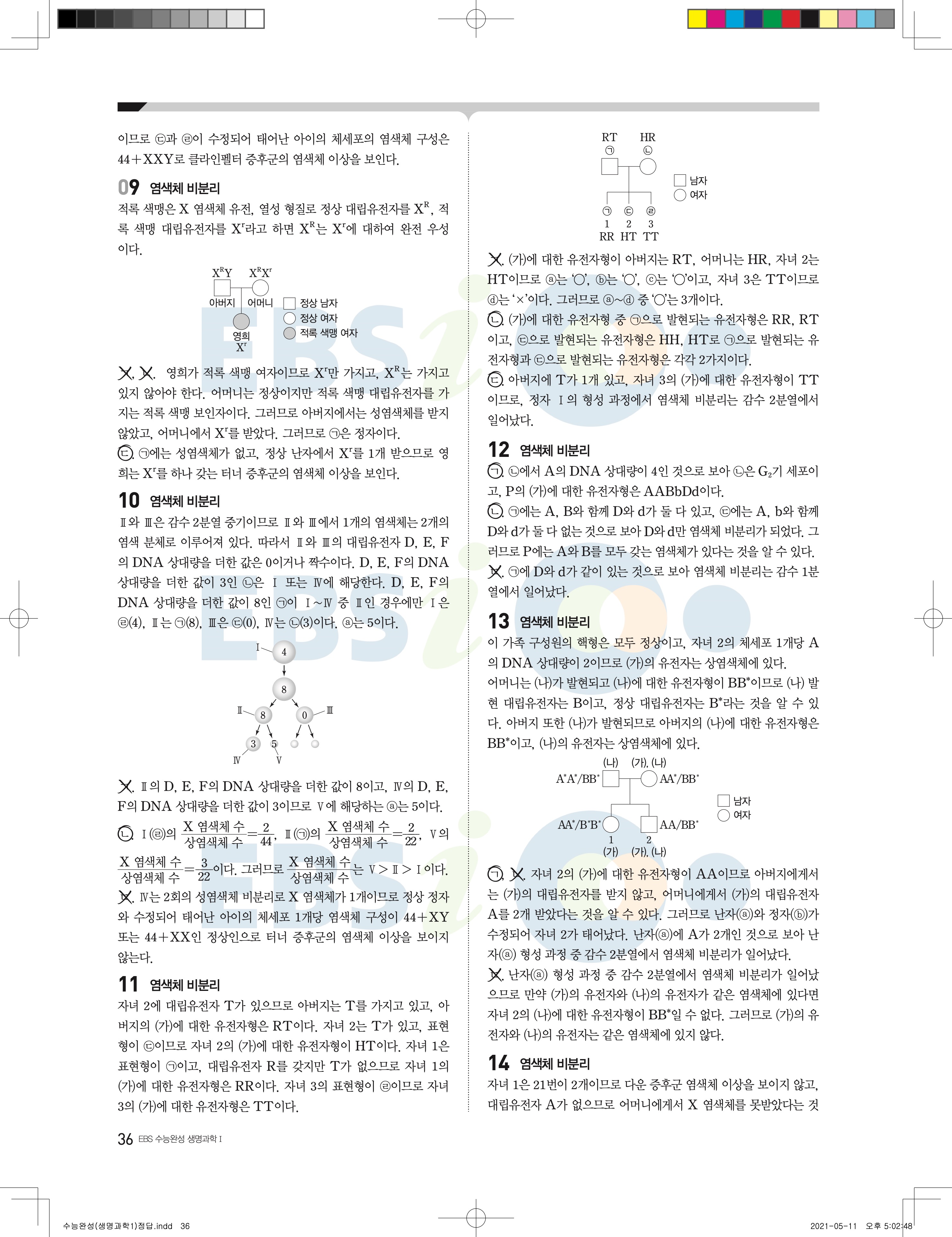 2022 EBS 수능완성 과학탐구영역 생명과학1 답지 해설 바로보는 사진답지 모바일최적화