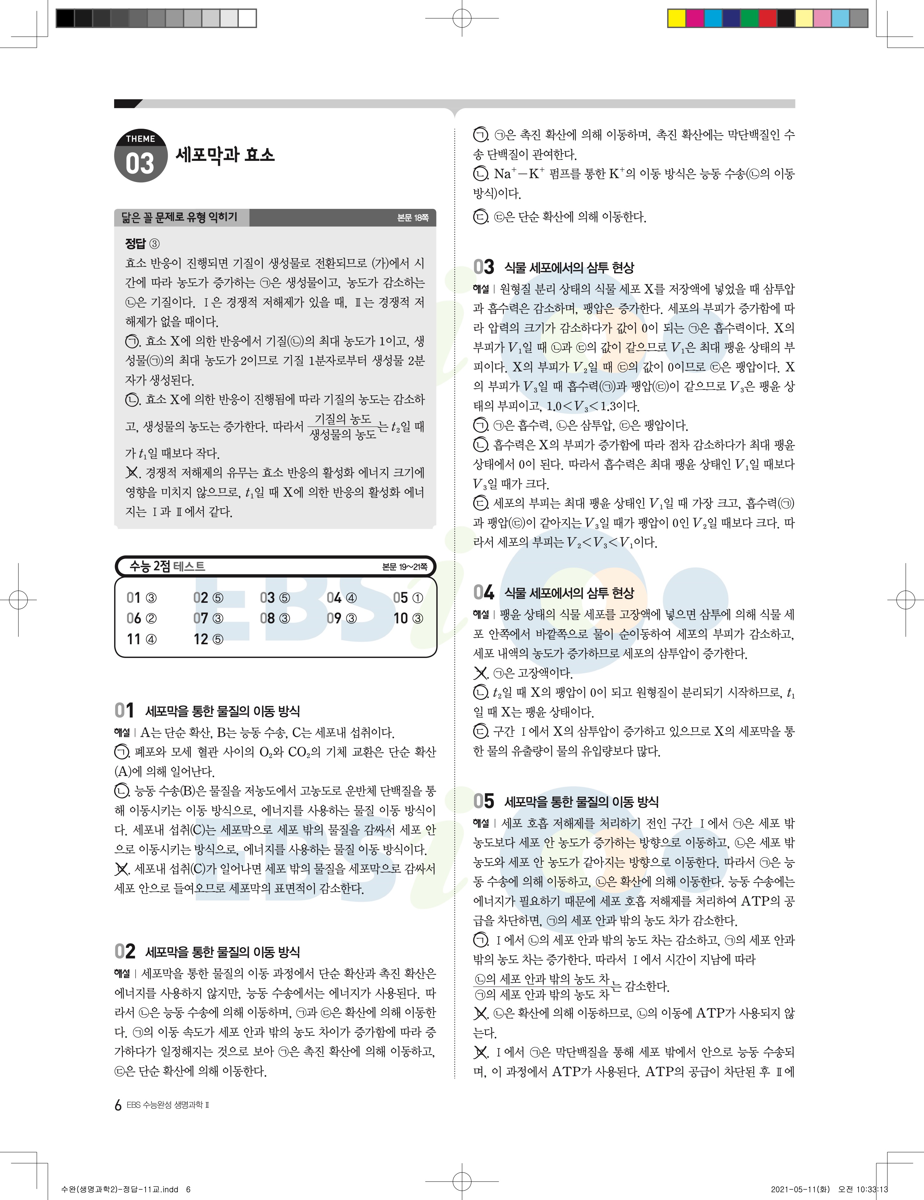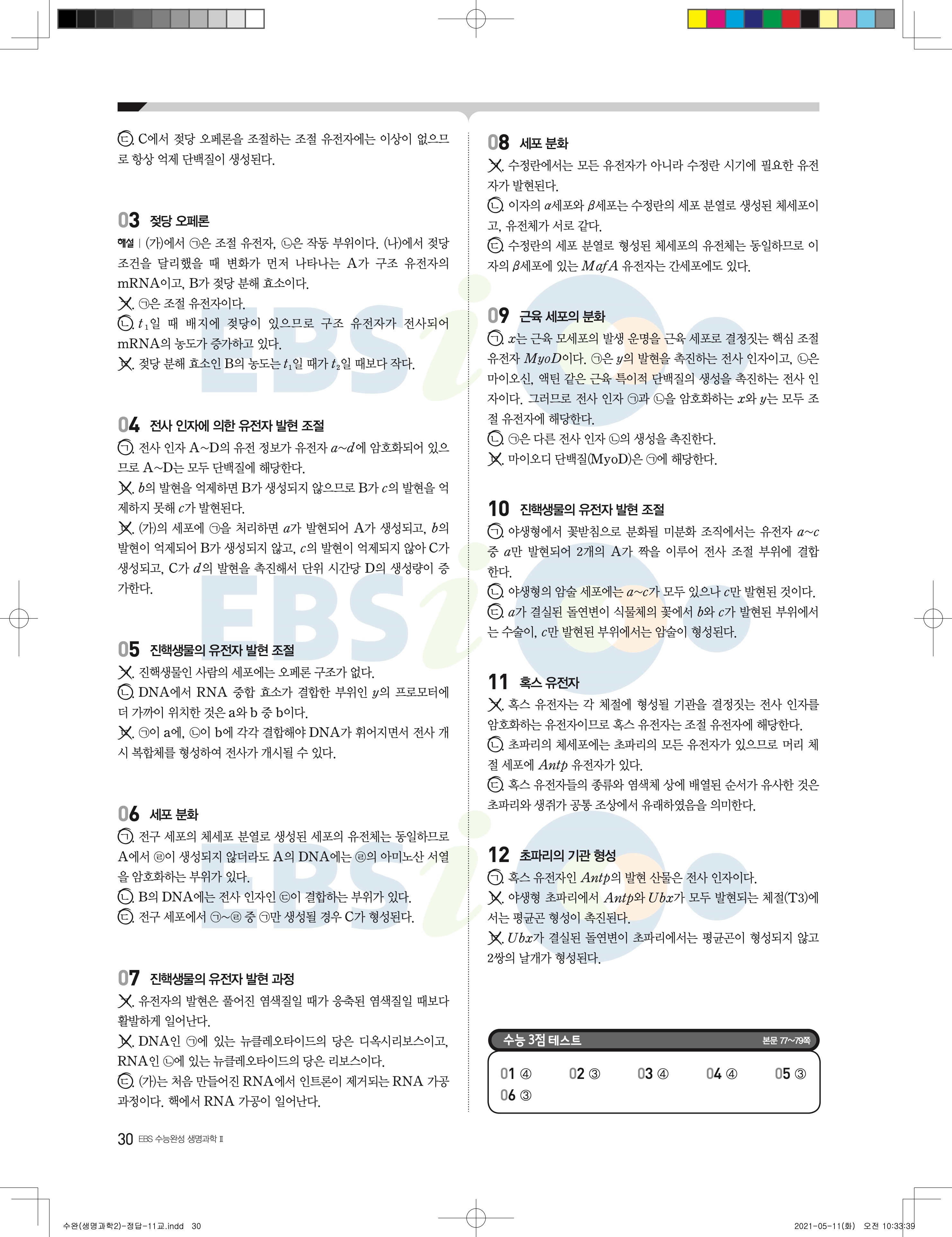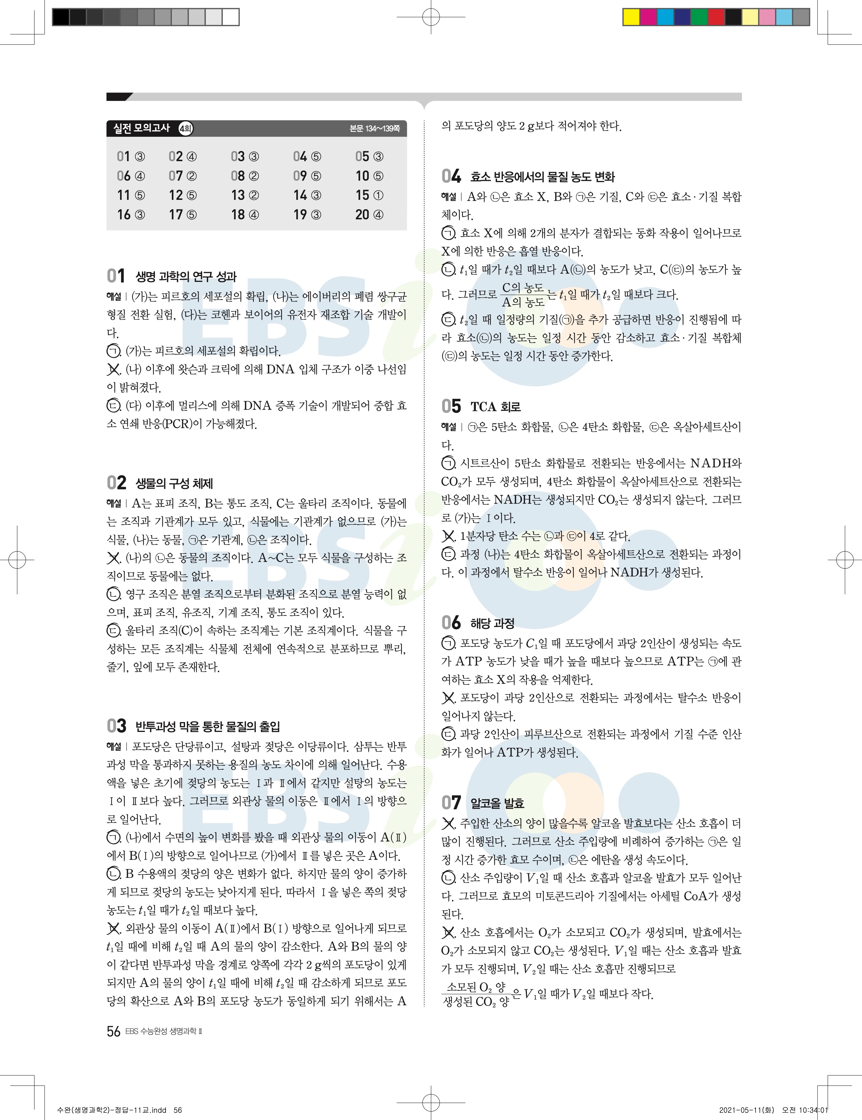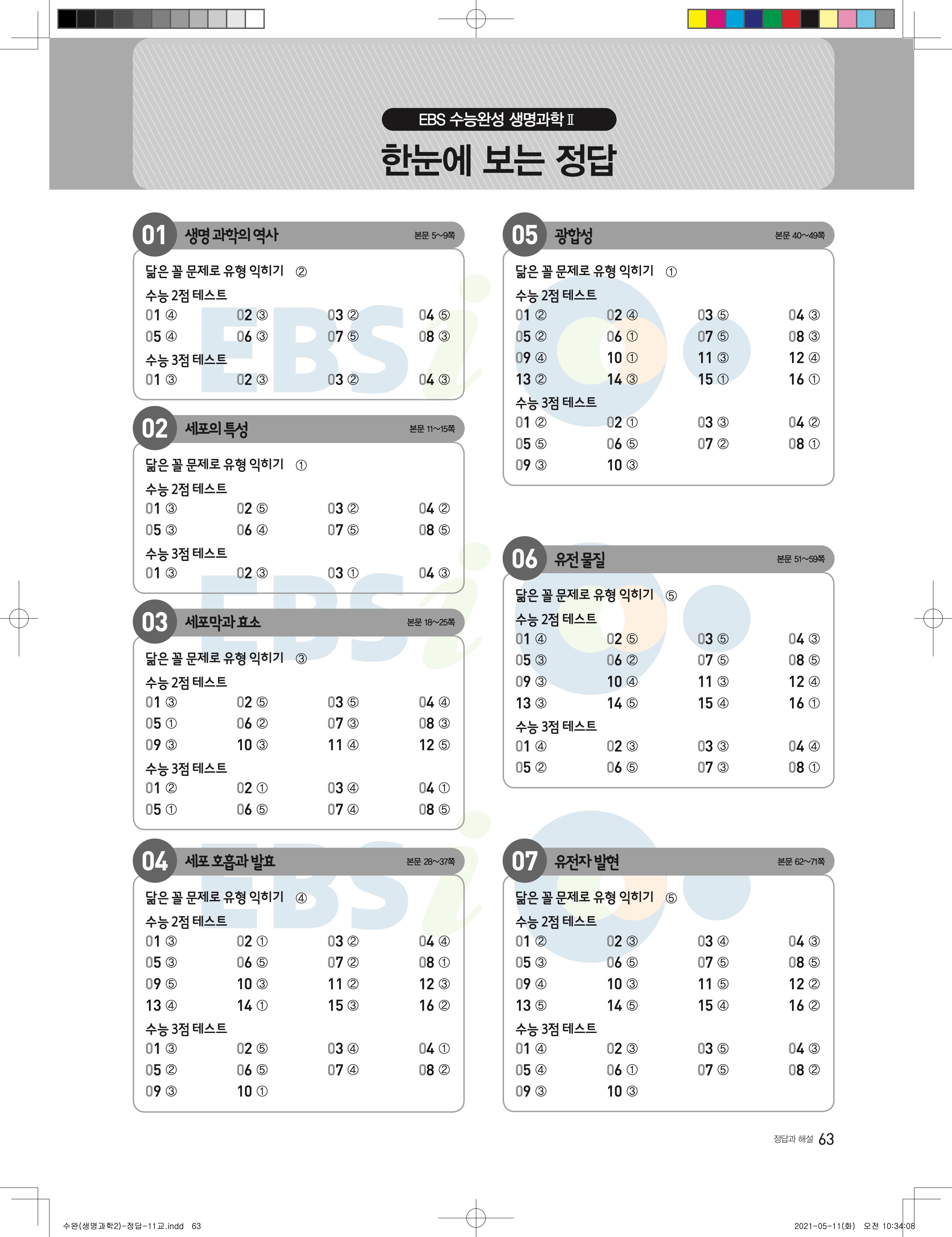 2022 EBS 수능완성 과학탐구영역 생명과학2 답지 해설 바로보는 사진답지 모바일최적화