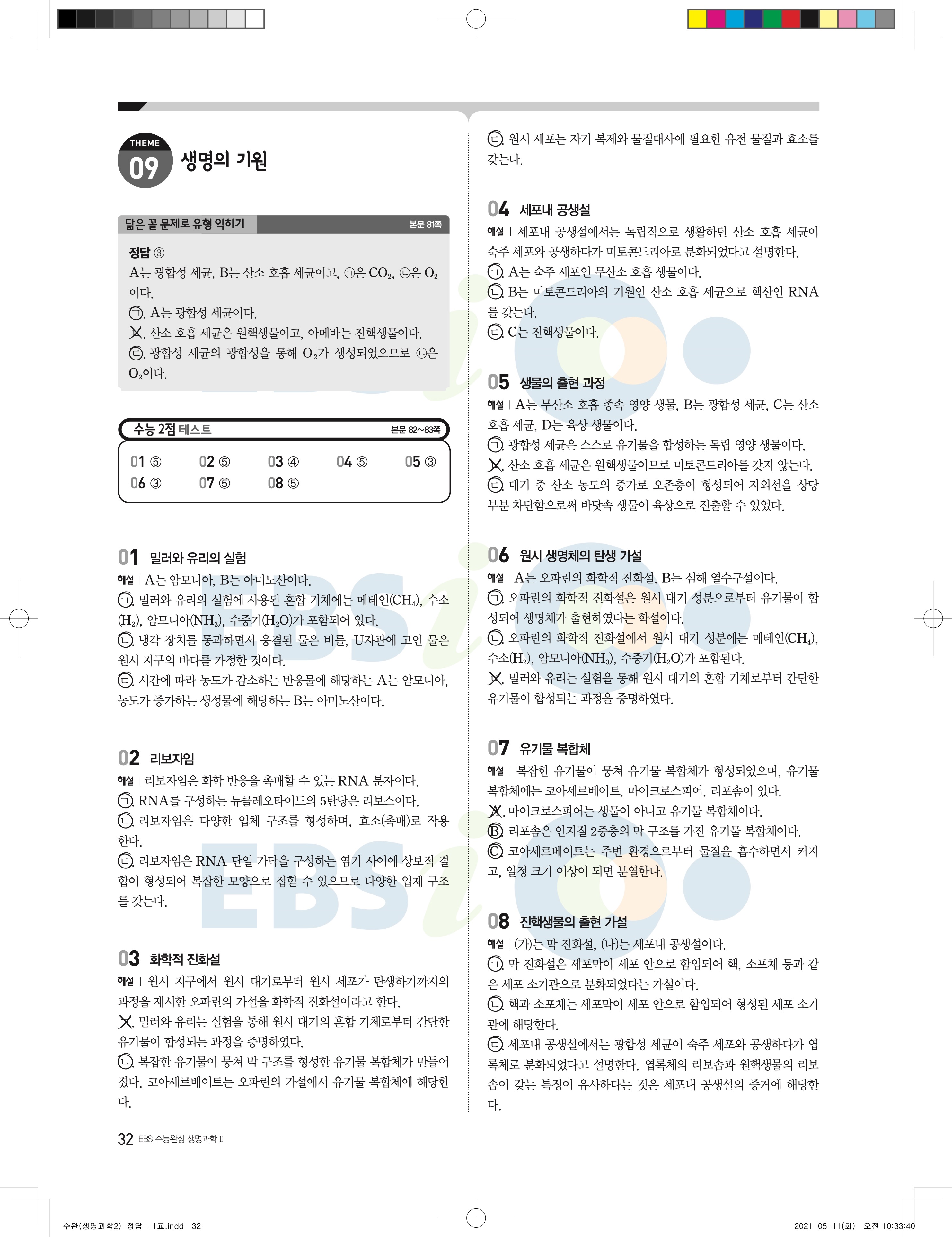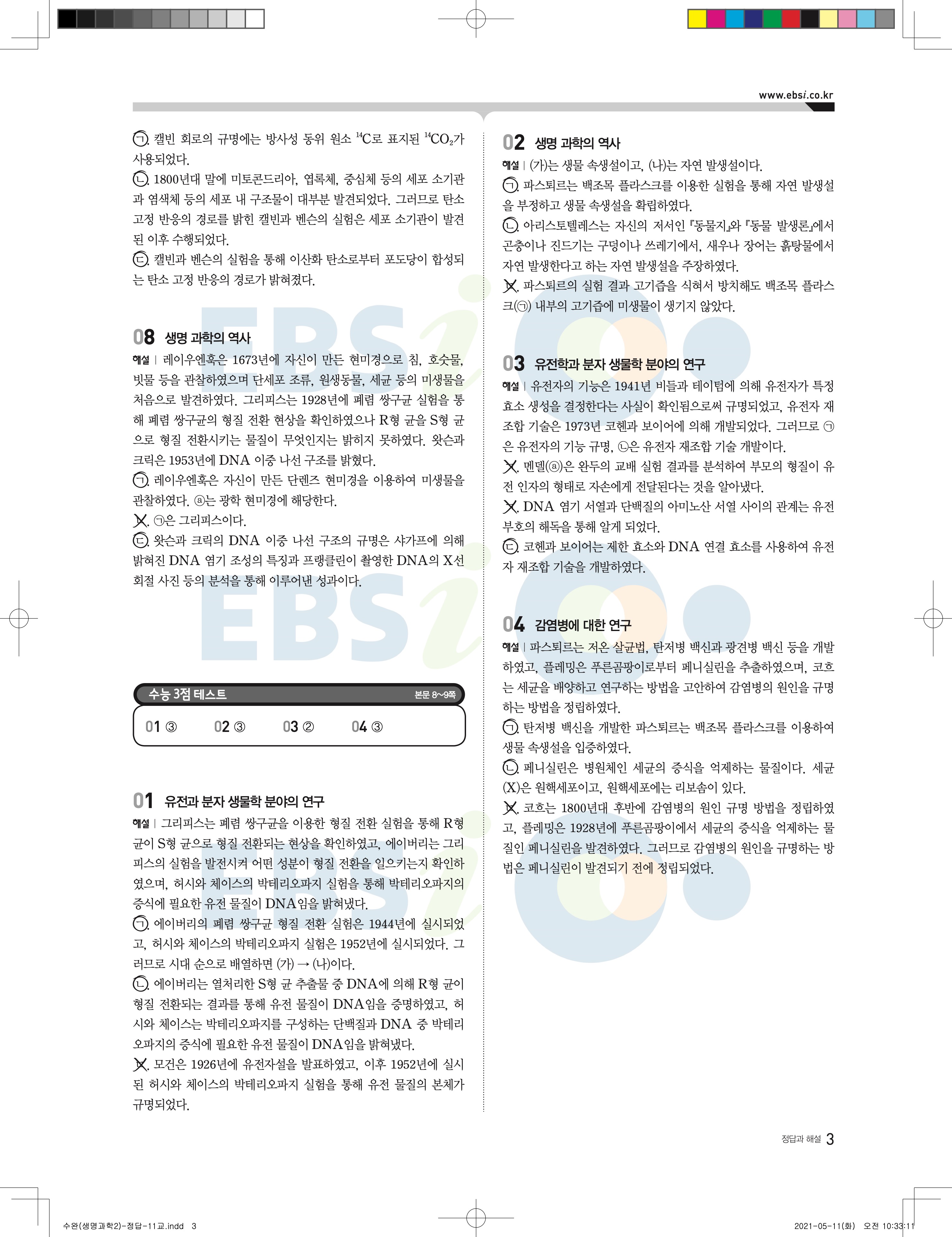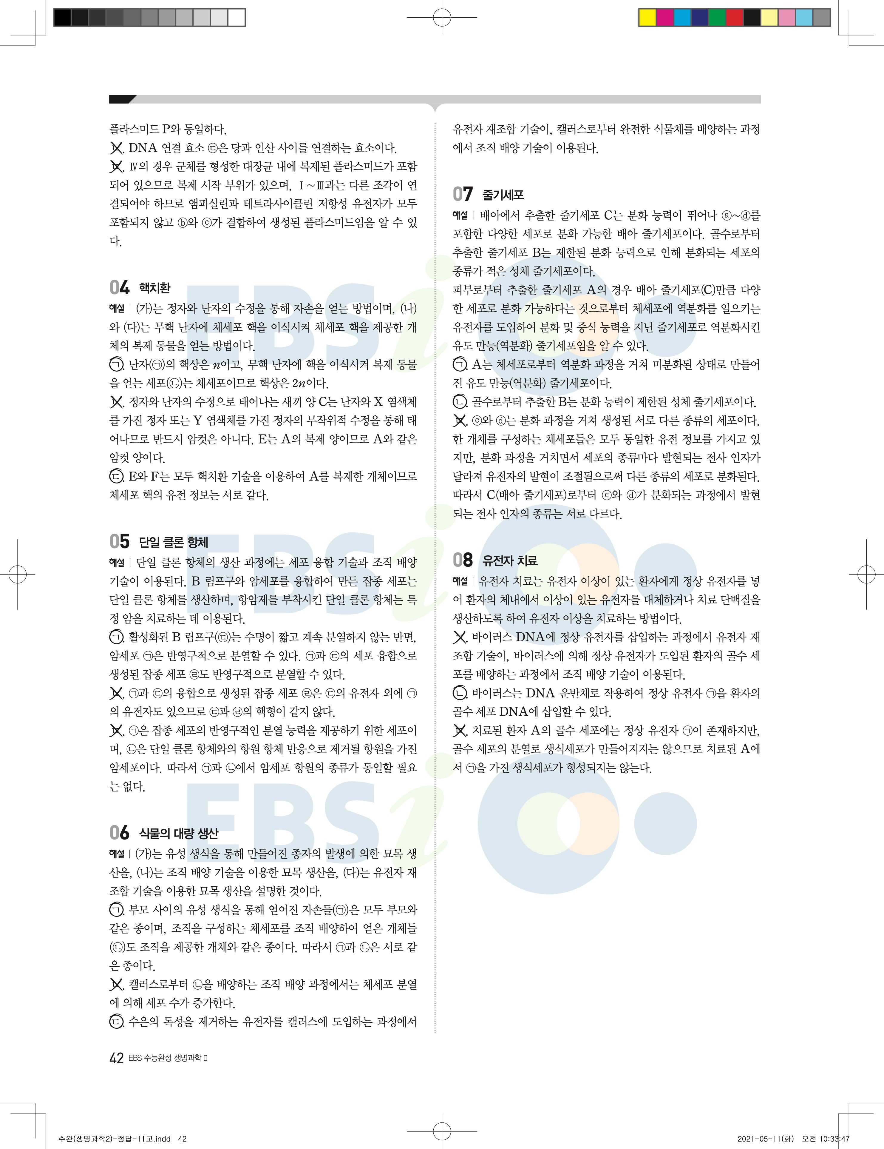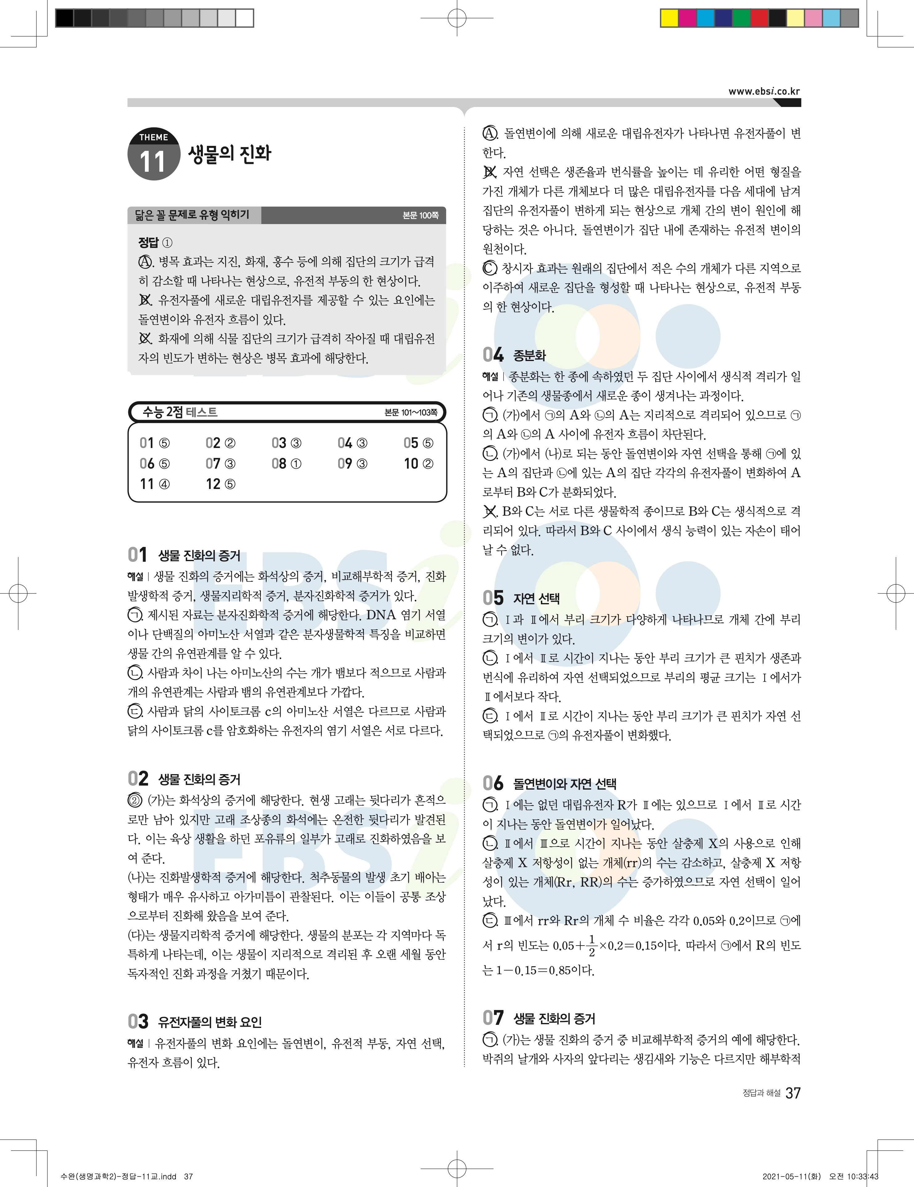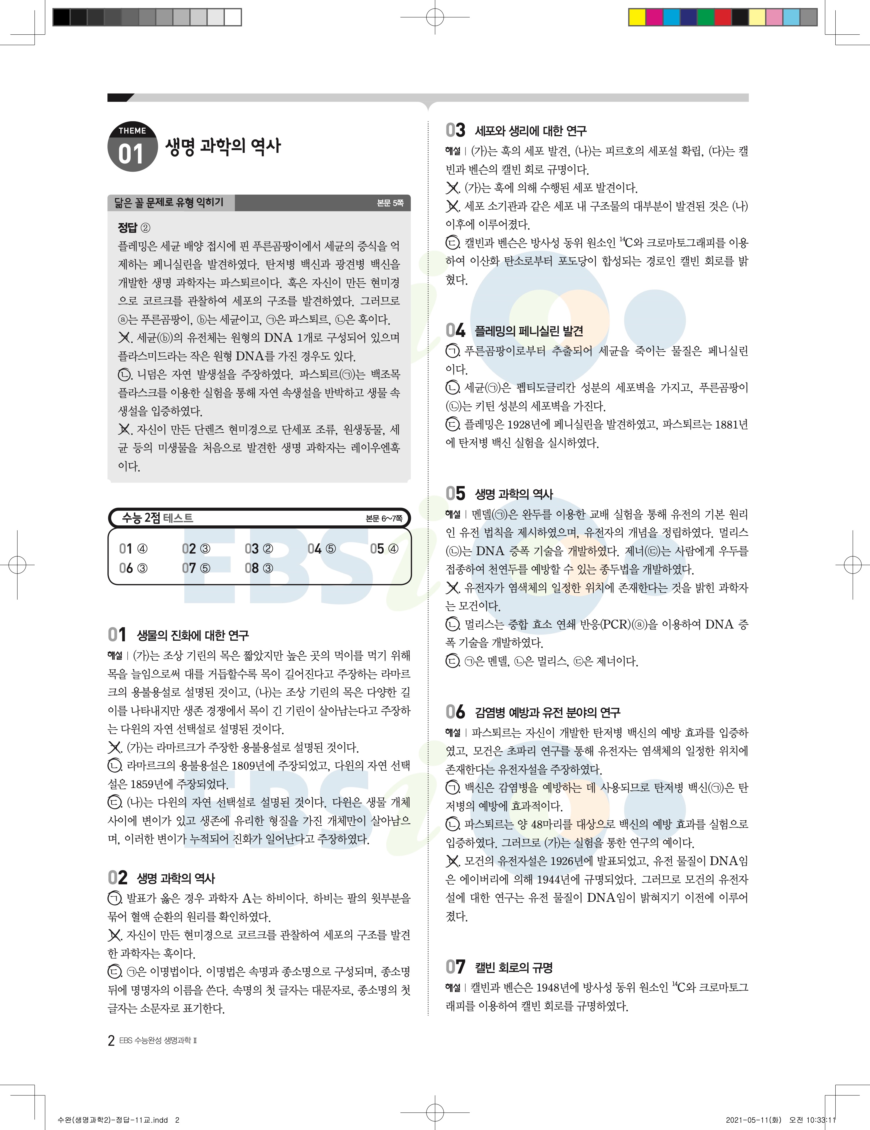 2022 EBS 수능완성 과학탐구영역 생명과학2 답지 해설 바로보는 사진답지 모바일최적화
