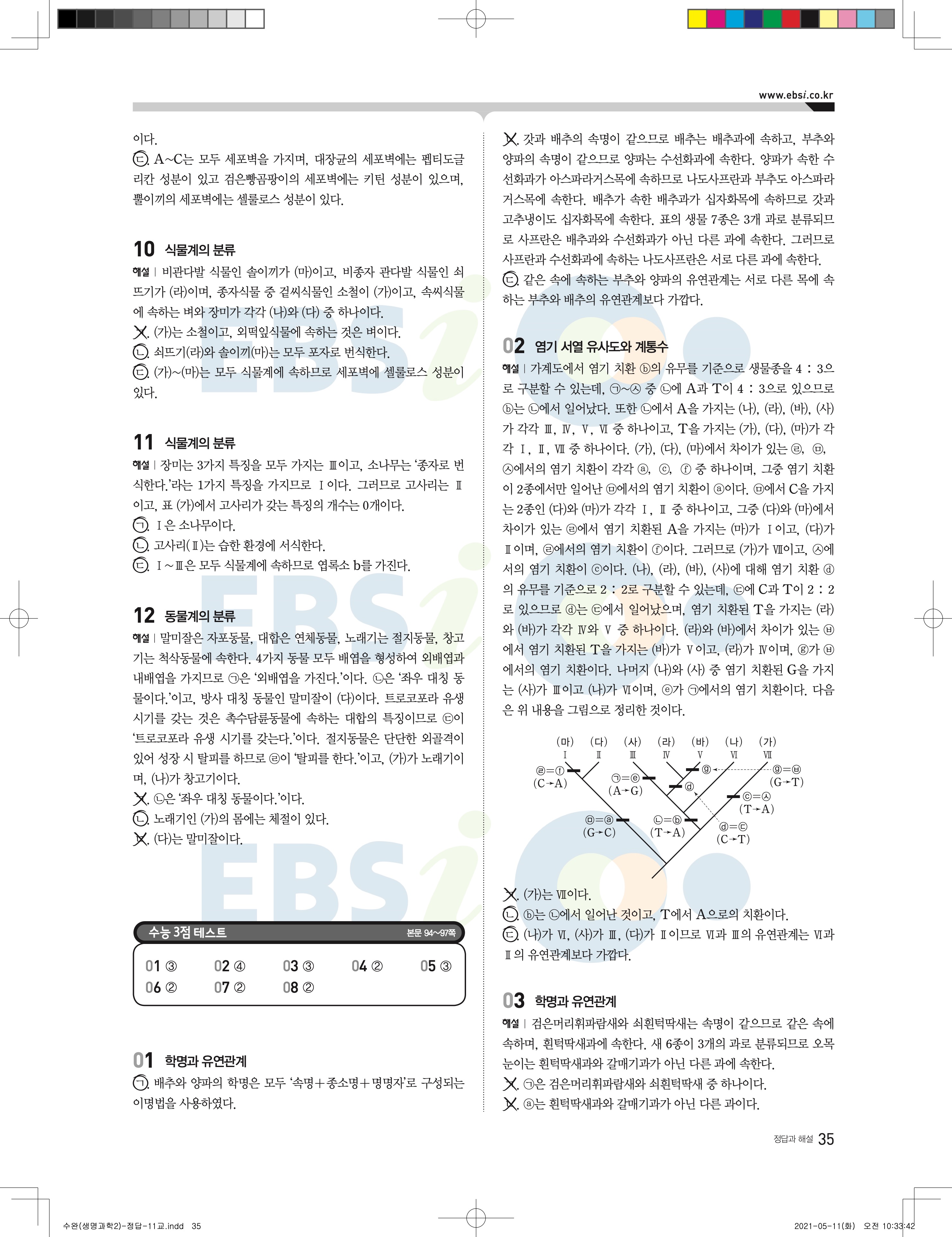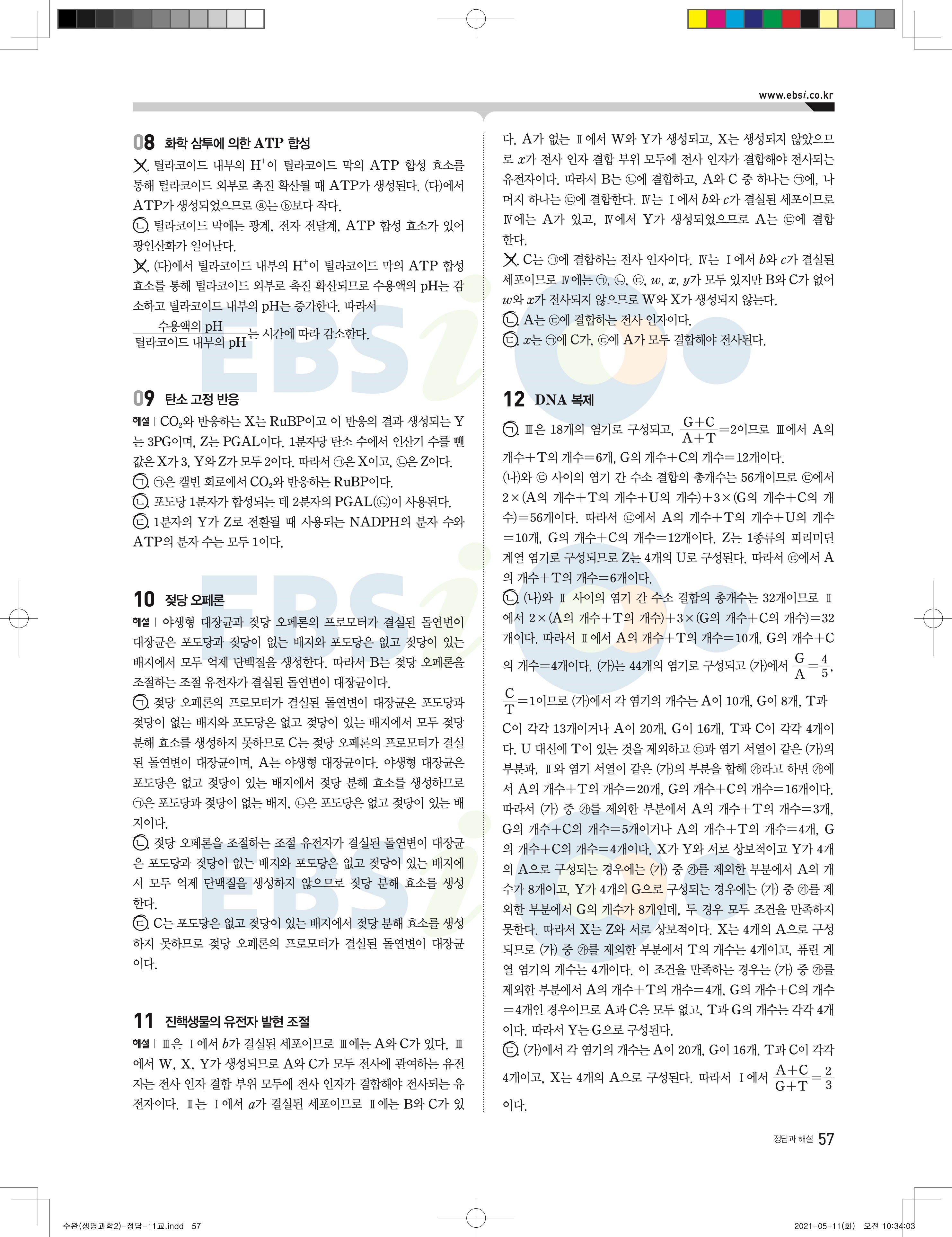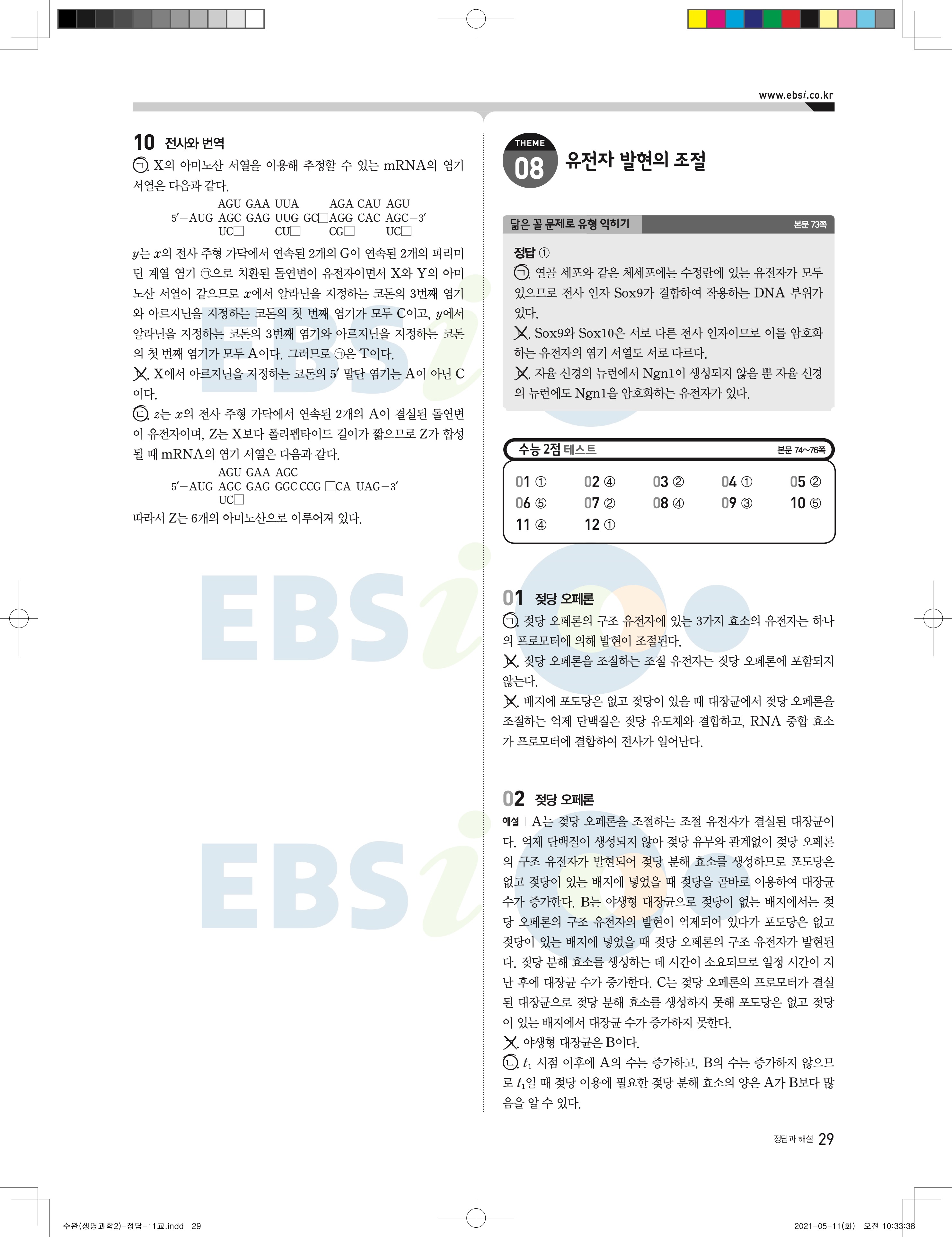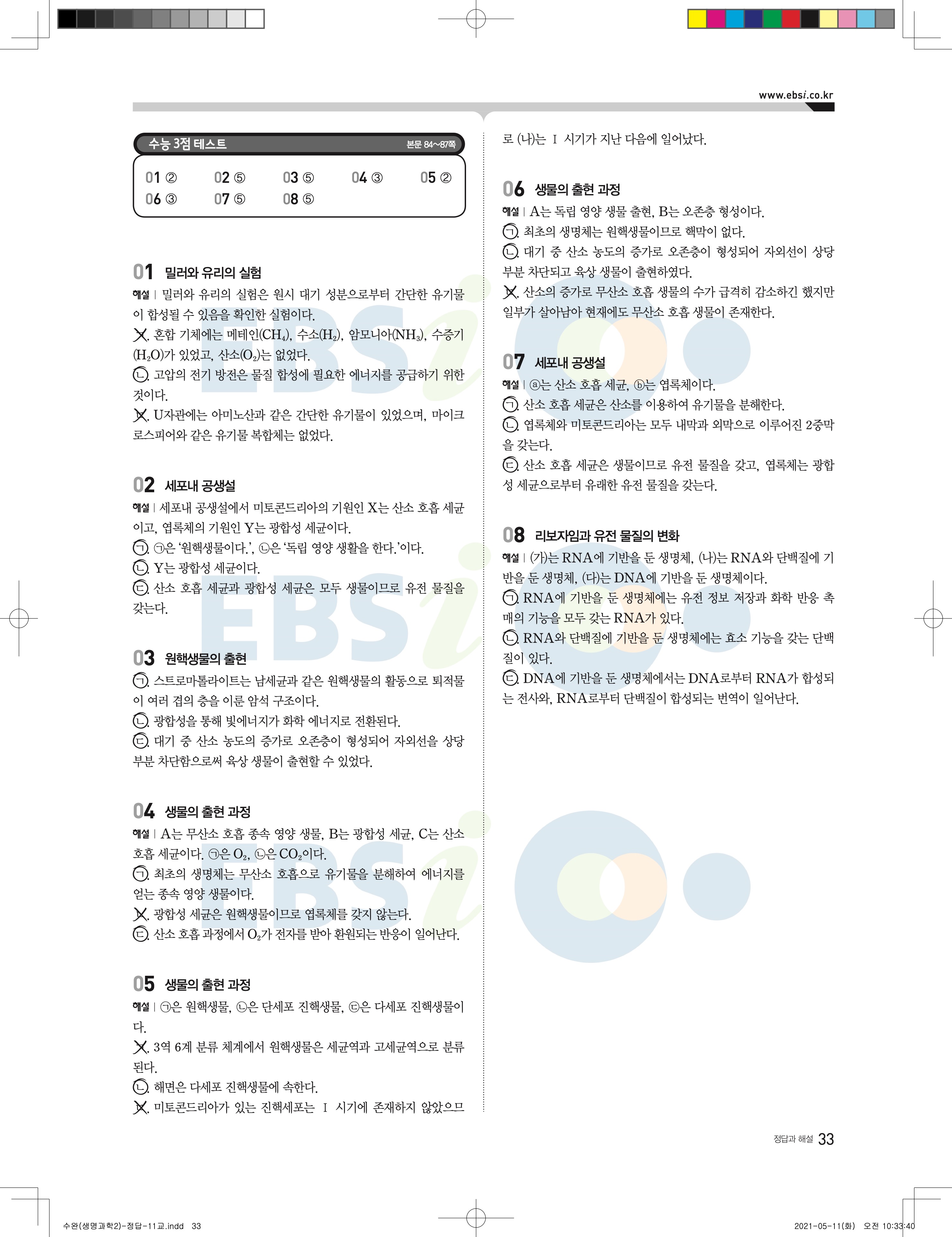 2022 EBS 수능완성 과학탐구영역 생명과학2 답지 해설 바로보는 사진답지 모바일최적화