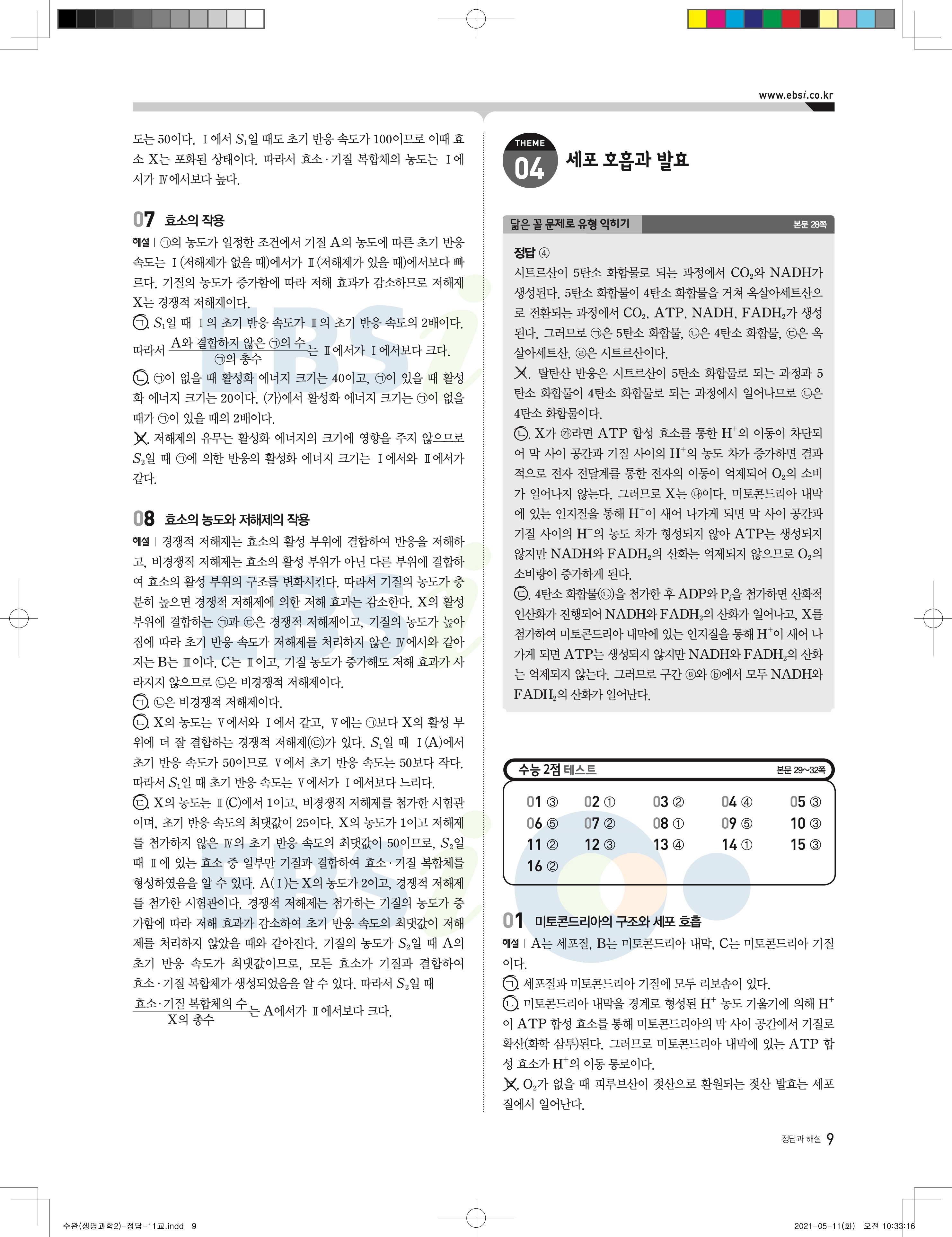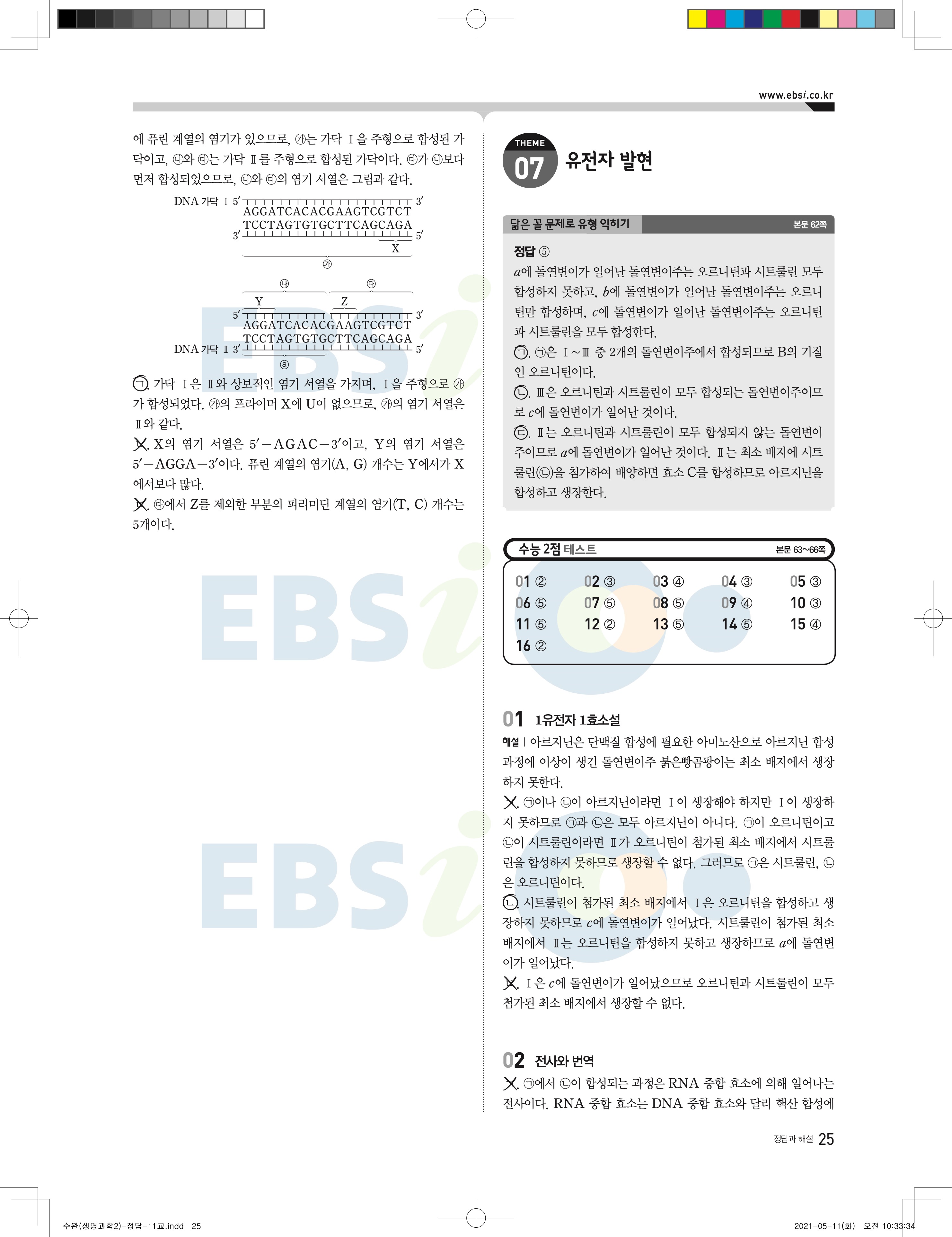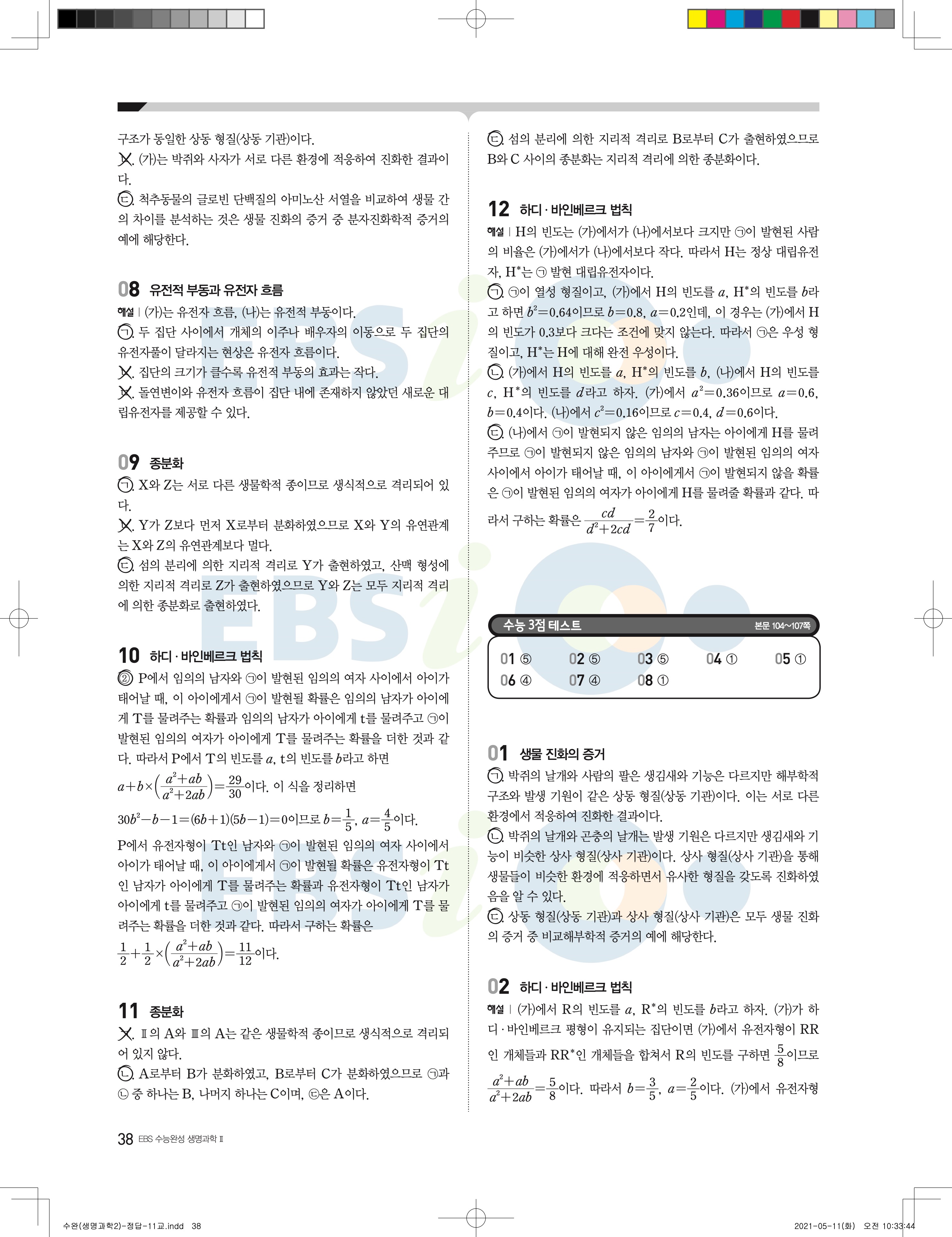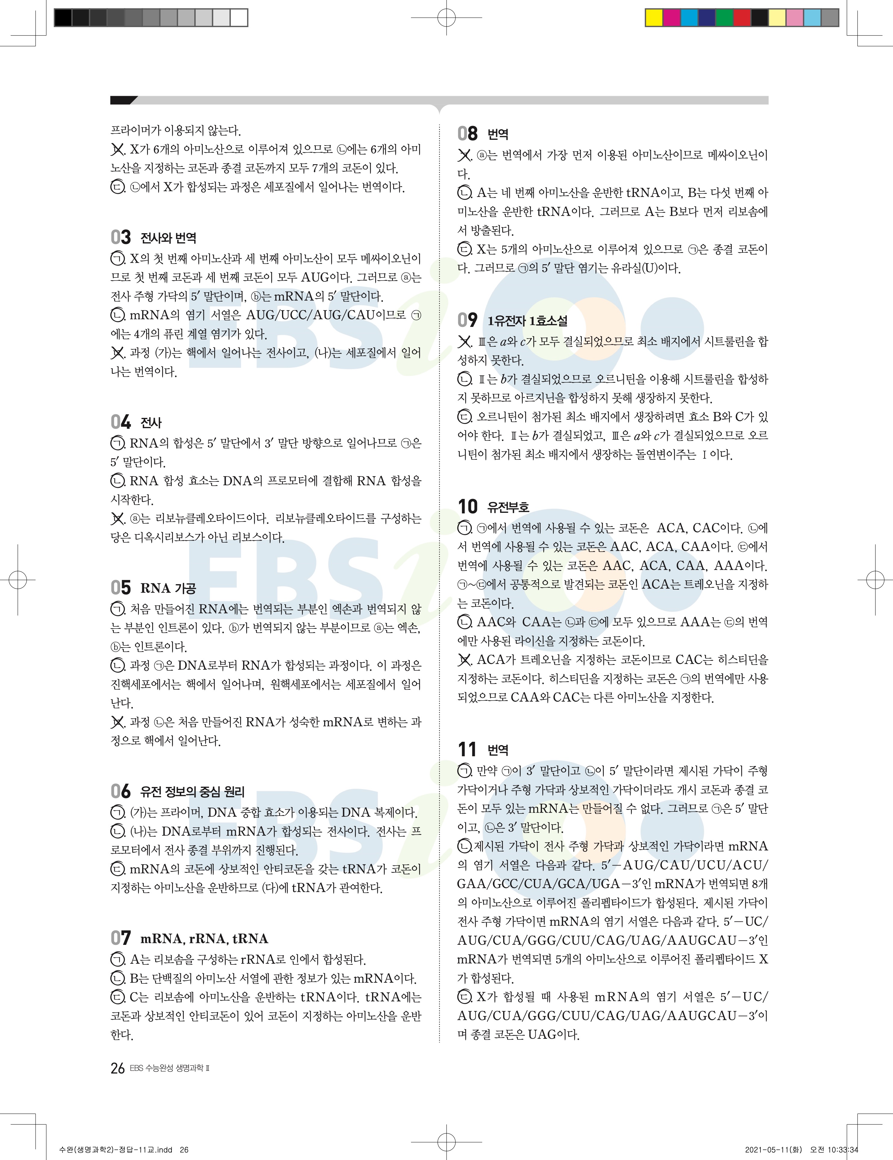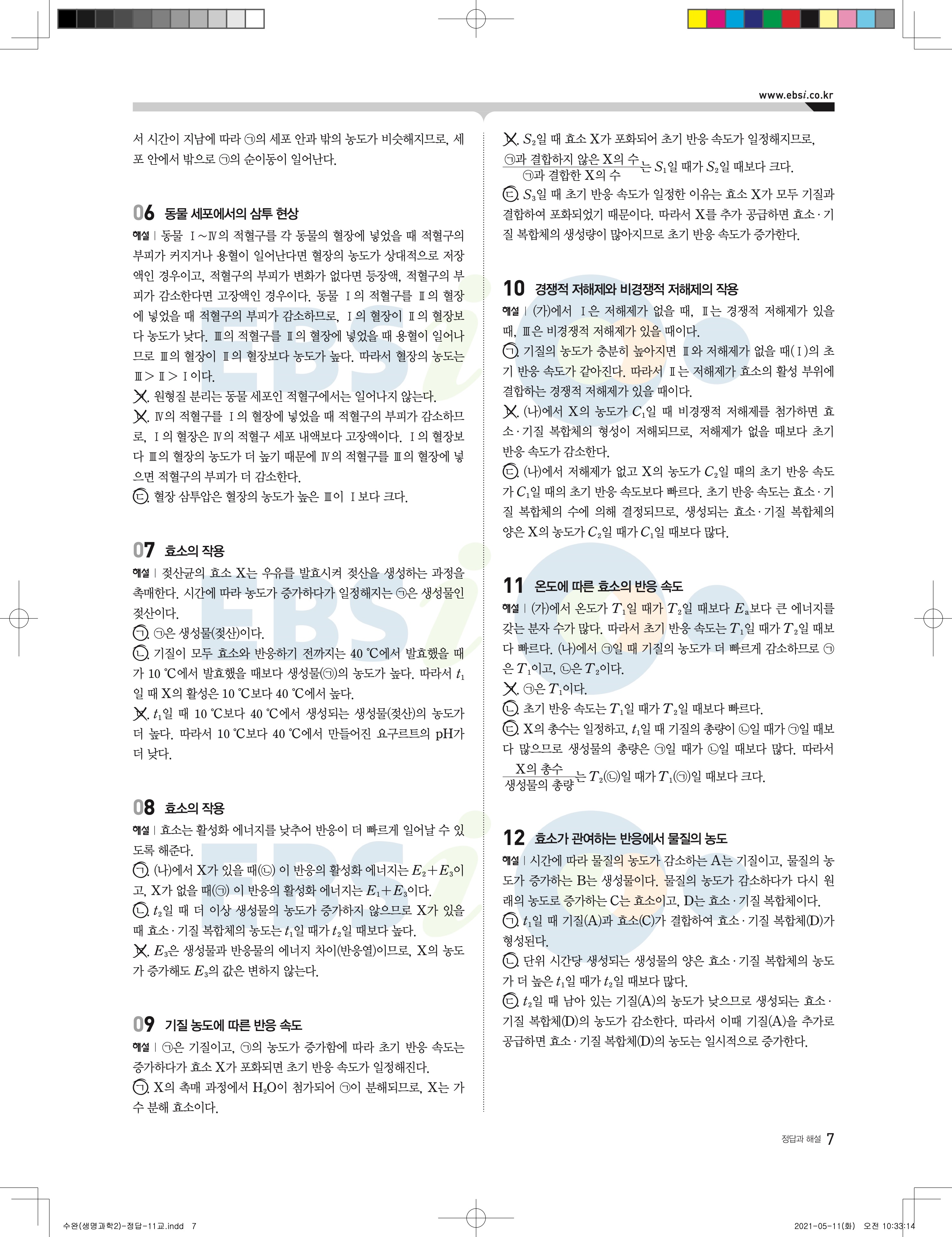 2022 EBS 수능완성 과학탐구영역 생명과학2 답지 해설 바로보는 사진답지 모바일최적화