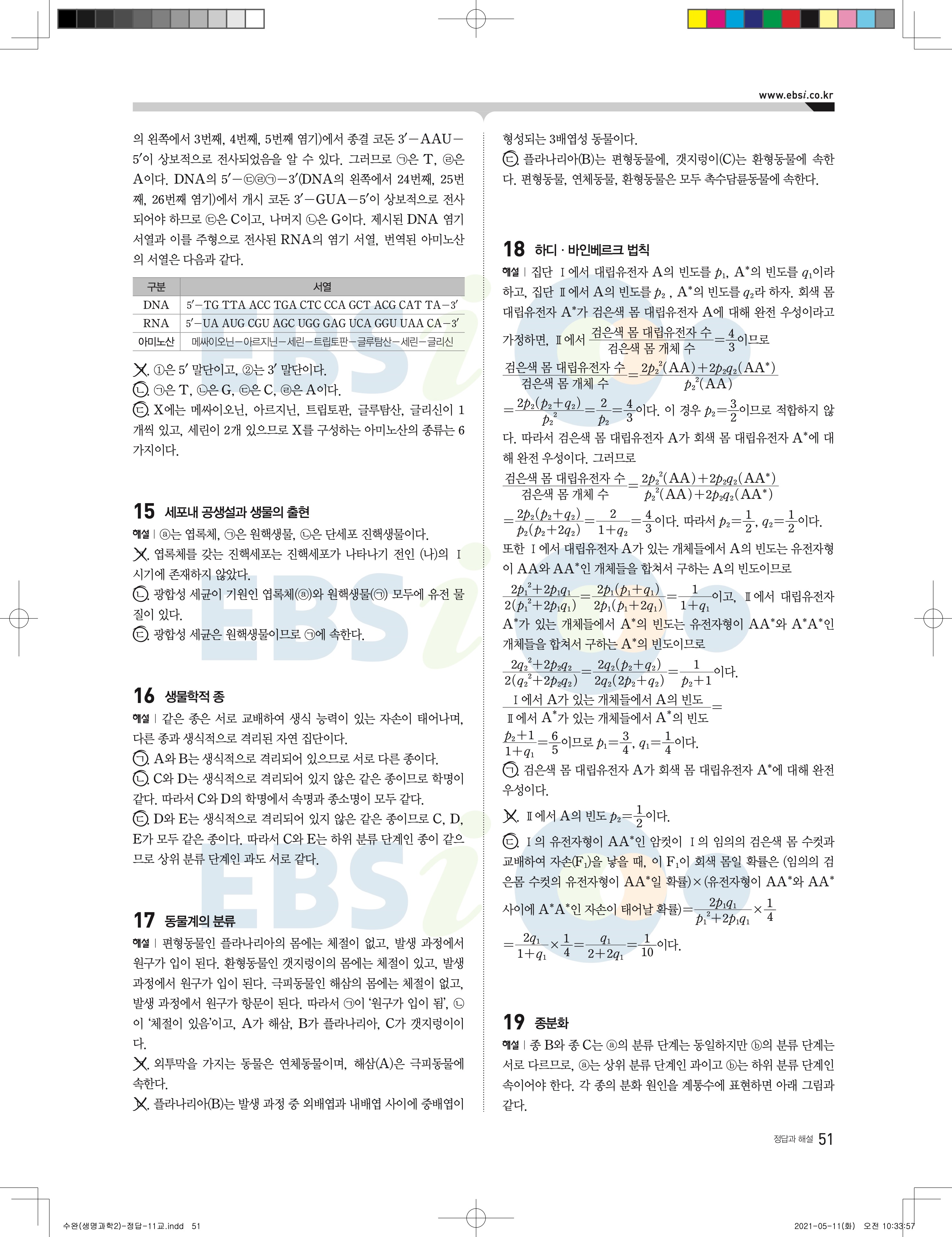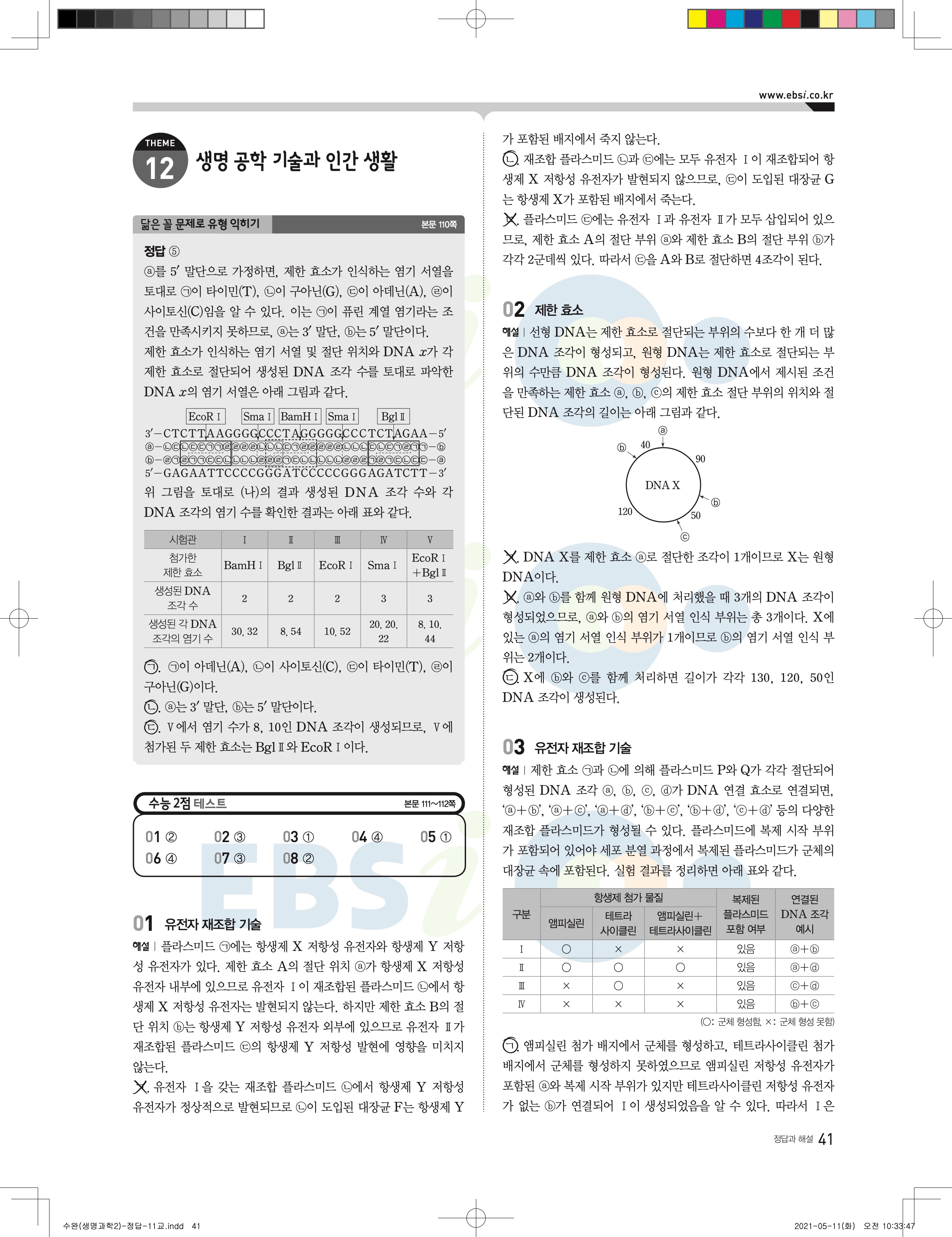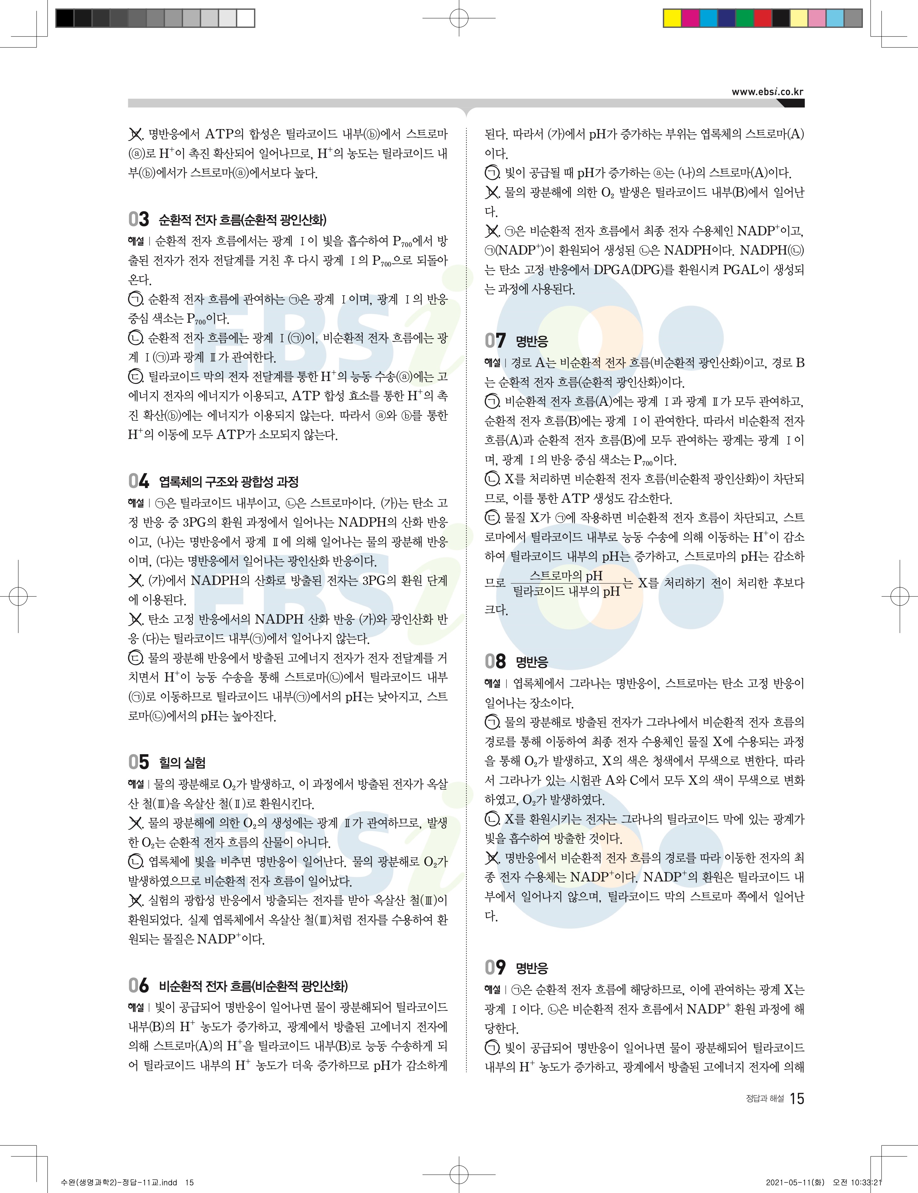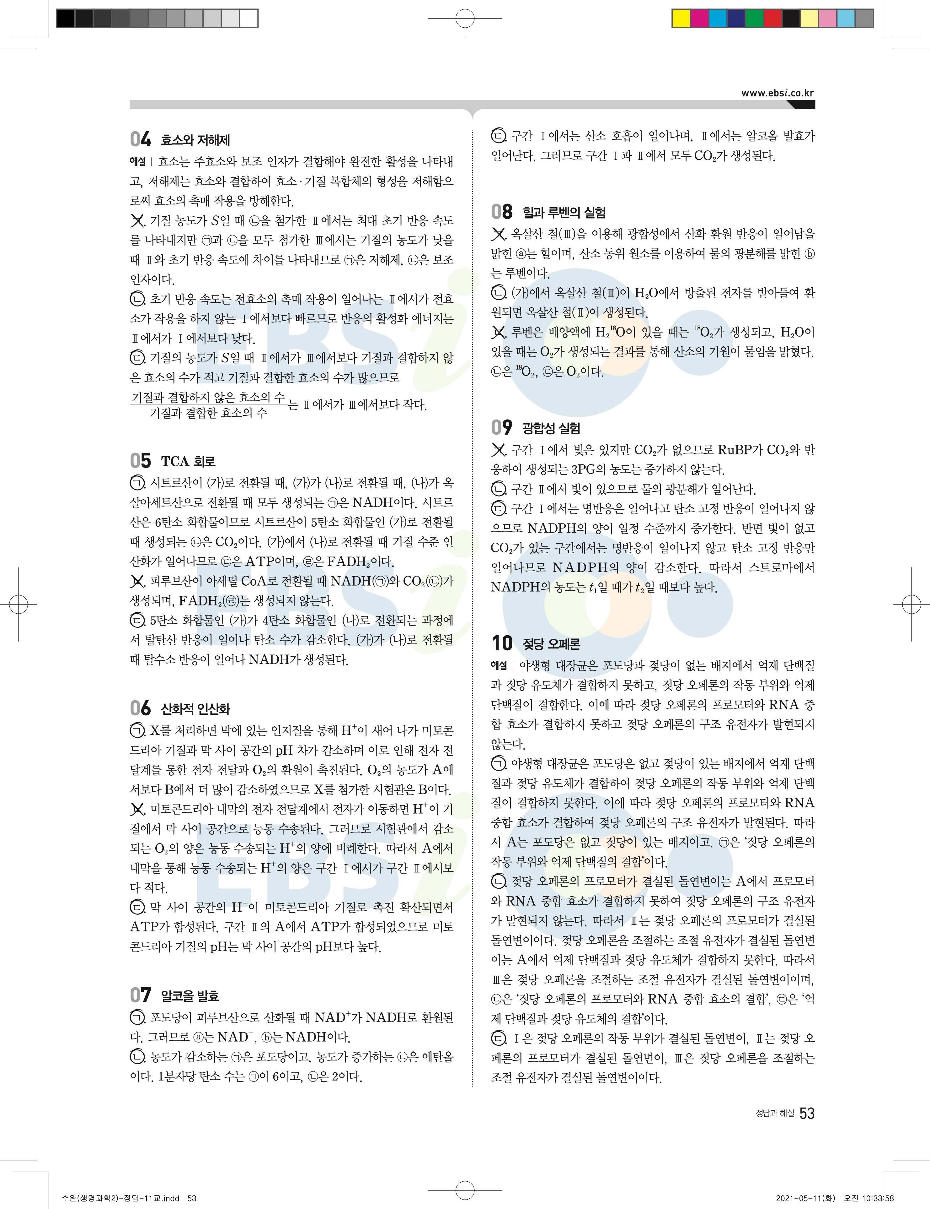 2022 EBS 수능완성 과학탐구영역 생명과학2 답지 해설 바로보는 사진답지 모바일최적화