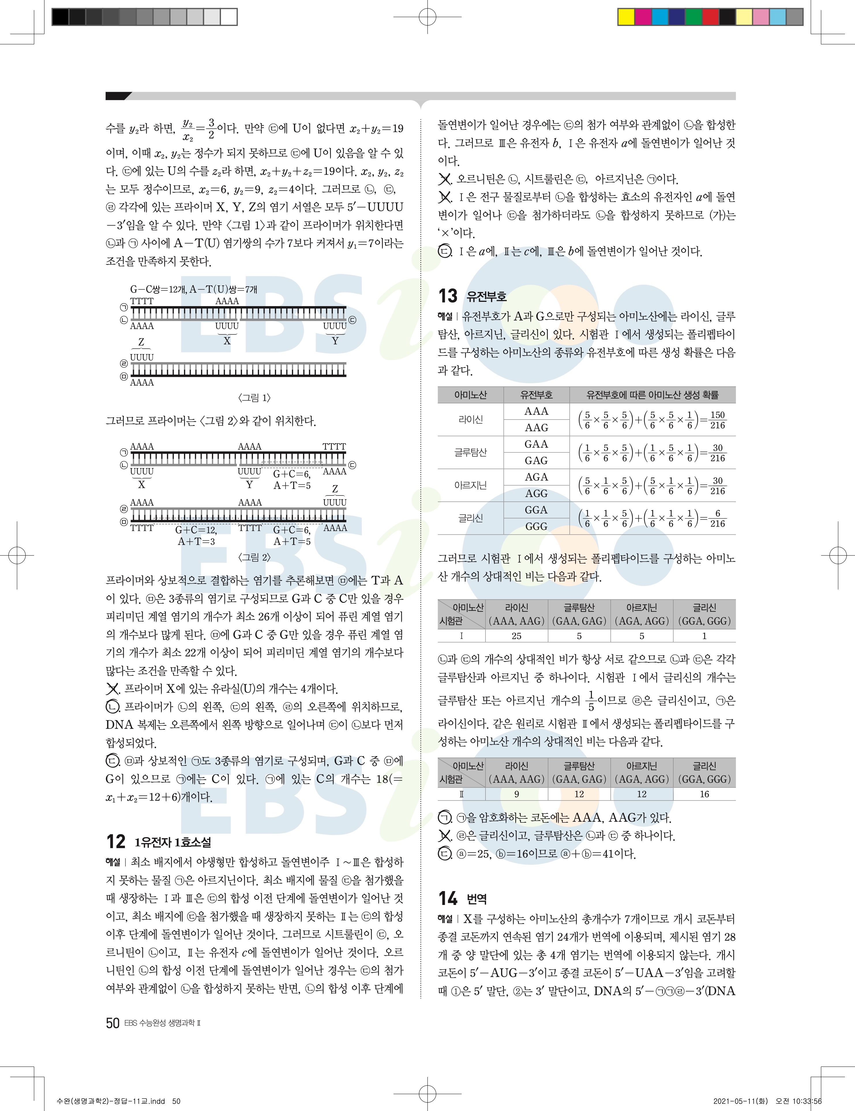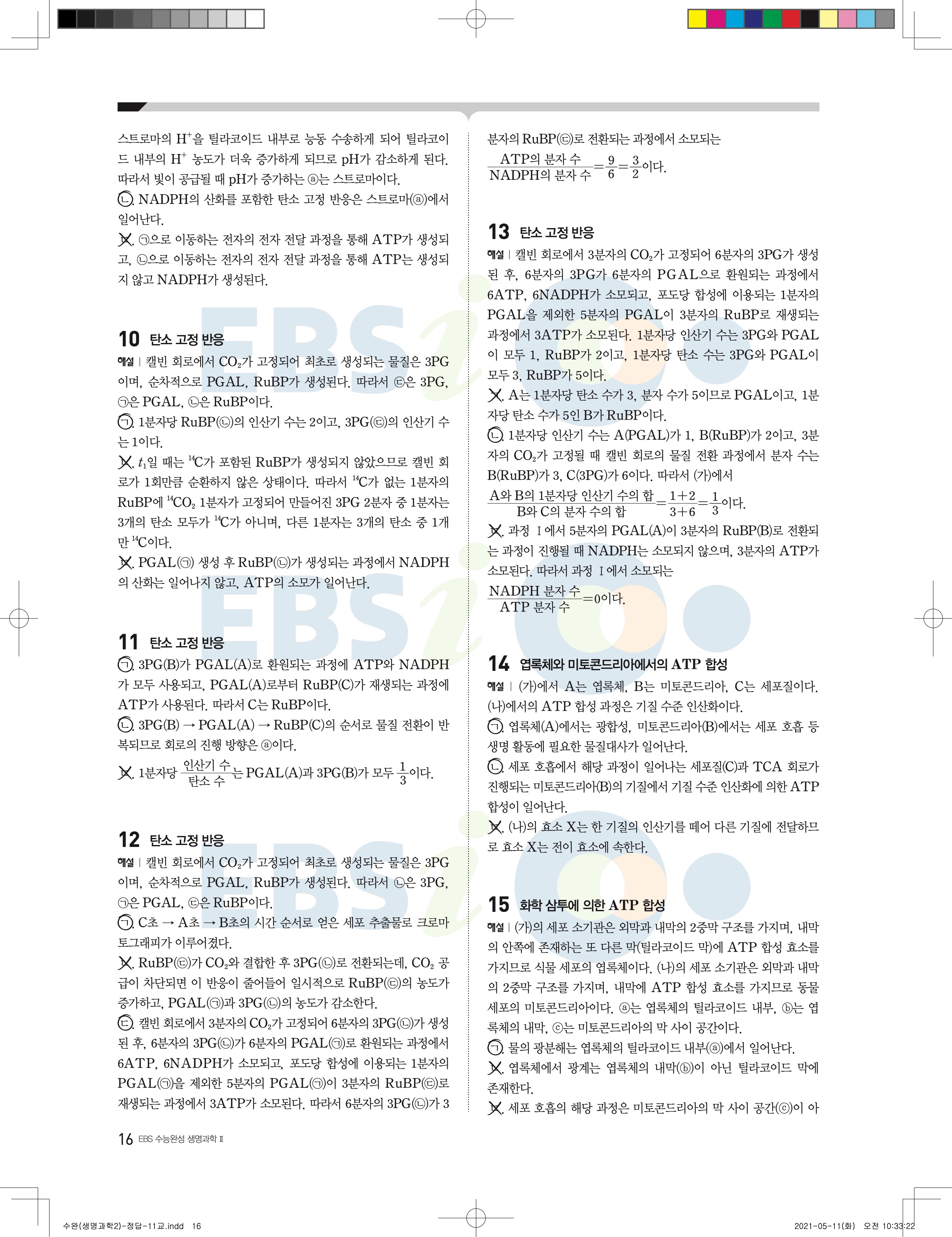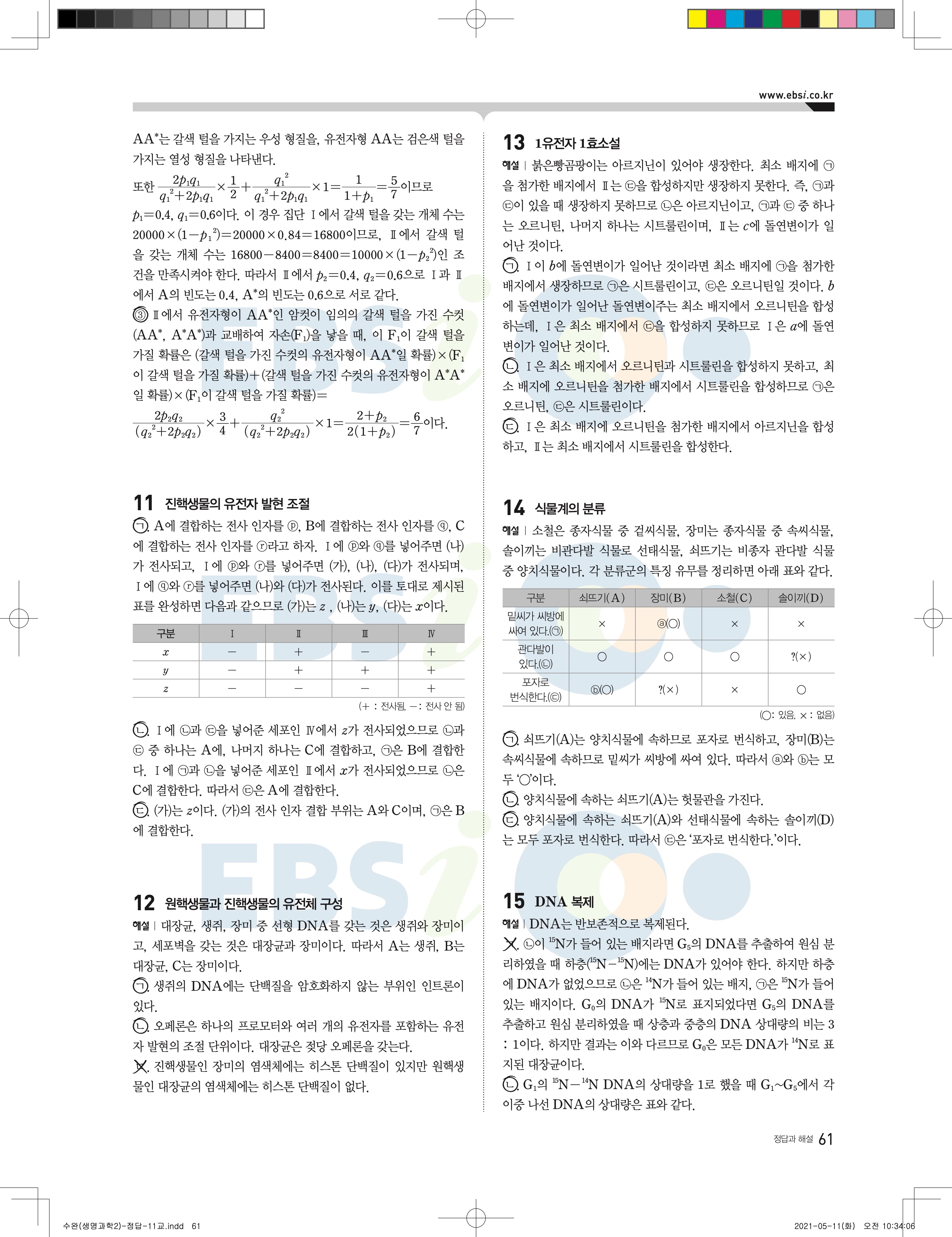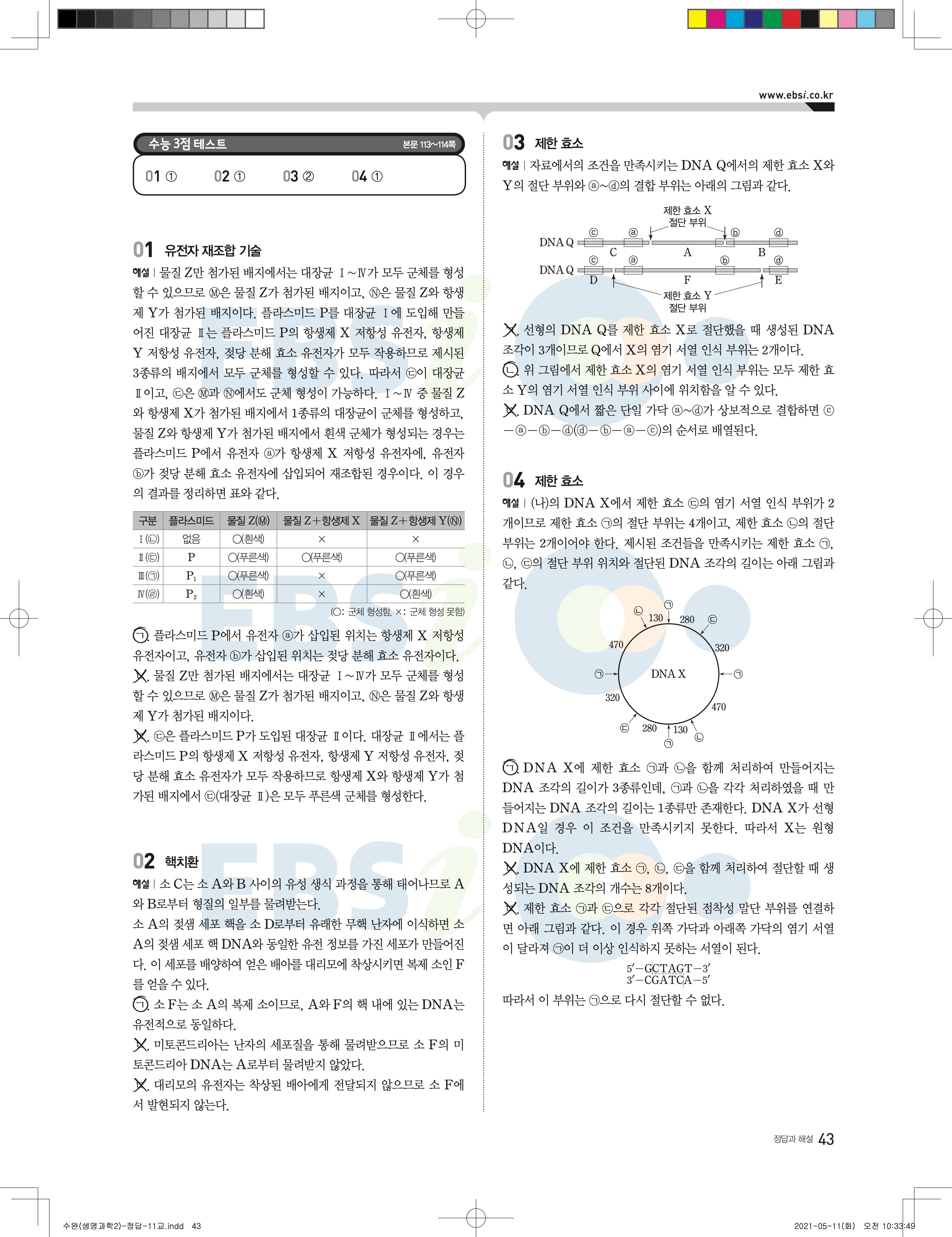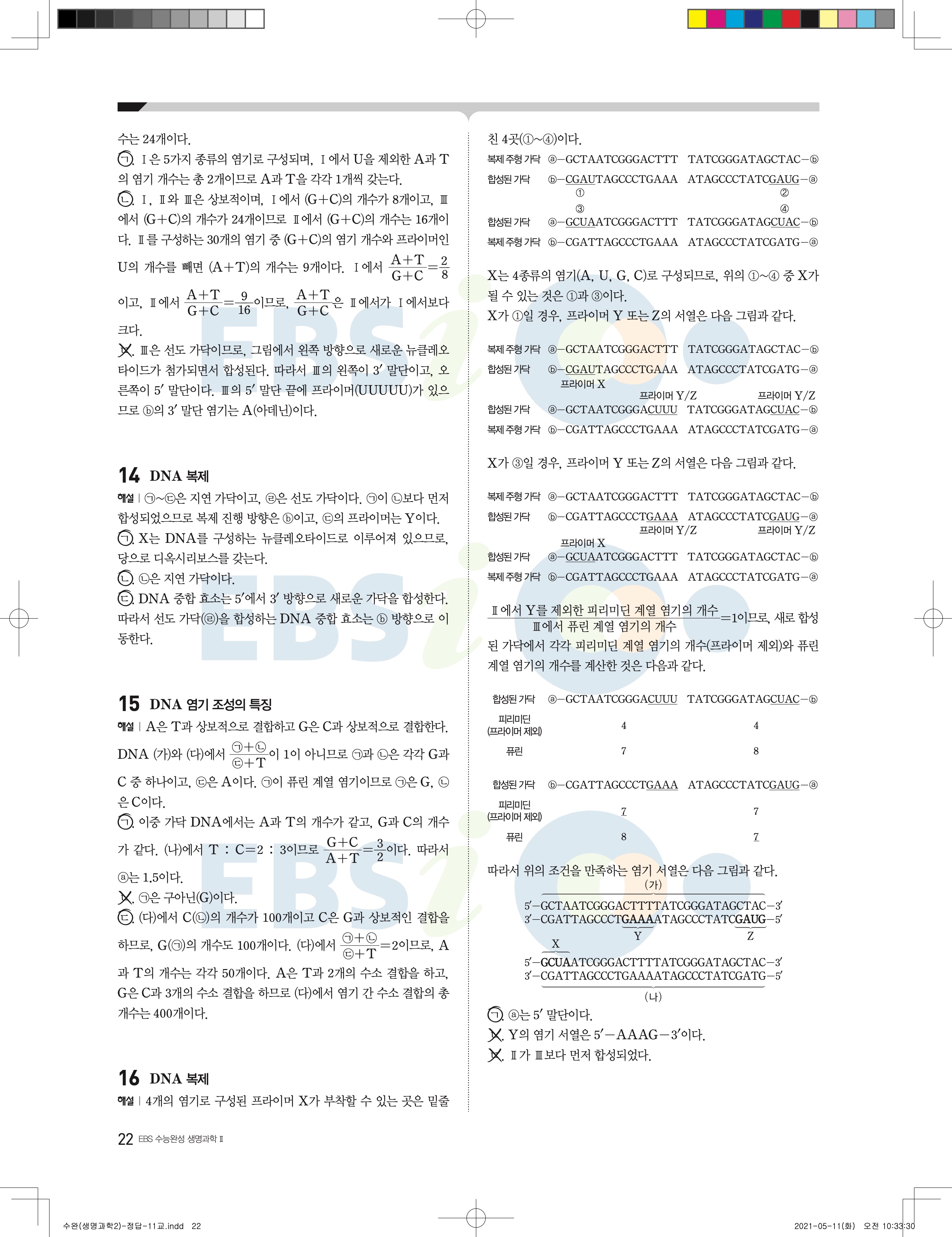 2022 EBS 수능완성 과학탐구영역 생명과학2 답지 해설 바로보는 사진답지 모바일최적화