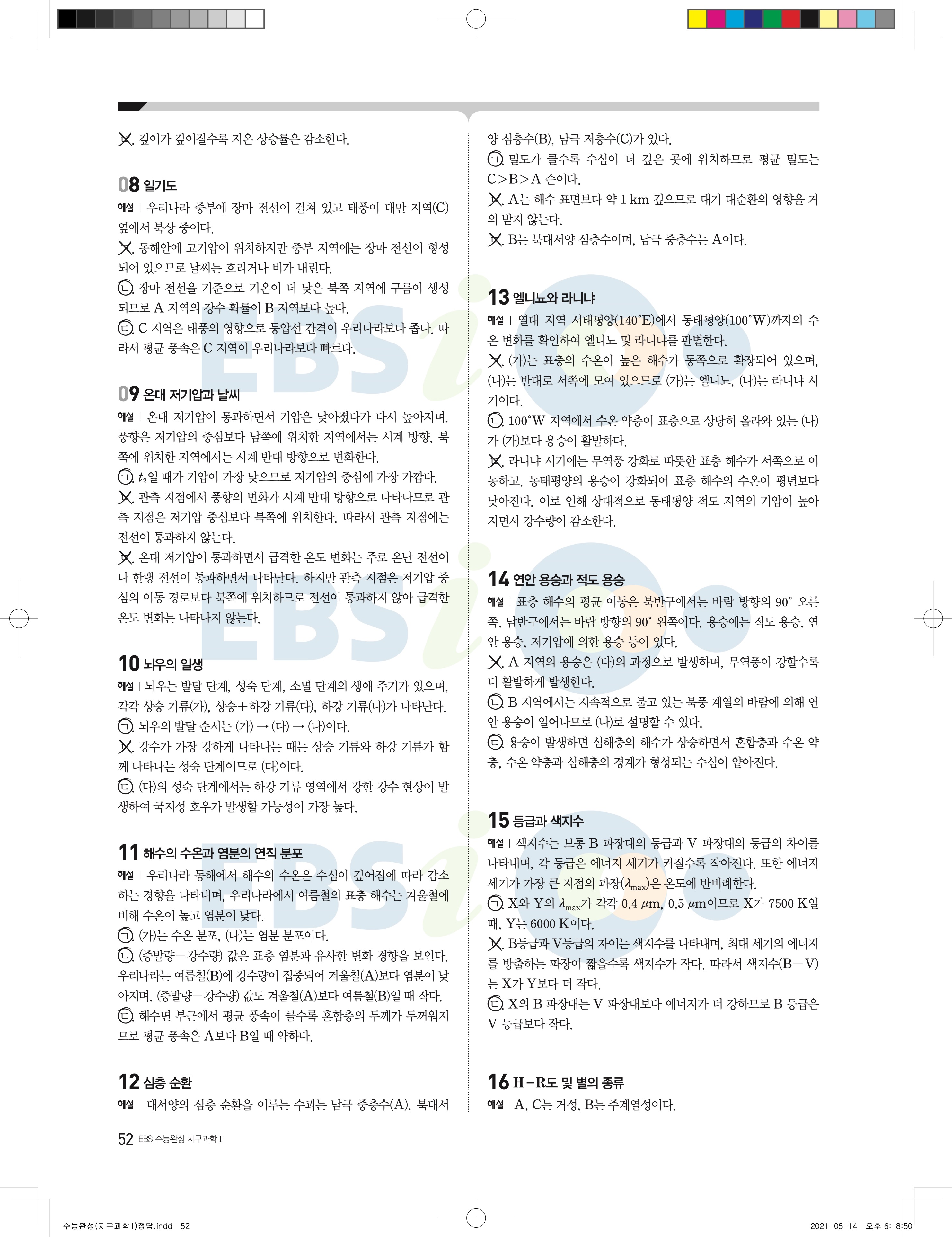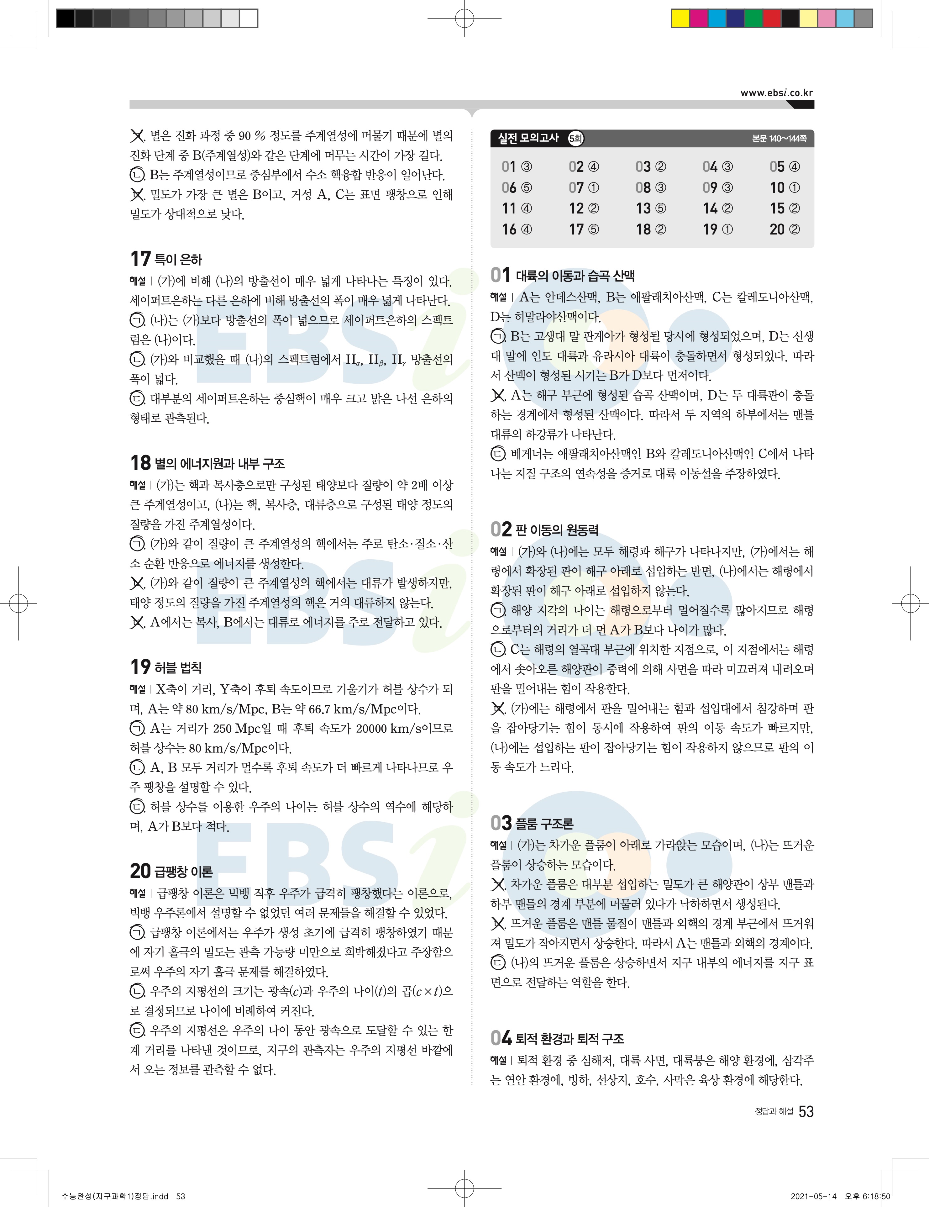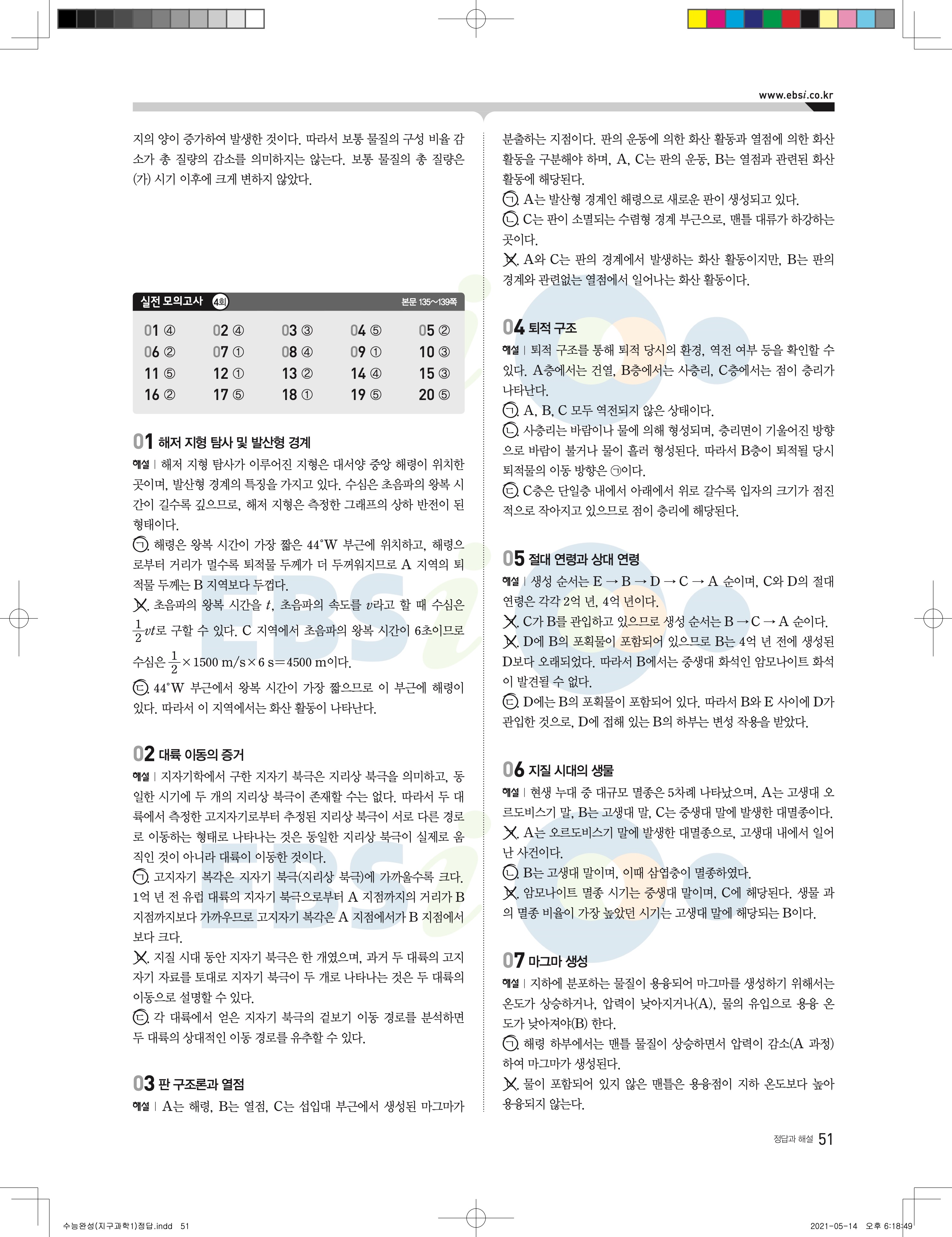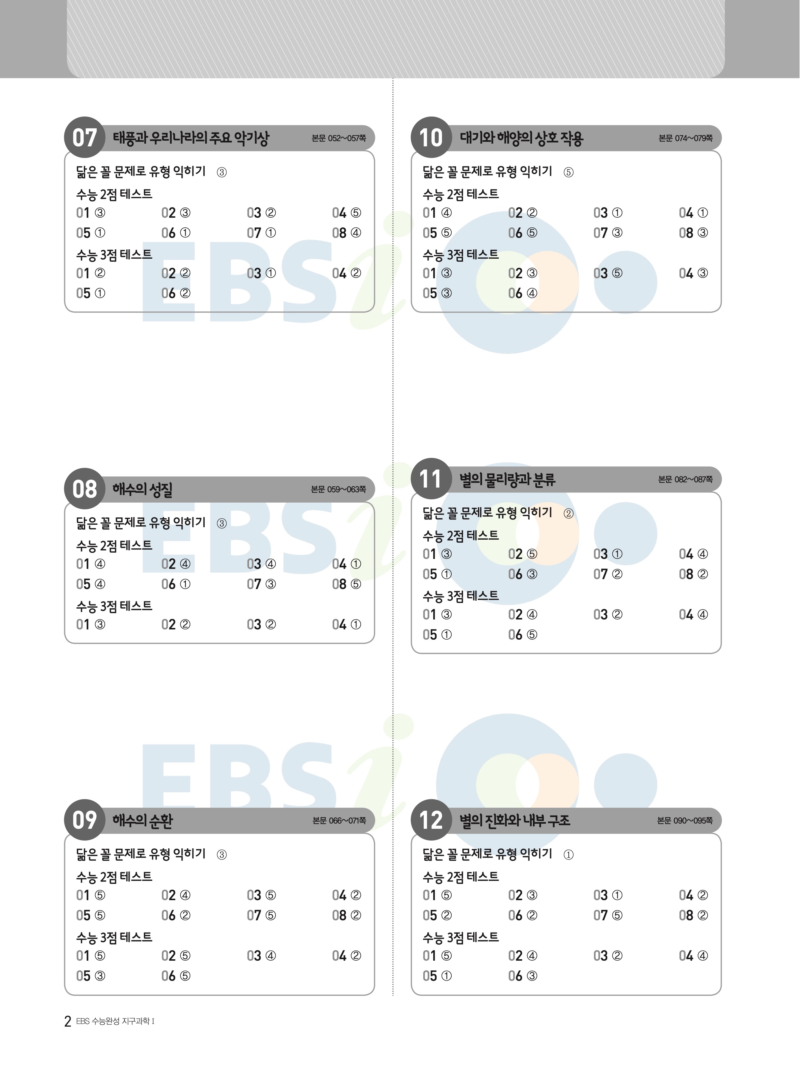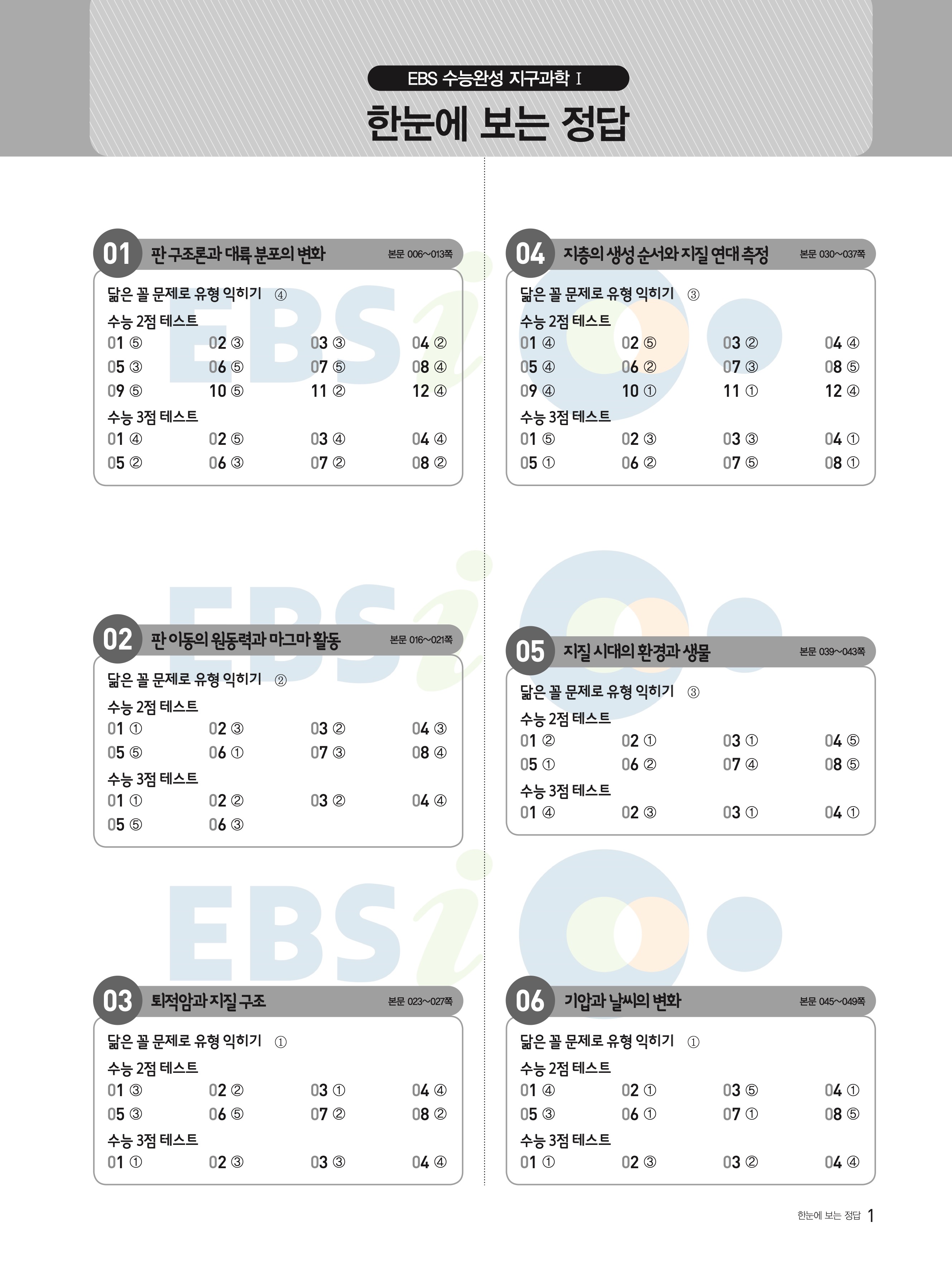 2022 EBS 수능완성 과학탐구영역 지구과학1 답지 해설 바로보는 사진답지 모바일최적화