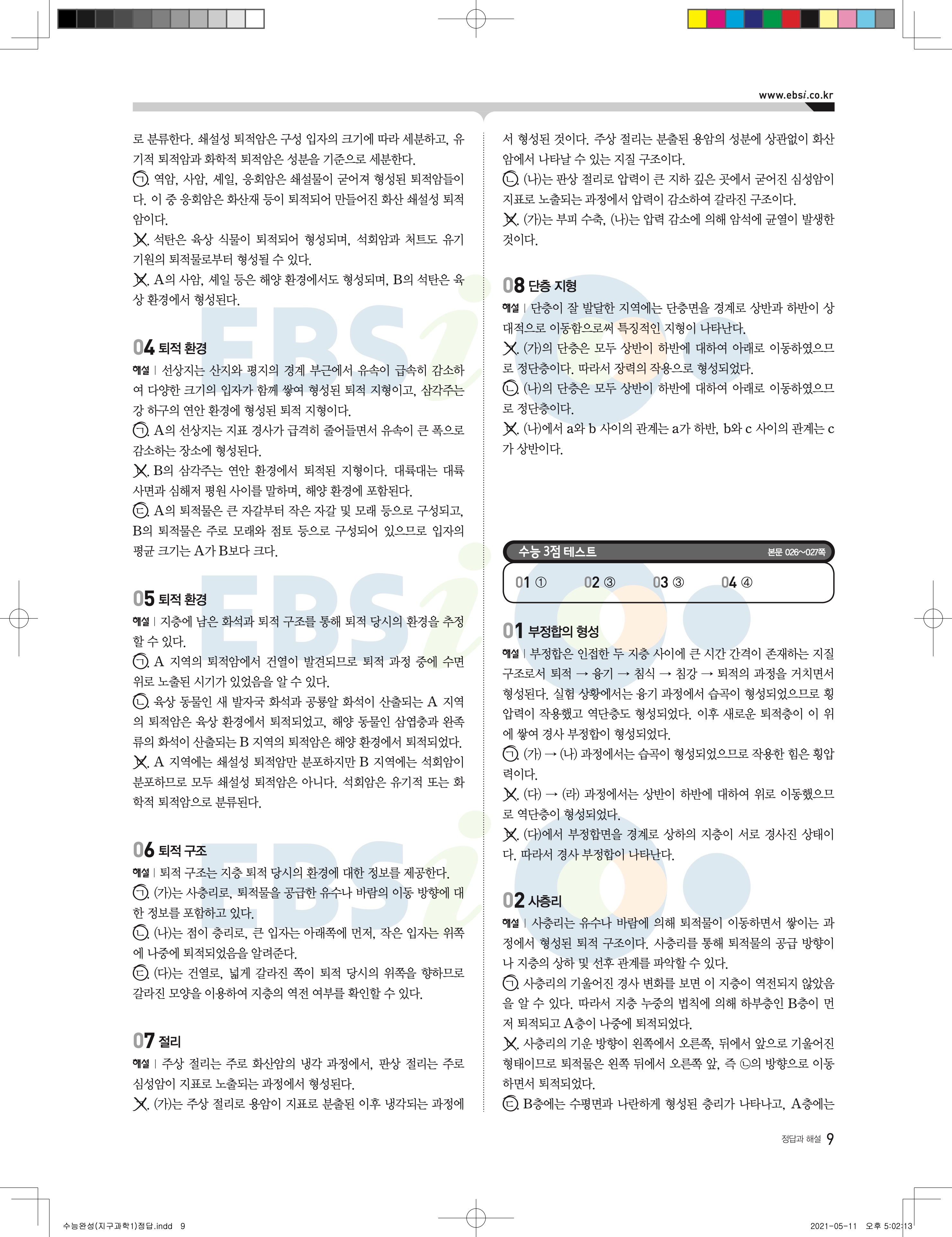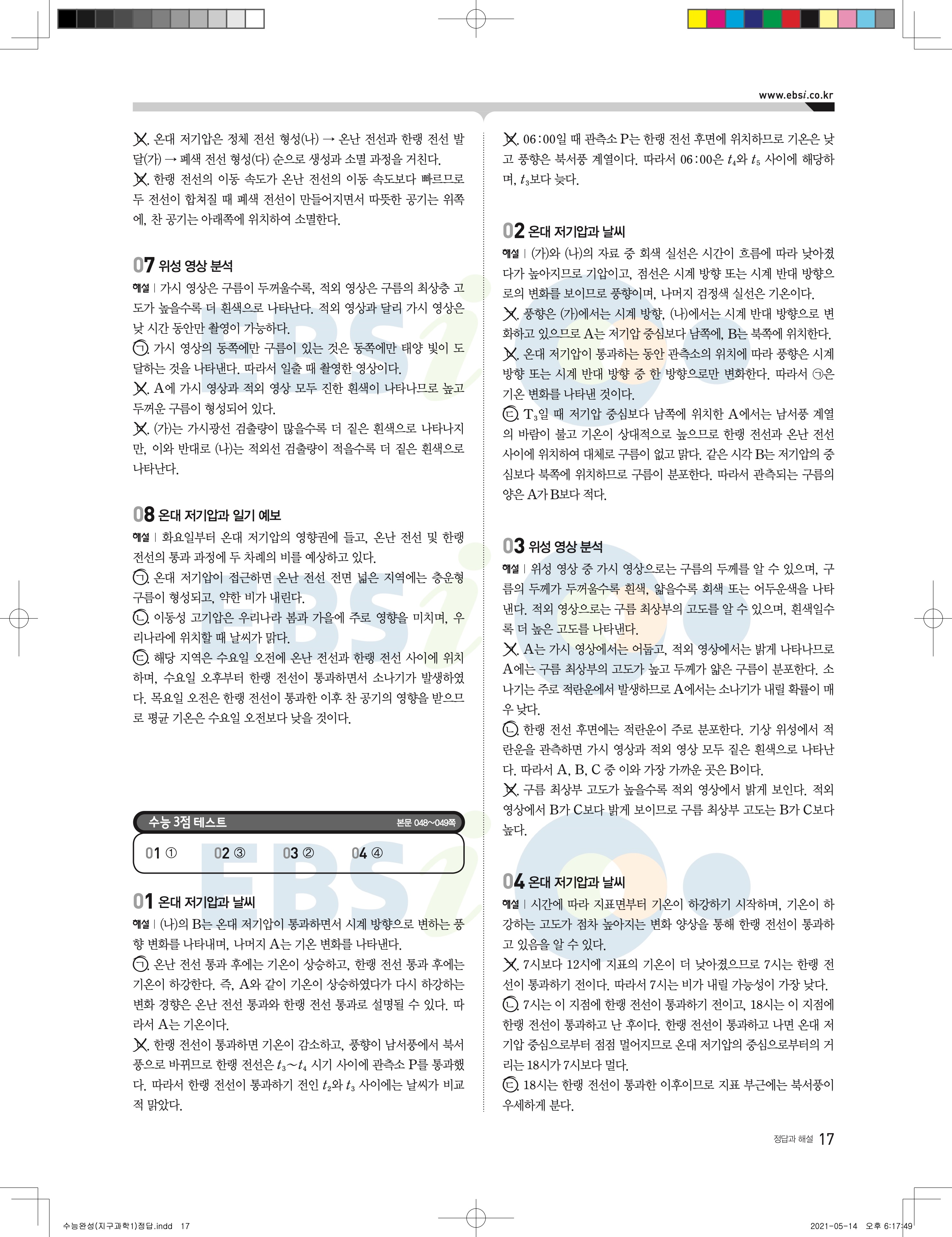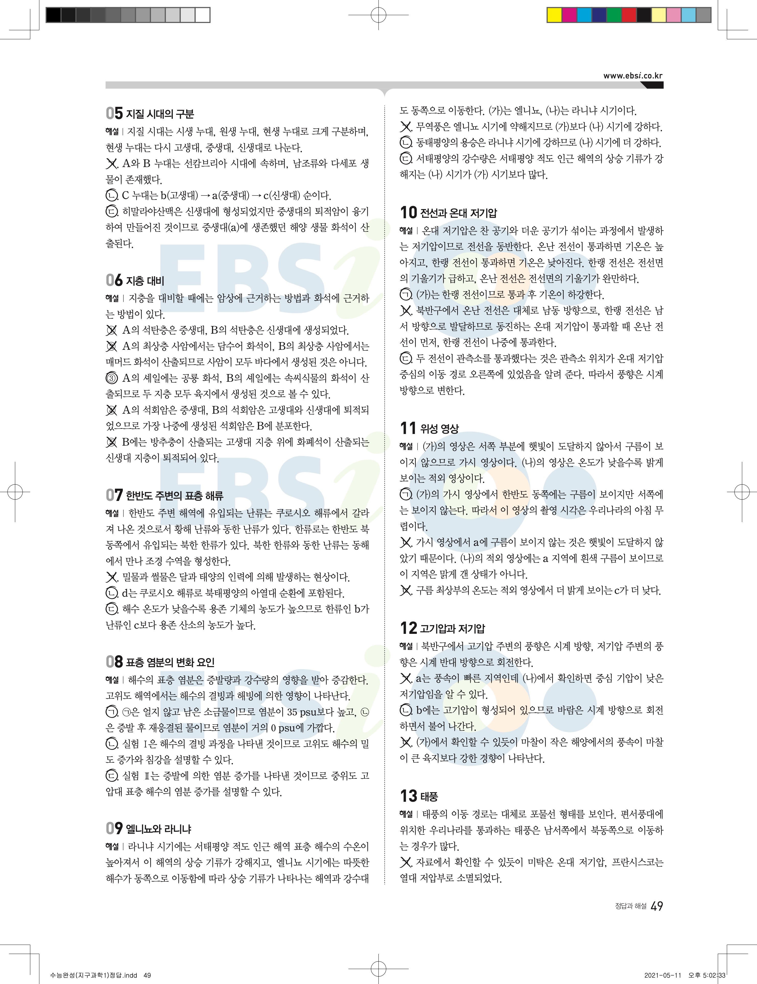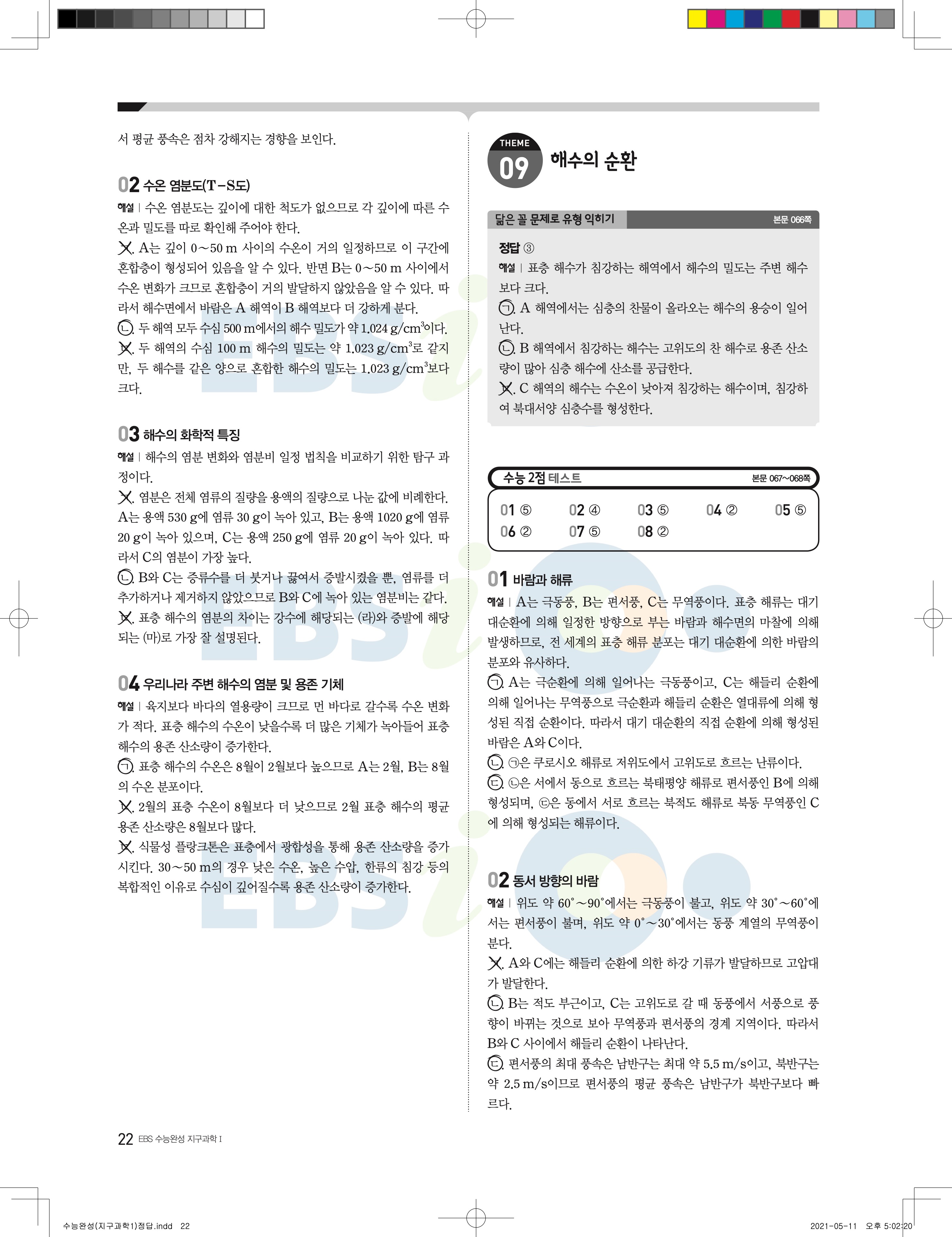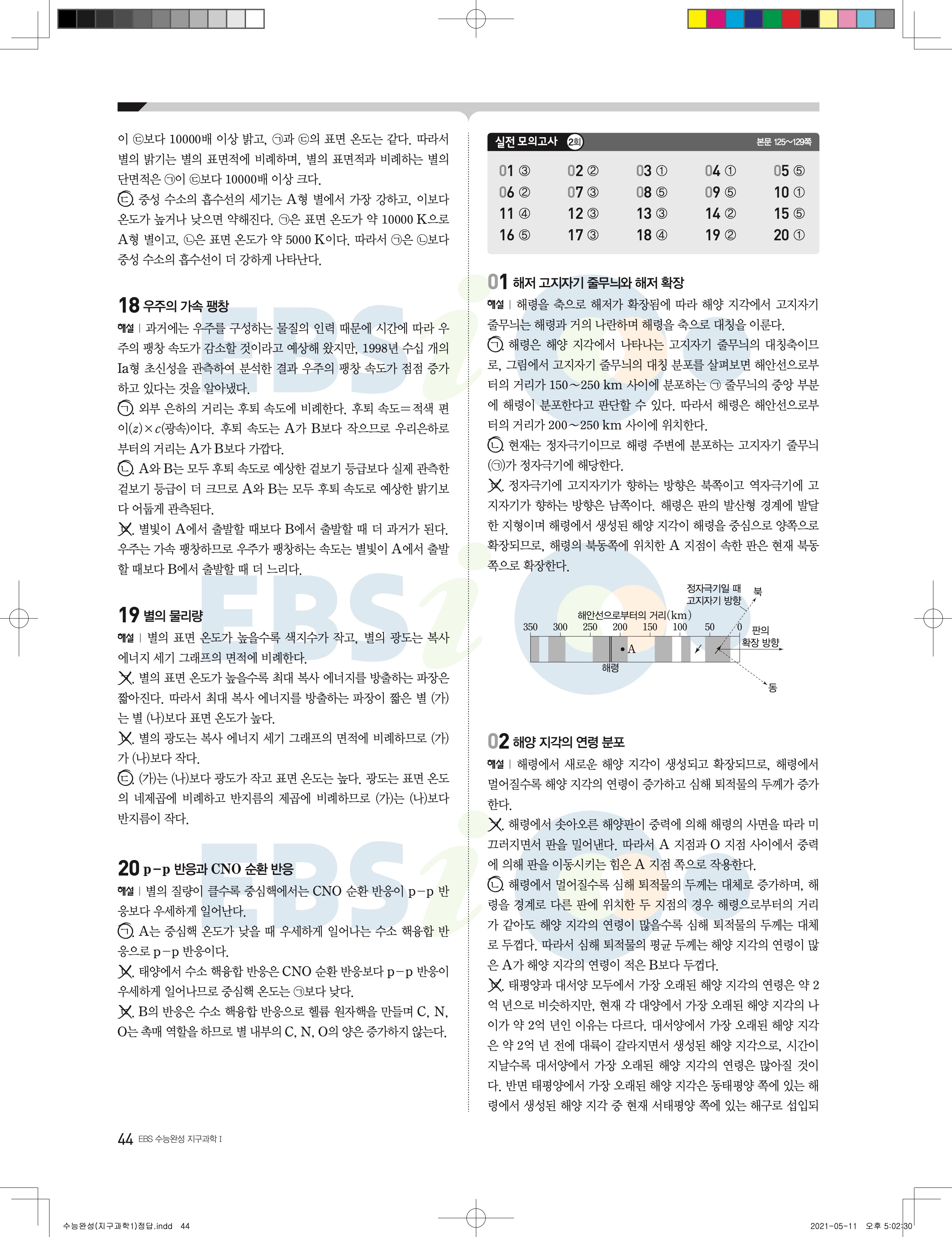 2022 EBS 수능완성 과학탐구영역 지구과학1 답지 해설 바로보는 사진답지 모바일최적화