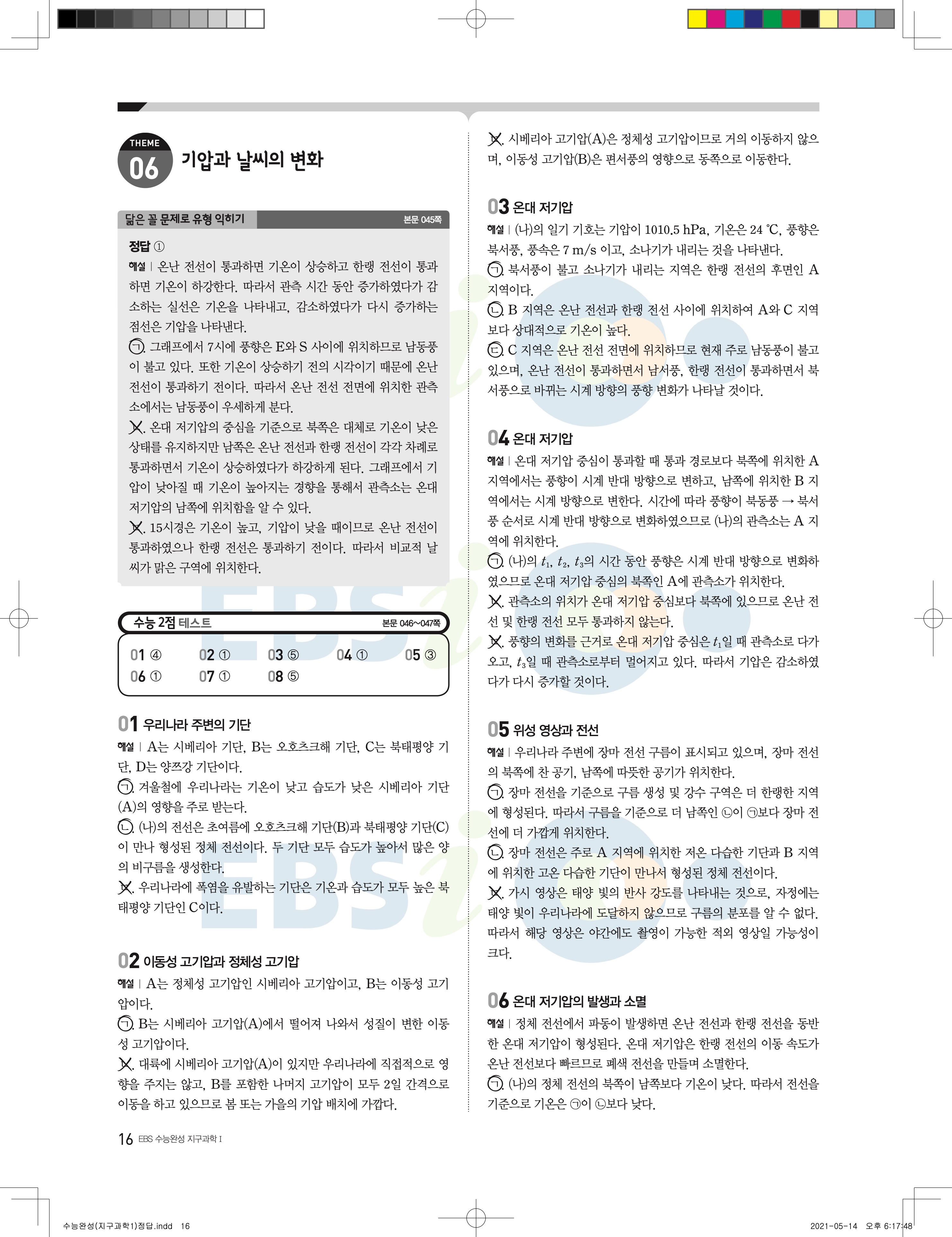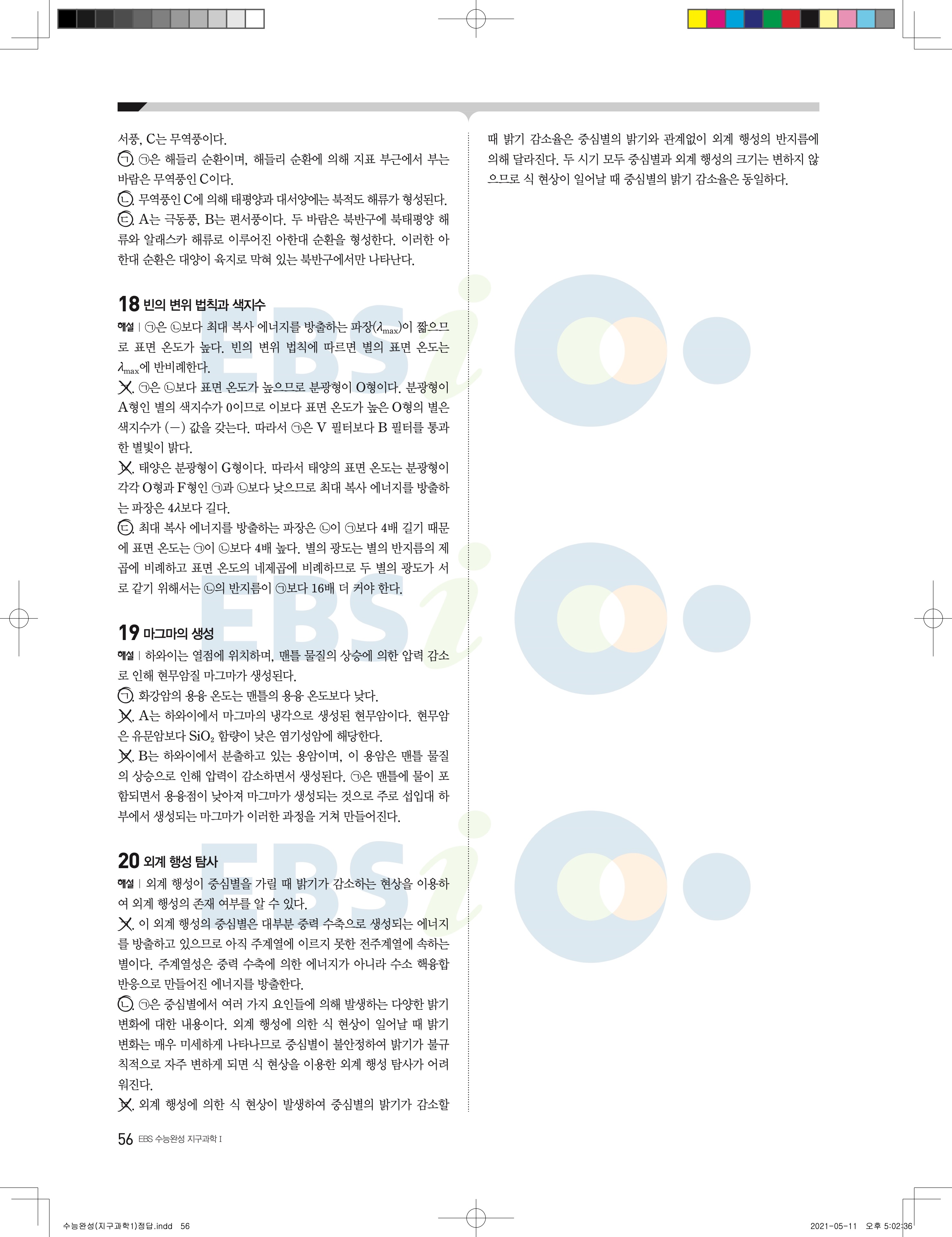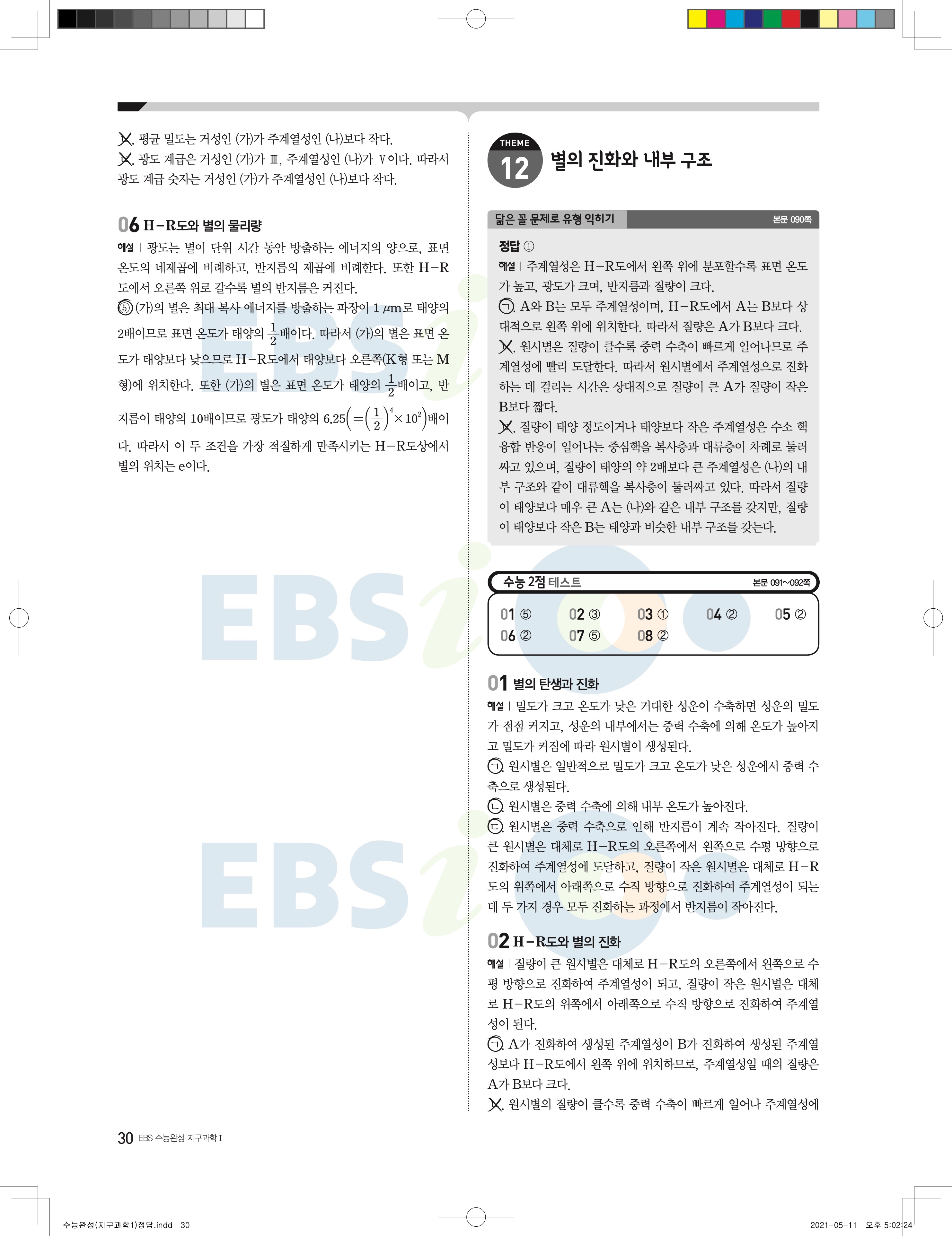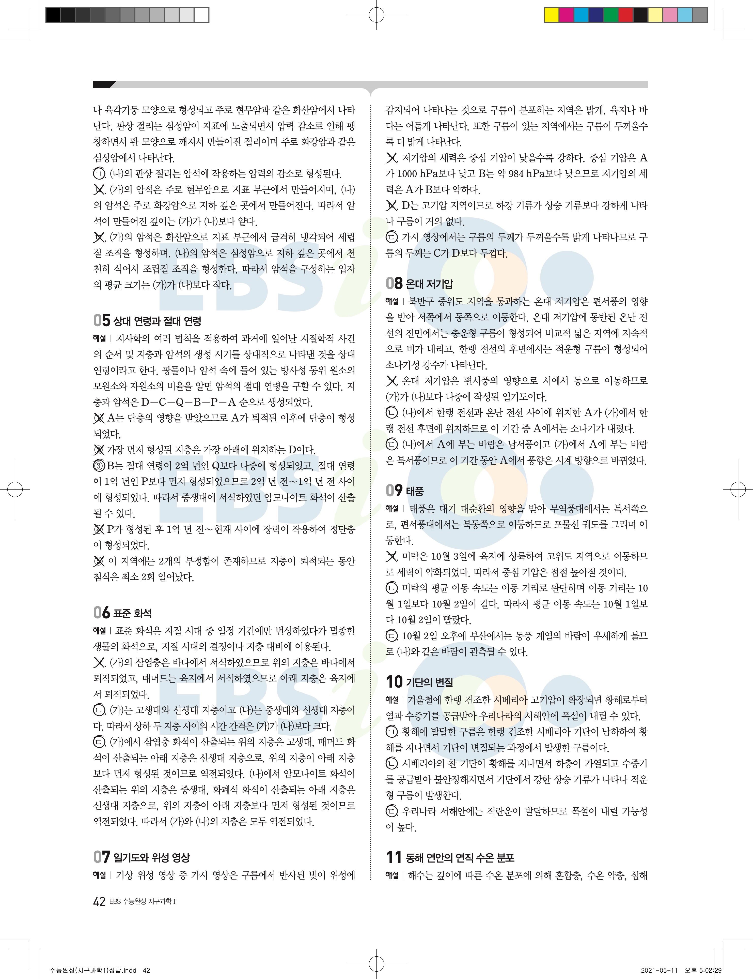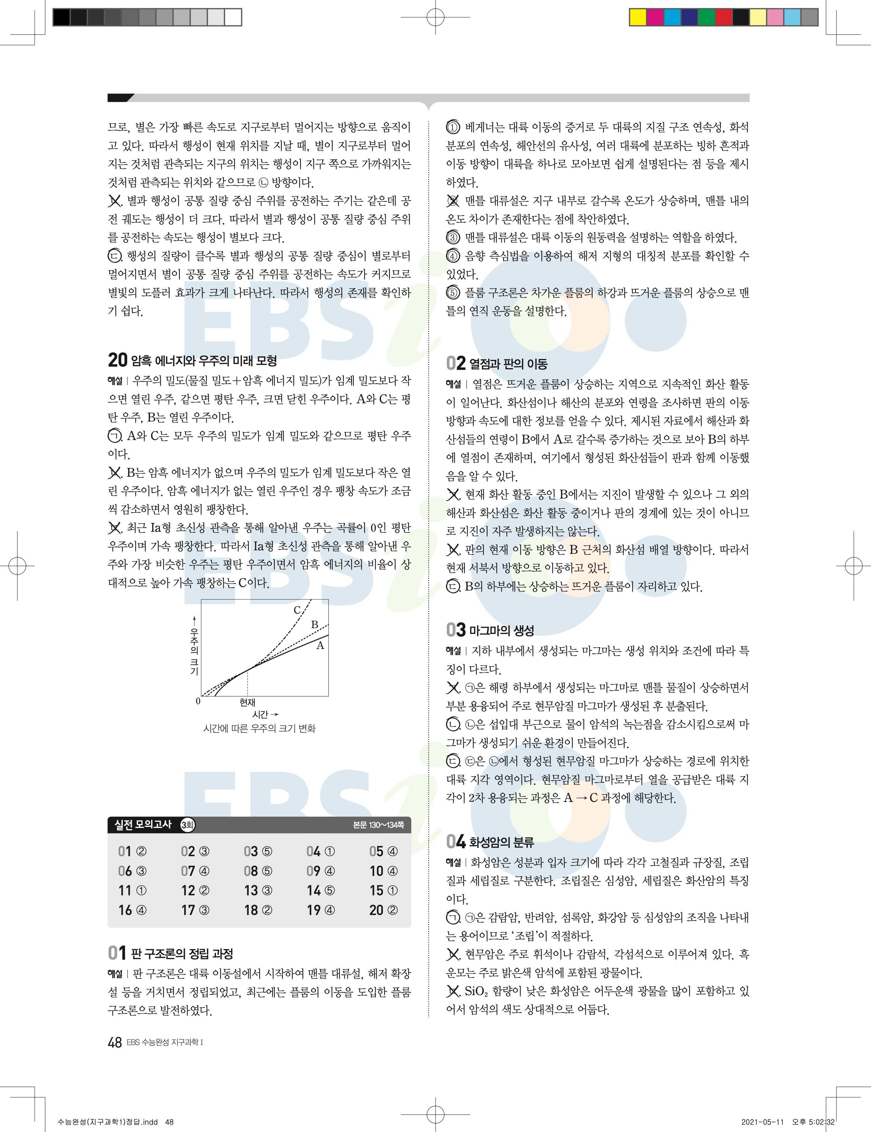 2022 EBS 수능완성 과학탐구영역 지구과학1 답지 해설 바로보는 사진답지 모바일최적화