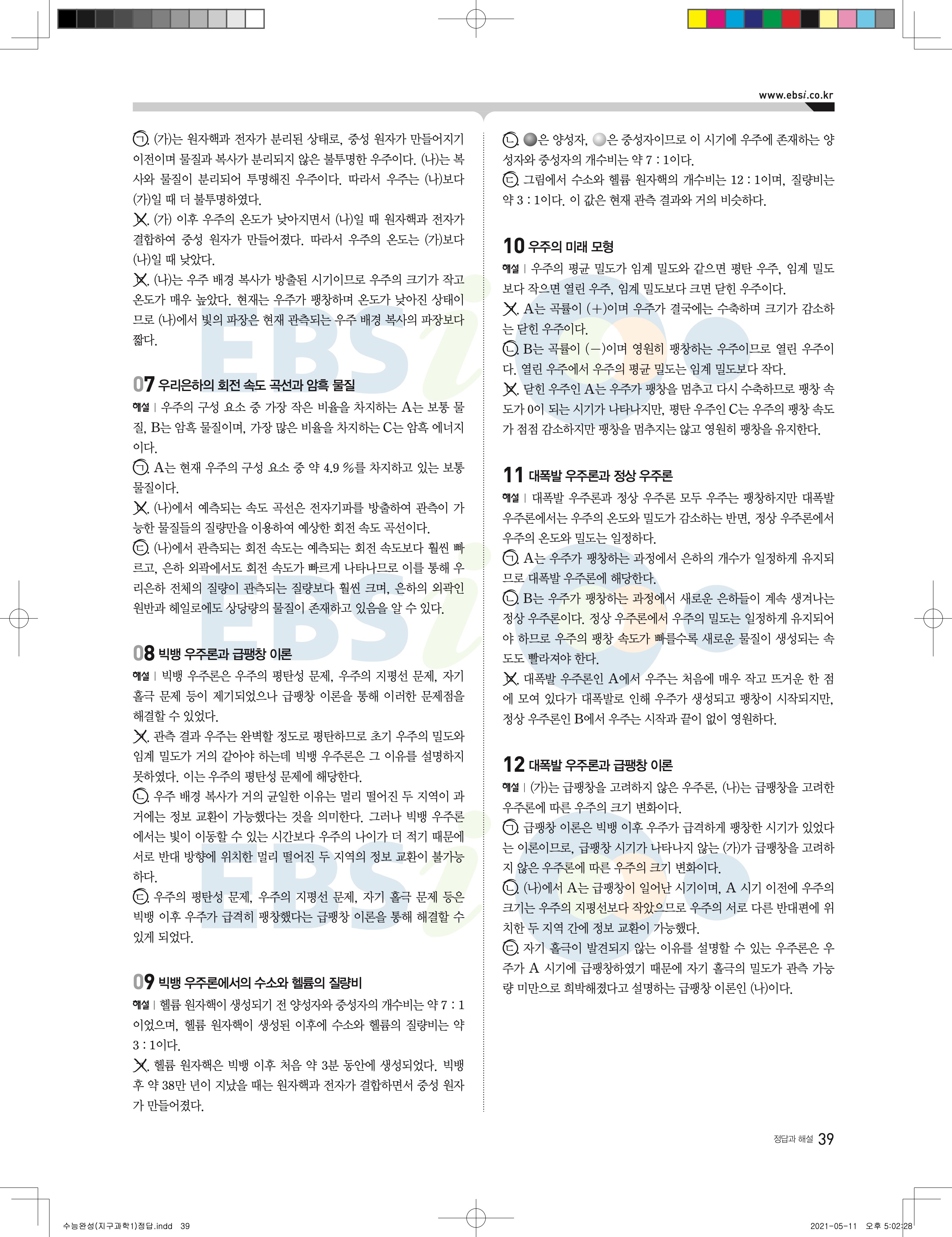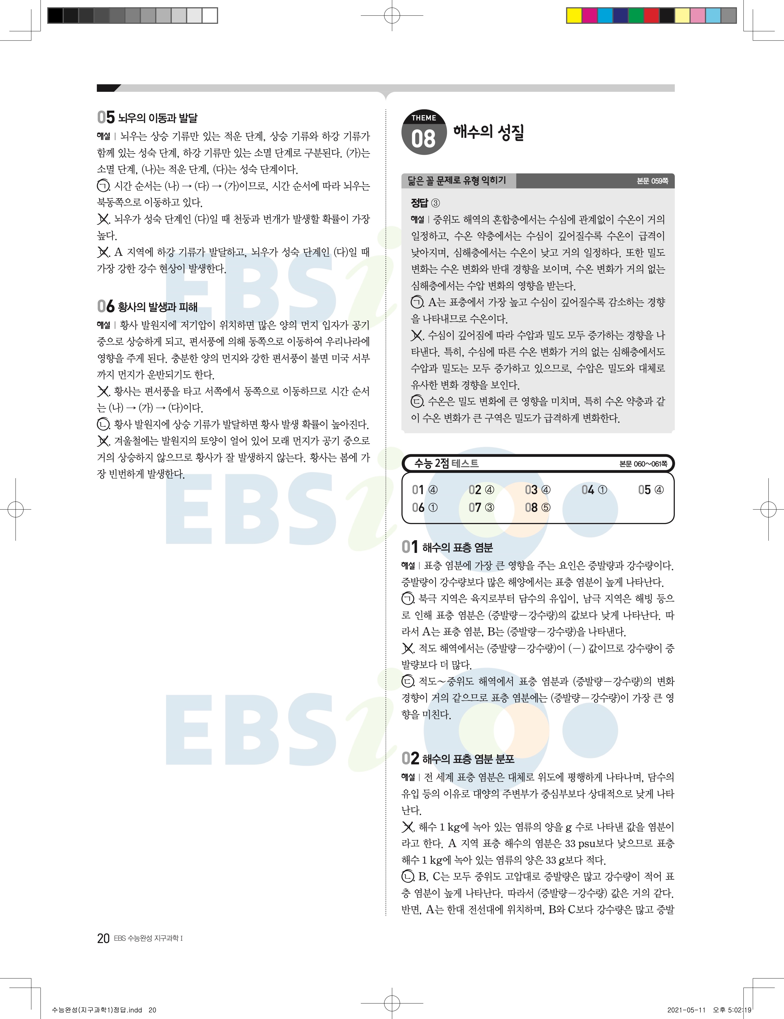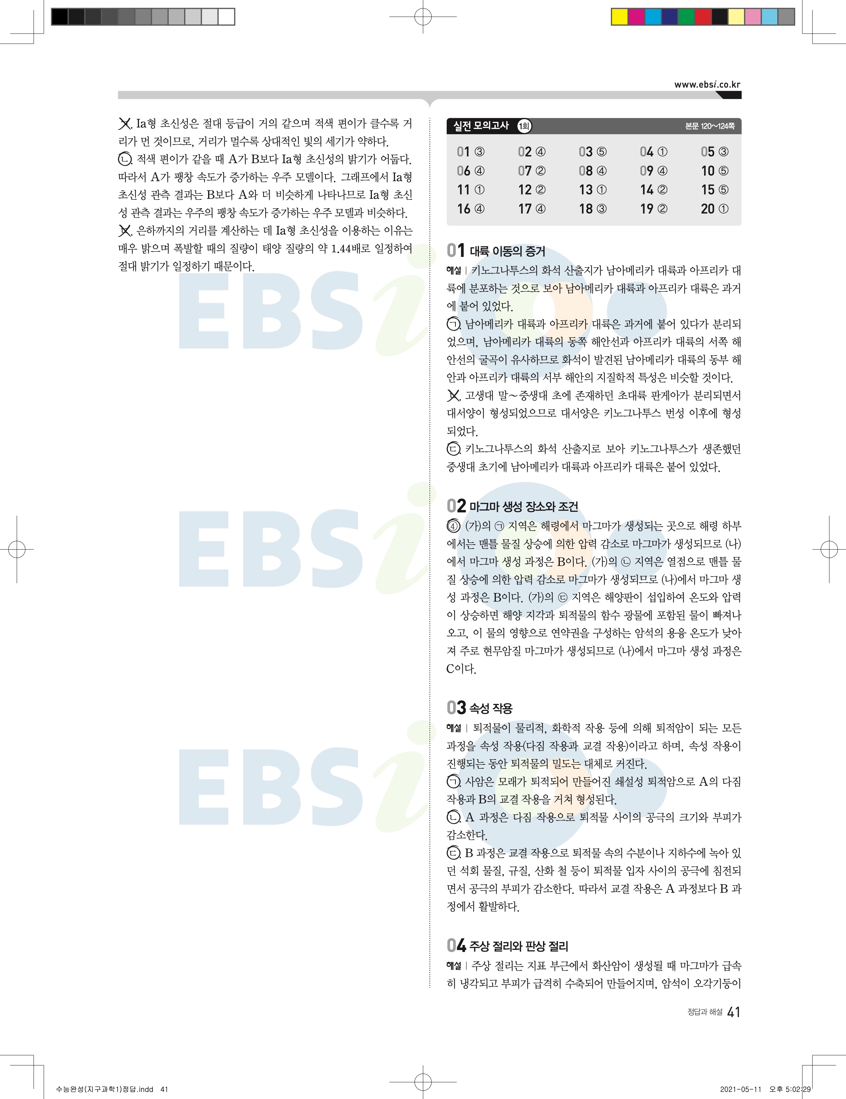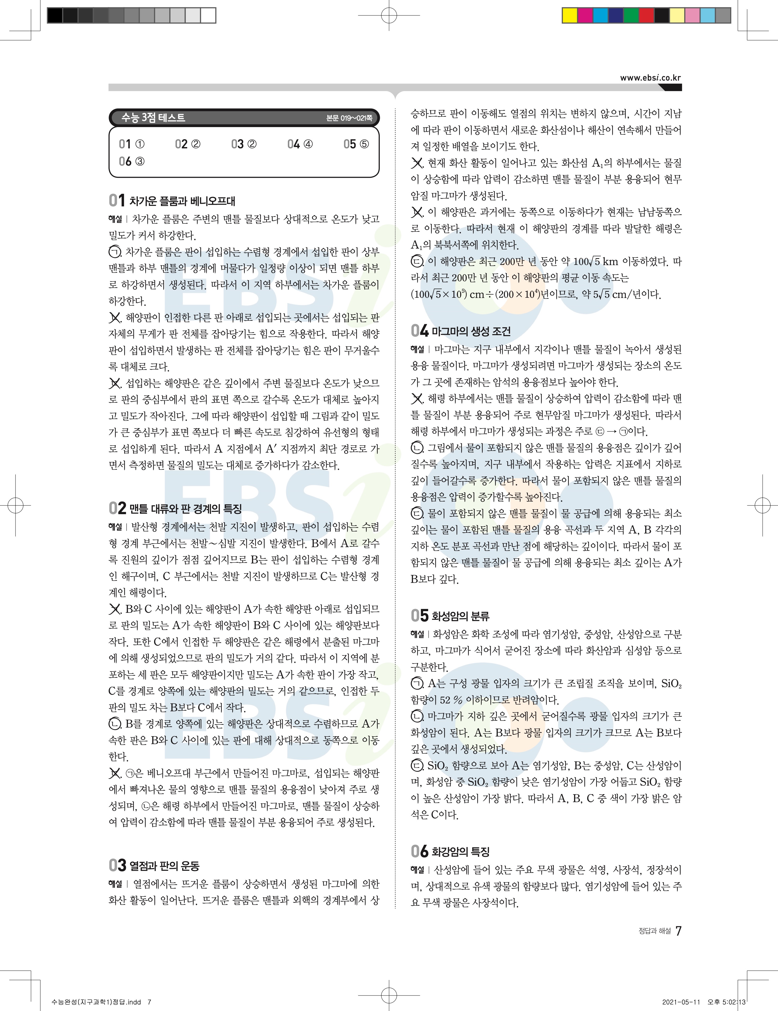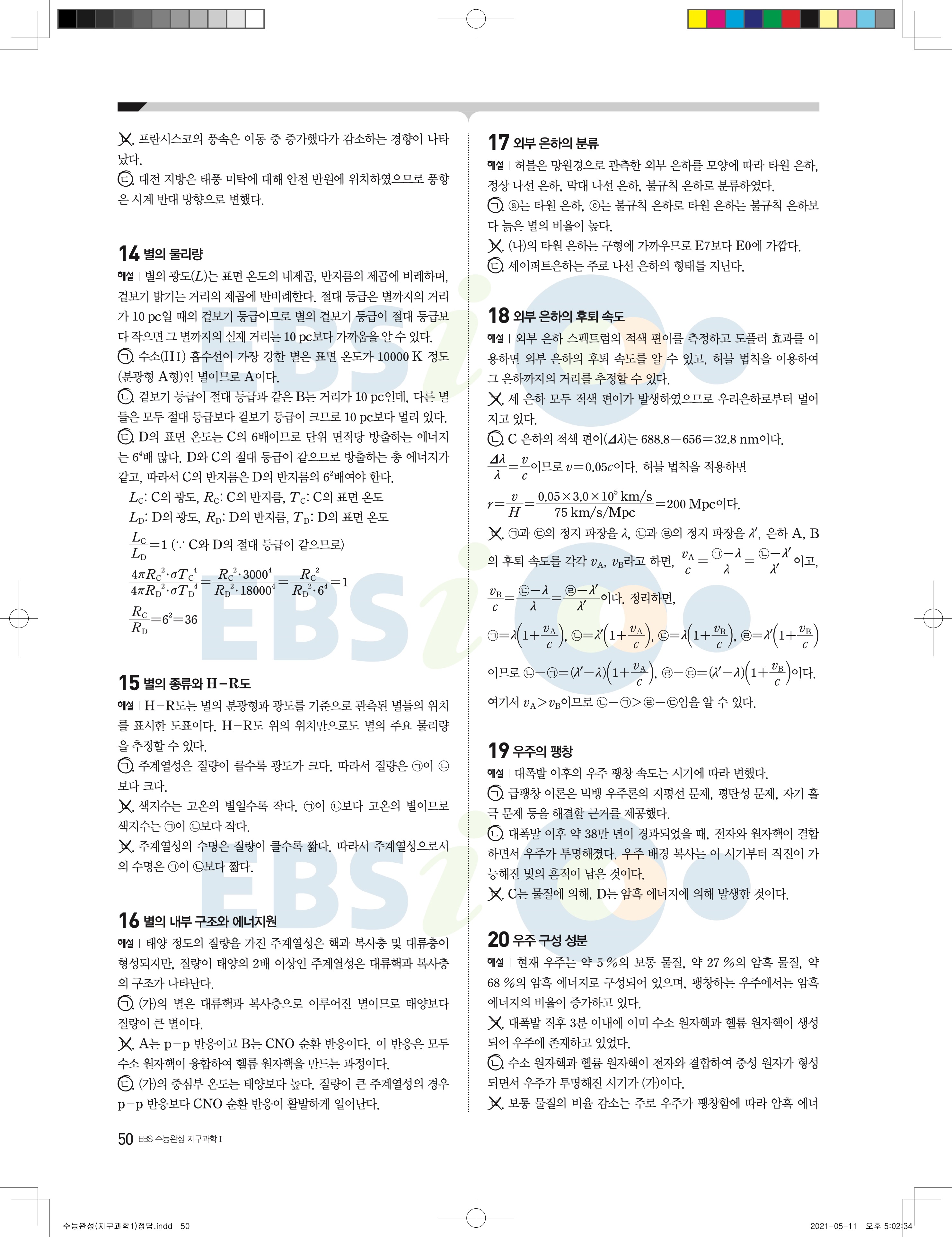 2022 EBS 수능완성 과학탐구영역 지구과학1 답지 해설 바로보는 사진답지 모바일최적화