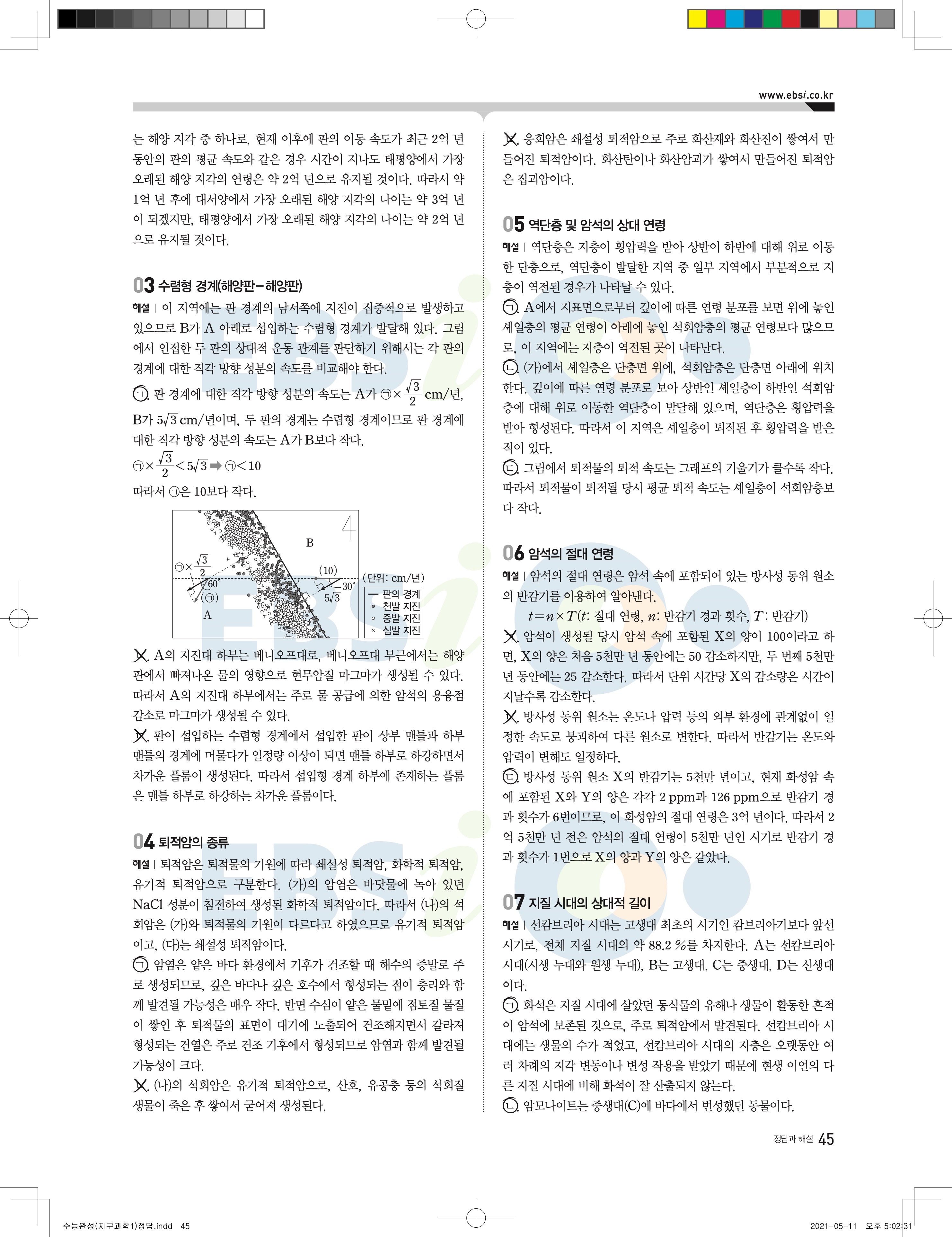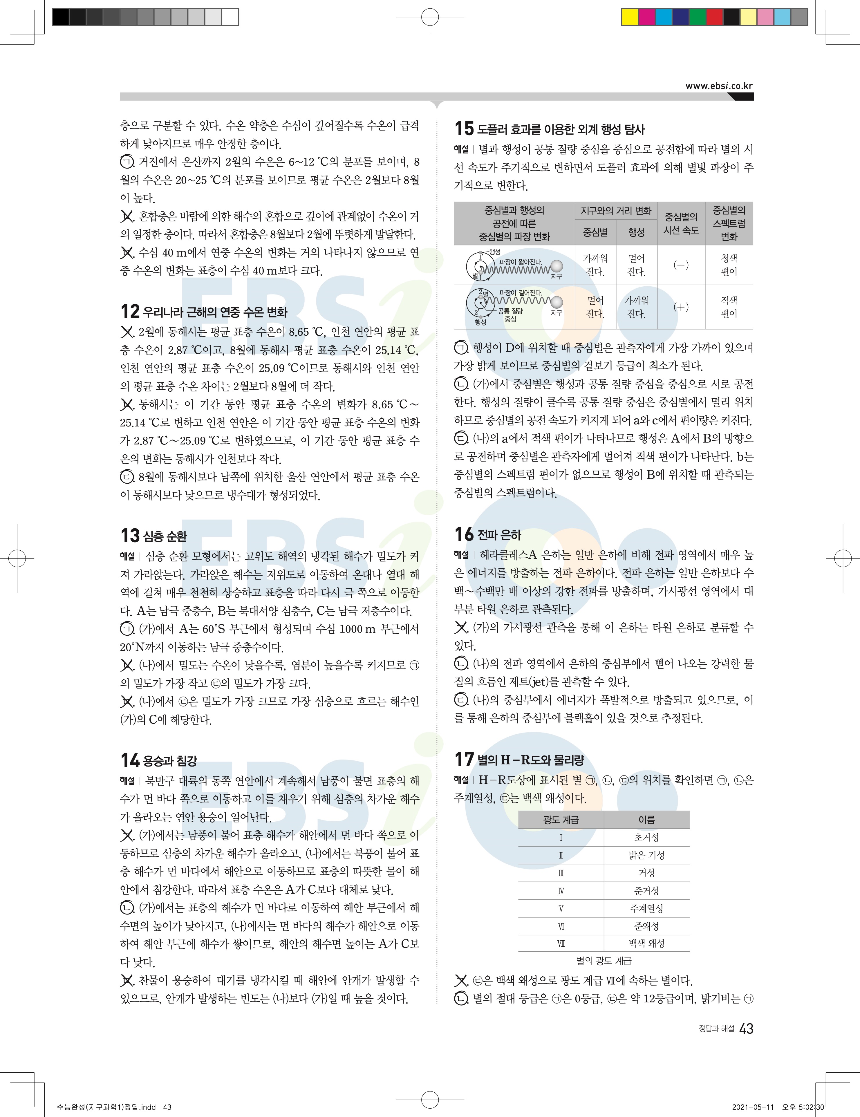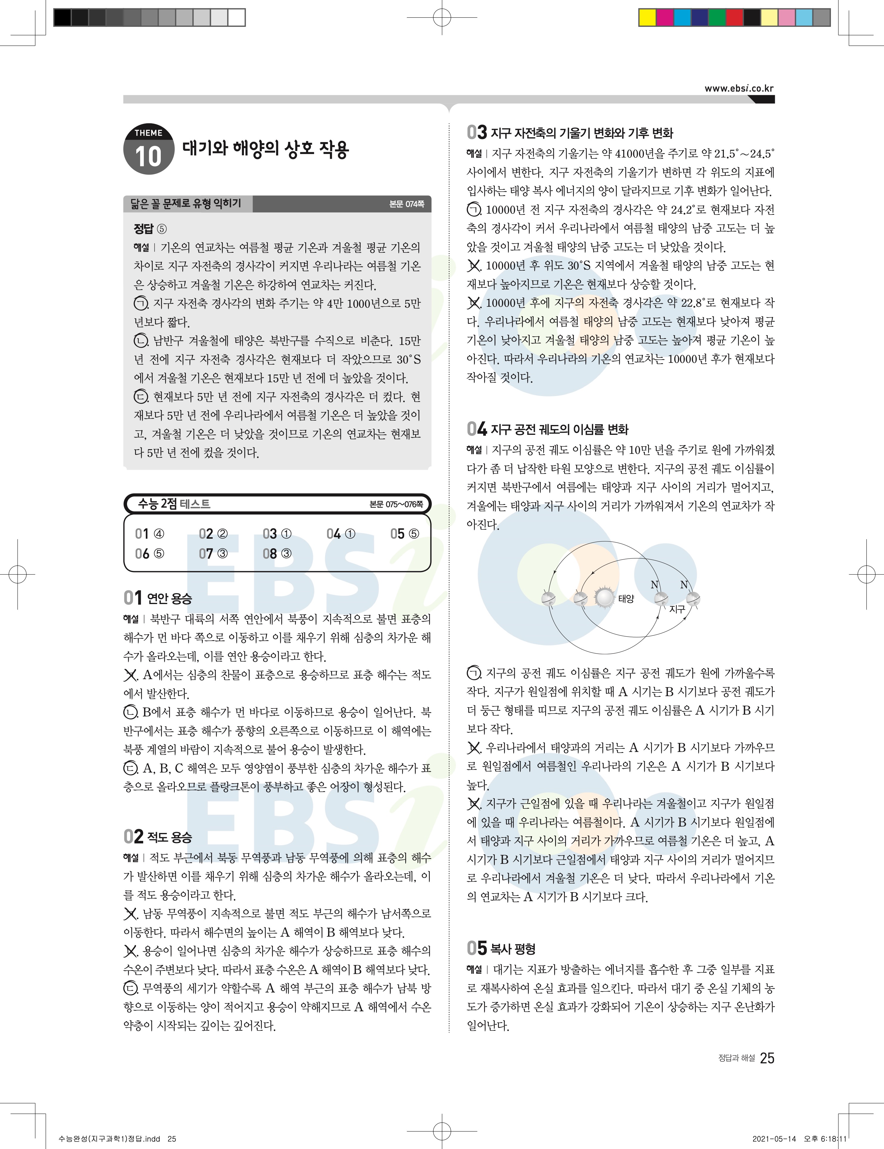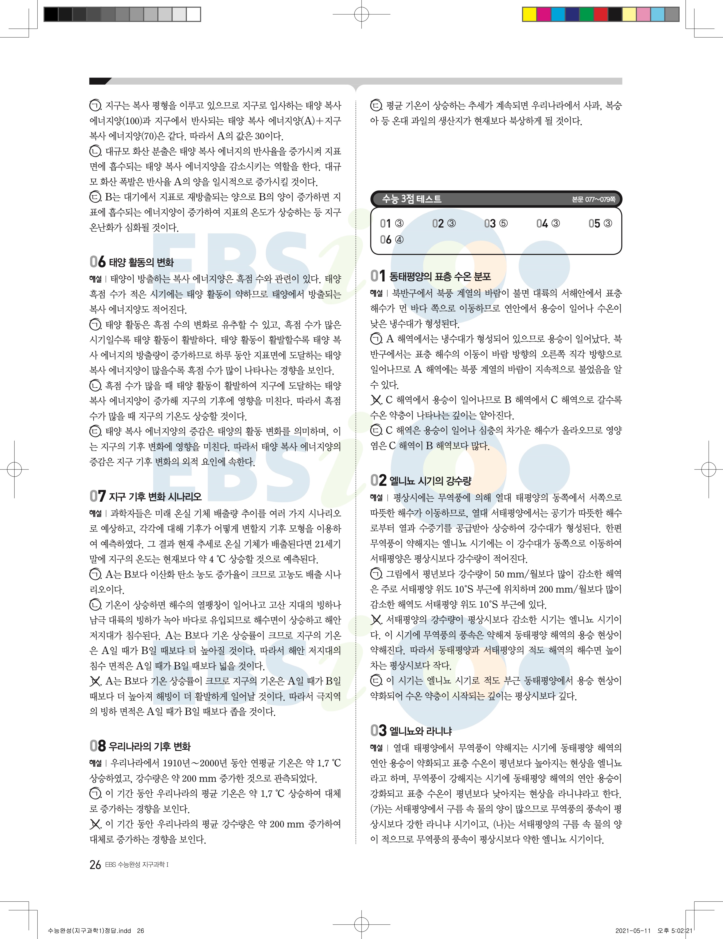 2022 EBS 수능완성 과학탐구영역 지구과학1 답지 해설 바로보는 사진답지 모바일최적화