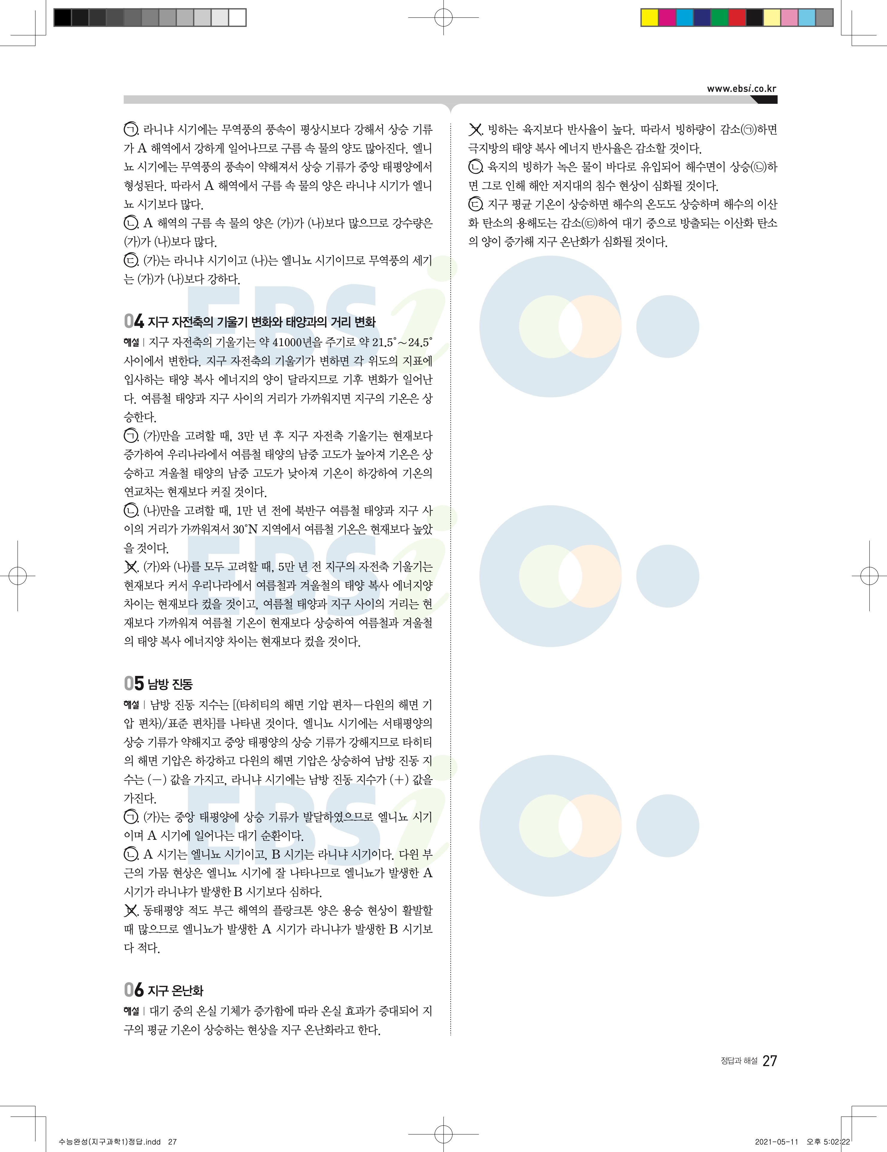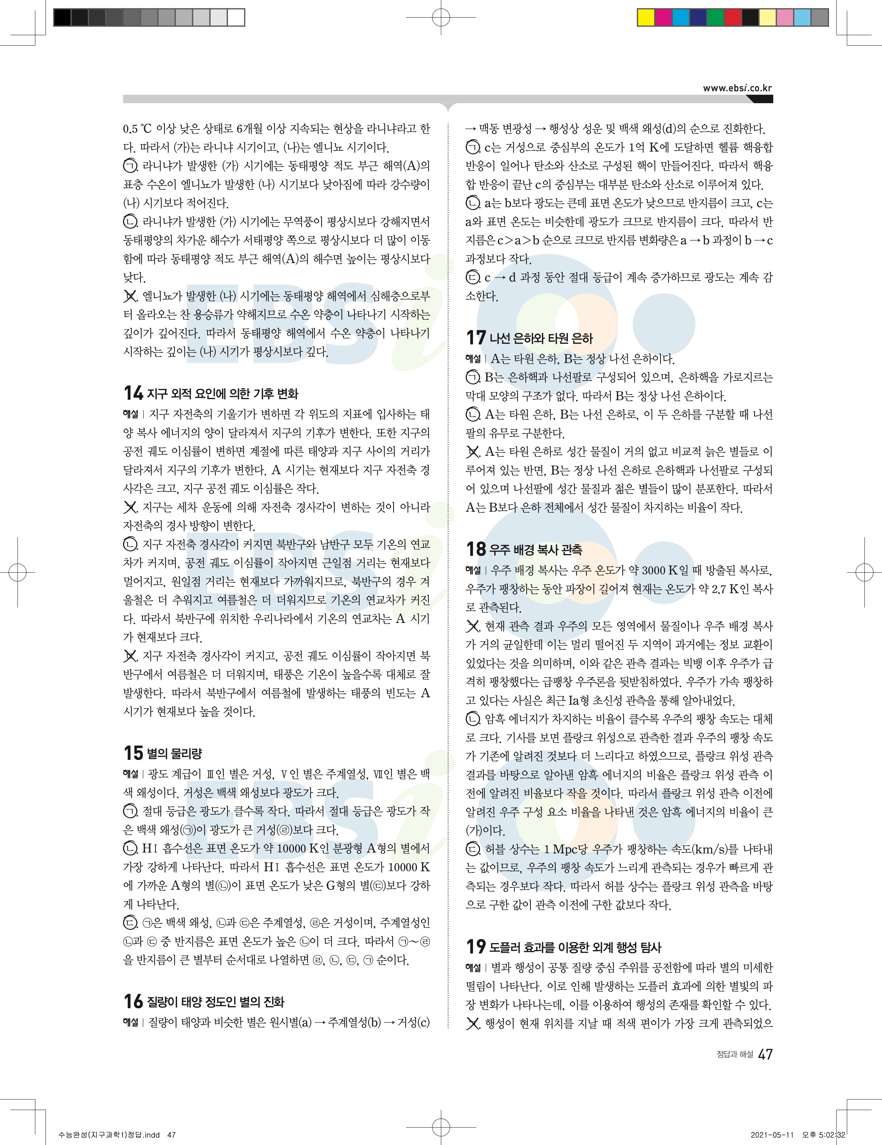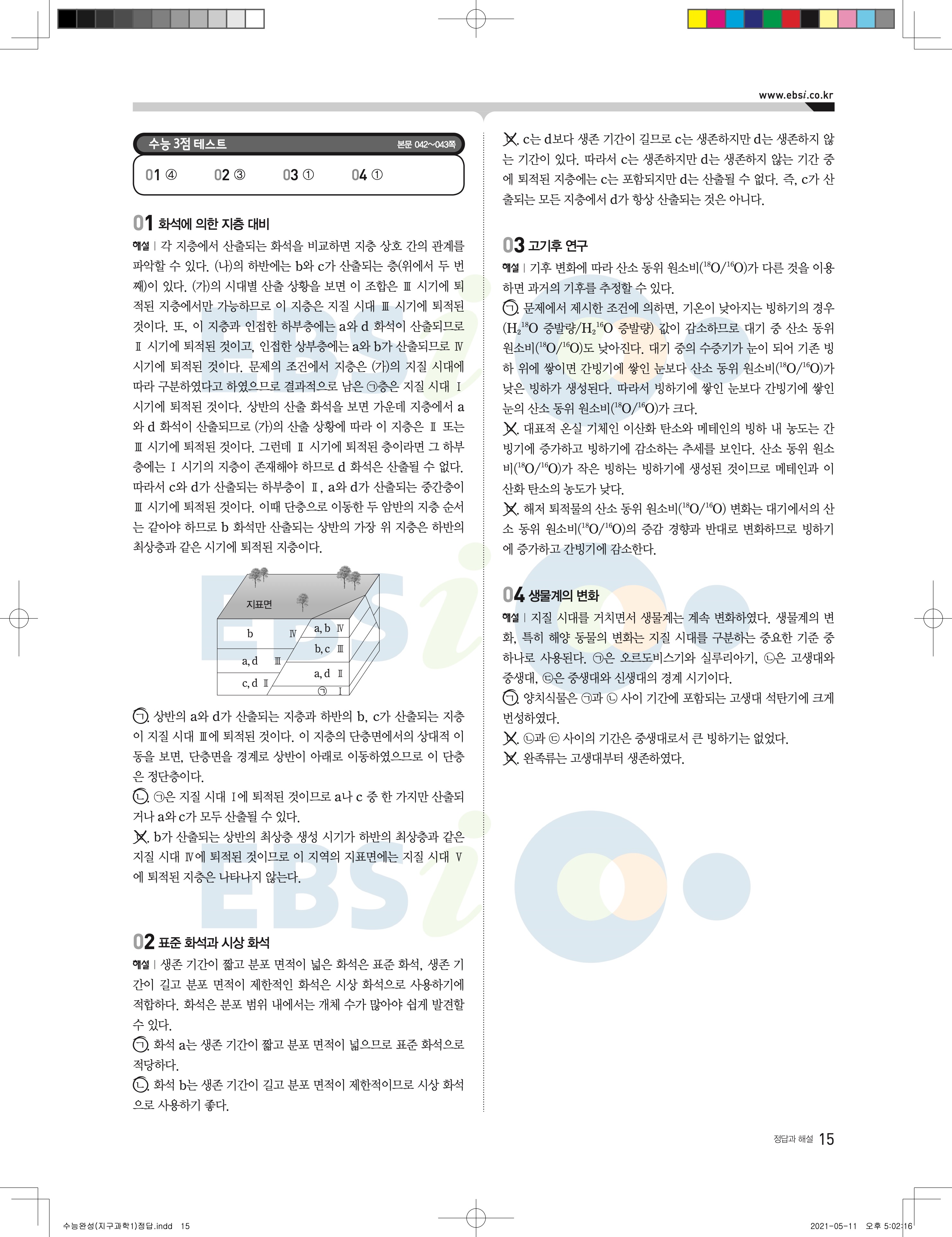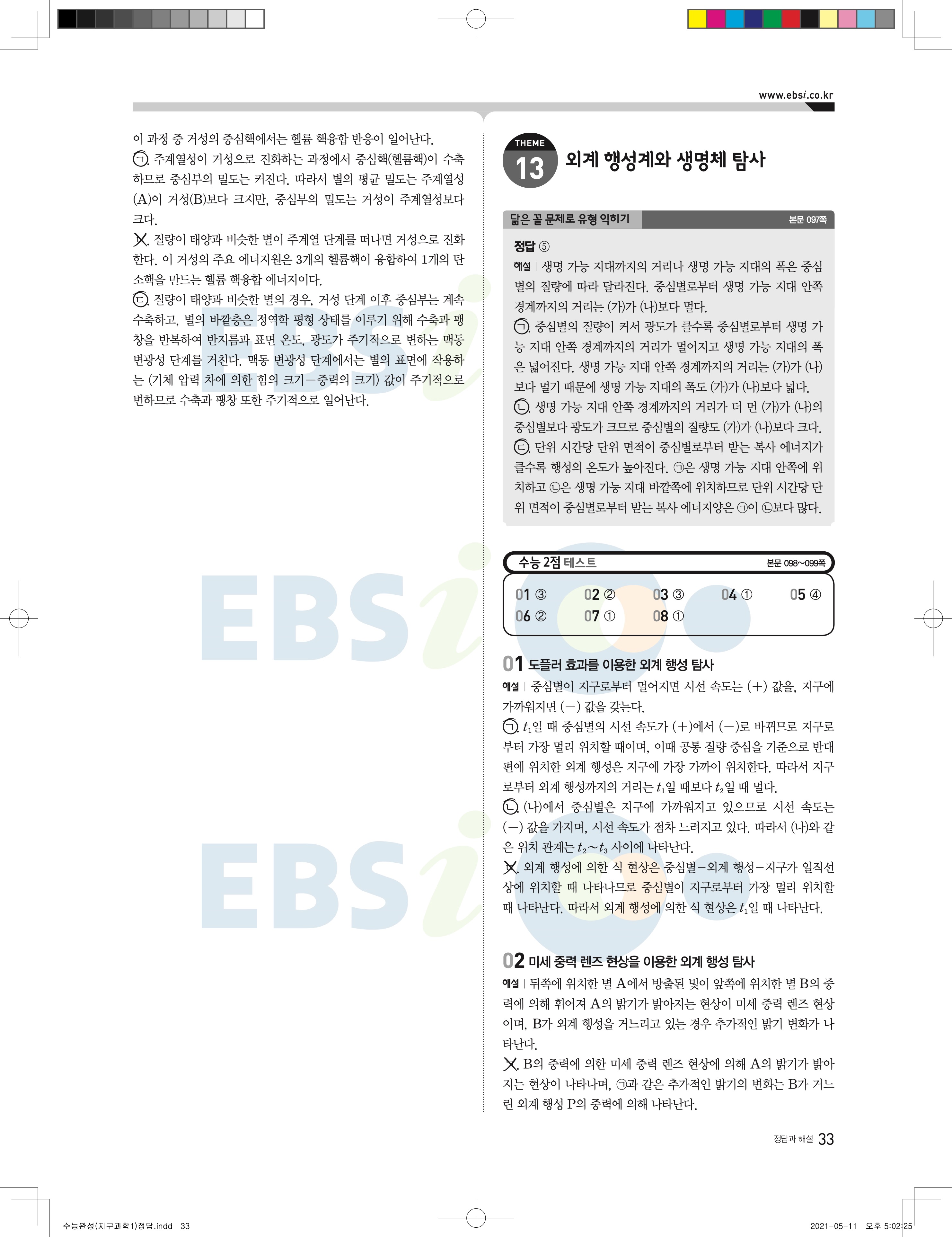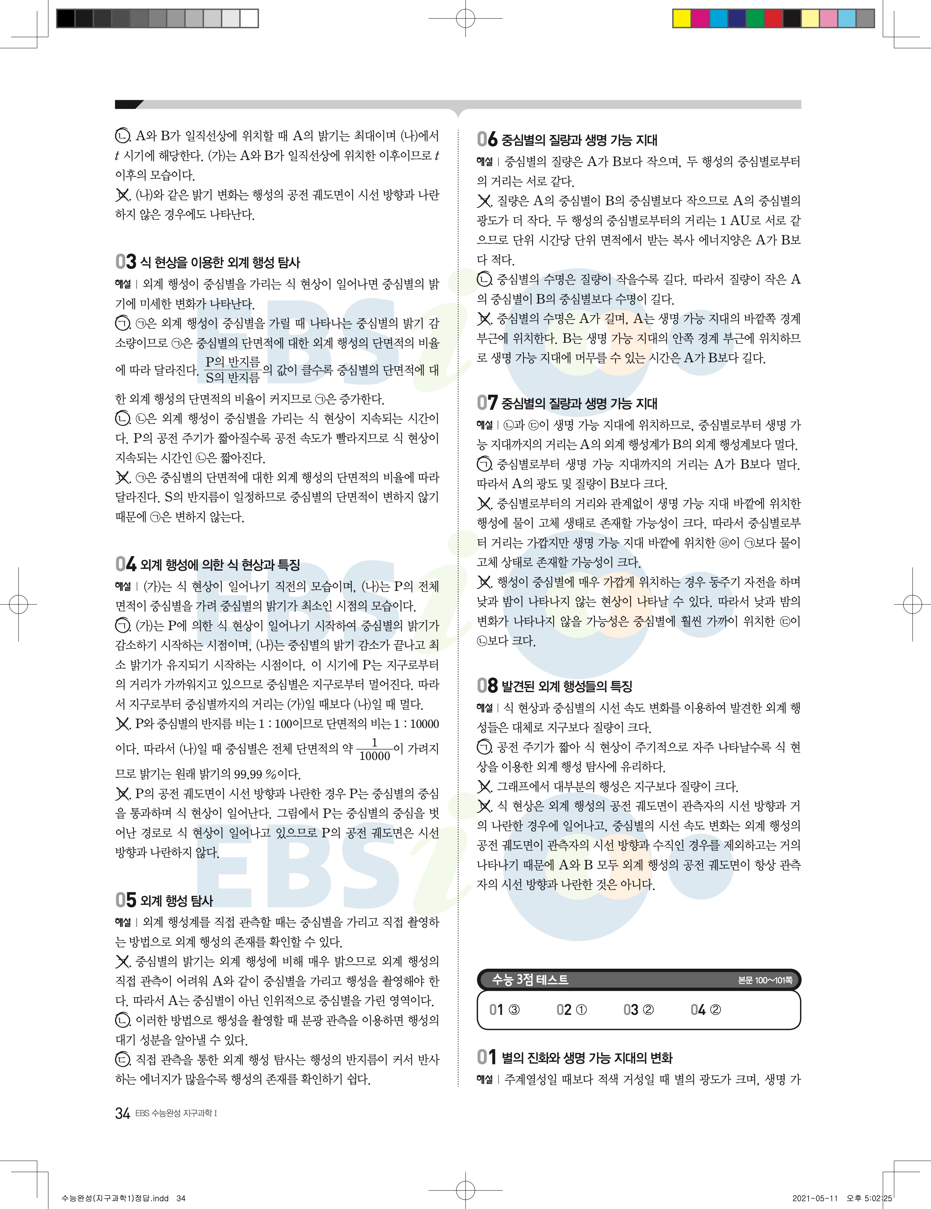2022 EBS 수능완성 과학탐구영역 지구과학1 답지 해설 바로보는 사진답지 모바일최적화