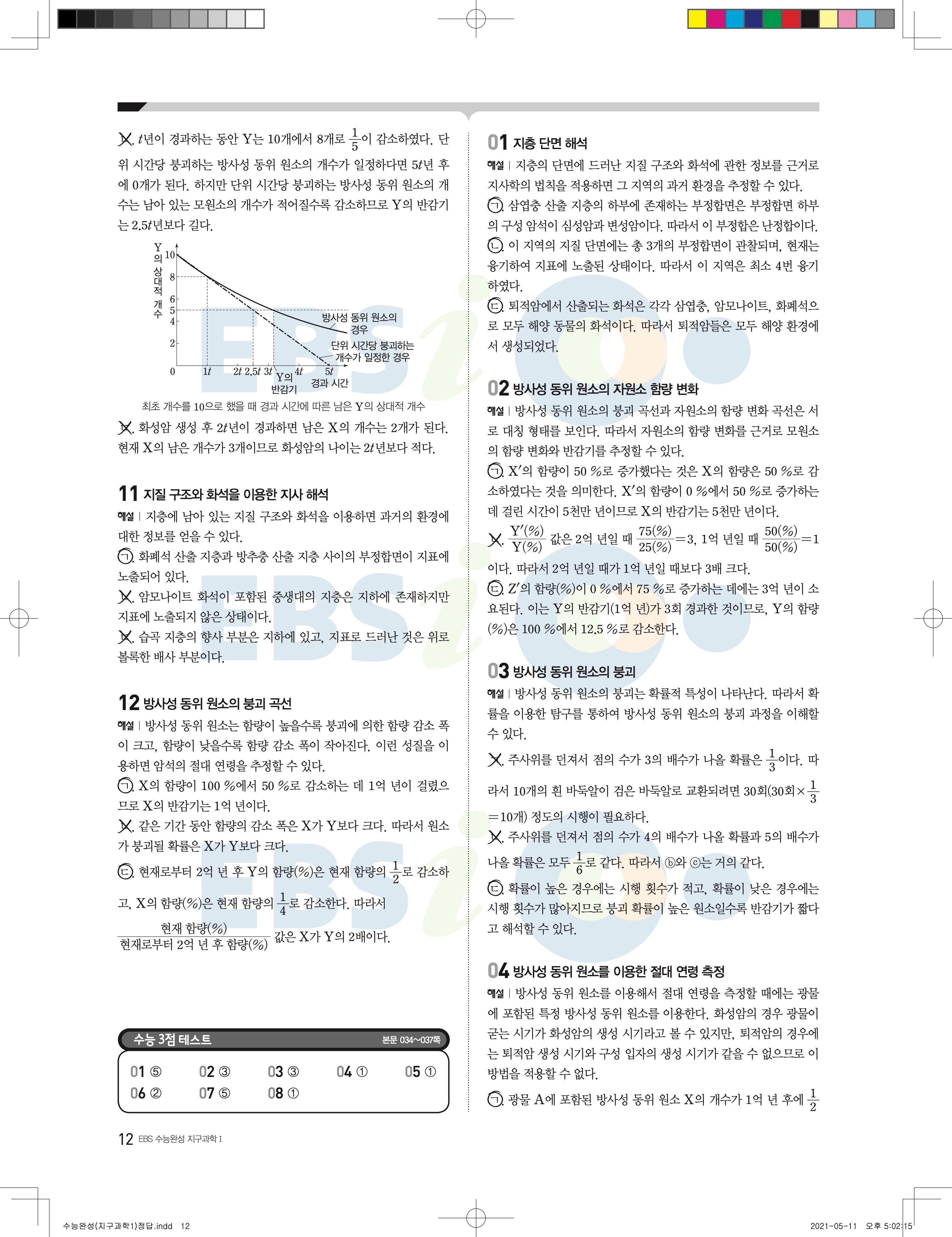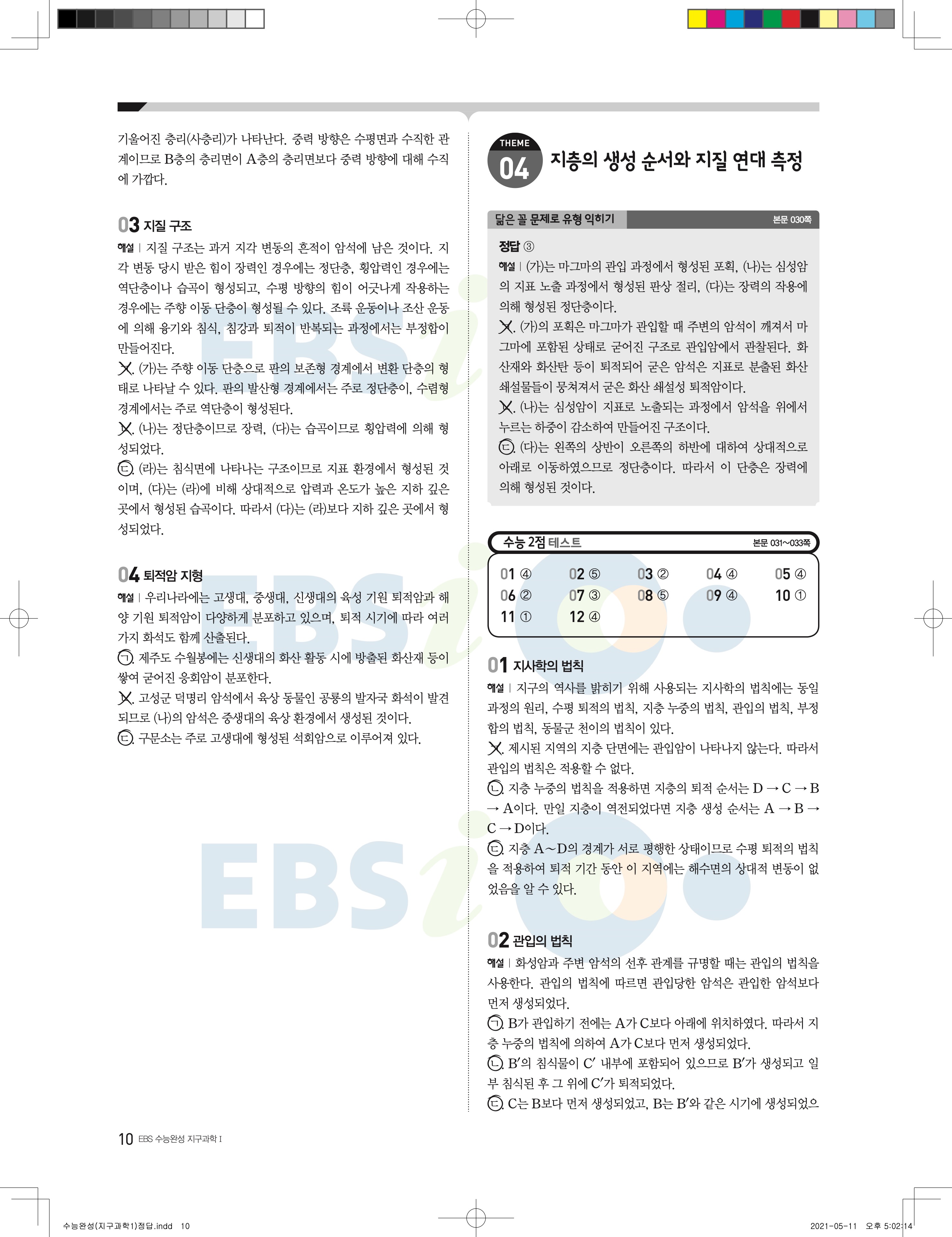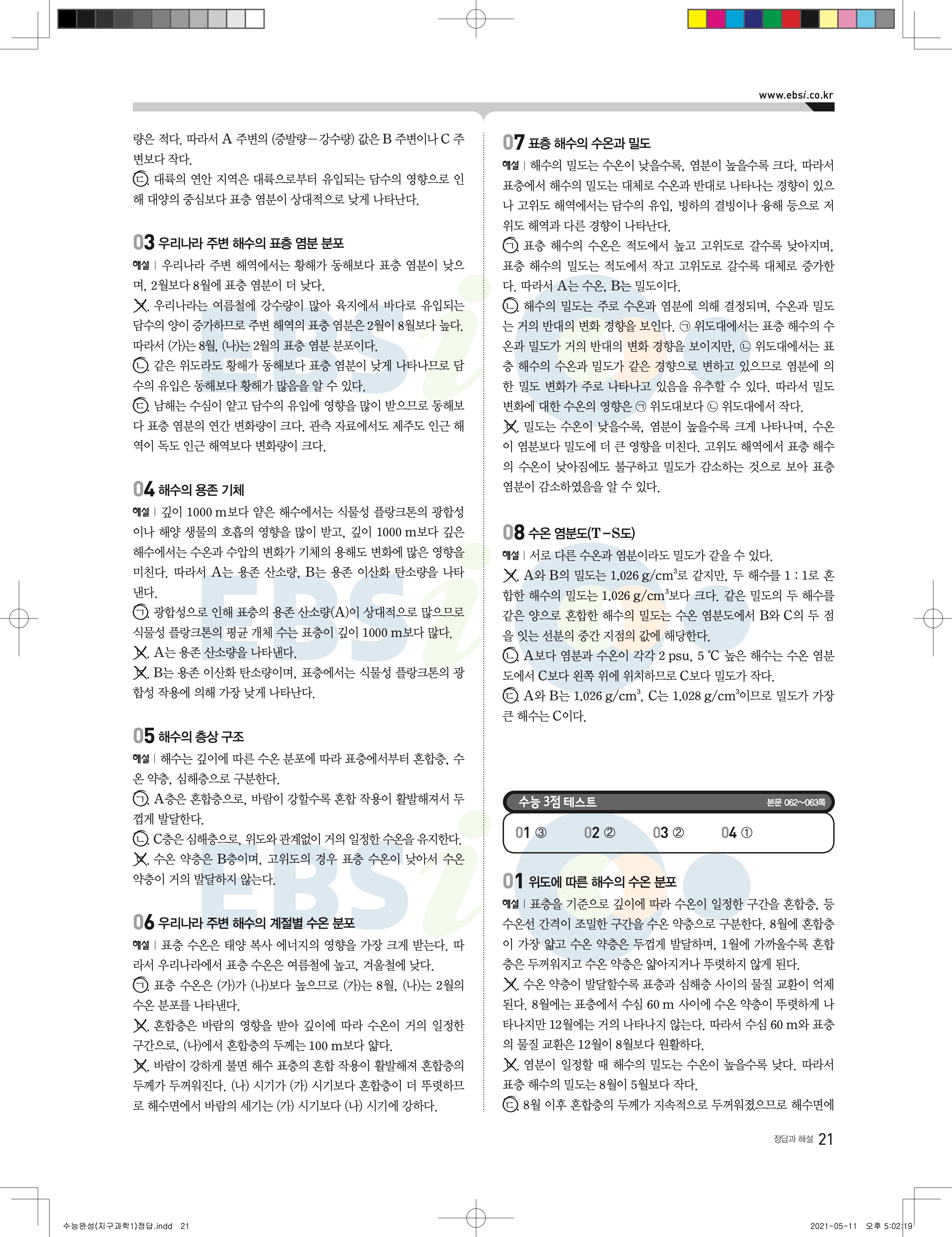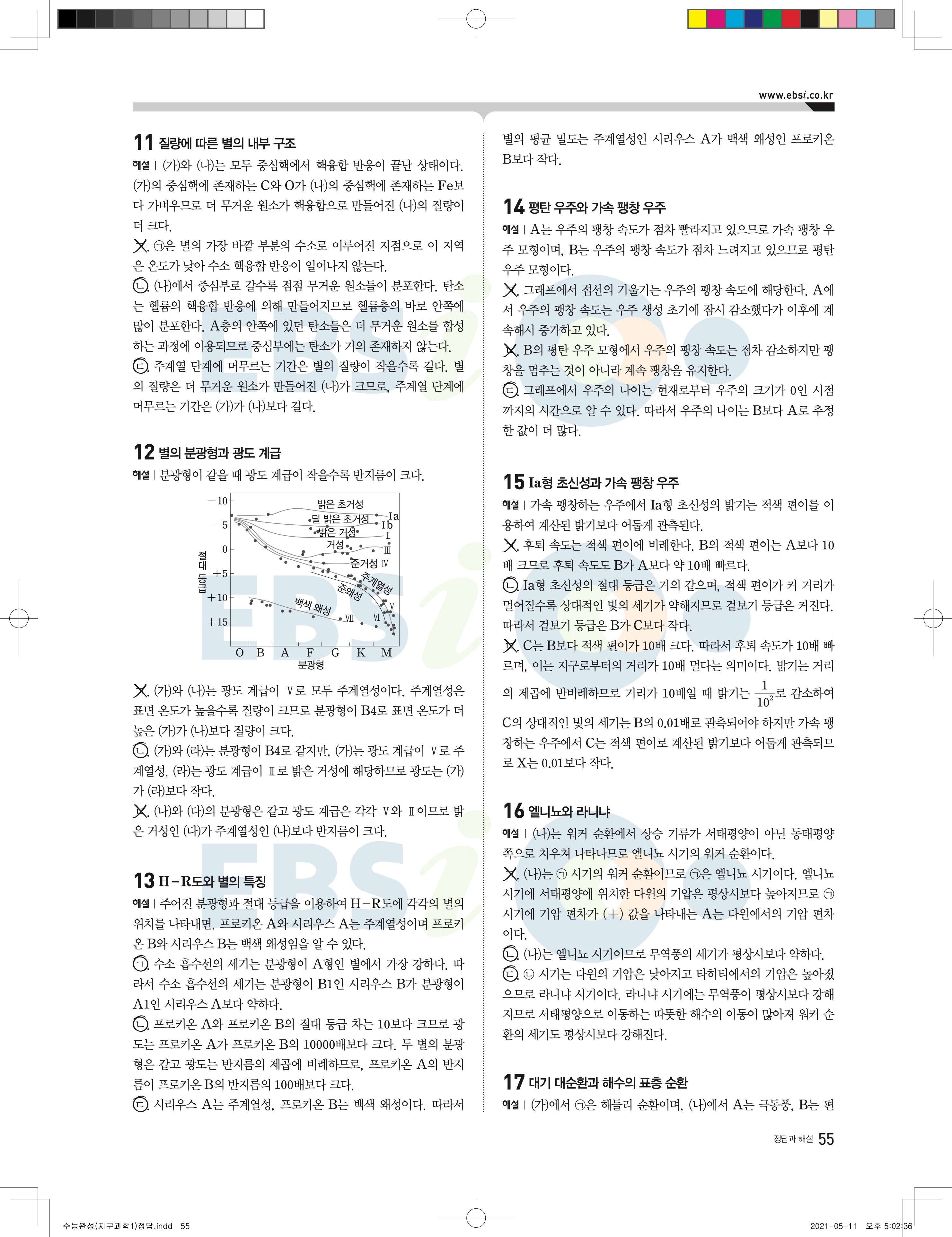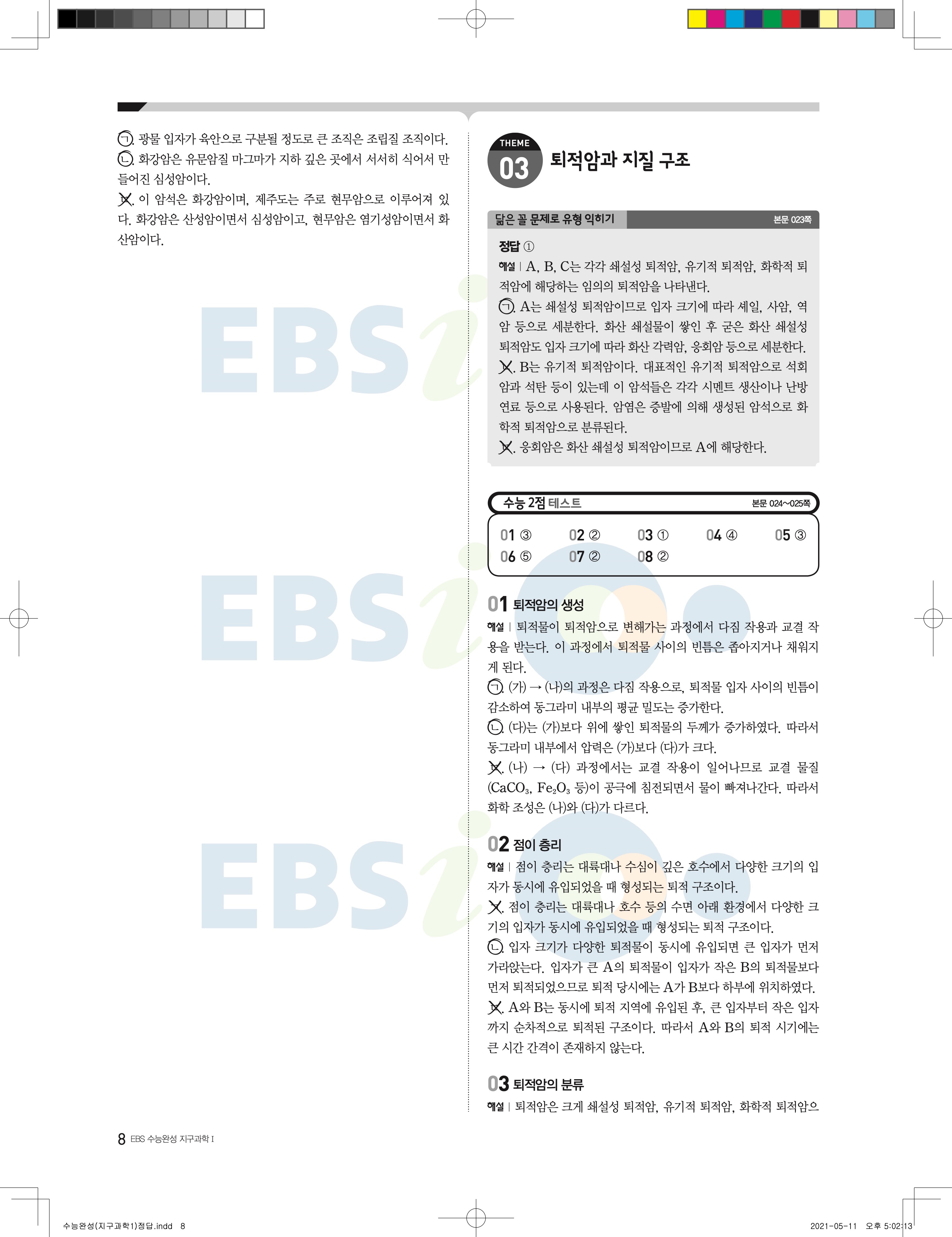 2022 EBS 수능완성 과학탐구영역 지구과학1 답지 해설 바로보는 사진답지 모바일최적화