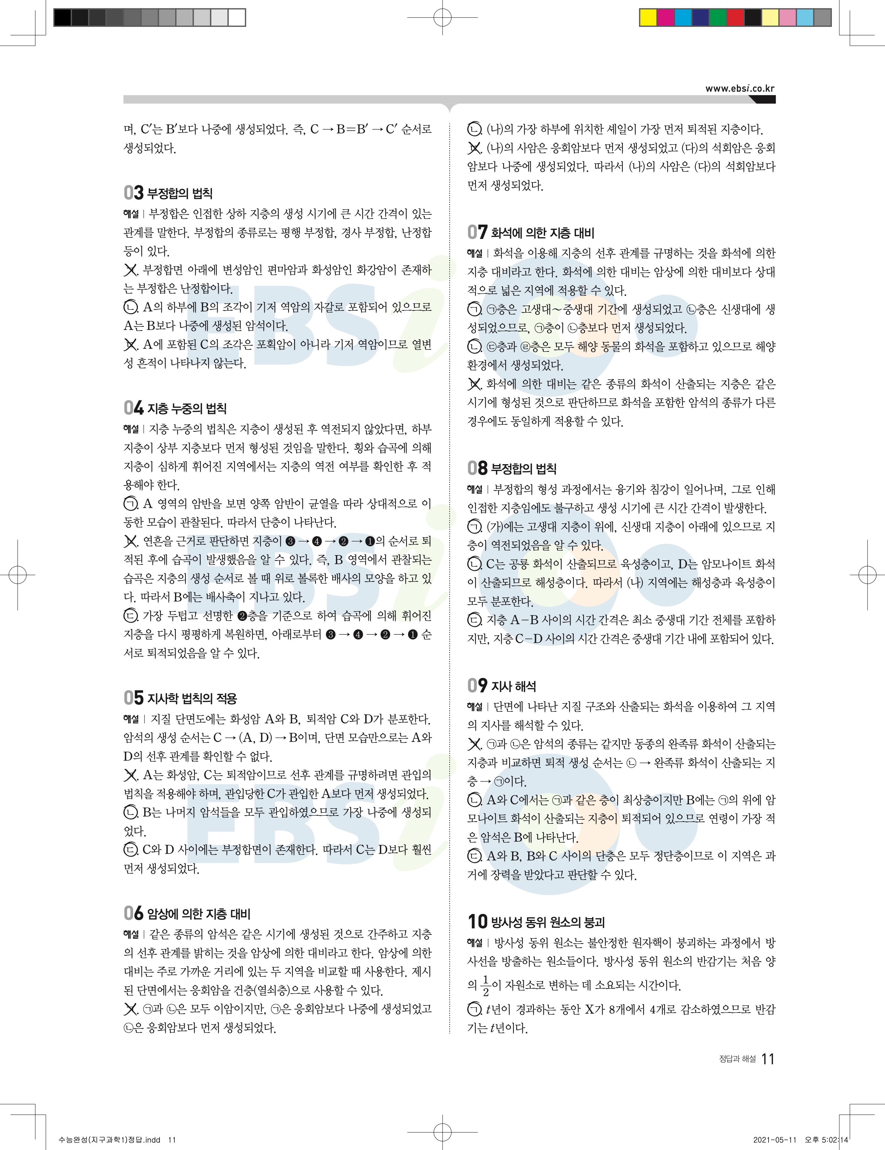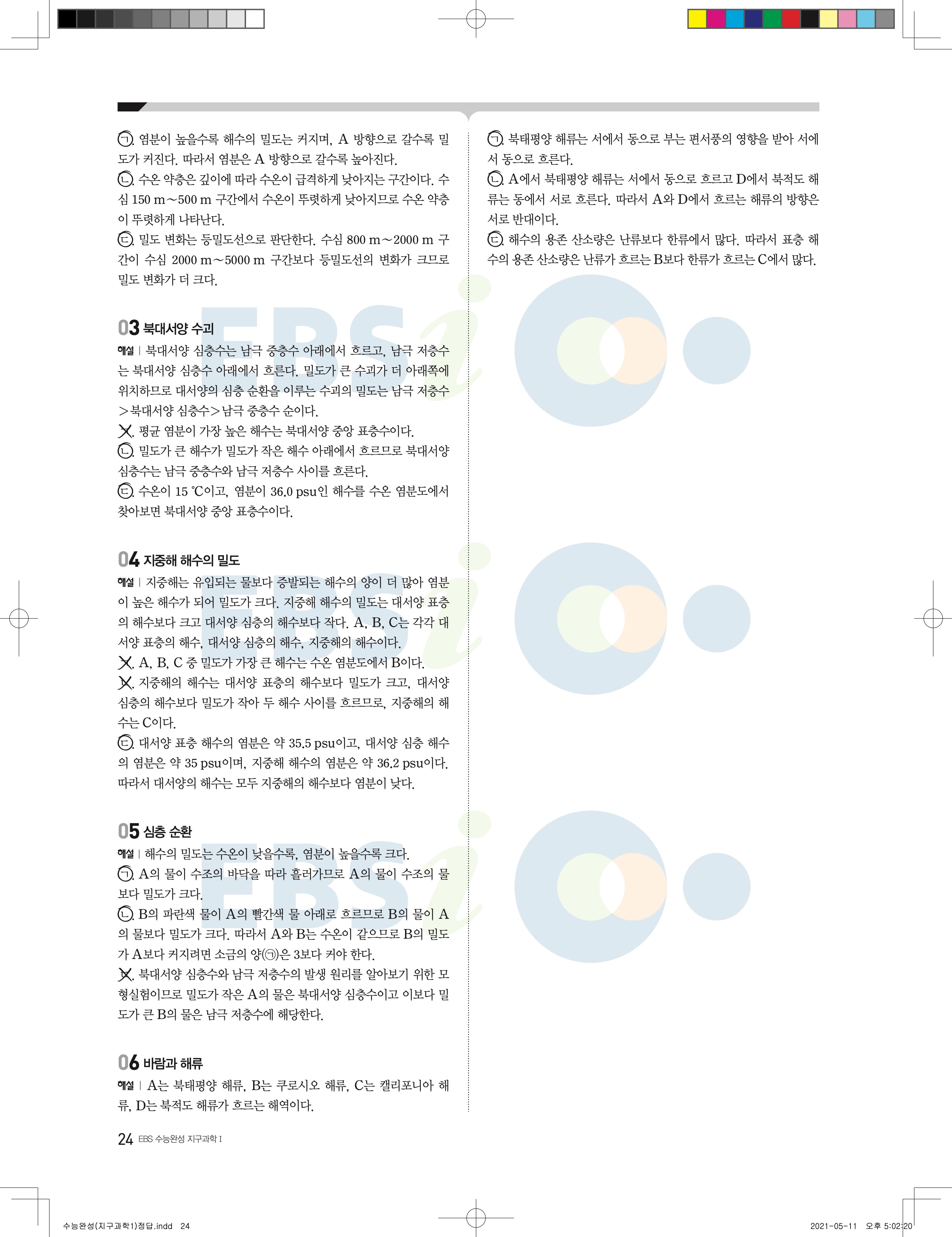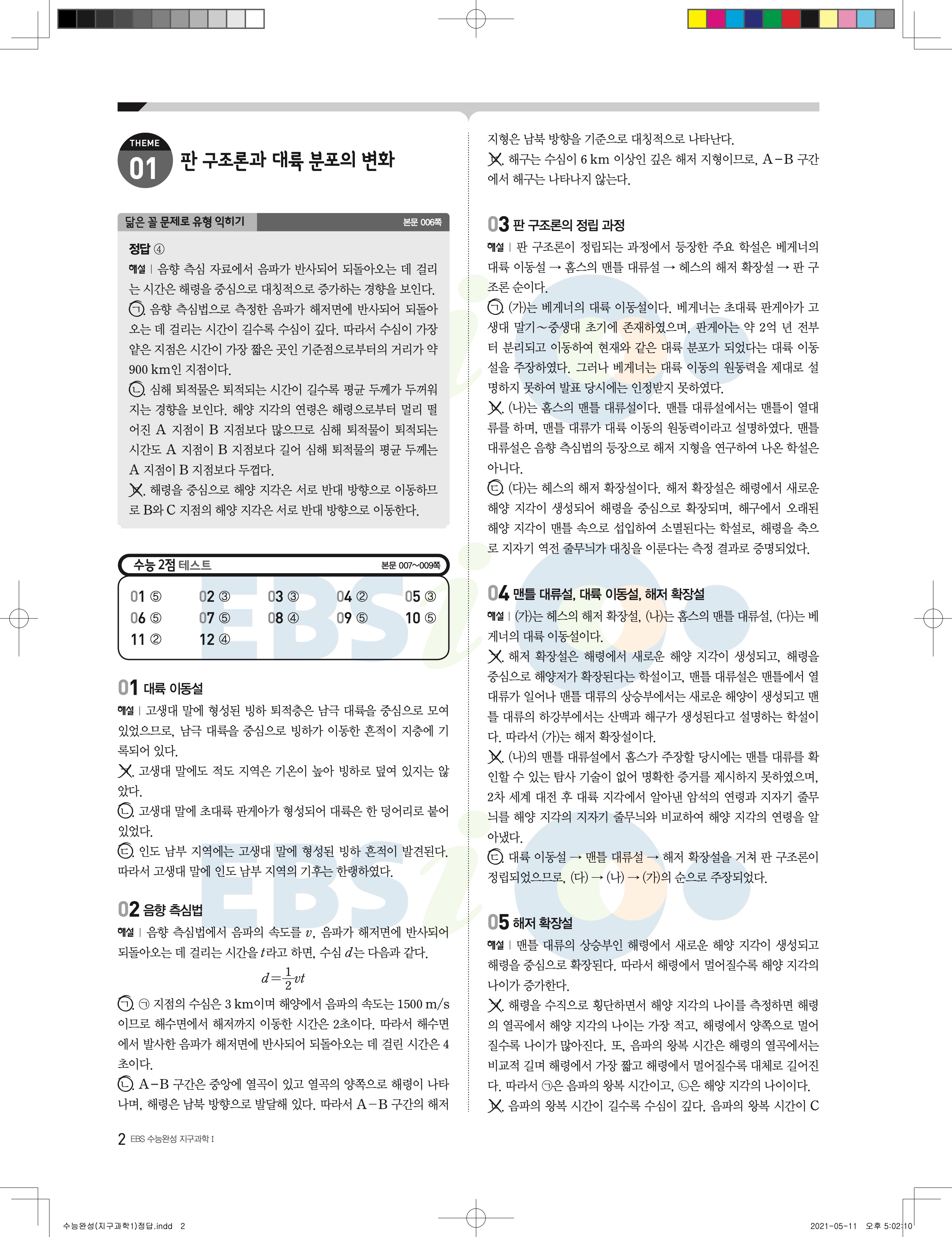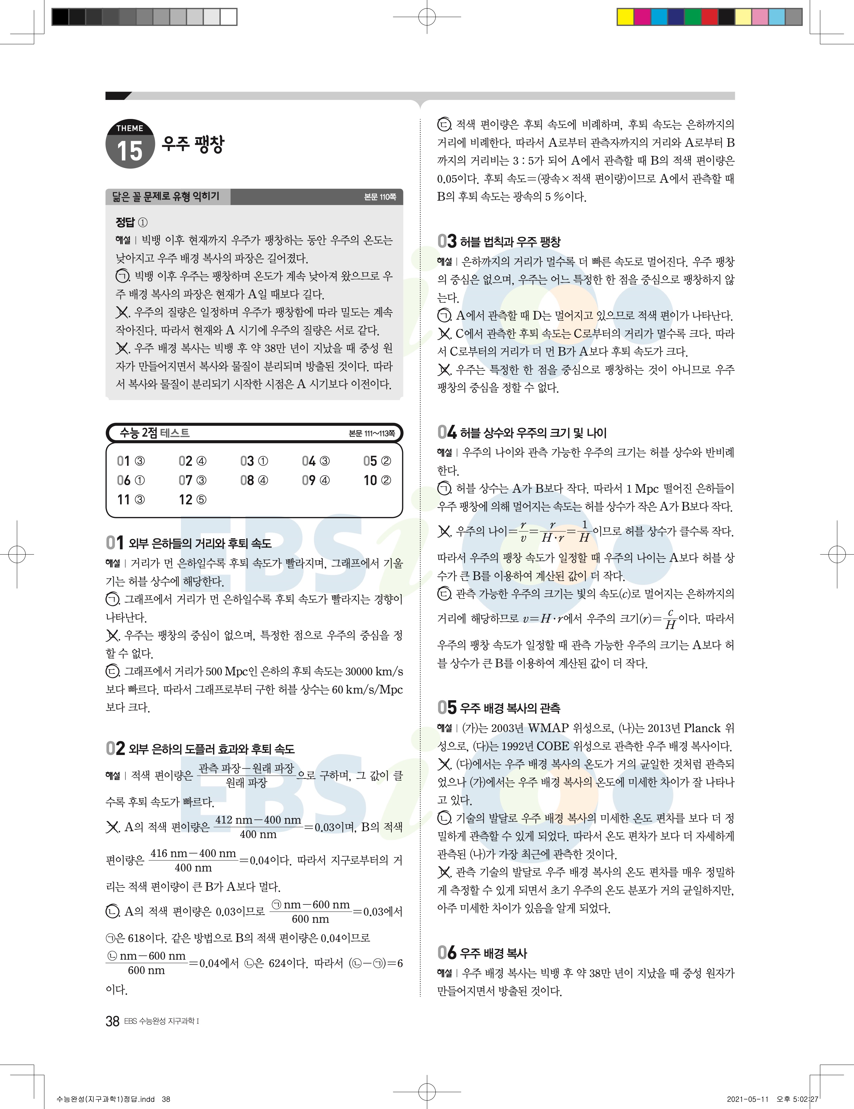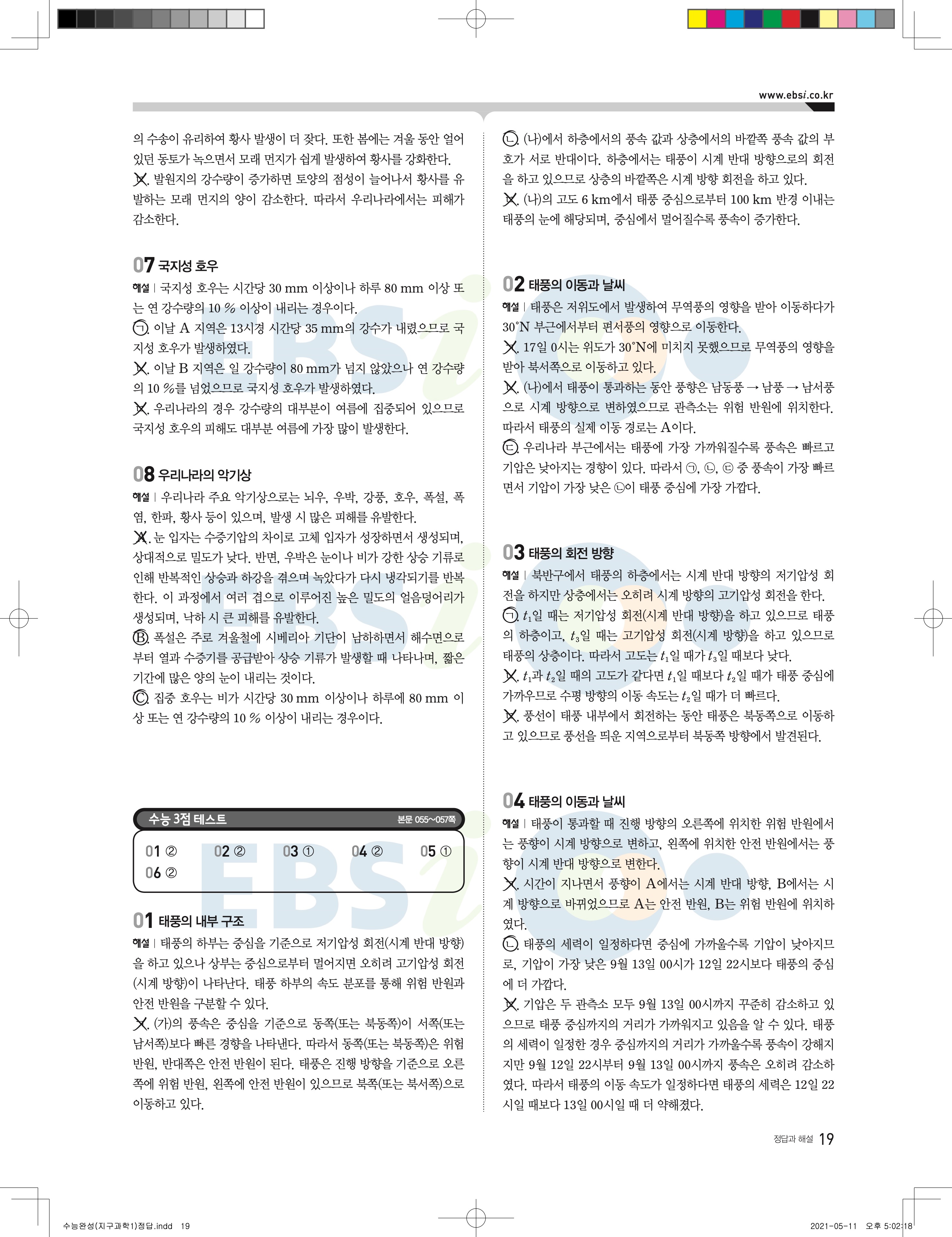 2022 EBS 수능완성 과학탐구영역 지구과학1 답지 해설 바로보는 사진답지 모바일최적화