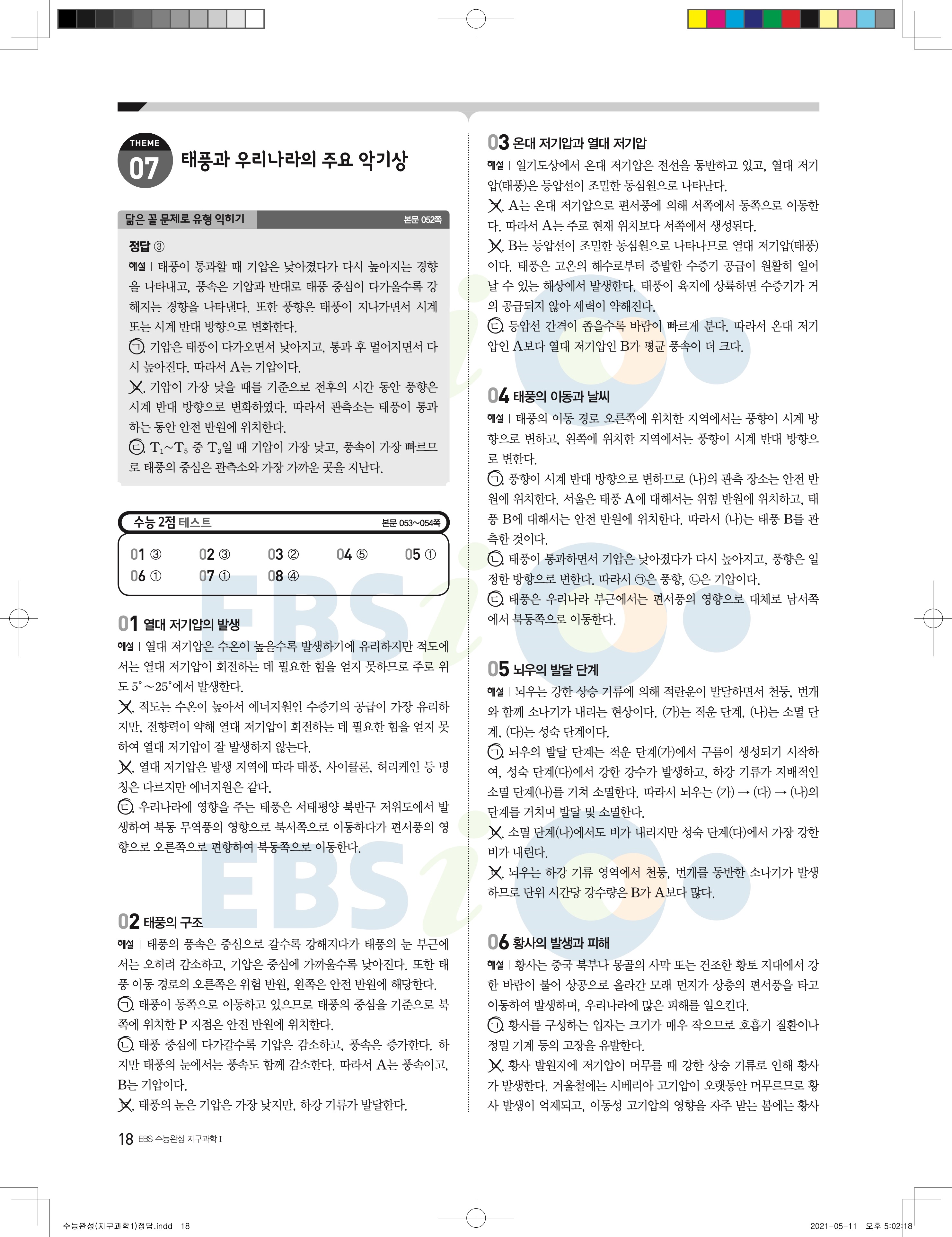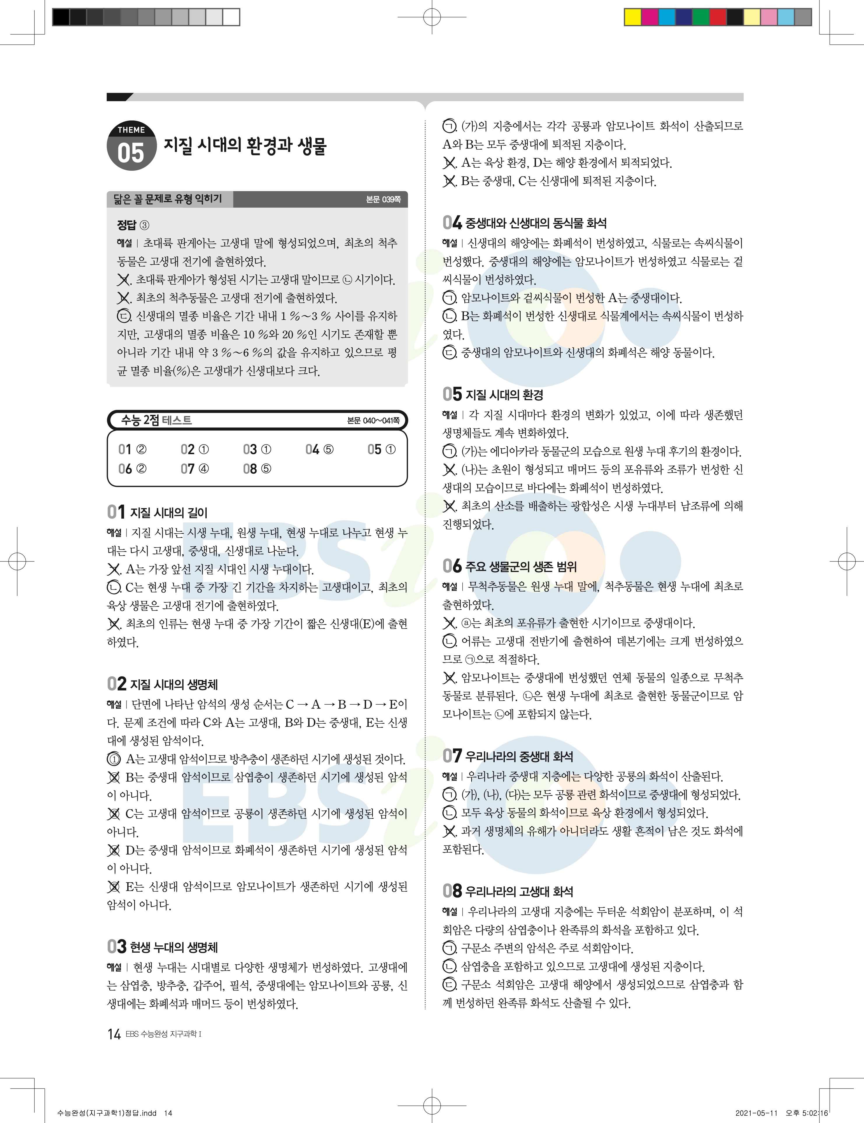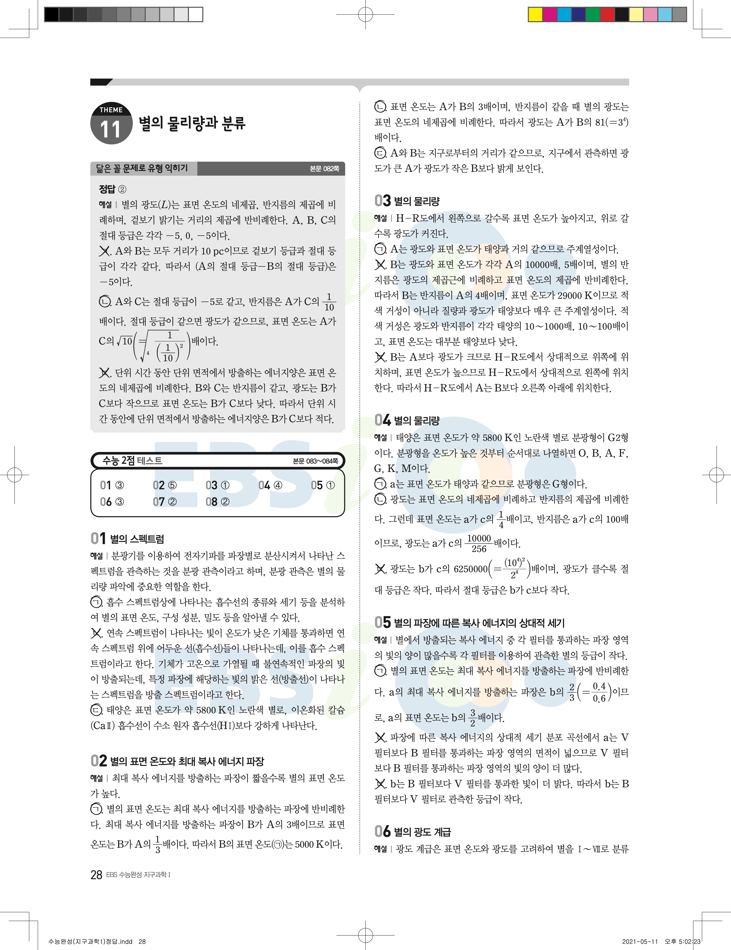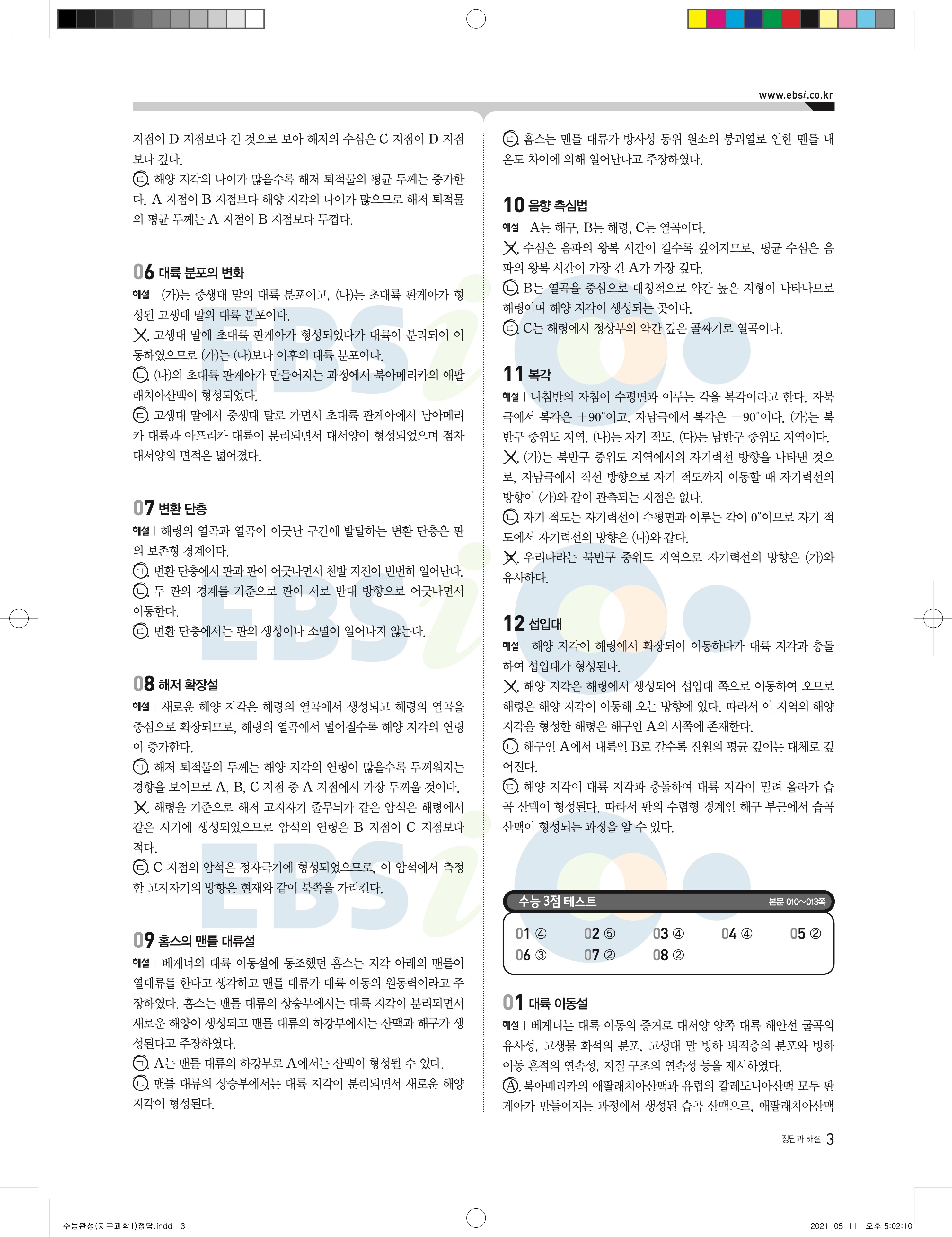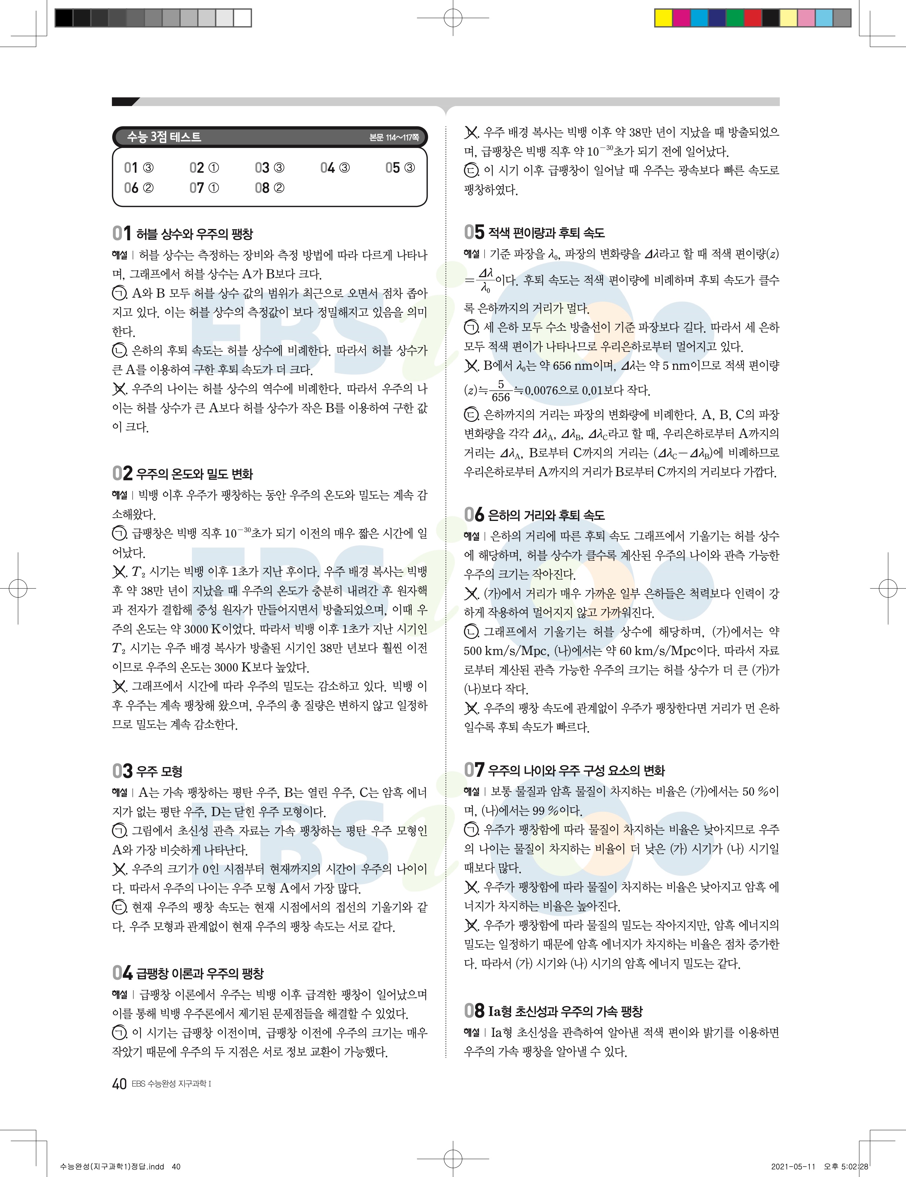 2022 EBS 수능완성 과학탐구영역 지구과학1 답지 해설 바로보는 사진답지 모바일최적화