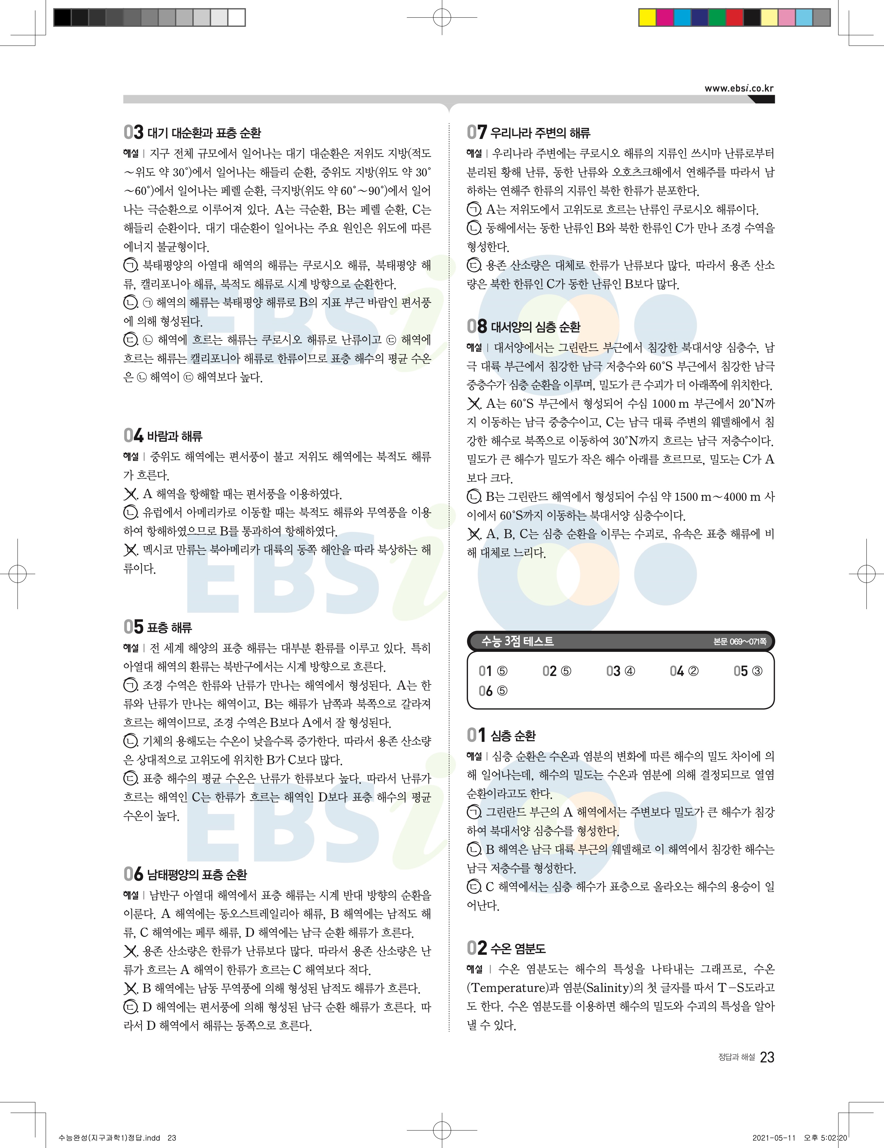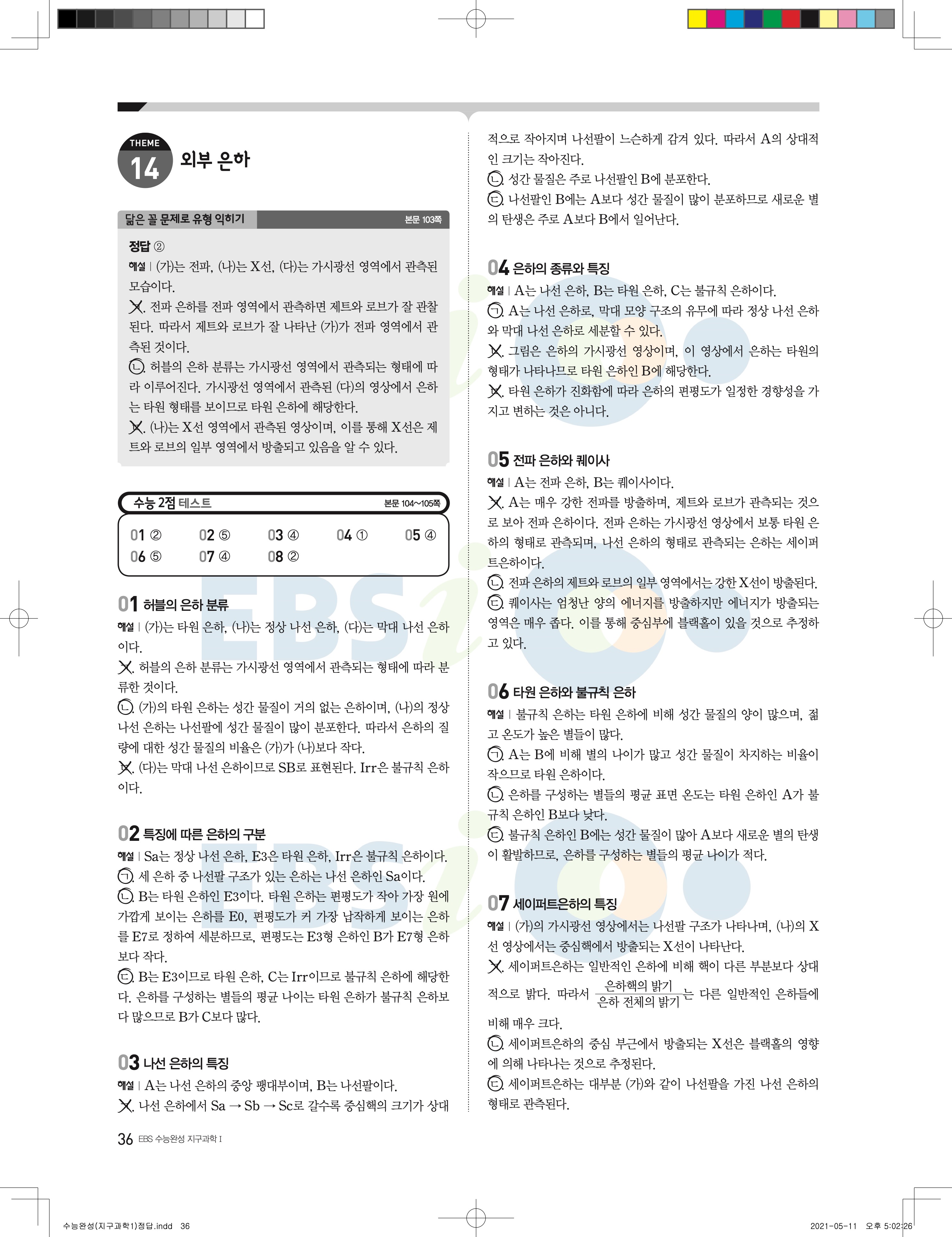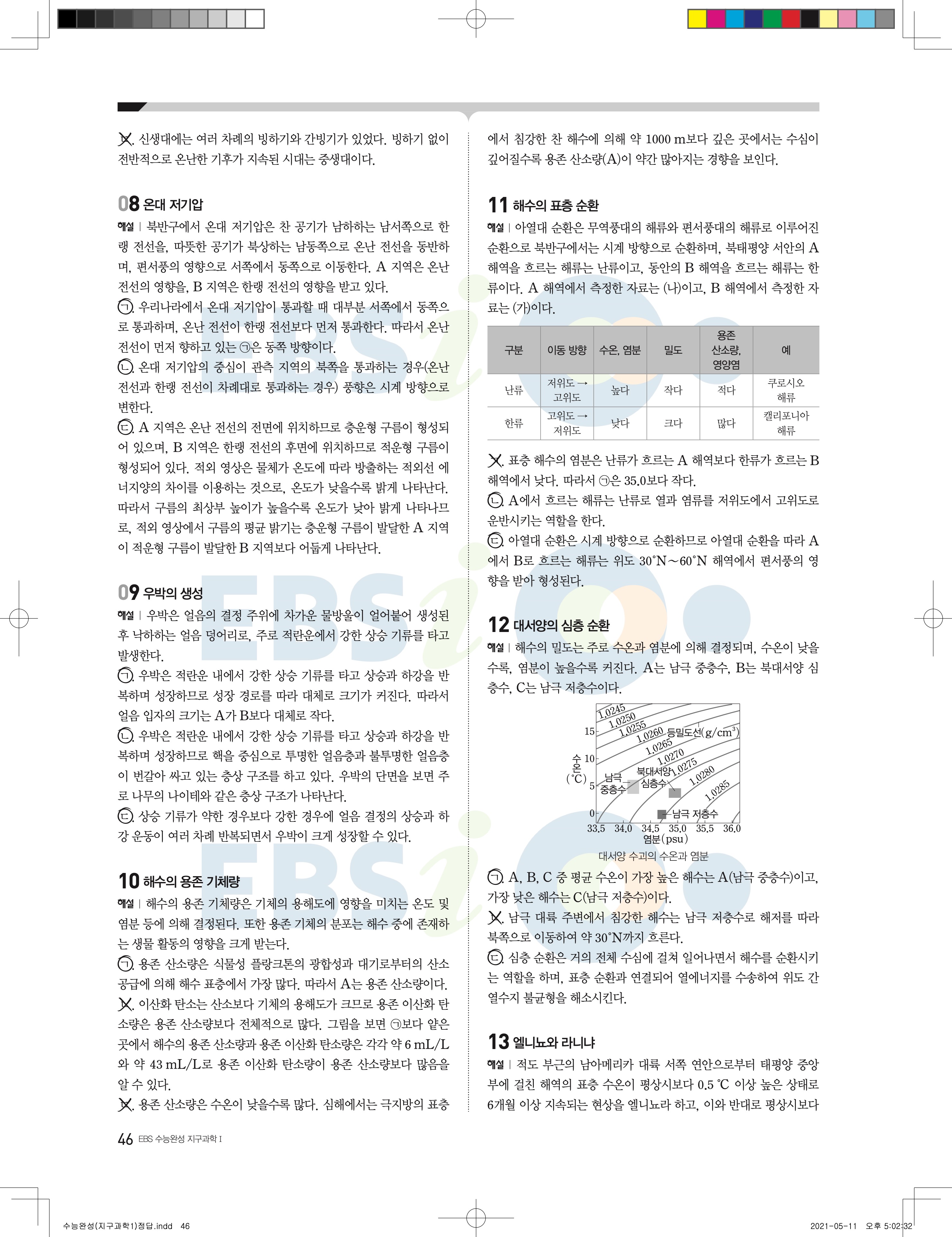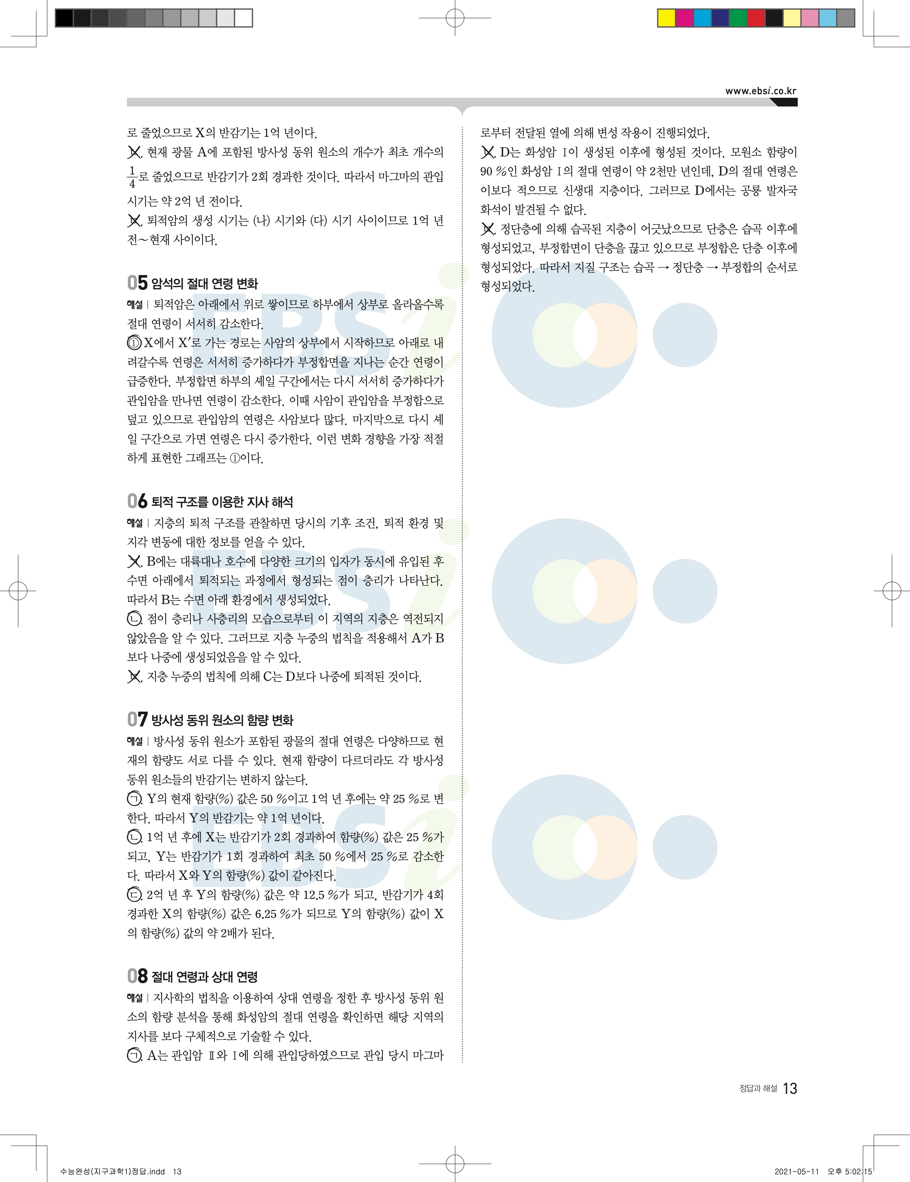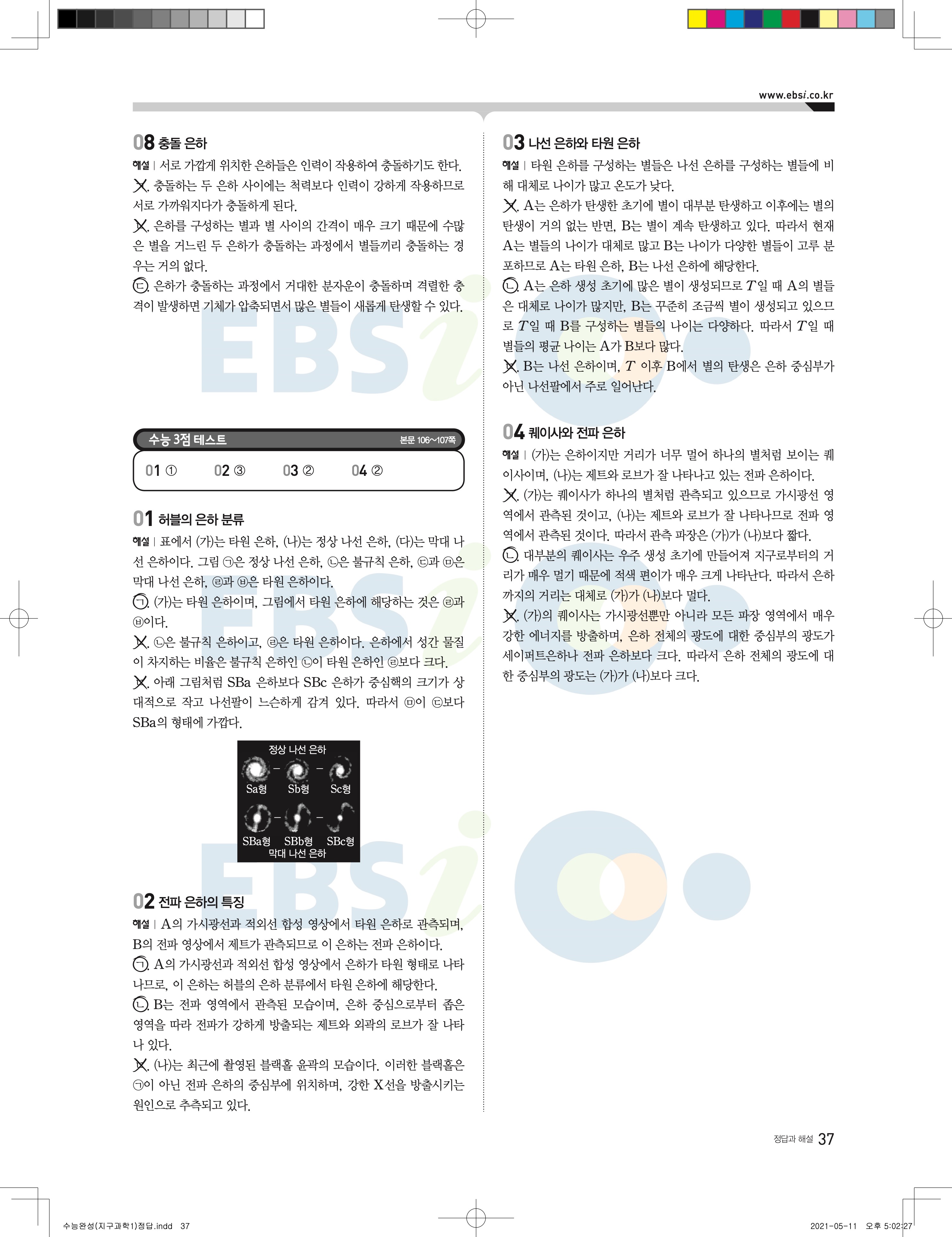 2022 EBS 수능완성 과학탐구영역 지구과학1 답지 해설 바로보는 사진답지 모바일최적화