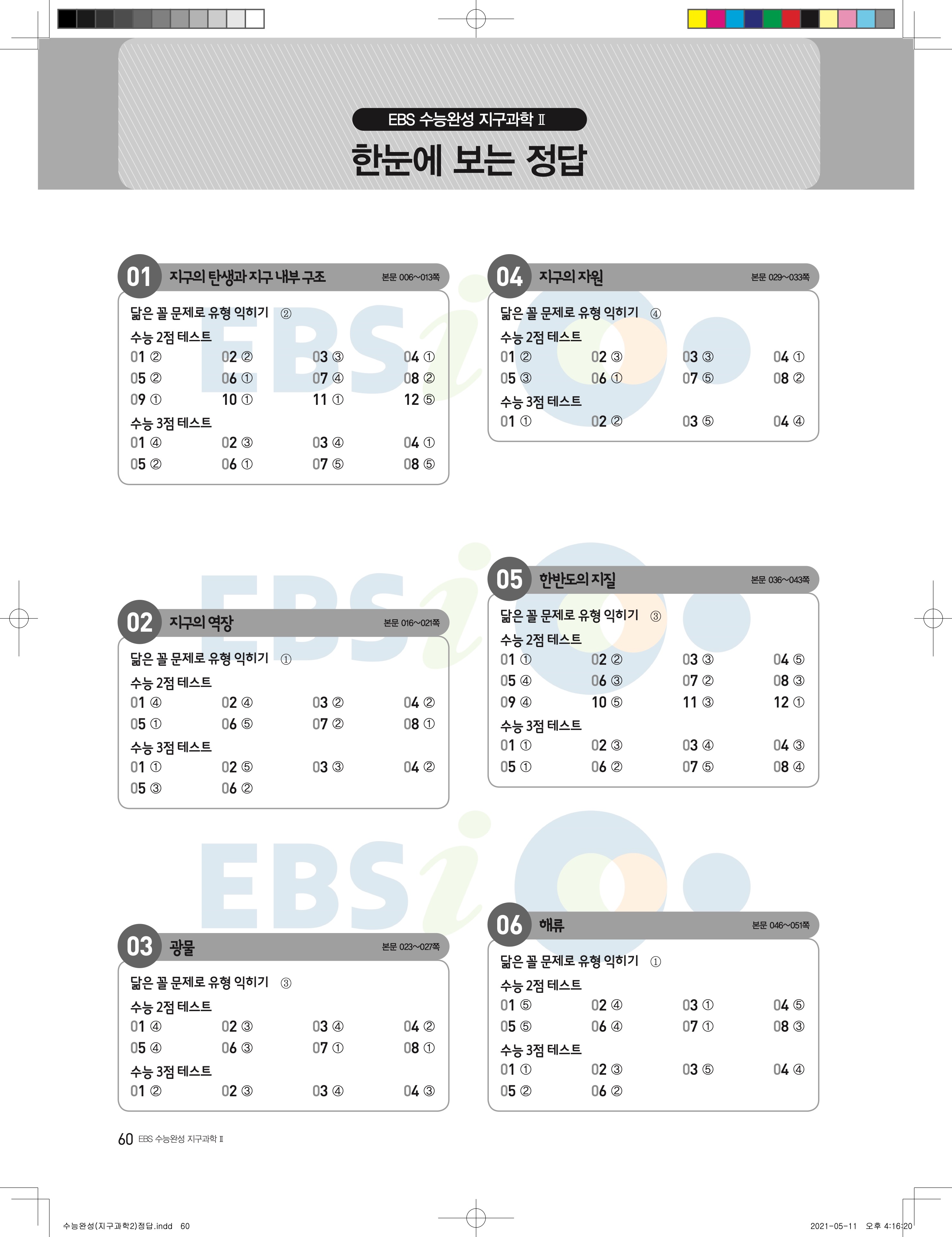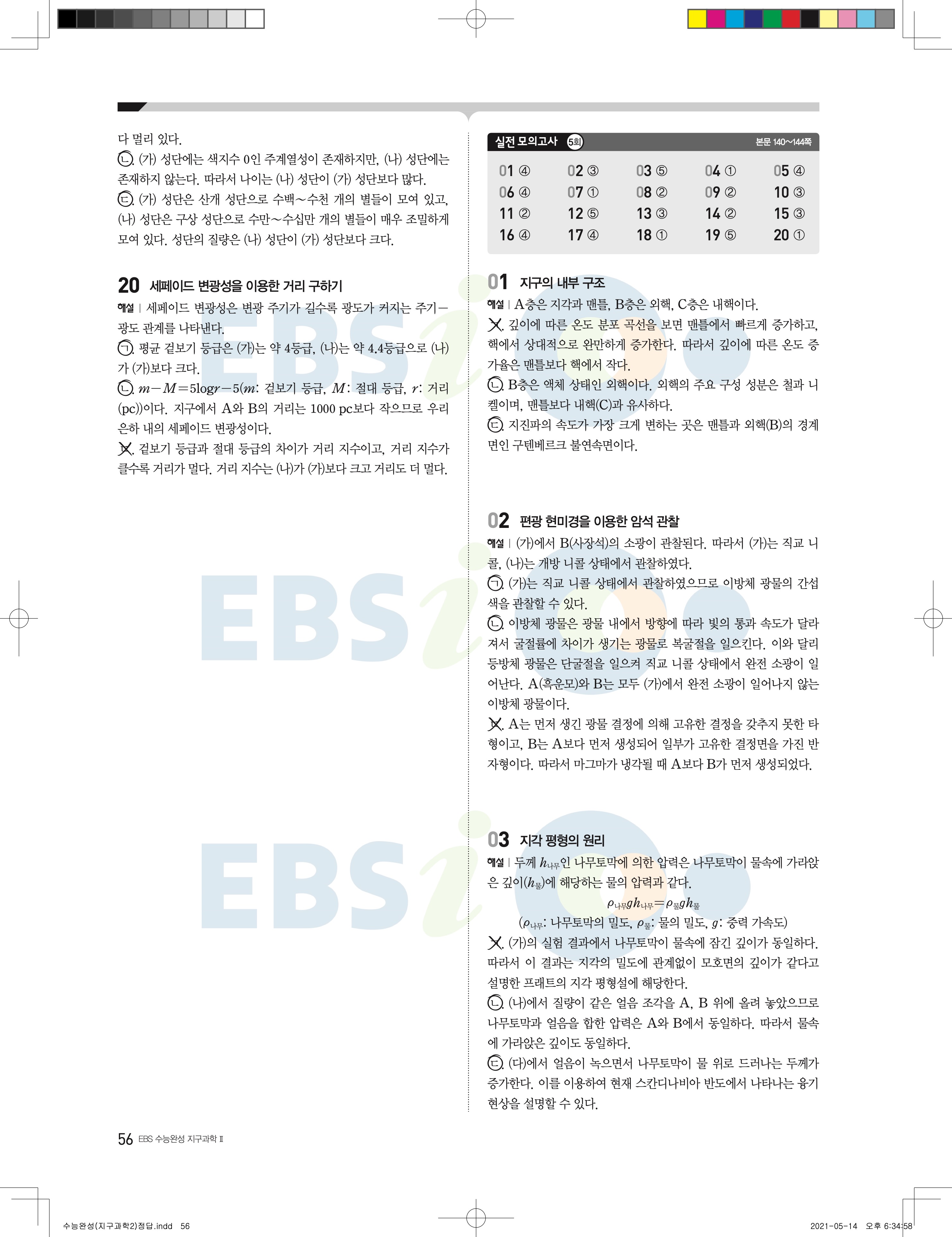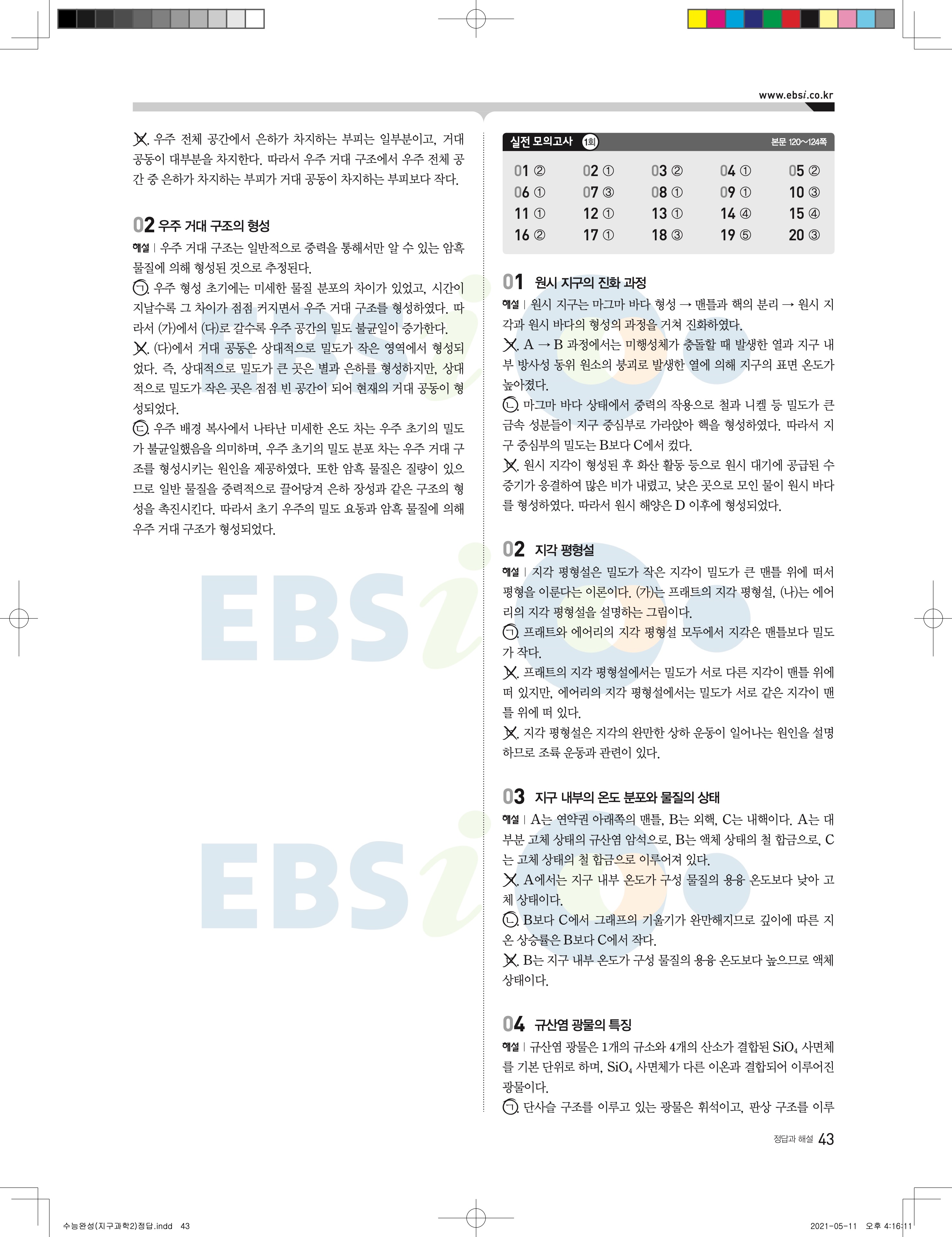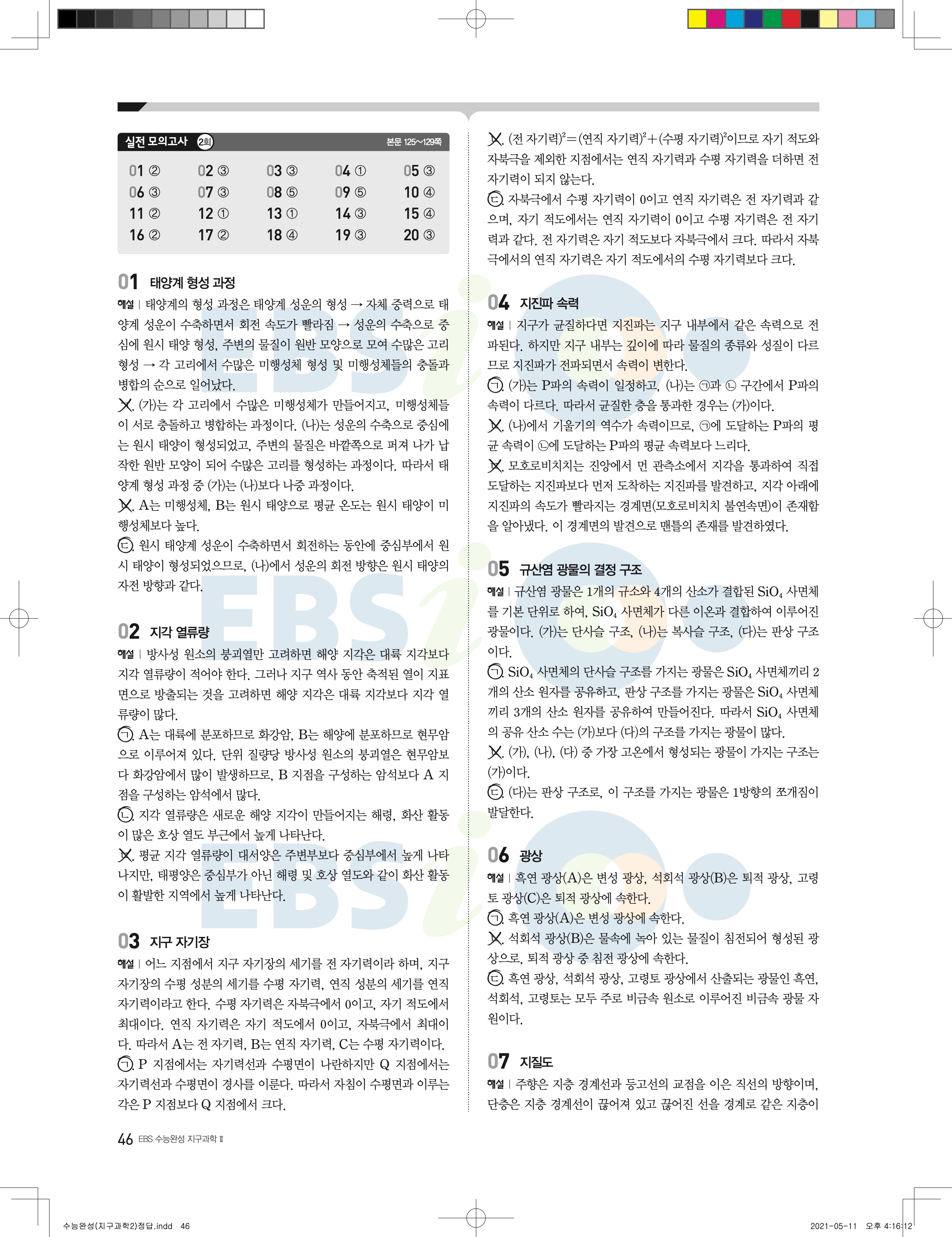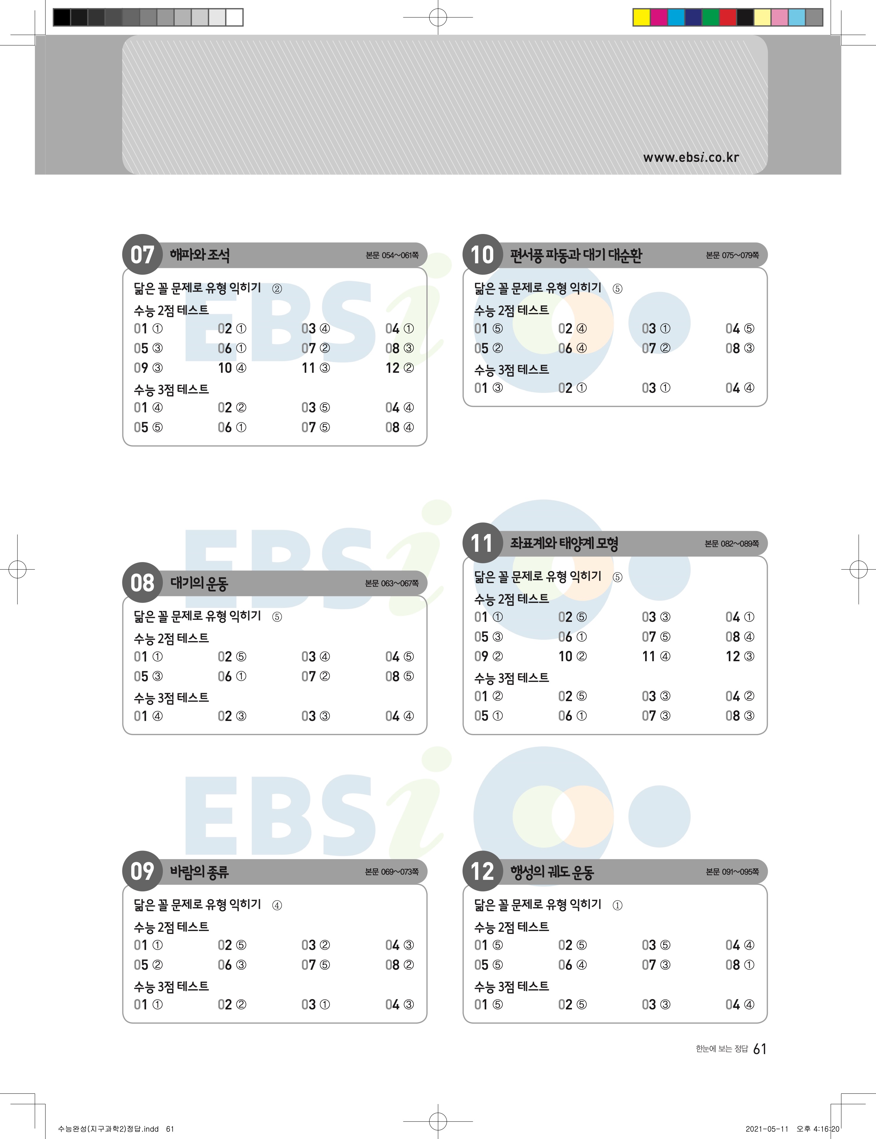 2022 EBS 수능완성 과학탐구영역 지구과학2 답지 해설 바로보는 사진답지 모바일최적화