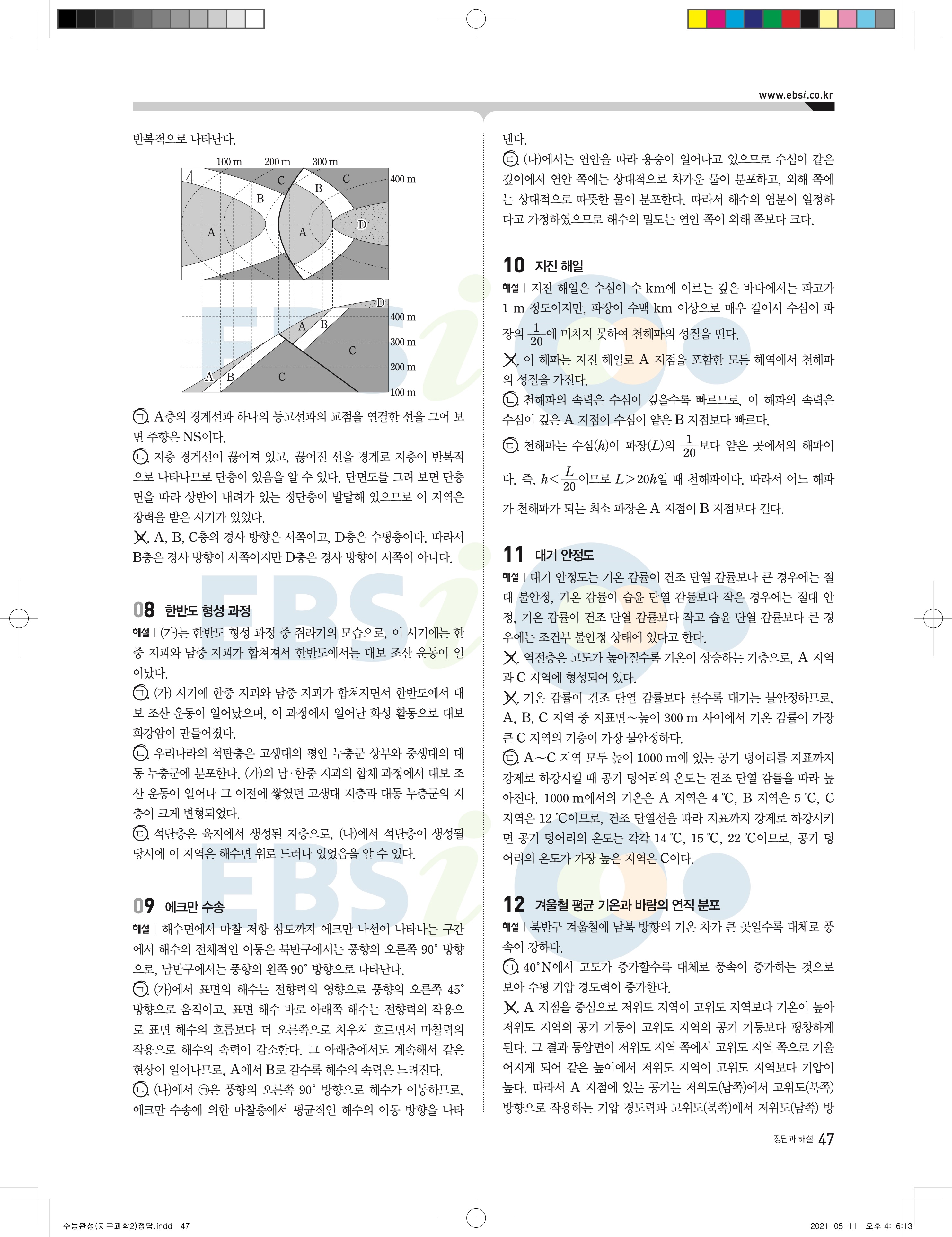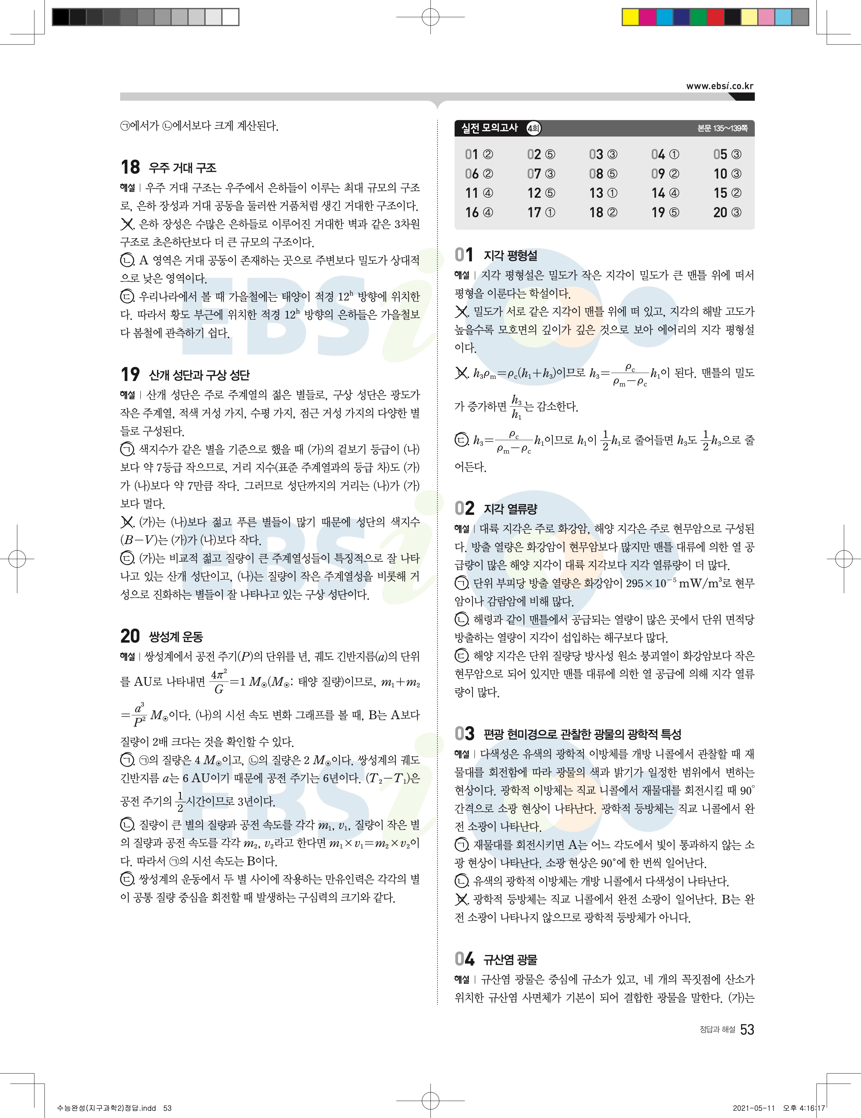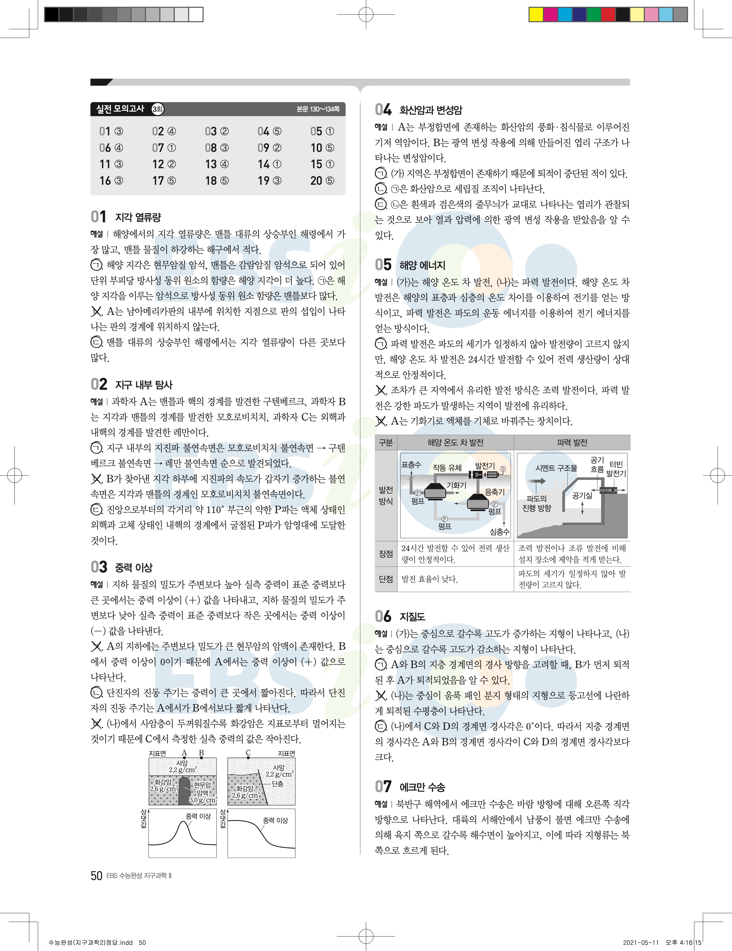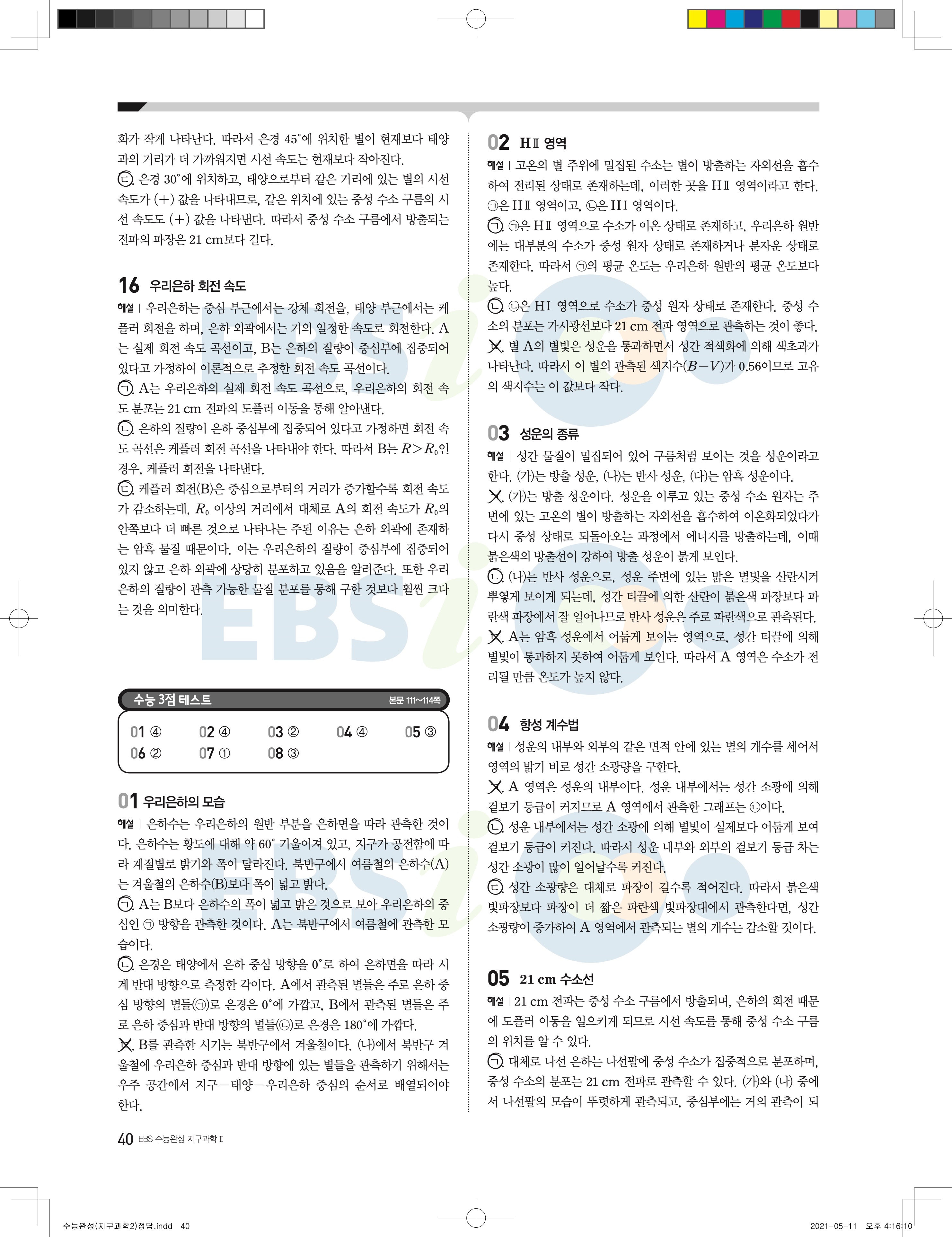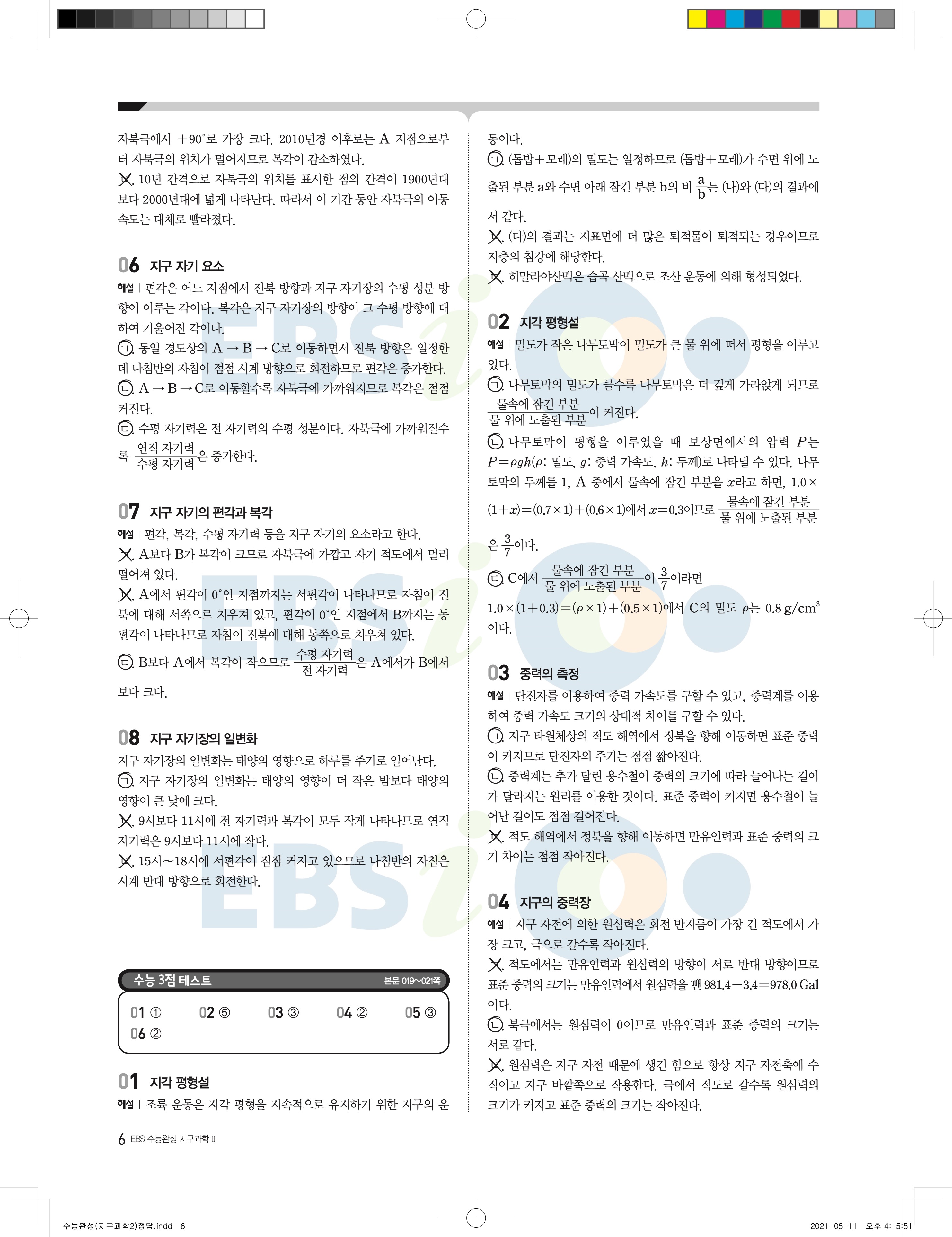 2022 EBS 수능완성 과학탐구영역 지구과학2 답지 해설 바로보는 사진답지 모바일최적화