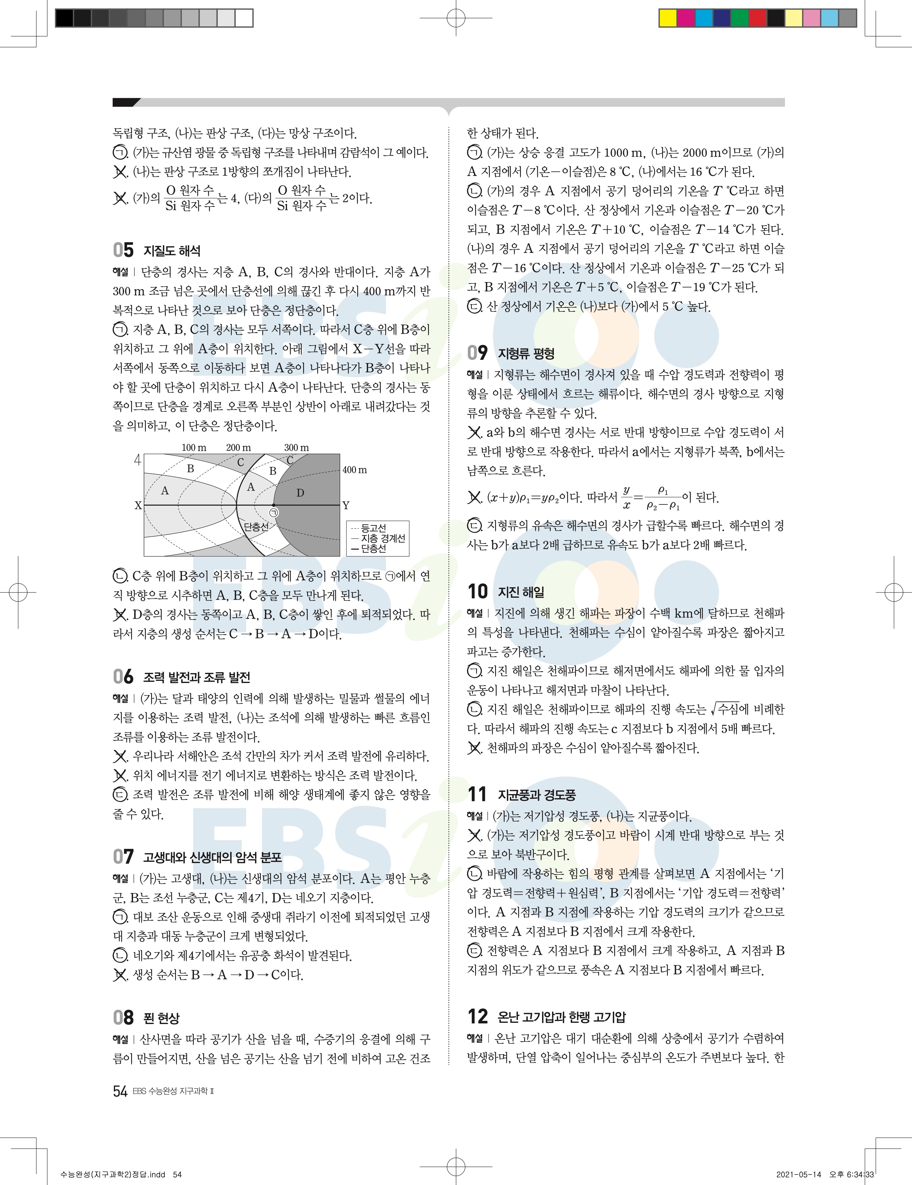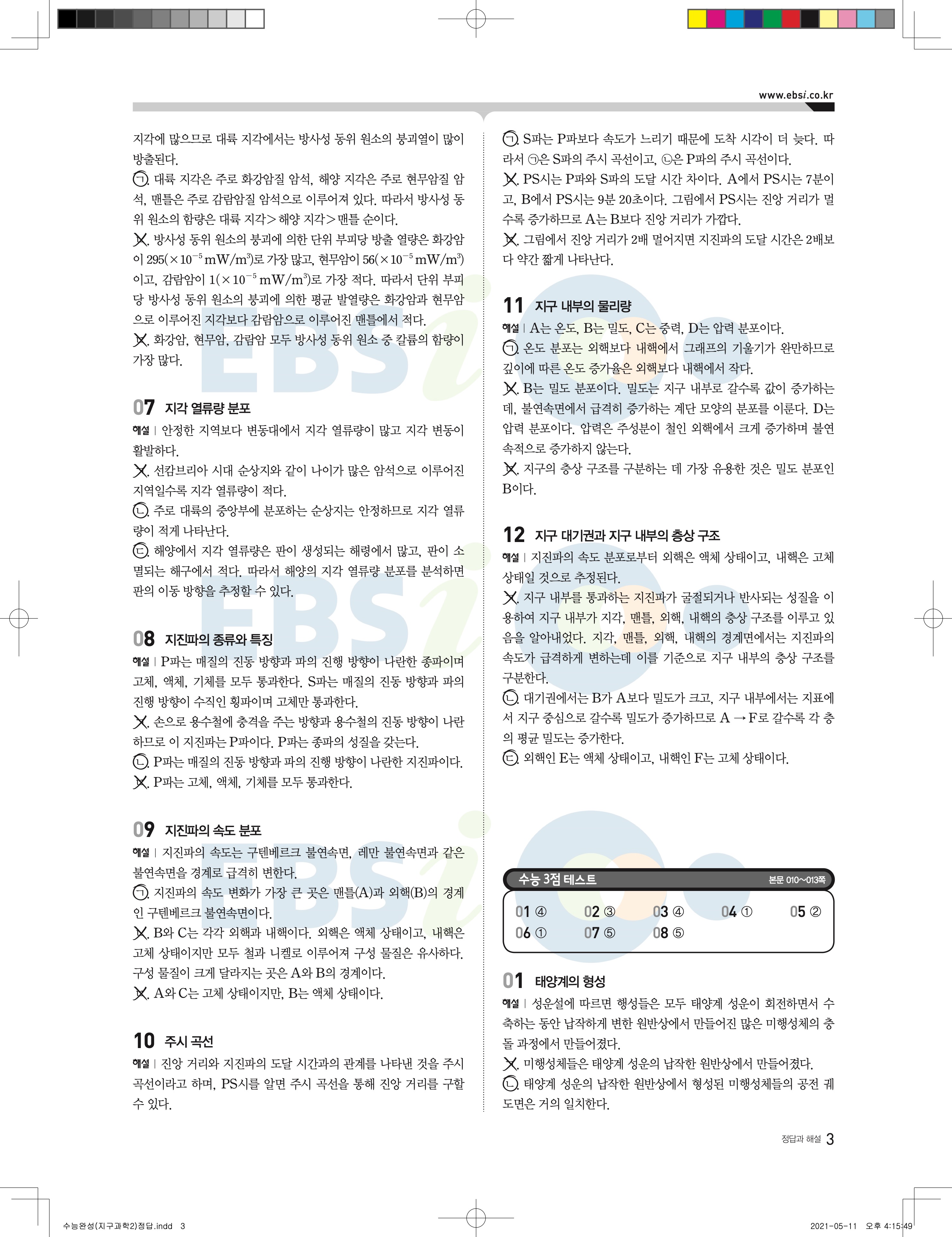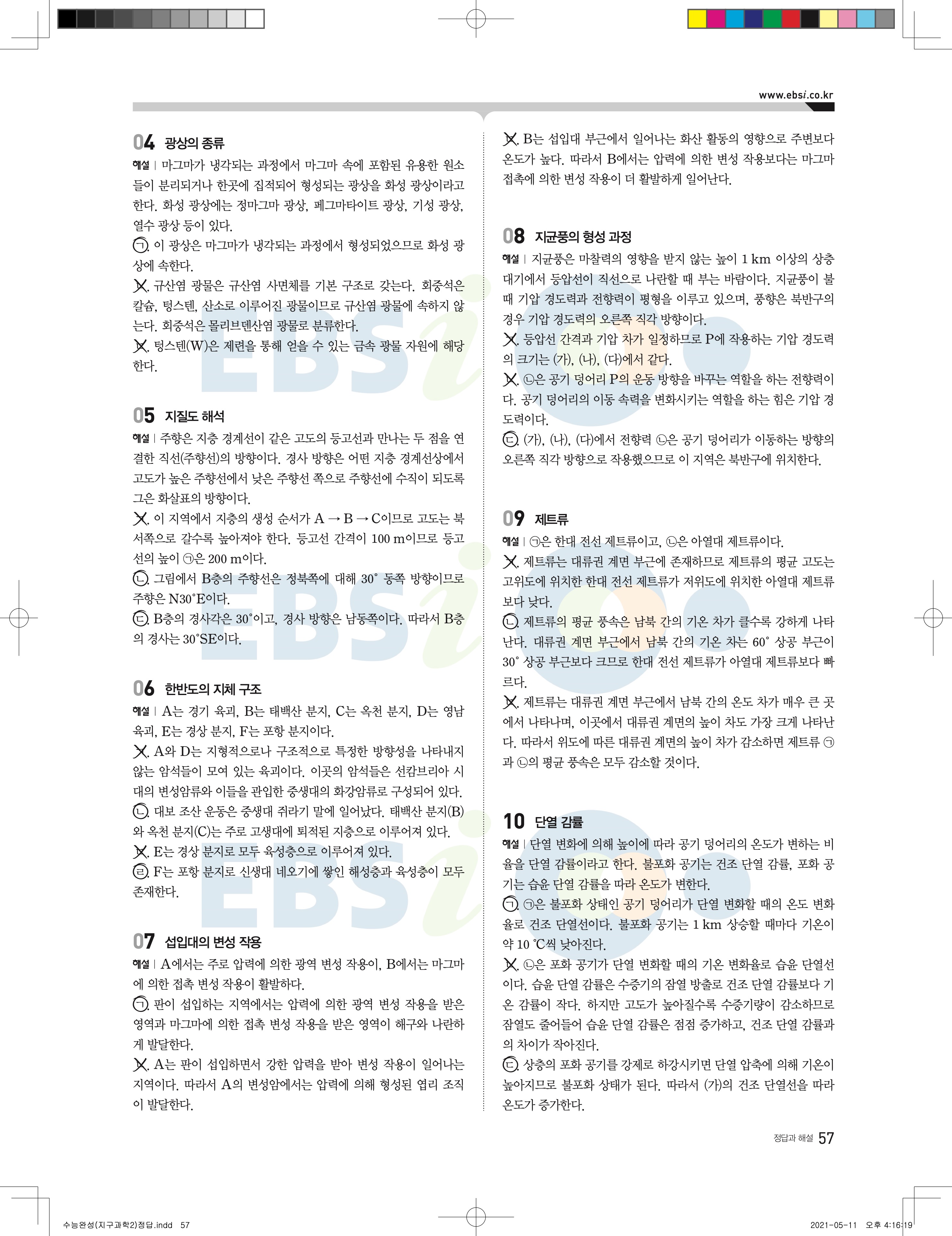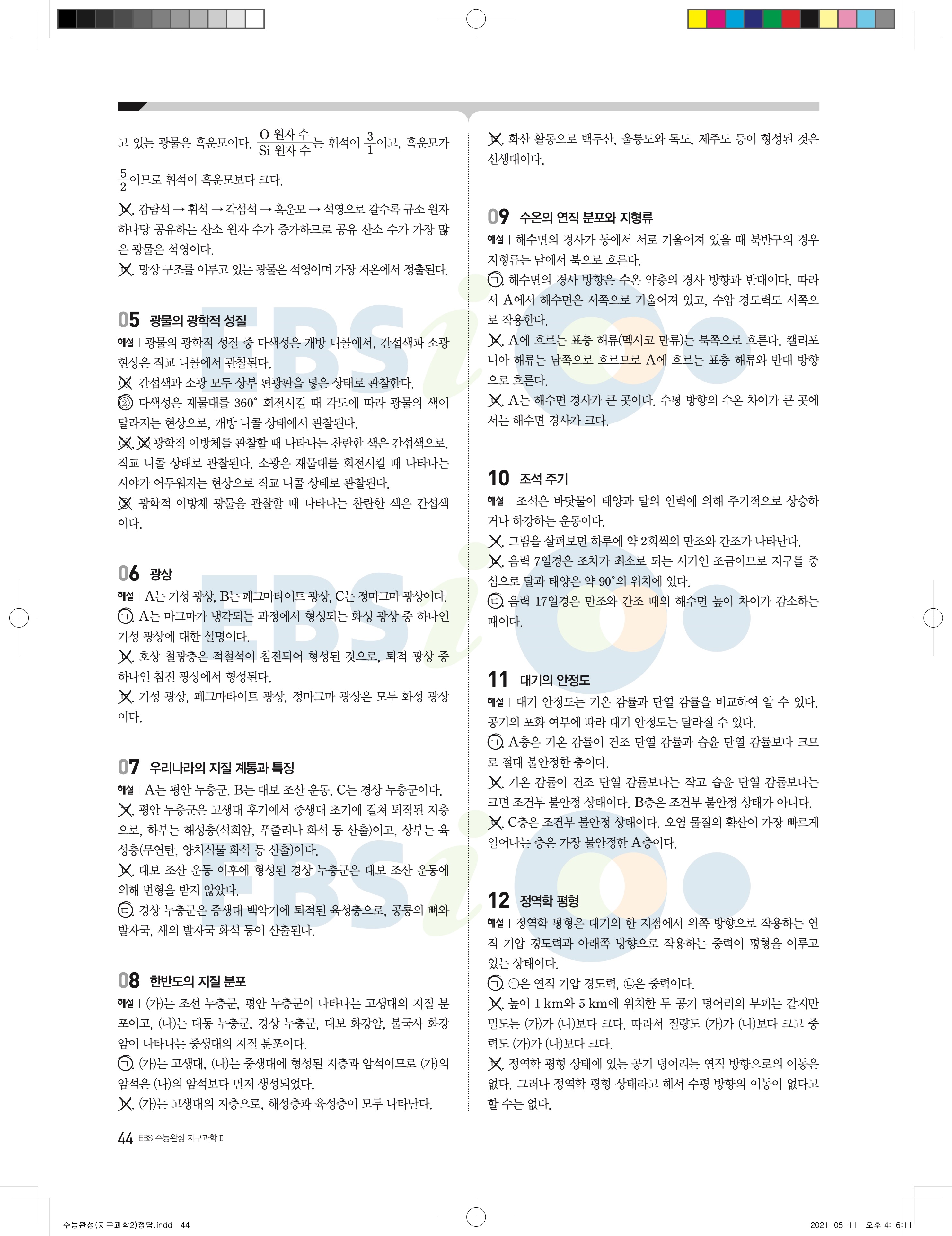2022 EBS 수능완성 과학탐구영역 지구과학2 답지 해설 바로보는 사진답지 모바일최적화