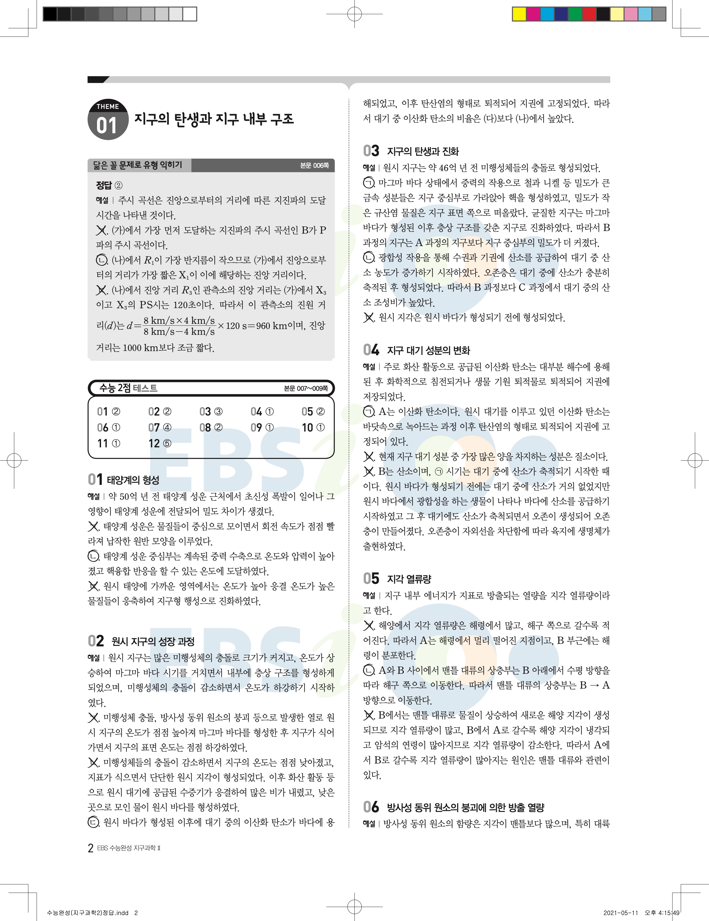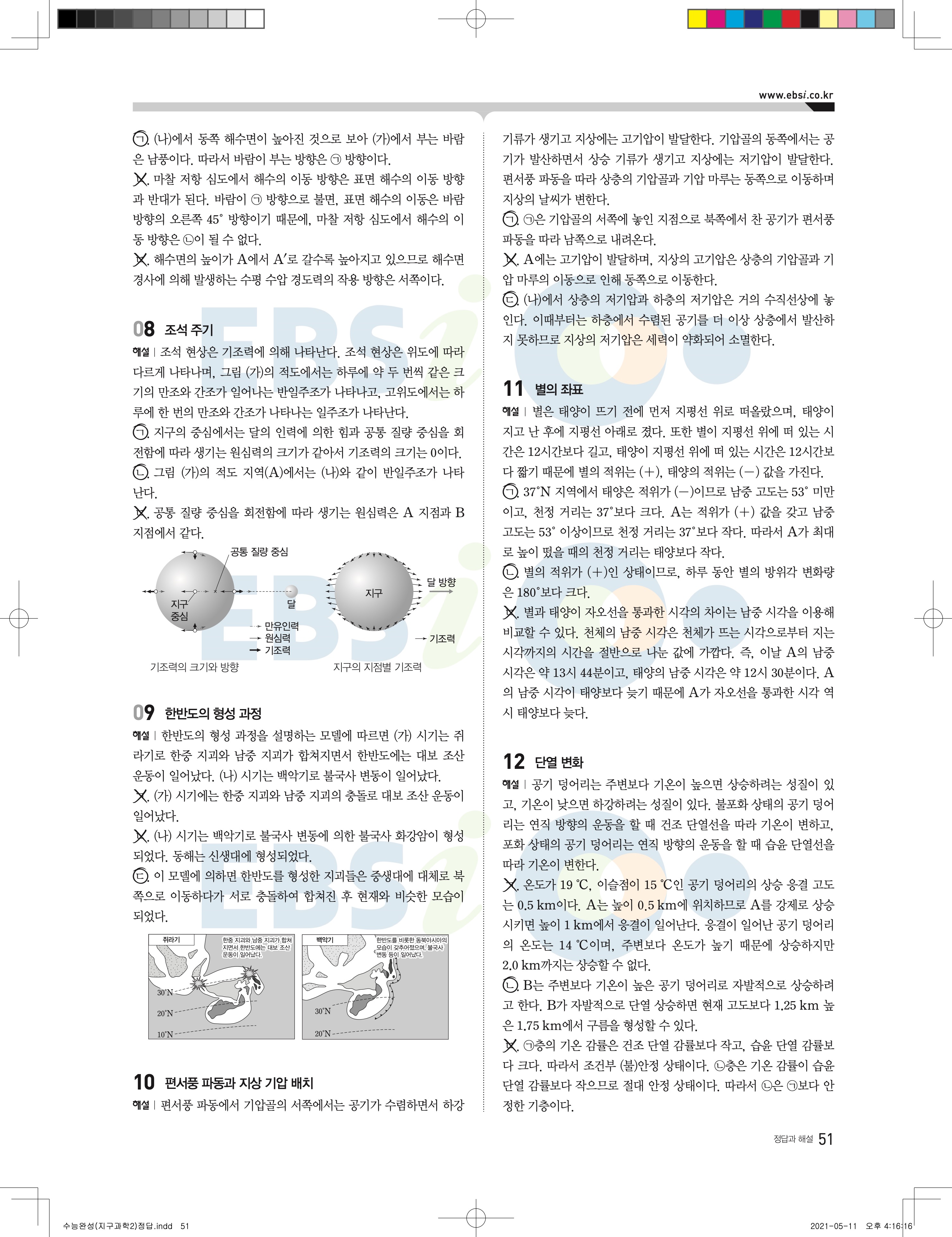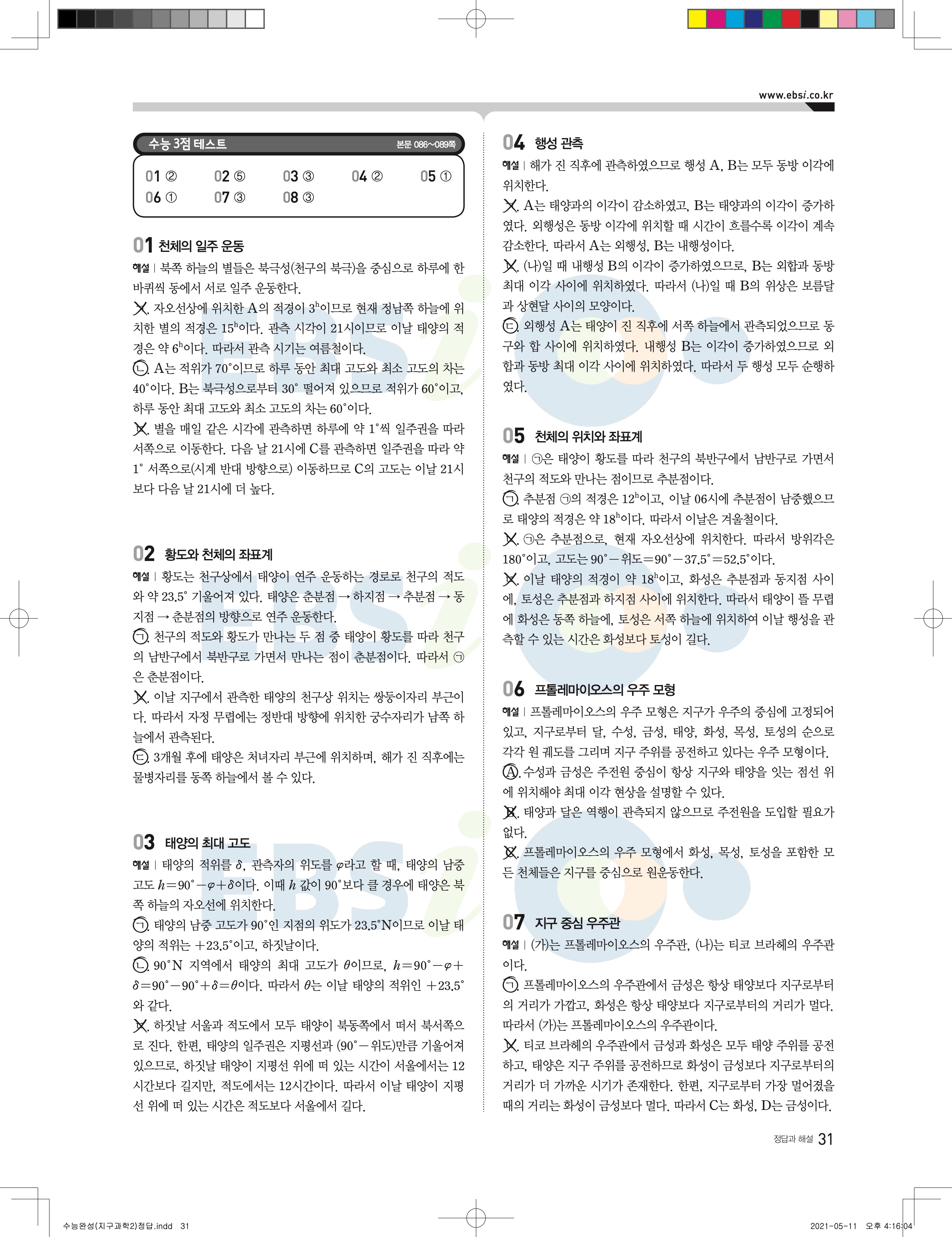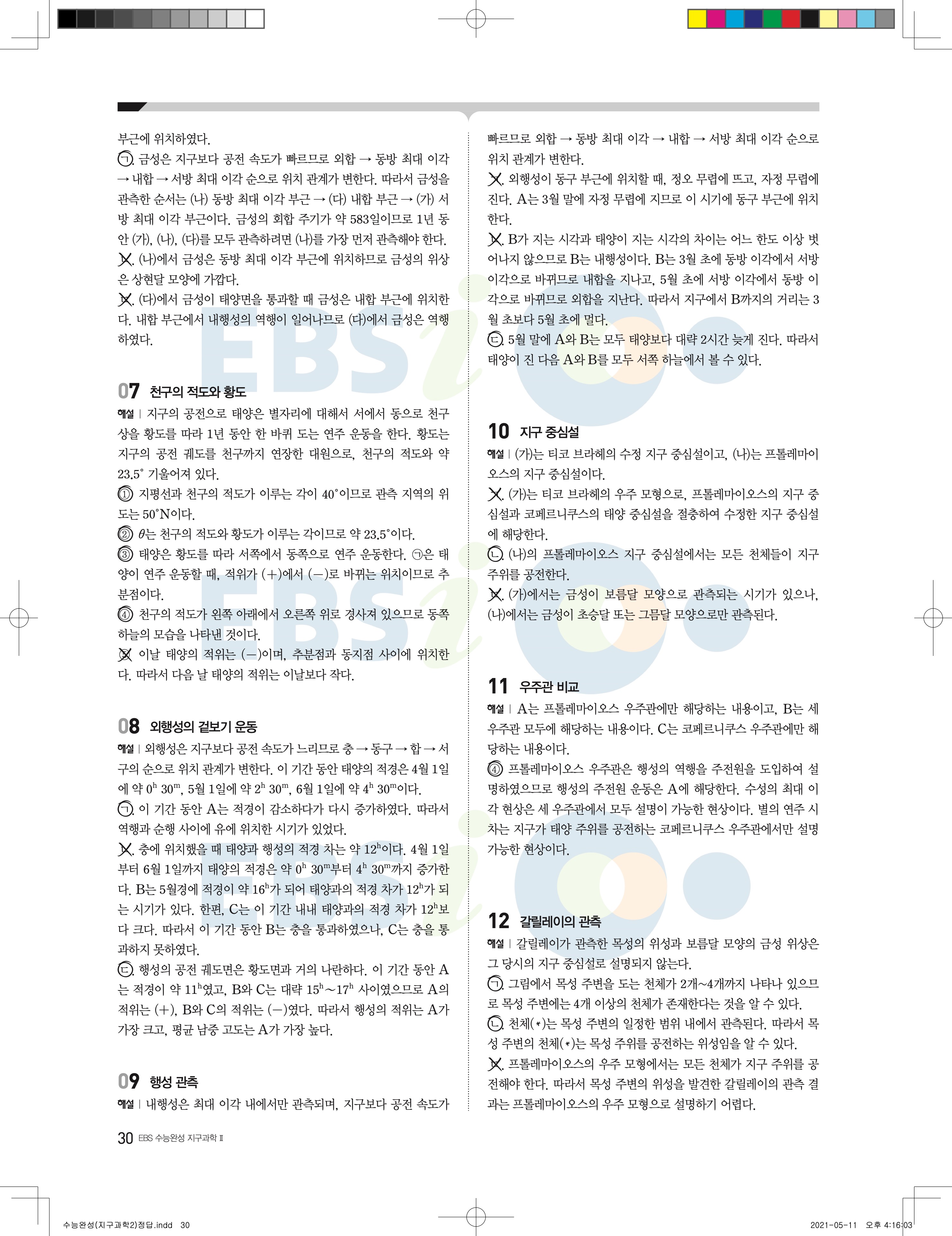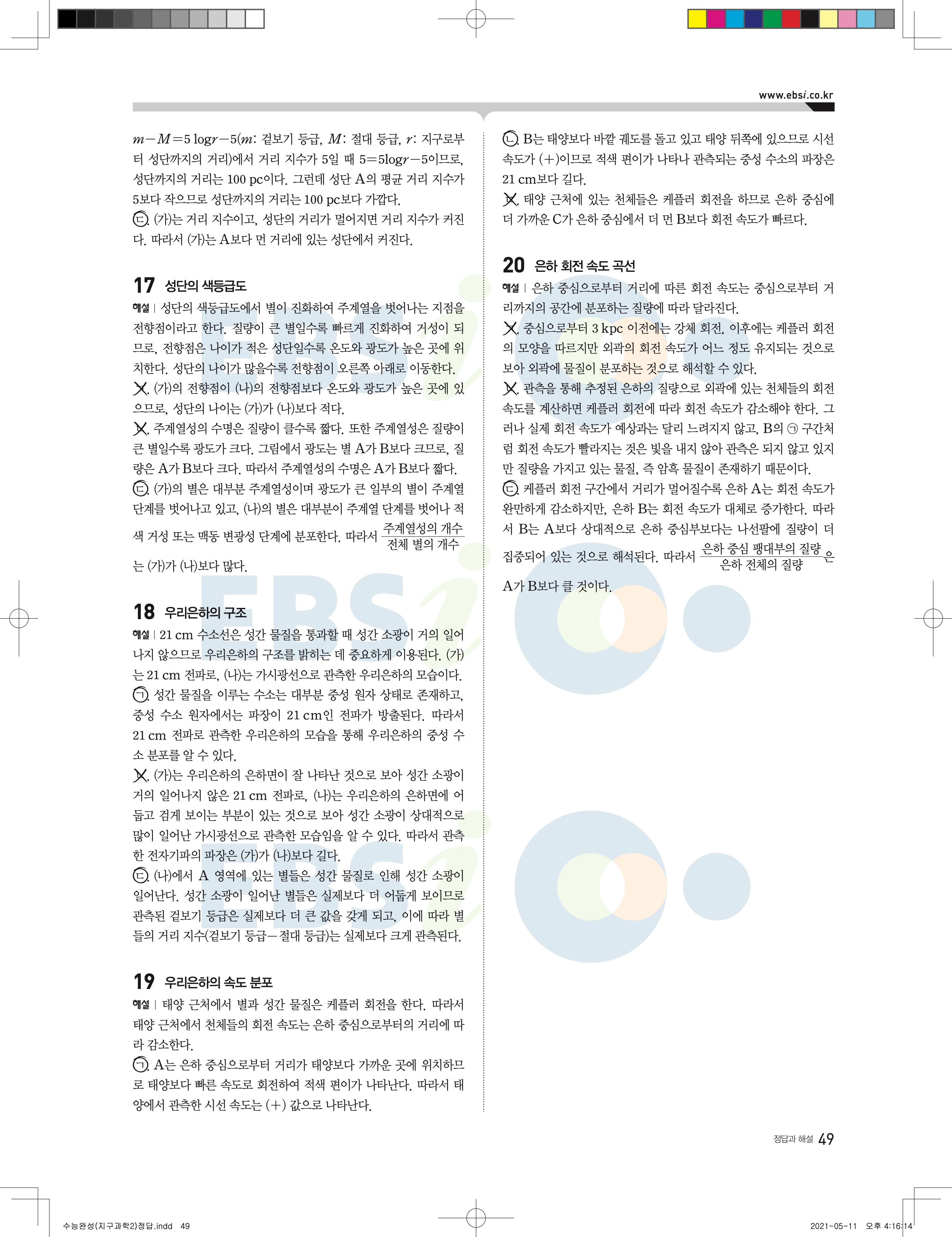 2022 EBS 수능완성 과학탐구영역 지구과학2 답지 해설 바로보는 사진답지 모바일최적화