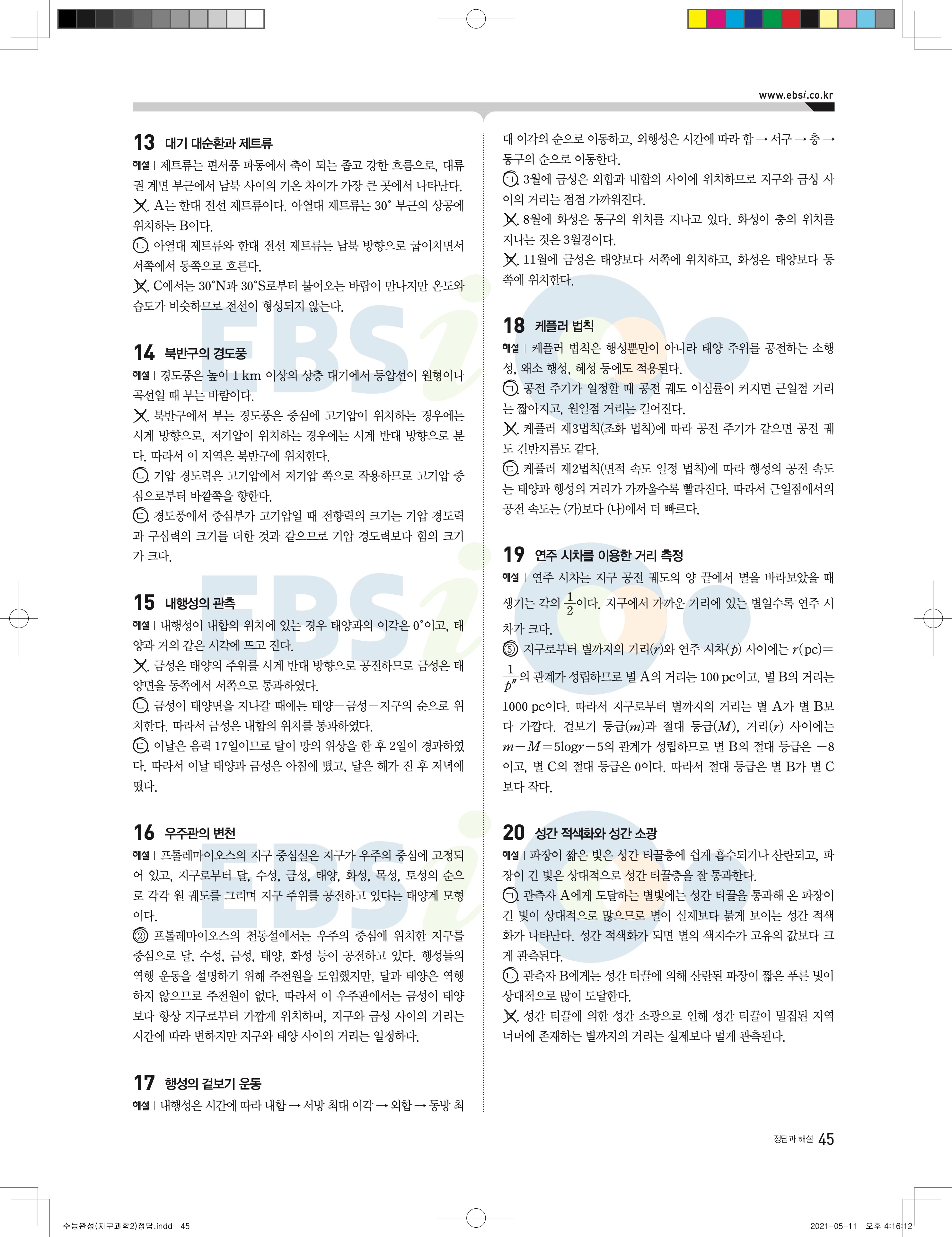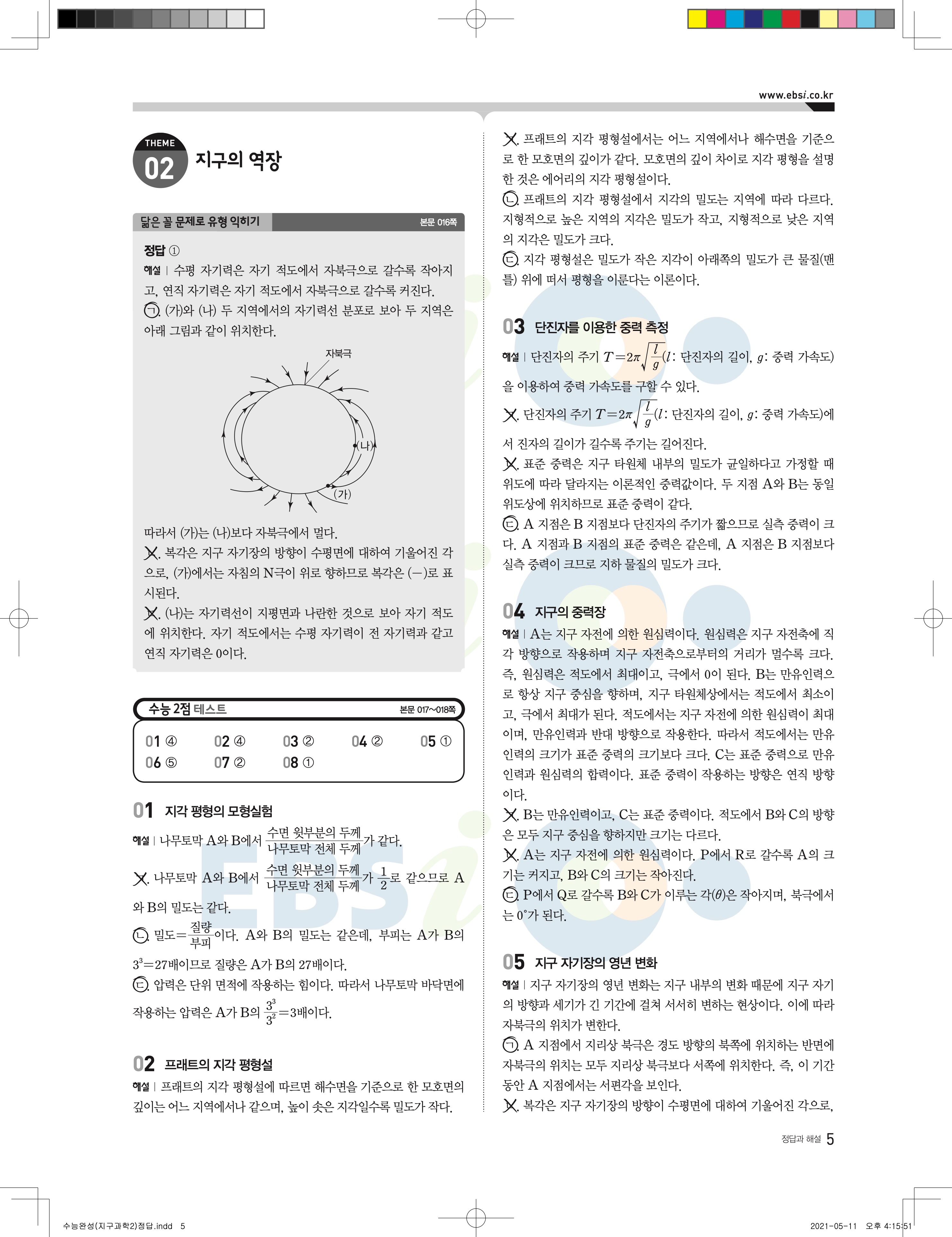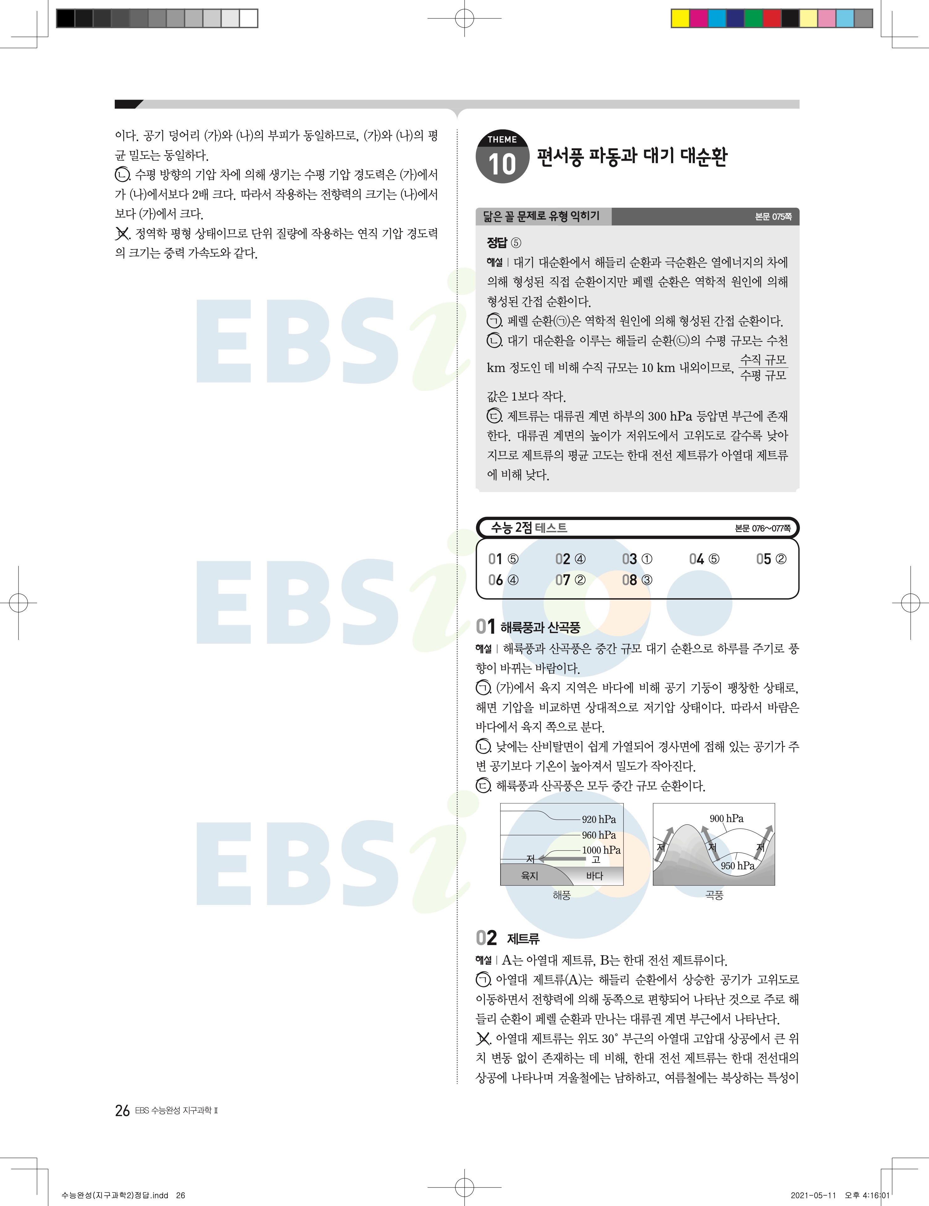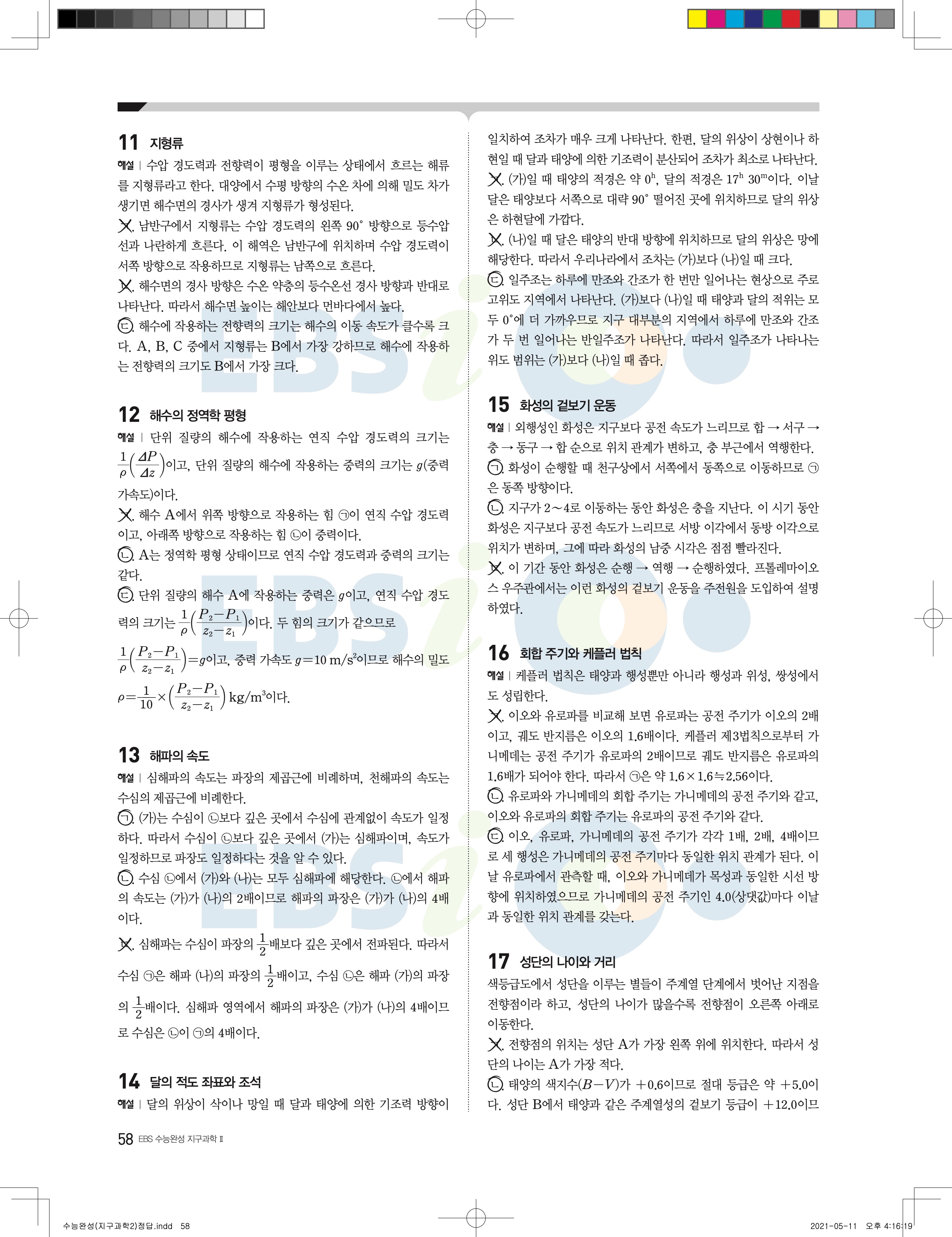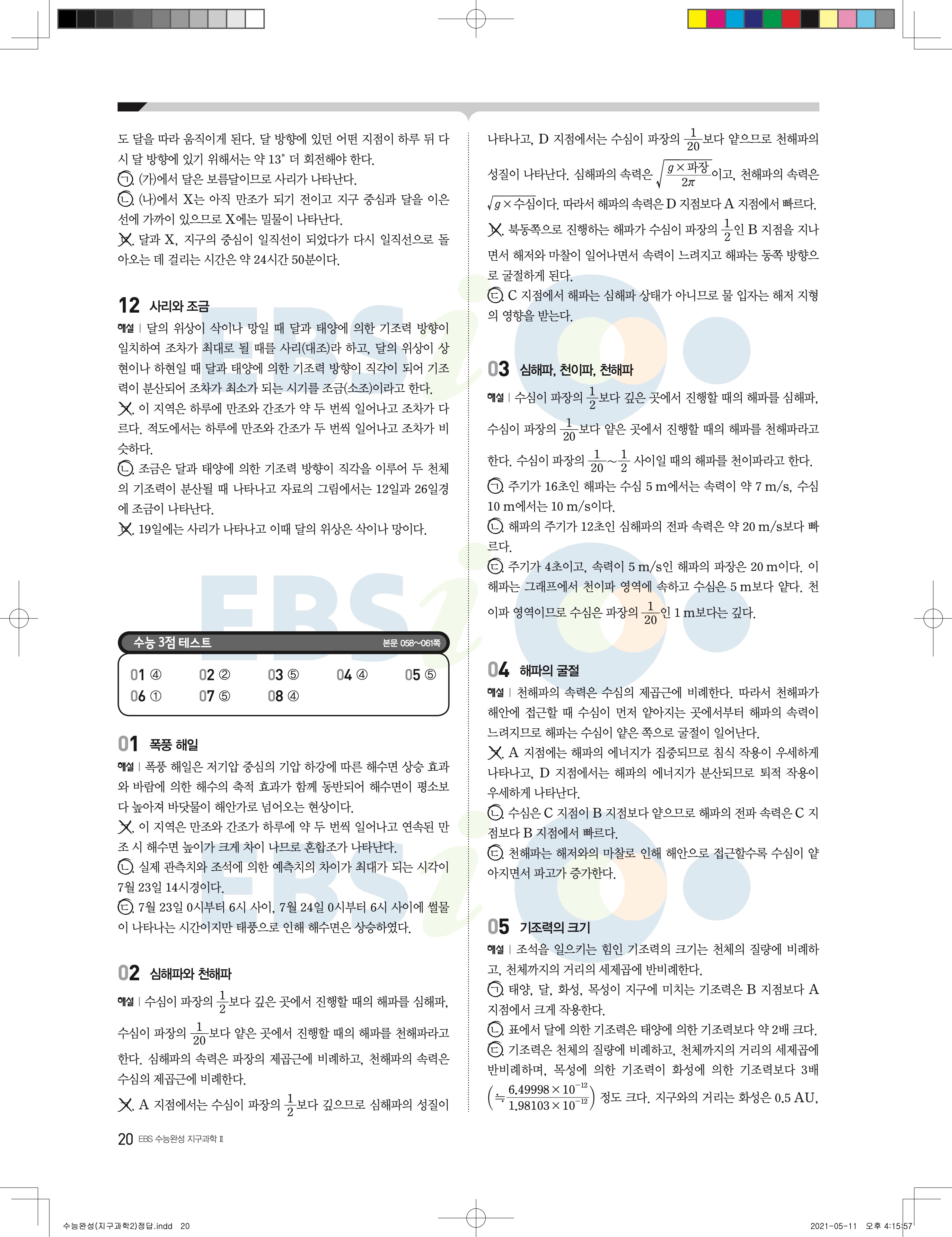2022 EBS 수능완성 과학탐구영역 지구과학2 답지 해설 바로보는 사진답지 모바일최적화