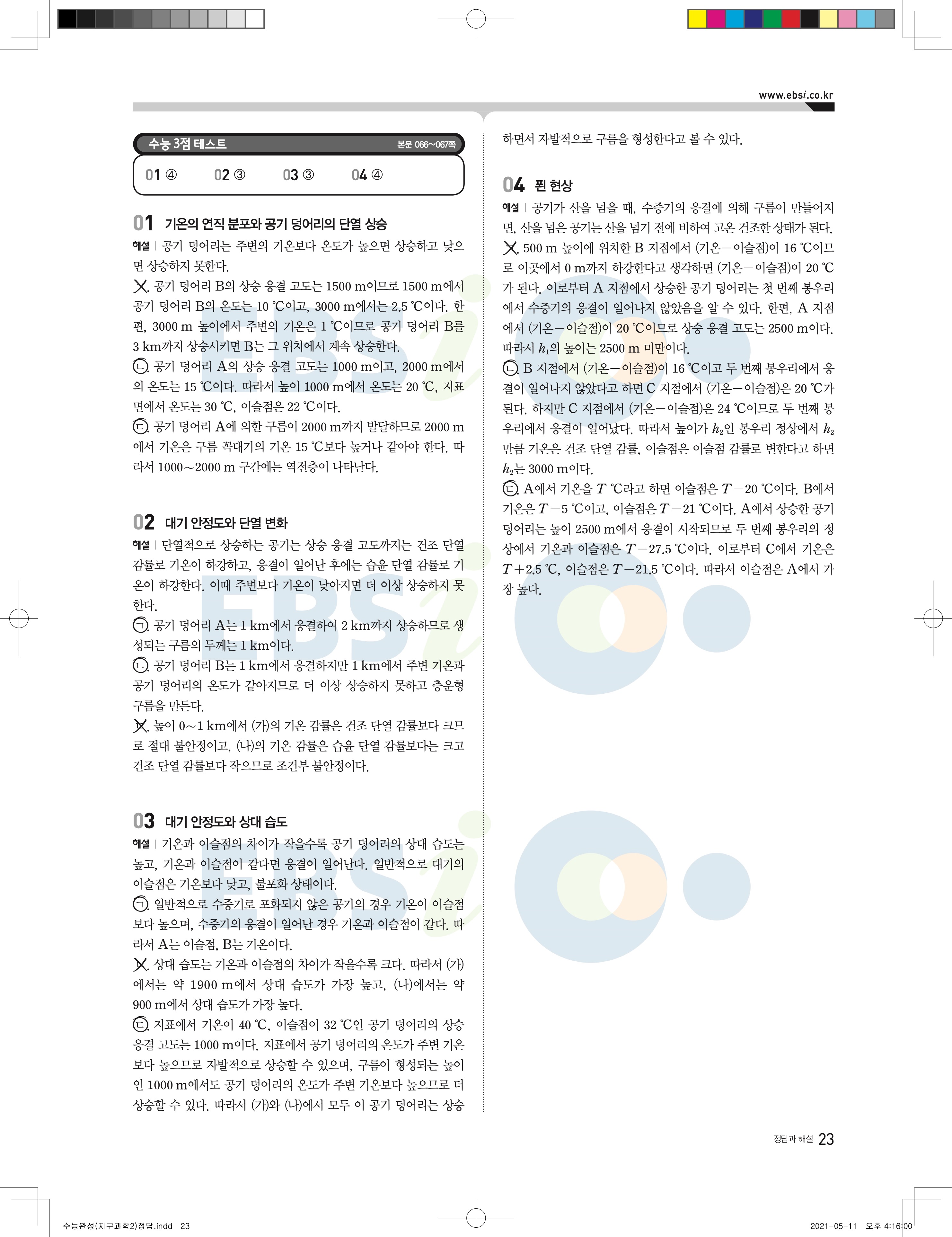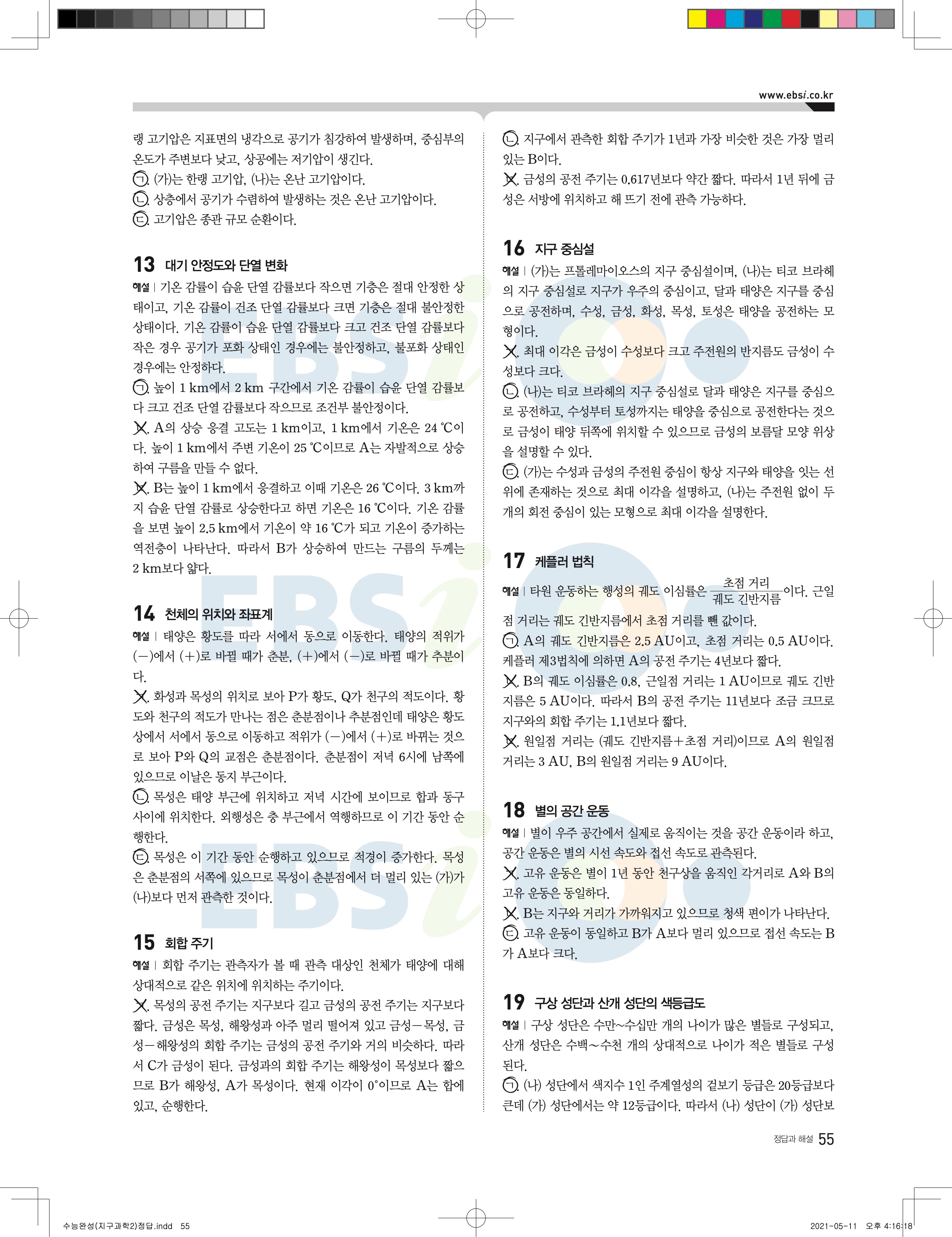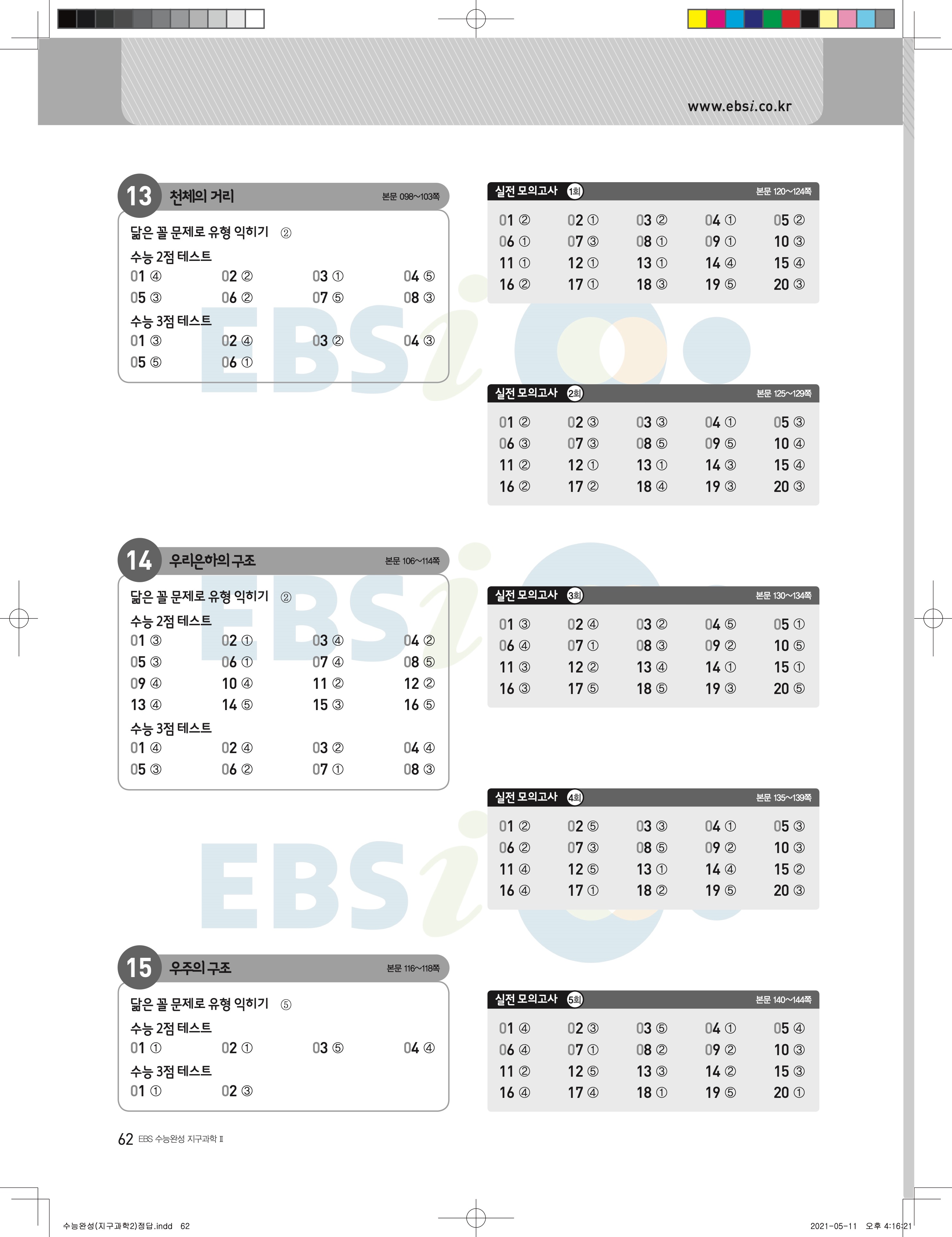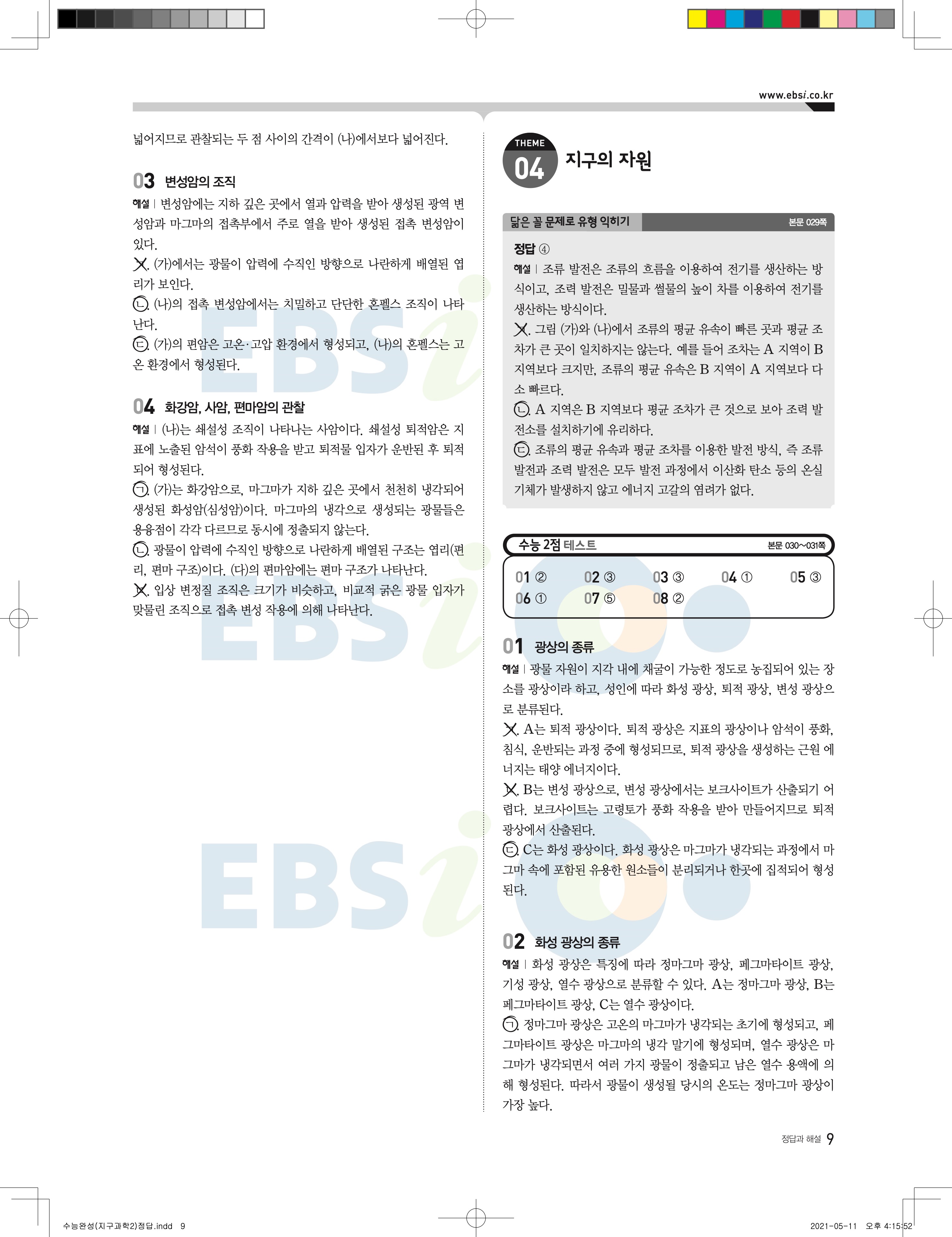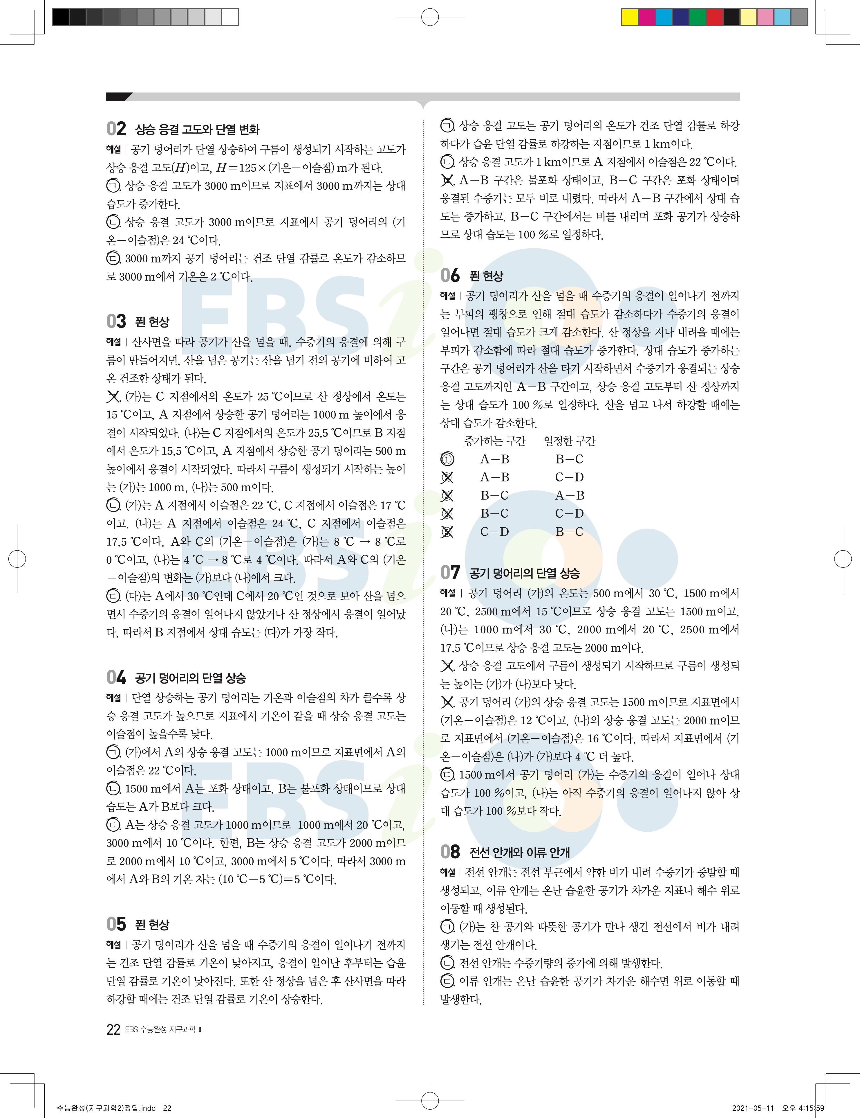 2022 EBS 수능완성 과학탐구영역 지구과학2 답지 해설 바로보는 사진답지 모바일최적화