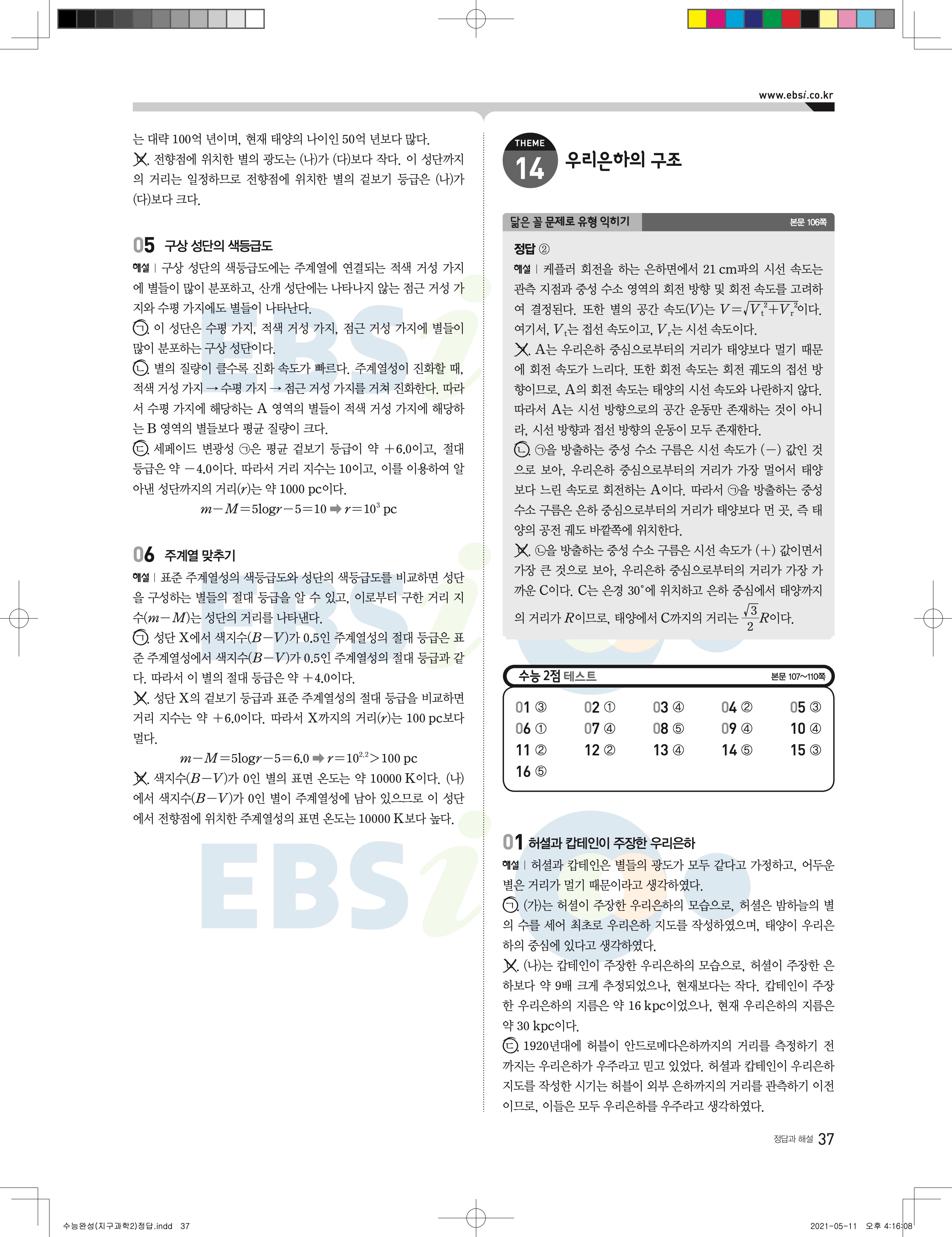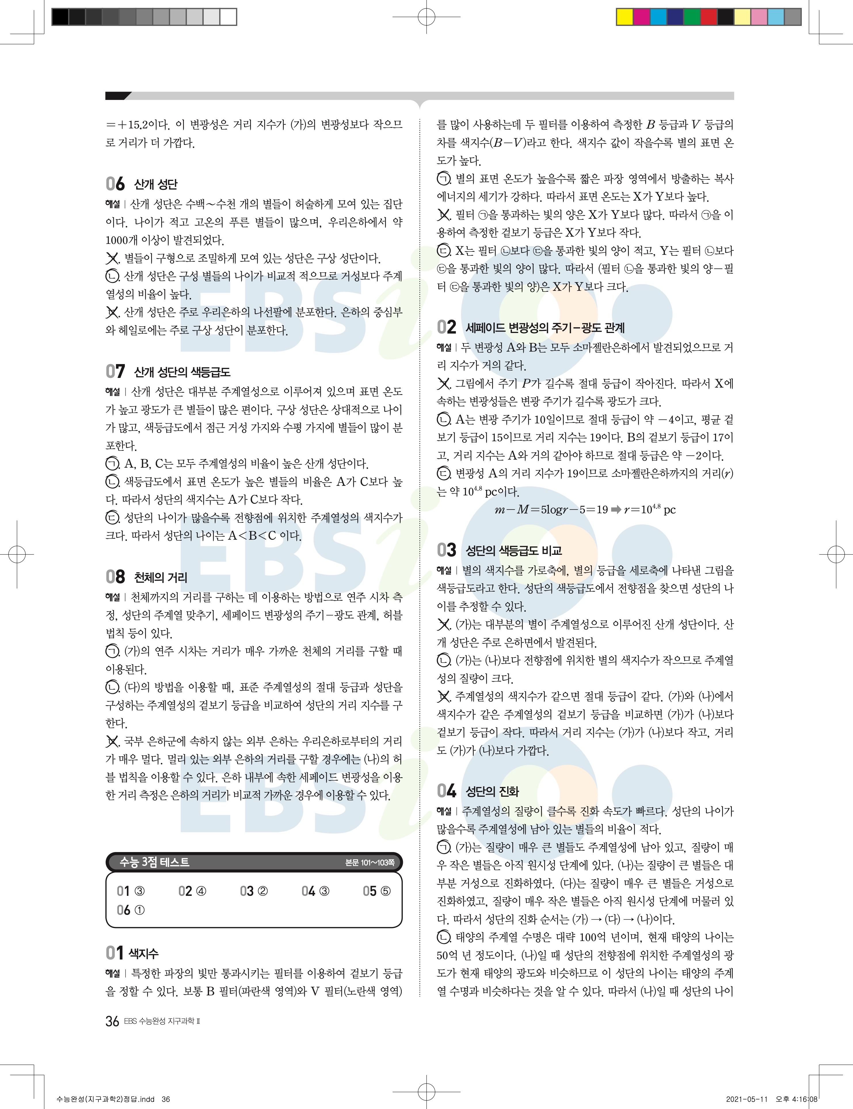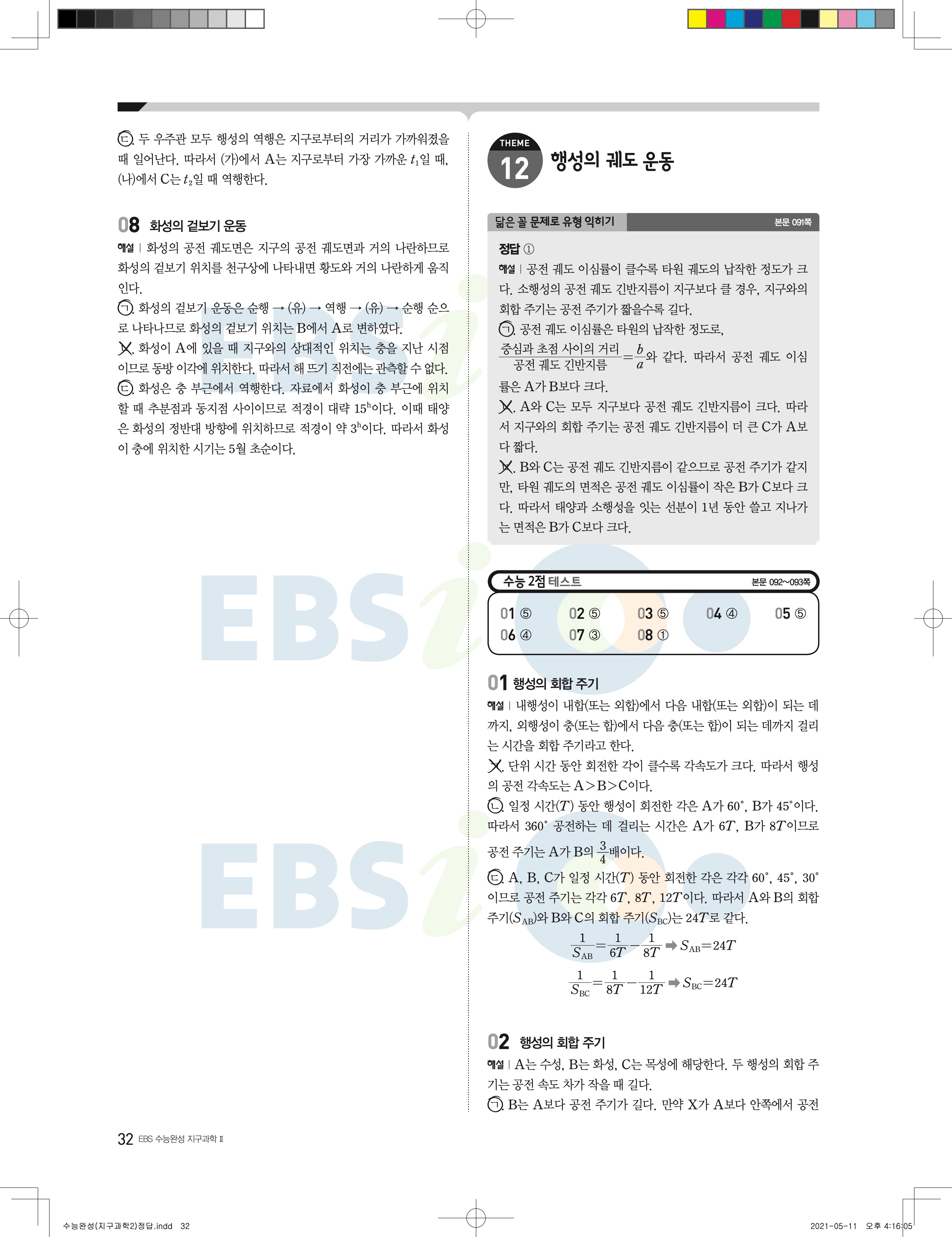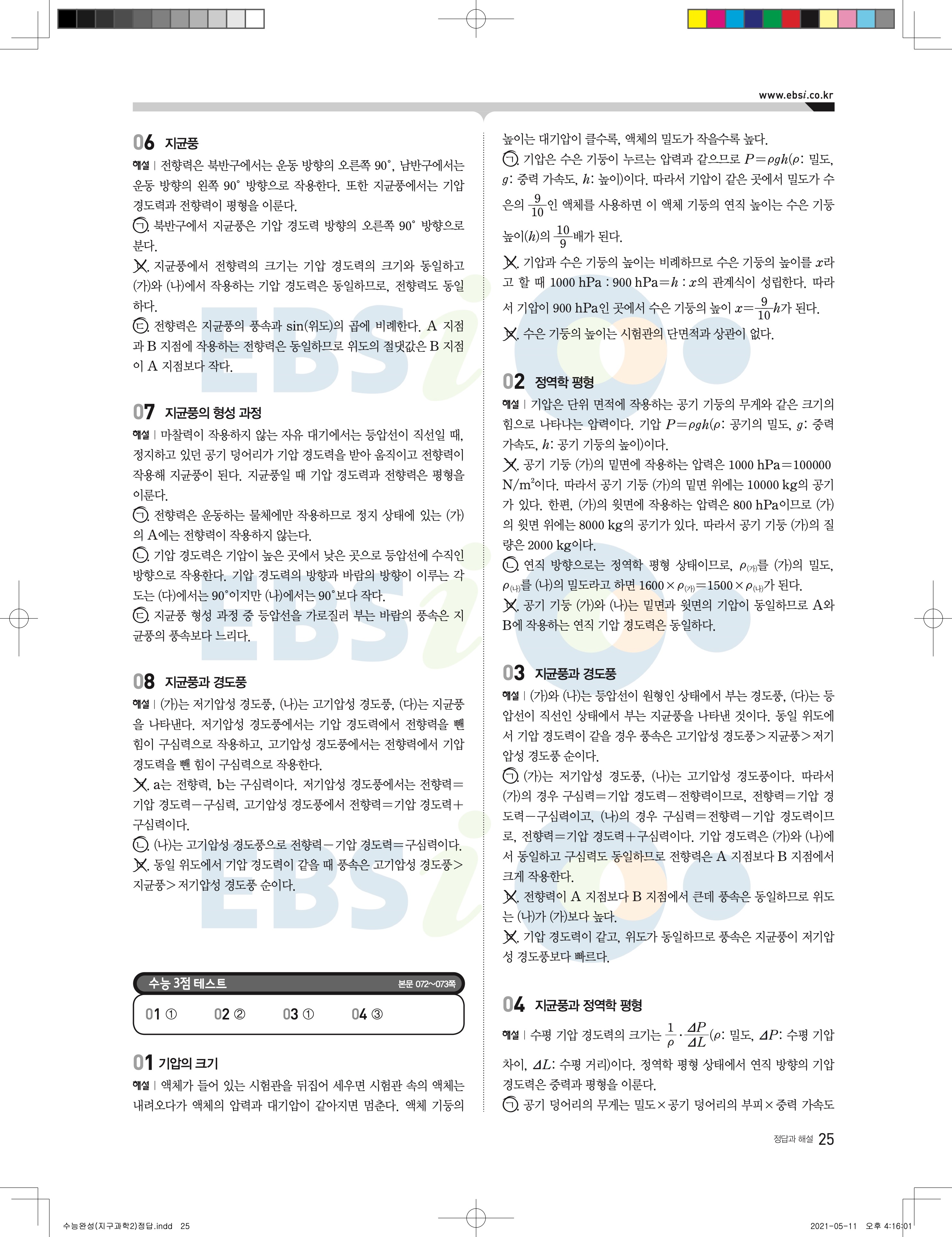 2022 EBS 수능완성 과학탐구영역 지구과학2 답지 해설 바로보는 사진답지 모바일최적화