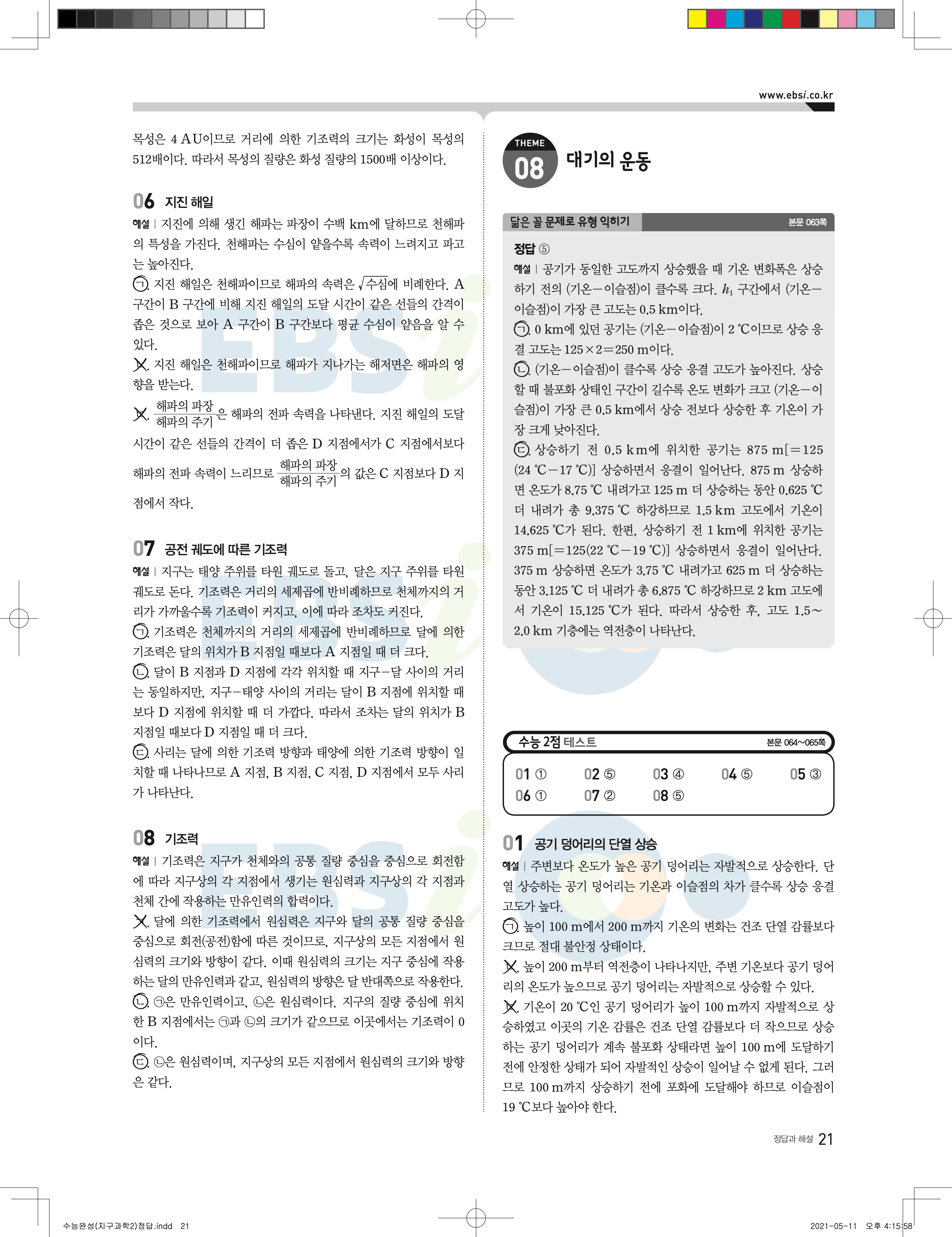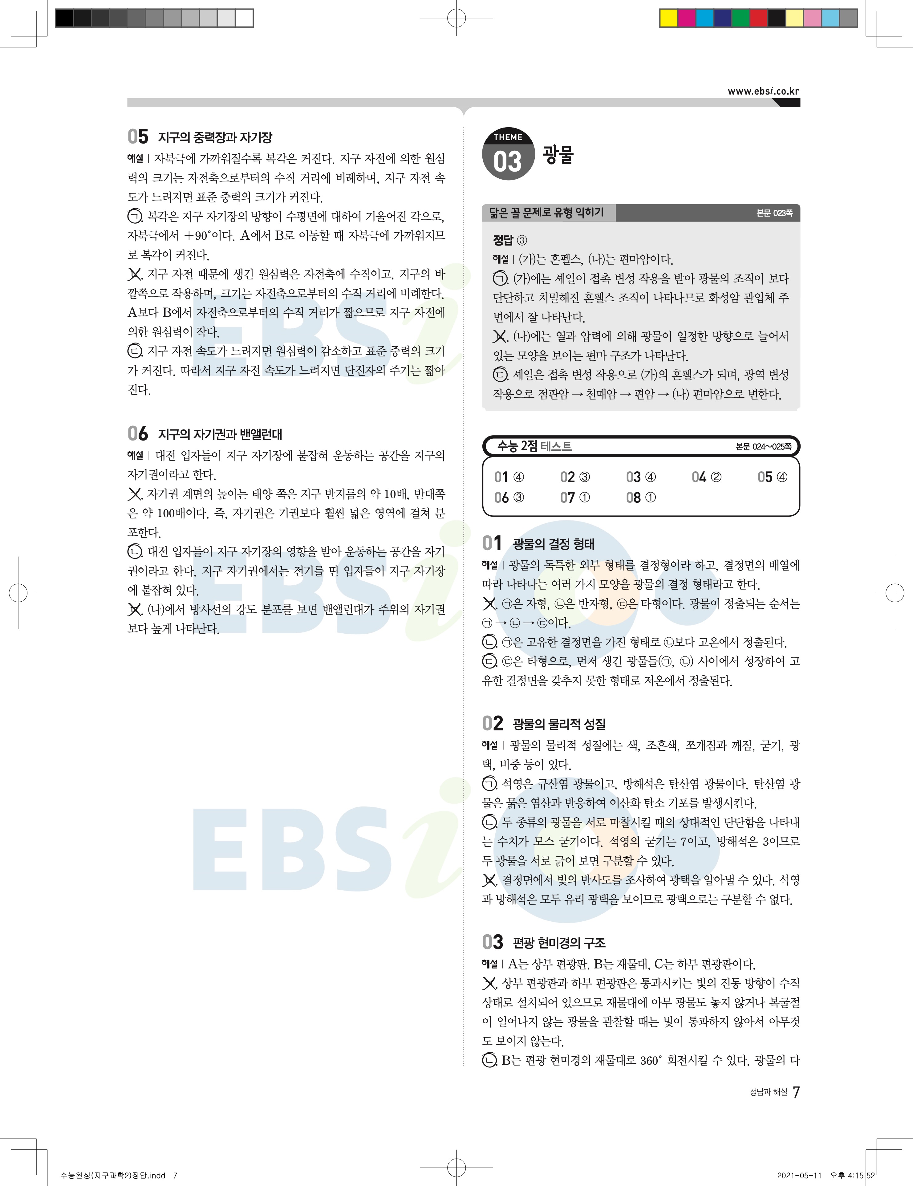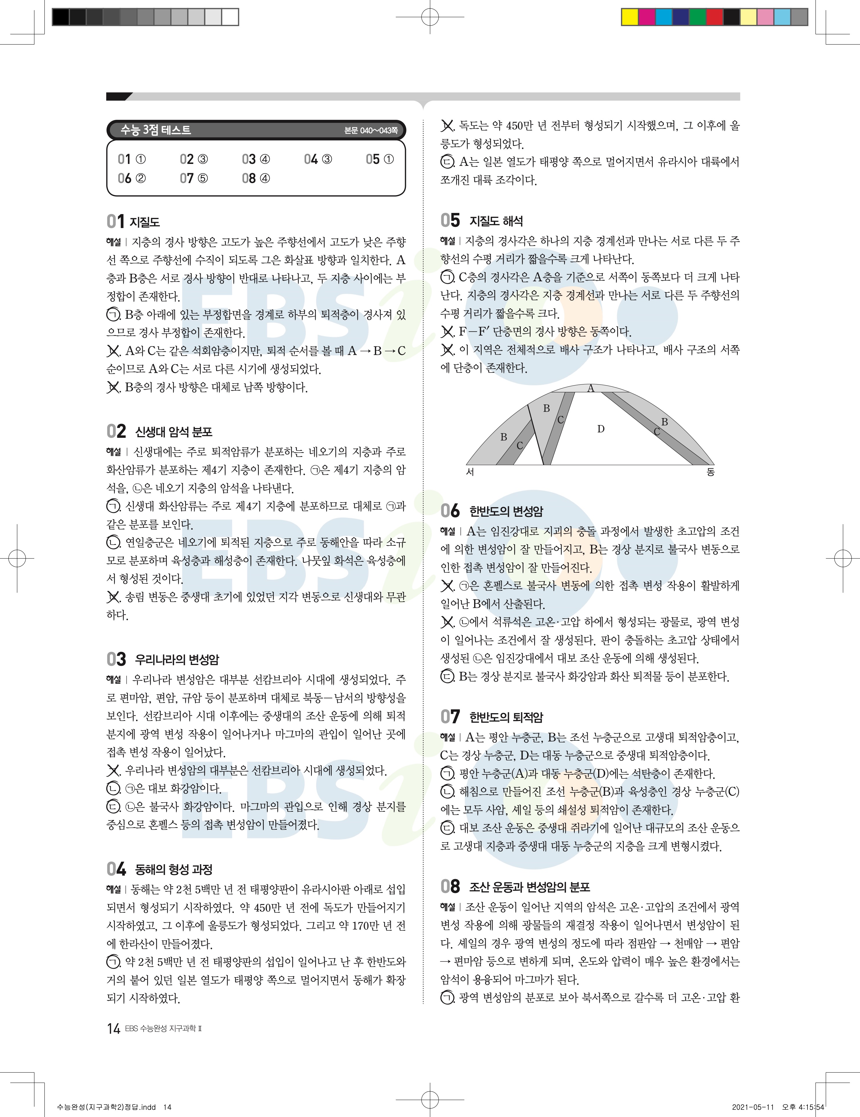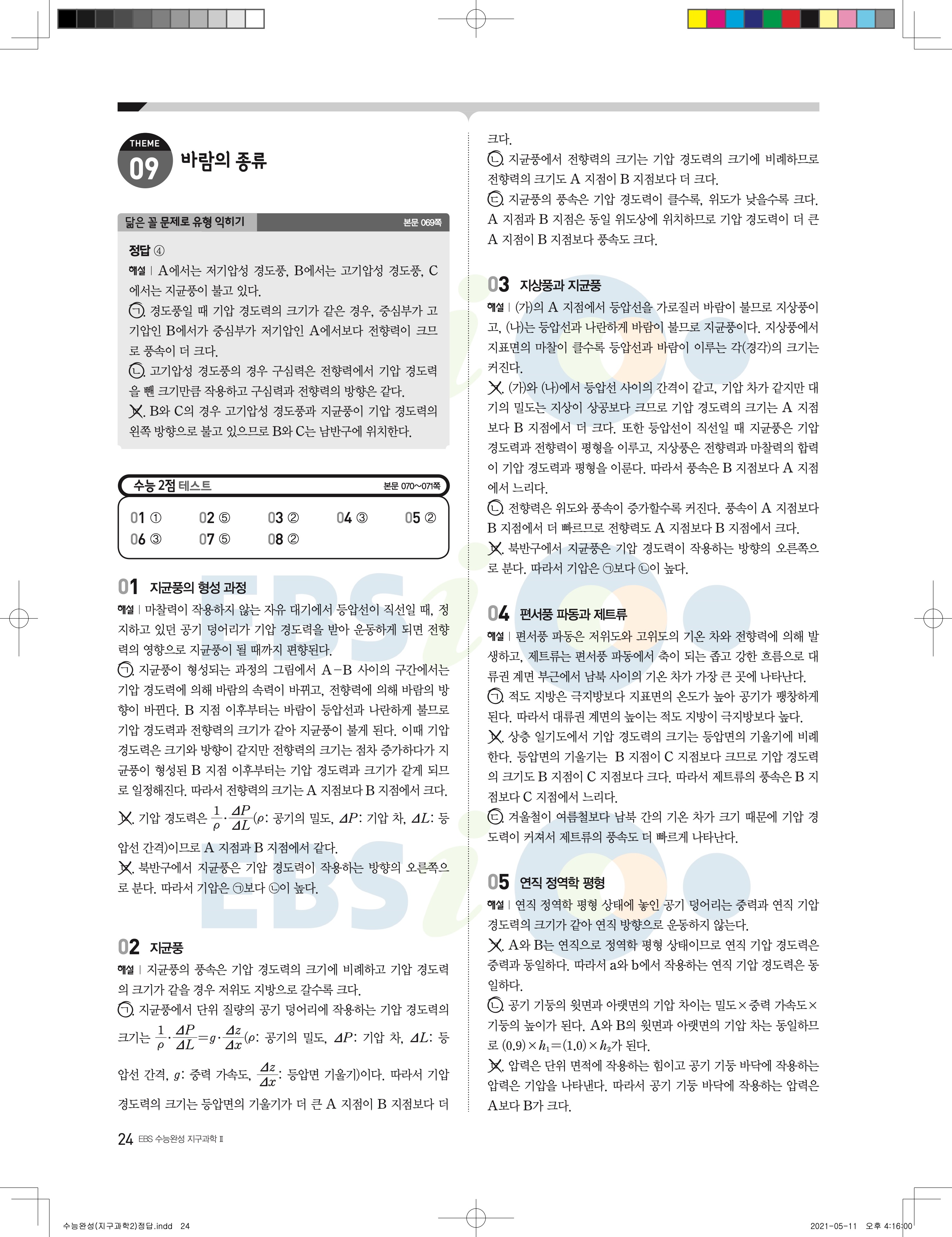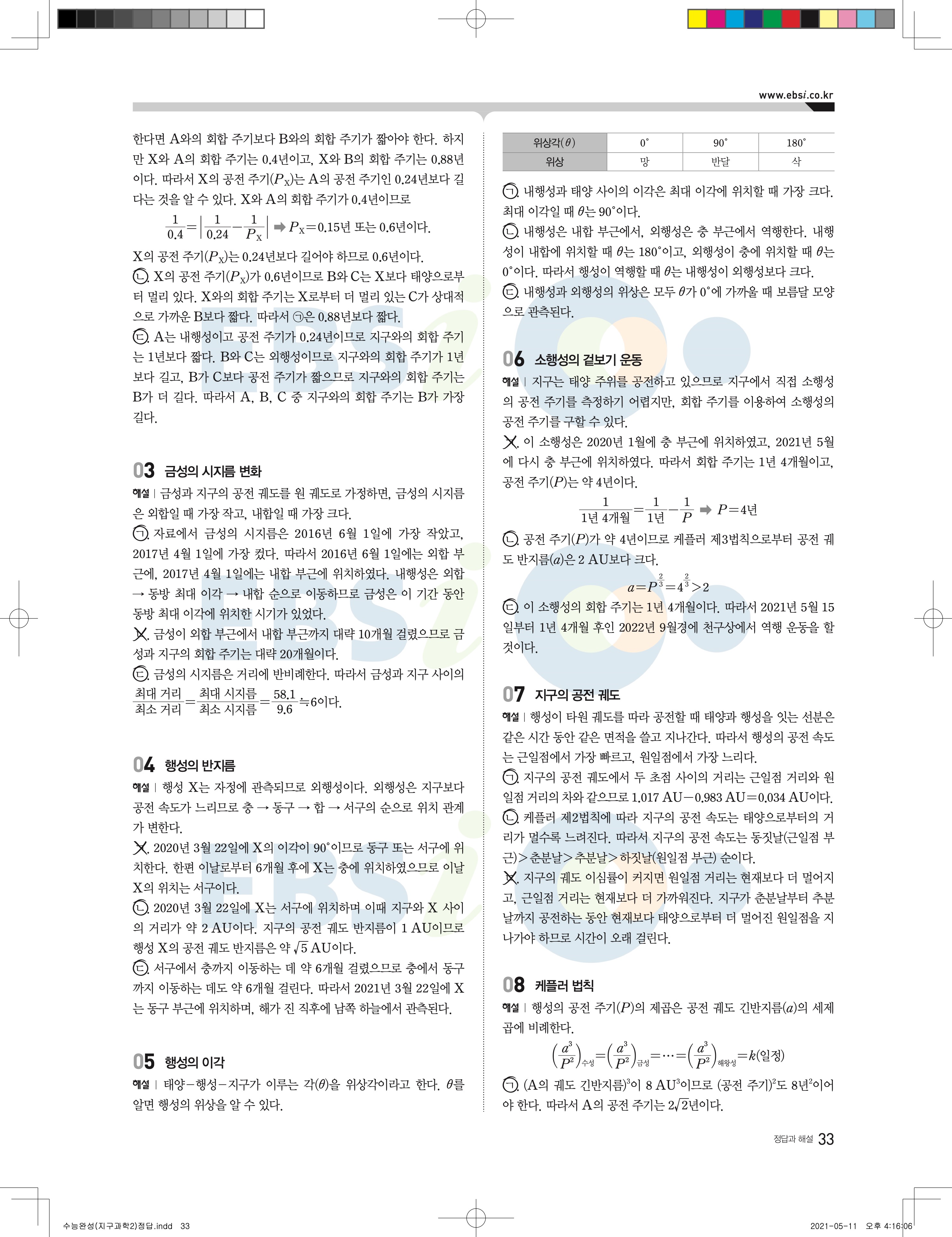 2022 EBS 수능완성 과학탐구영역 지구과학2 답지 해설 바로보는 사진답지 모바일최적화