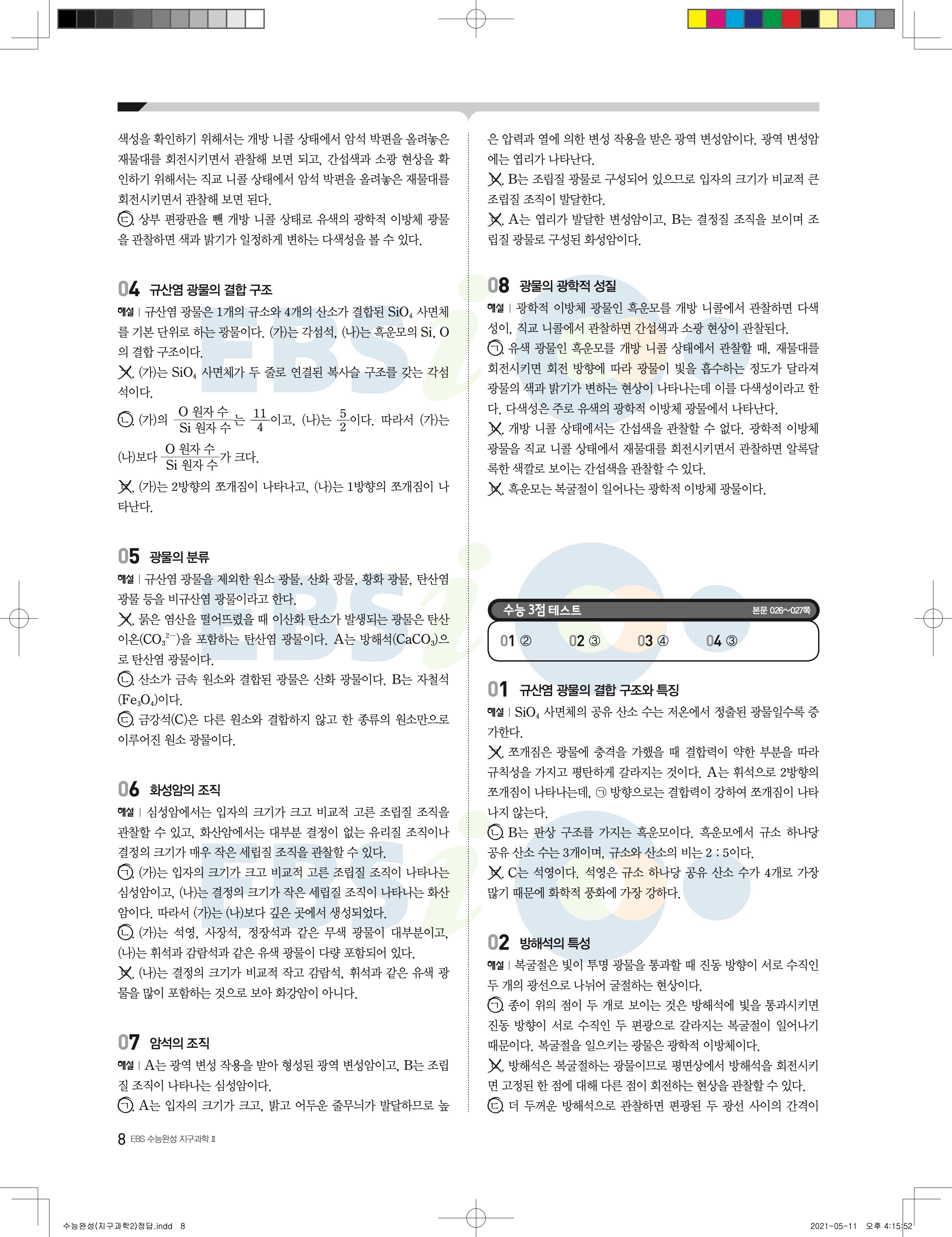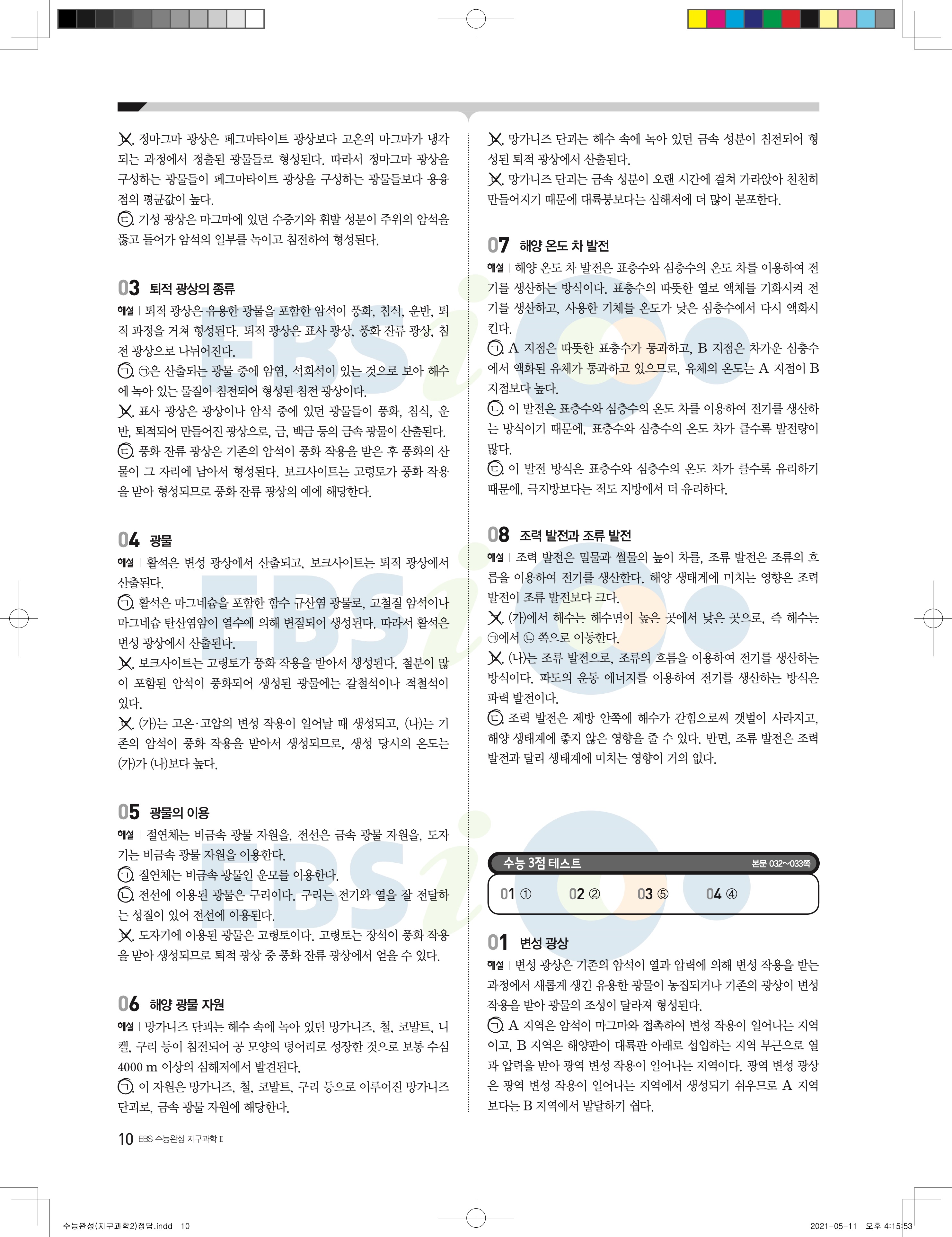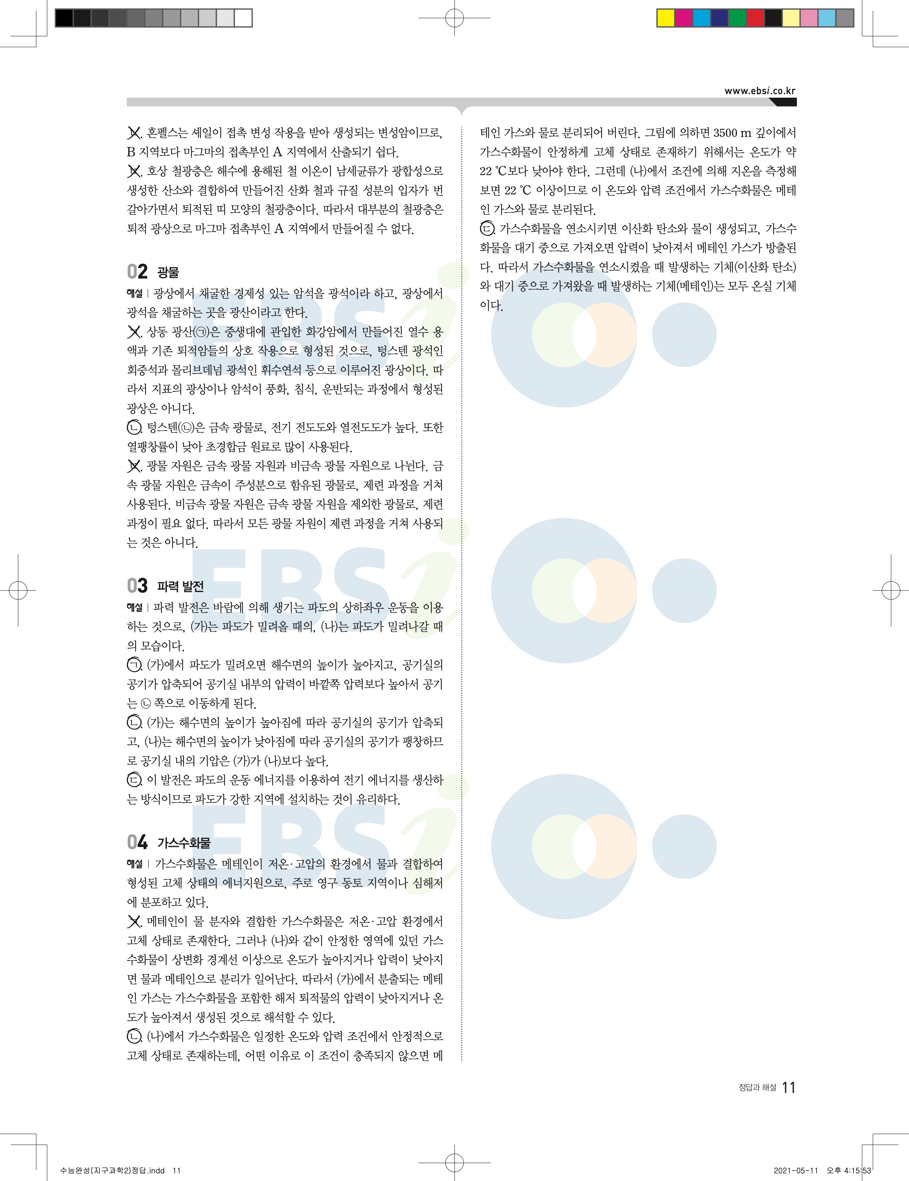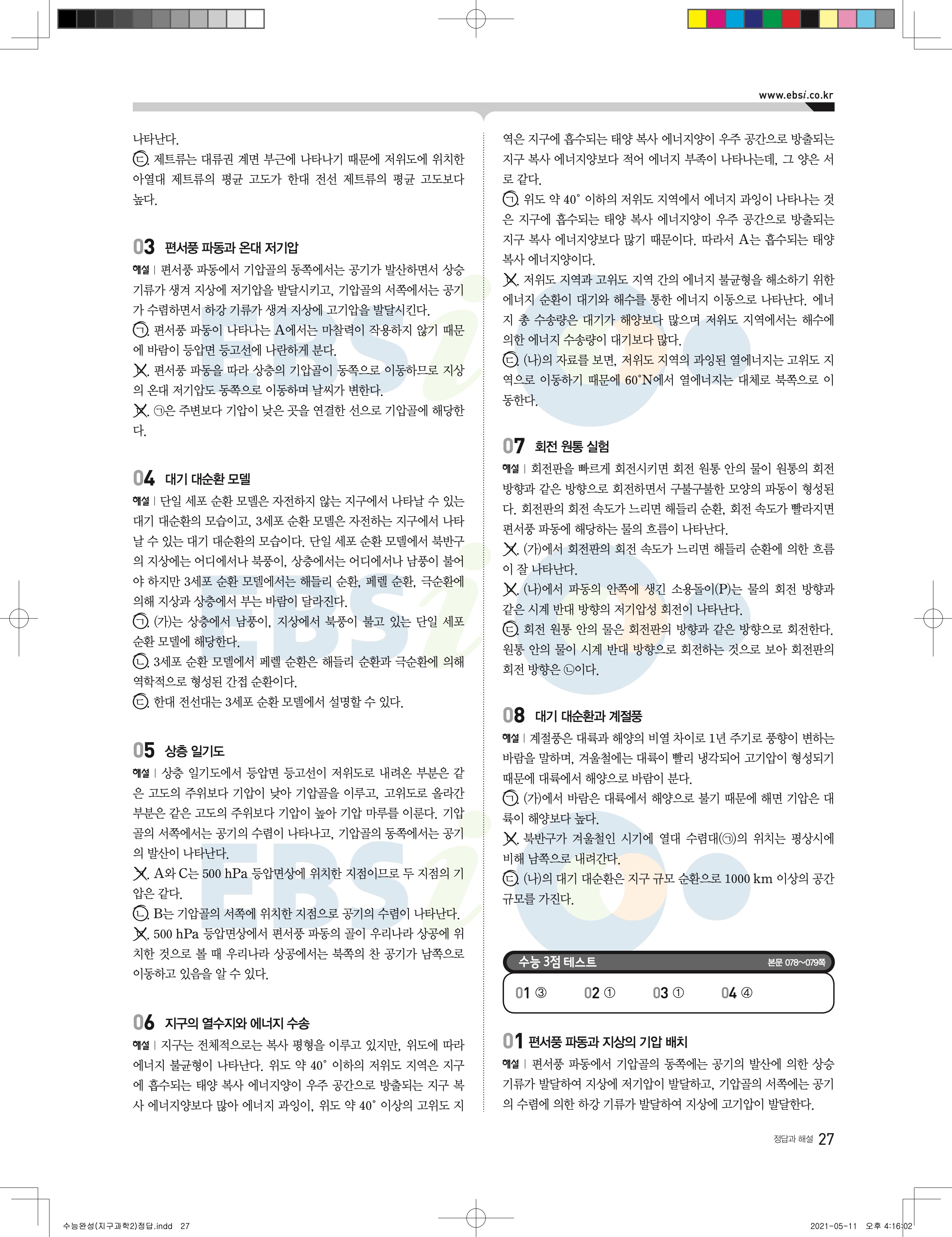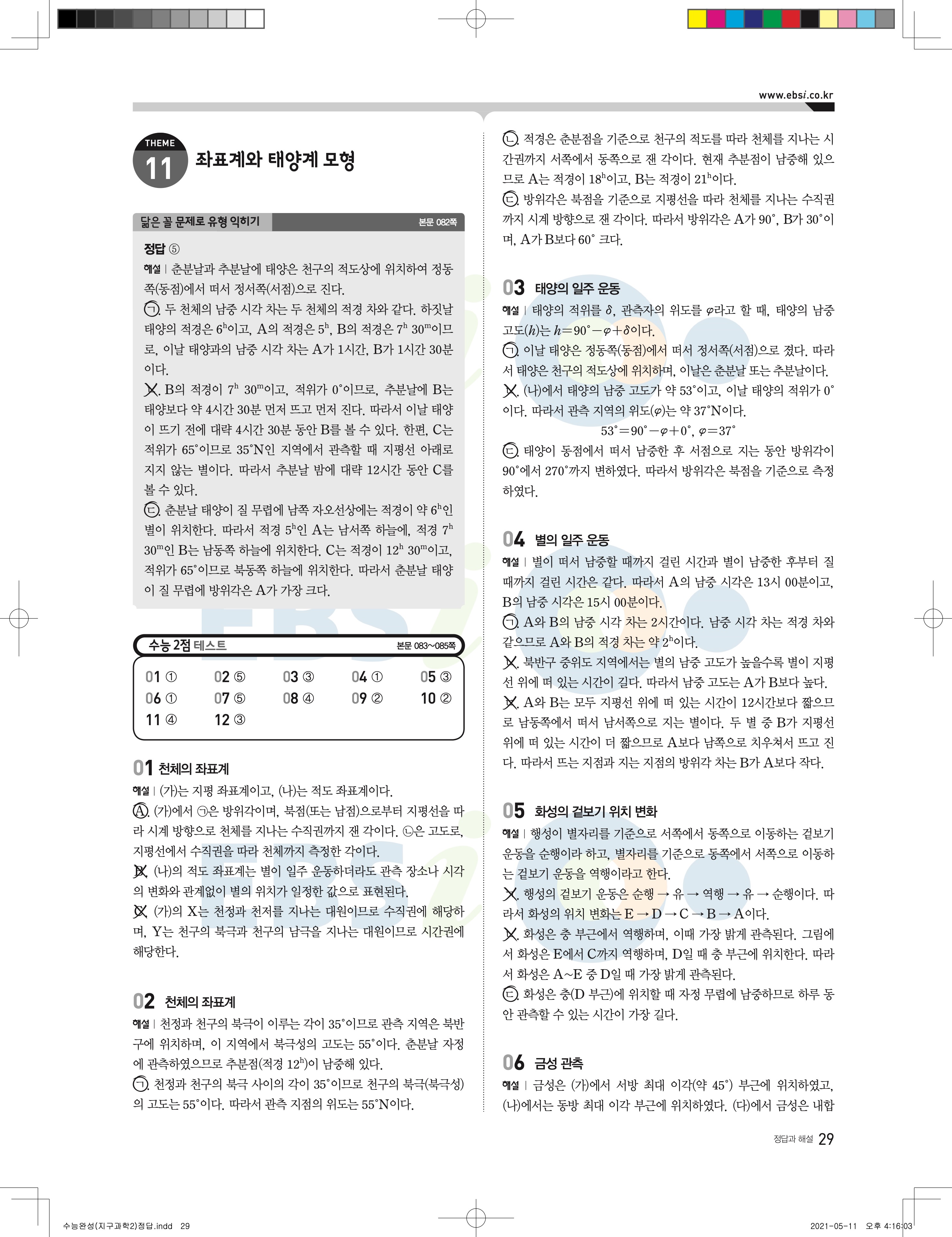 2022 EBS 수능완성 과학탐구영역 지구과학2 답지 해설 바로보는 사진답지 모바일최적화