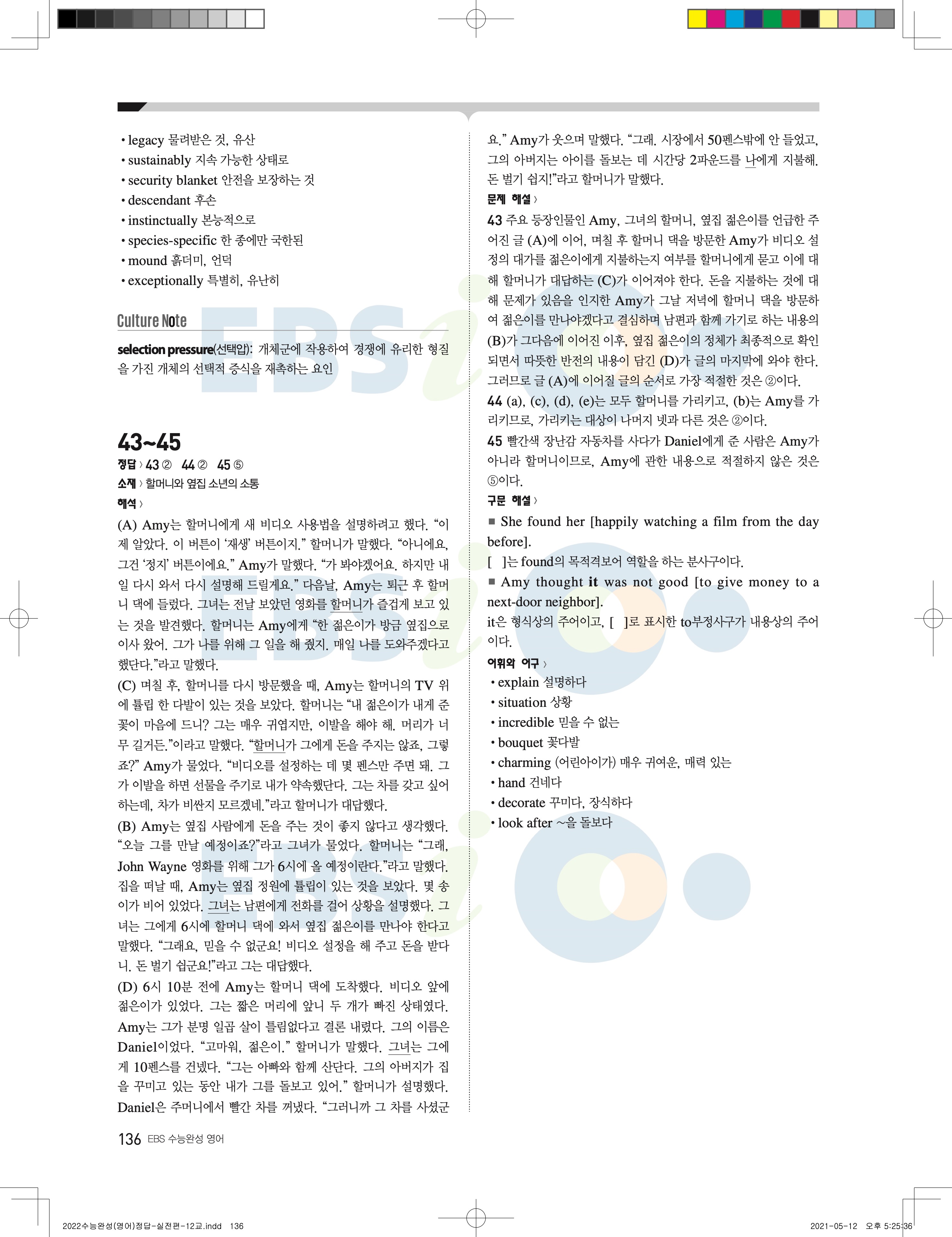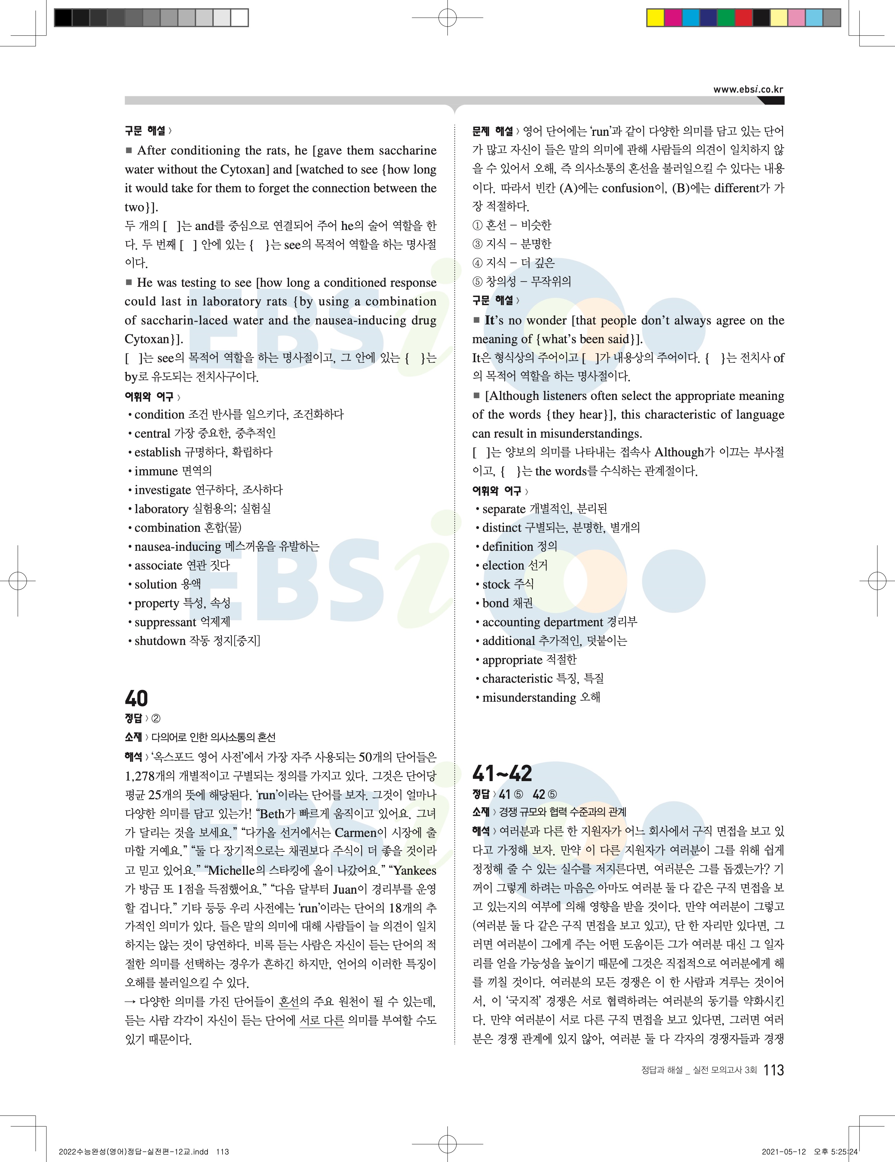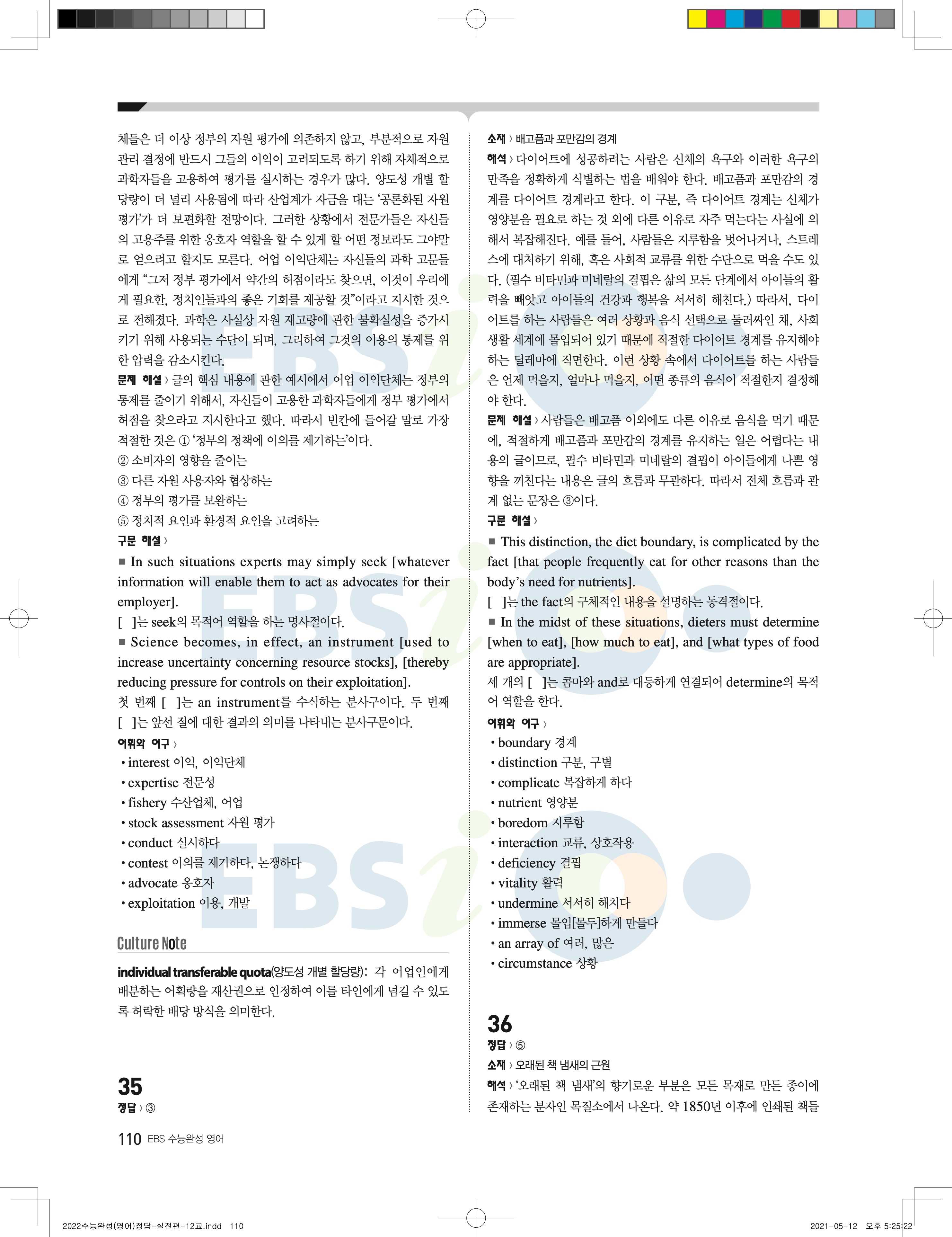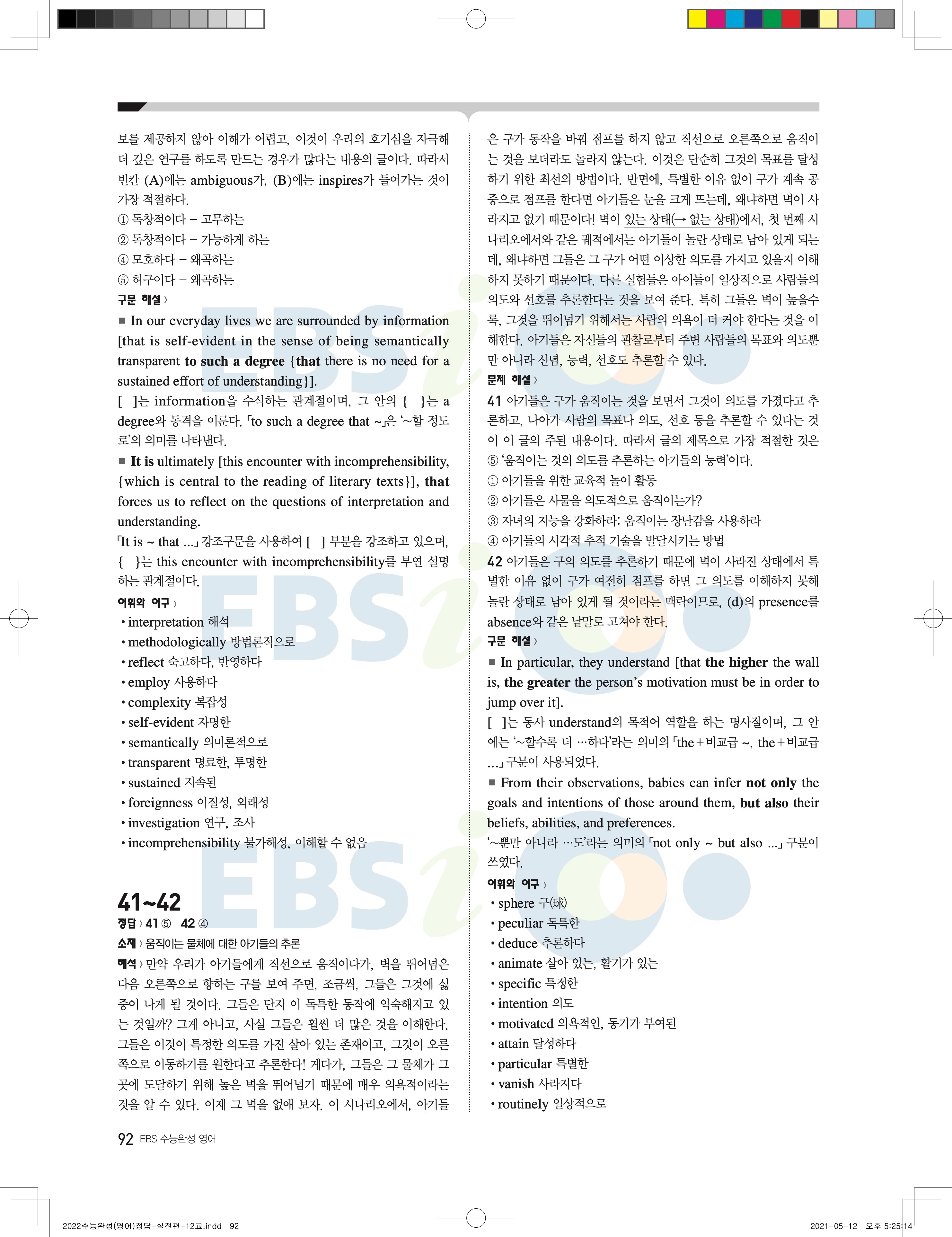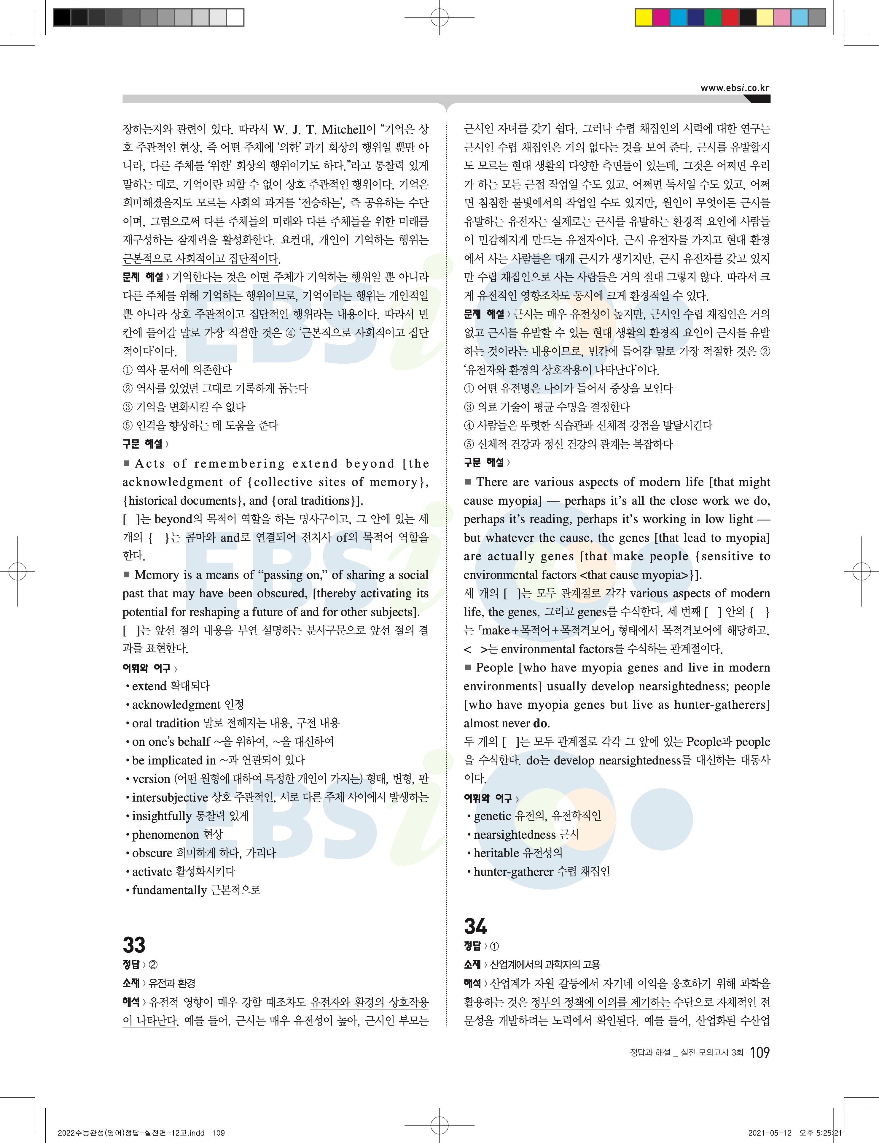 2022 EBS 수능완성 영어영역 영어 답지 해설 바로보는 사진답지 모바일최적화
